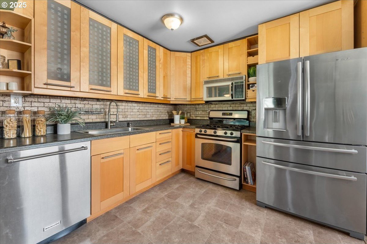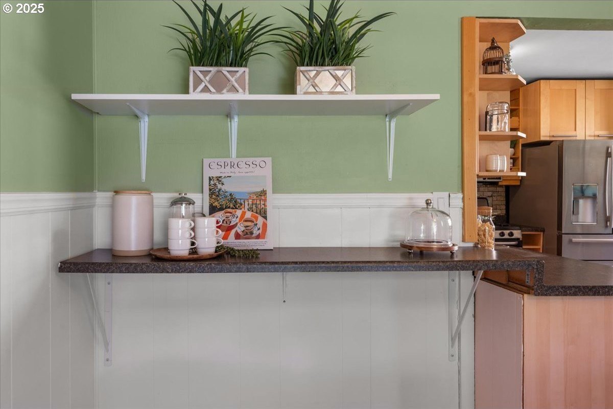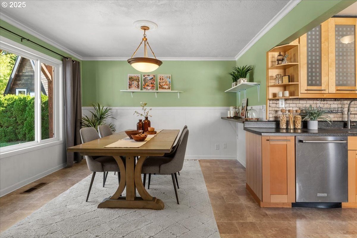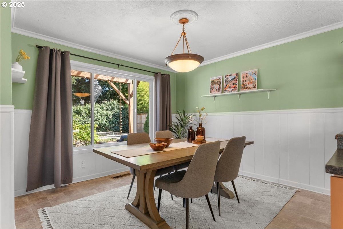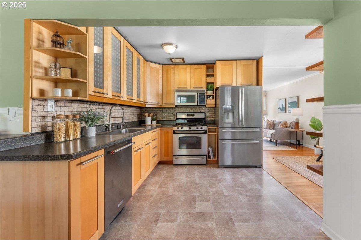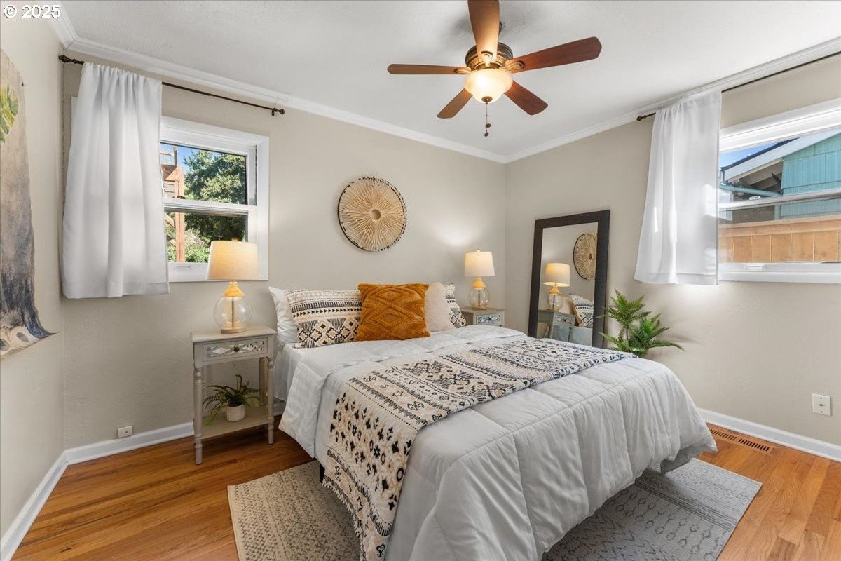 Charming & move-in ready 3-bedroom, 1-bath home offers 1,104 sq. ft. of comfortable living space. Inside you'll find beautiful hardwood floors and an updated kitchen with stainless steel appliances, perfect for everyday living and entertaining. An energy efficient gas furnace, AC, and new water heater keeps the home comfortable year-round, while seismic updates (bolted to the foundation) provide added peace of mind.The detached garage includes a finished bonus room, giving you a flexible space for a home office, gym, studio, or hobby room. Step outside to enjoy a covered Trex deck, perfect for relaxing or hosting friends. The backyard features raised garden beds, thriving blueberry and raspberry bushes, and a fire pit area—ideal for cozy evenings. Out front, mature pear trees welcome you home with seasonal fruit and charm. Located just blocks from the bus line, local stores, and restaurants, this home blends convenience with neighborhood charm. It’s truly move-in ready and waiting for its next chapter. [Home Energy Score = 6. HES Report at https://rpt.greenbuildingregistry.com/hes/OR10241418]