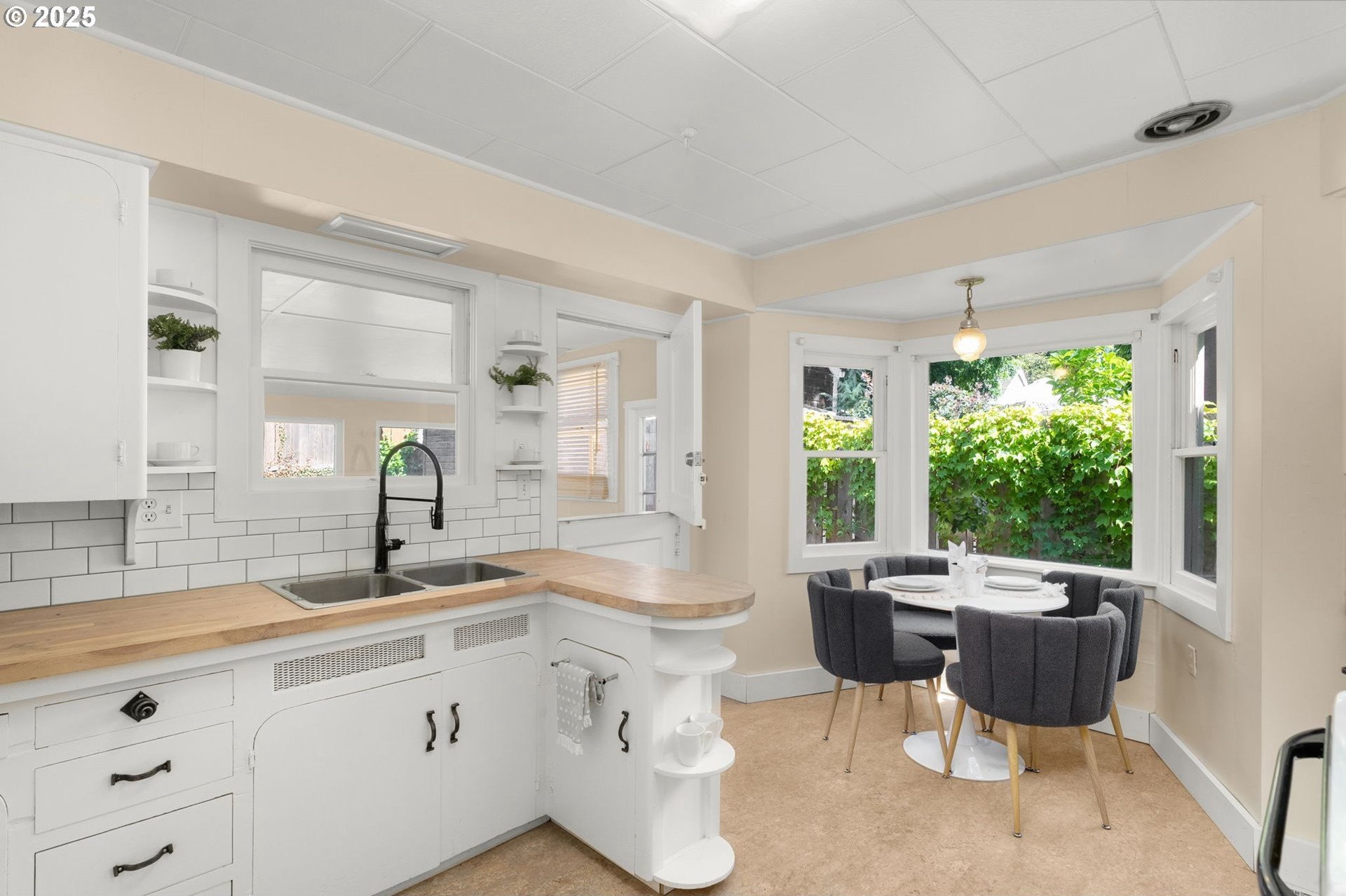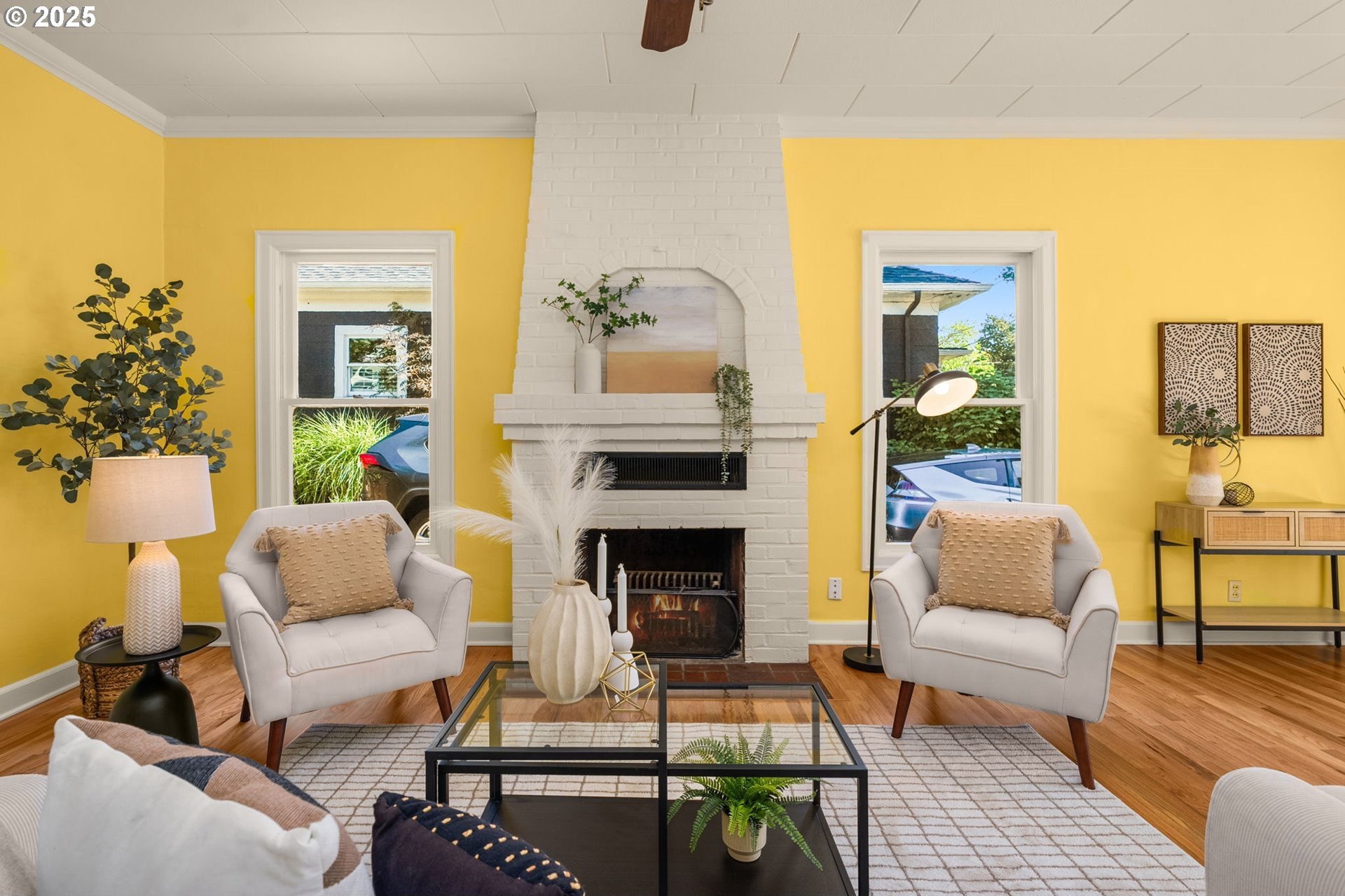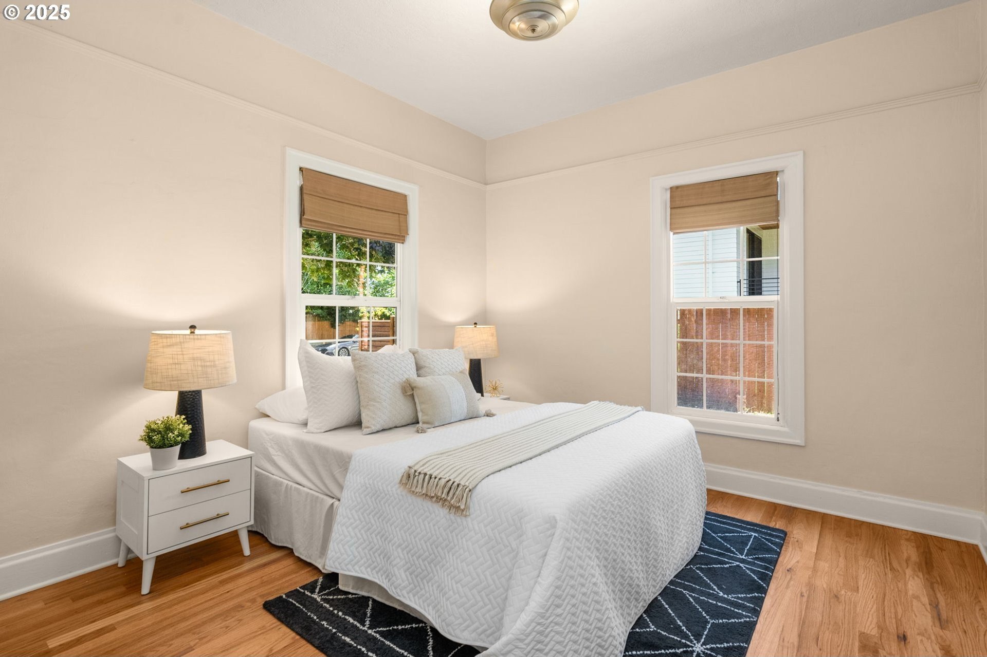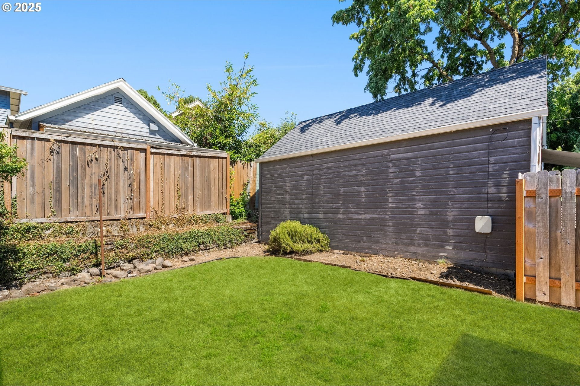Charming 1905 bungalow in the heart of Sellwood! 2 bedrooms + a Jack-and-Jill bath, with the primary bedroom offering a walk-in closet and built-ins. Oak floors, graceful archways, and a floor-to-ceiling brick fireplace. A butler’s pantry with original cabinetry leads into an updated kitchen with butcher block counters, subway tile backsplash, hand-forged hardware, abundant storage, and a breakfast nook. From the kitchen, a Dutch door opens to a versatile sunroom suited for laundry, hobbies, or quiet retreat. The fenced yard includes covered storage and a 440-sq-ft detached garage/workshop with its own electrical panel, plus off-street parking for 3+ vehicles. Recent updates include a new furnace, A/C, water and sewer lines, fencing, gutters, interior and exterior paint, and a parking pad. Unbeatable SE location close to cafés, shops, New Seasons Market, parks, river, and transit! [Home Energy Score = 4. HES Report at https://rpt.greenbuildingregistry.com/hes/OR10196590]