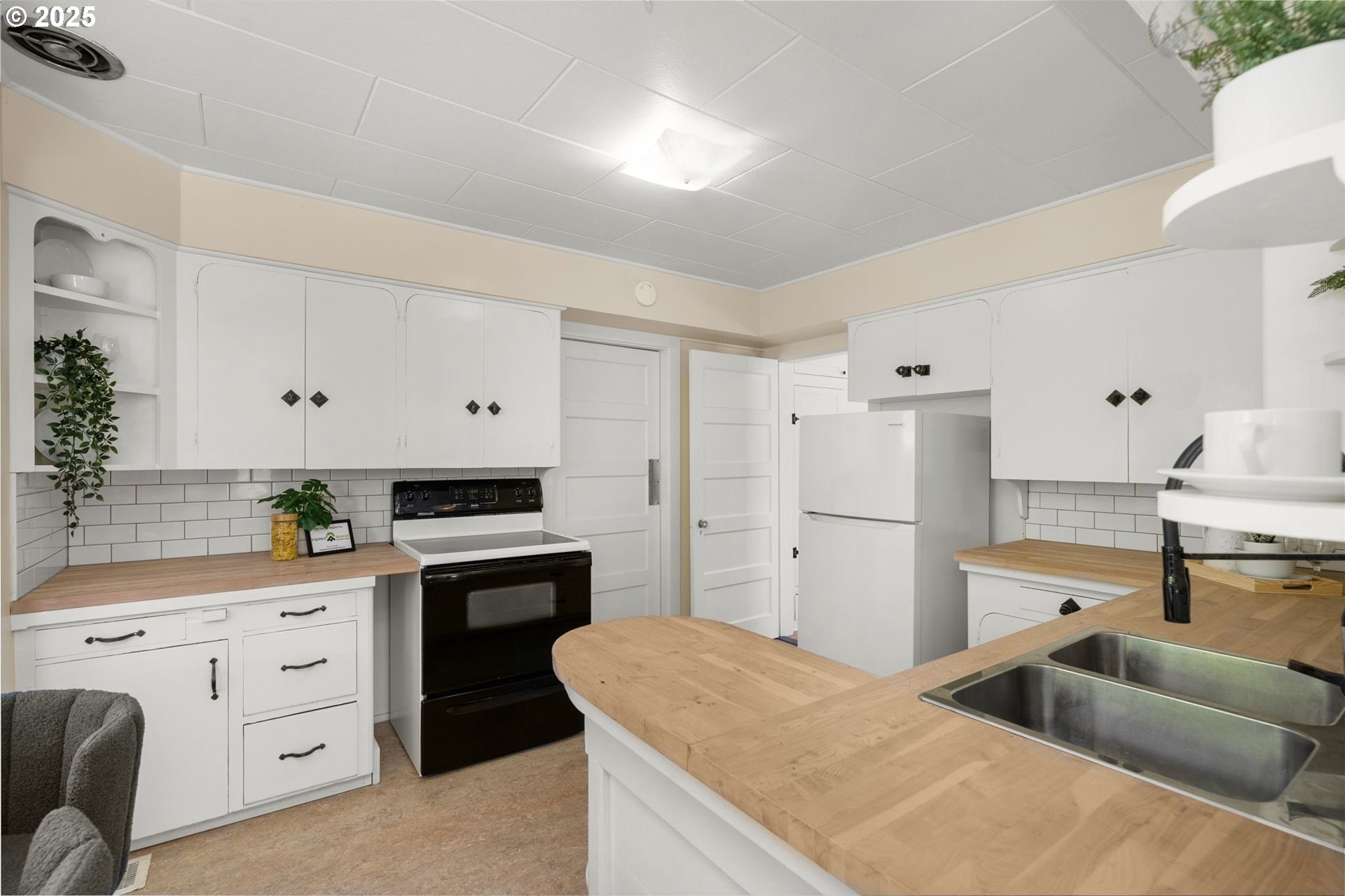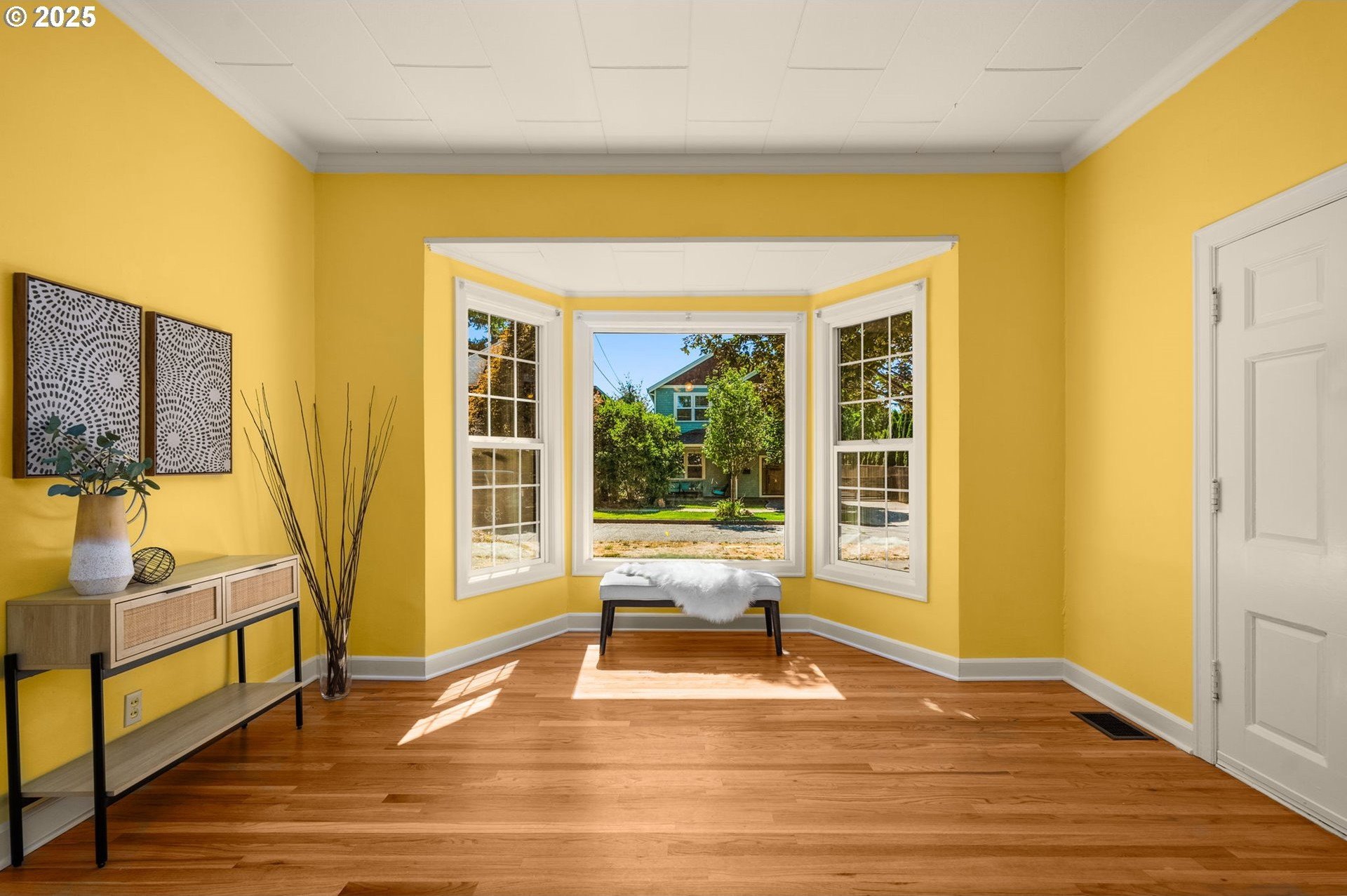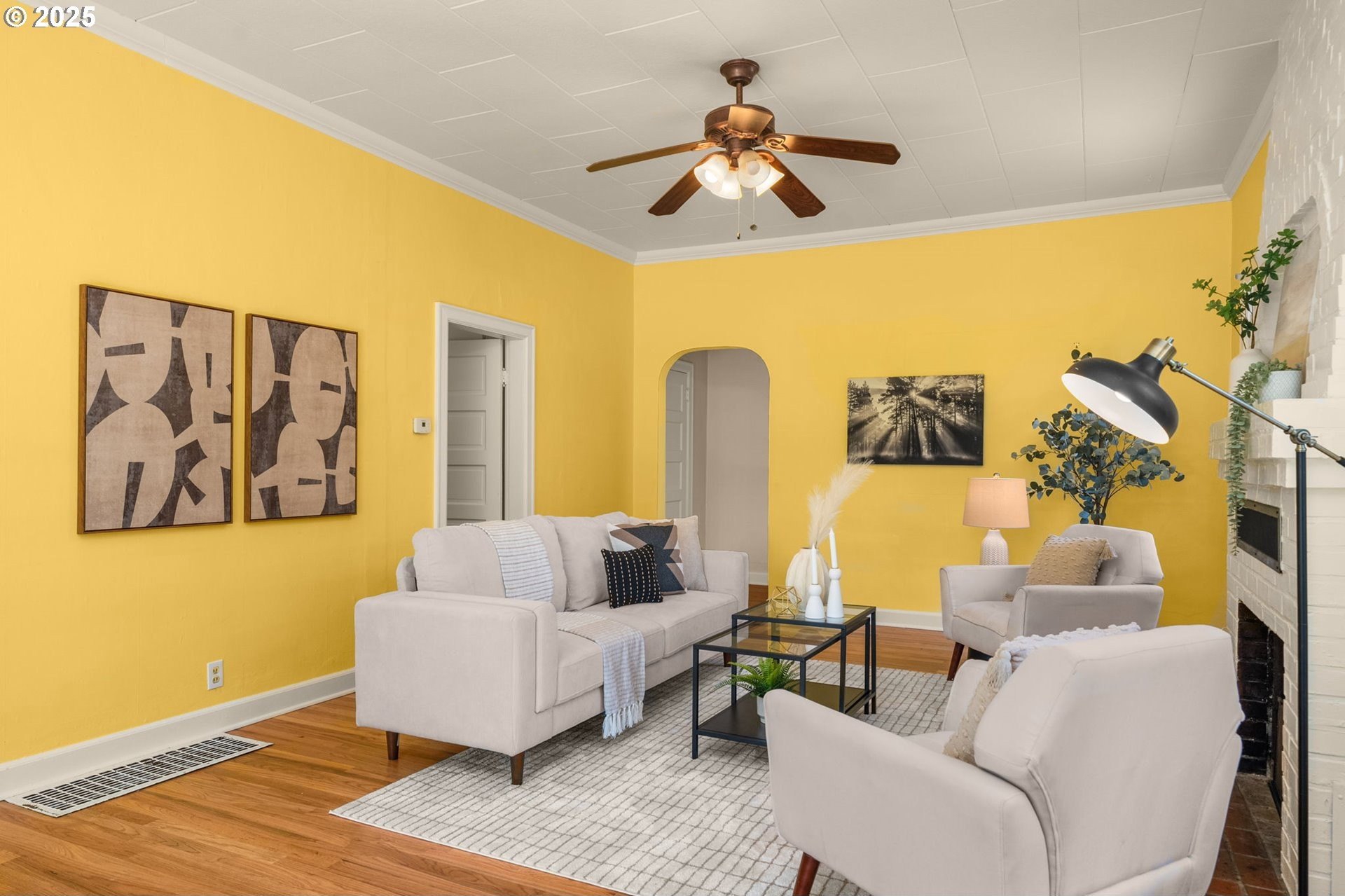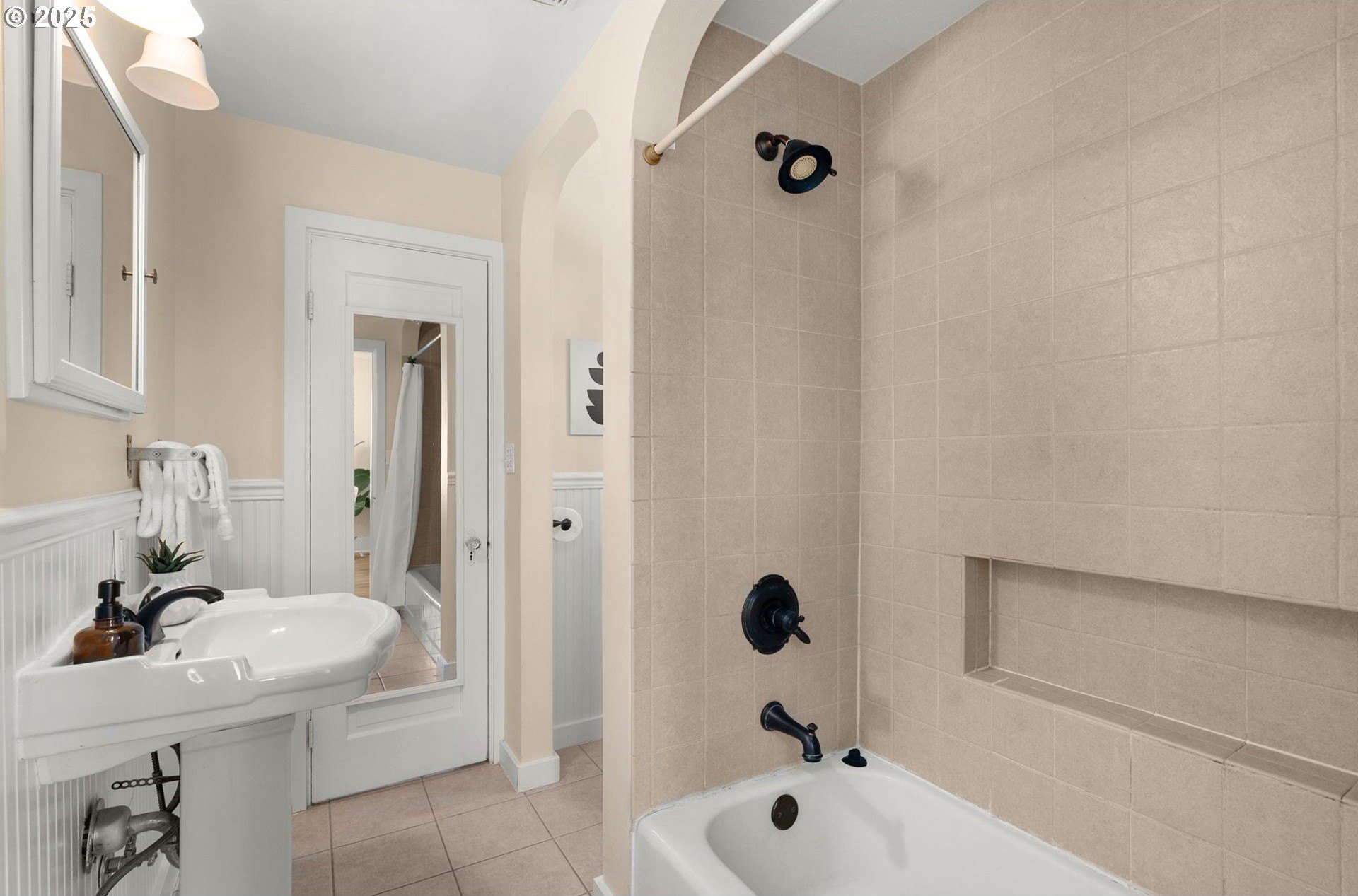 Charming 1905 bungalow in the heart of Sellwood! 2 bedrooms + a Jack-and-Jill bath, with the primary bedroom offering a walk-in closet and built-ins. Oak floors, graceful archways, and a floor-to-ceiling brick fireplace. A butler’s pantry with original cabinetry leads into an updated kitchen with butcher block counters, subway tile backsplash, hand-forged hardware, abundant storage, and a breakfast nook. From the kitchen, a Dutch door opens to a versatile sunroom suited for laundry, hobbies, or quiet retreat. The fenced yard includes covered storage and a 440-sq-ft detached garage/workshop with its own electrical panel, plus off-street parking for 3+ vehicles. Recent updates include a new furnace, A/C, water and sewer lines, fencing, gutters, interior and exterior paint, and a parking pad. Unbeatable SE location close to cafés, shops, New Seasons Market, parks, river, and transit! [Home Energy Score = 4. HES Report at https://rpt.greenbuildingregistry.com/hes/OR10196590]