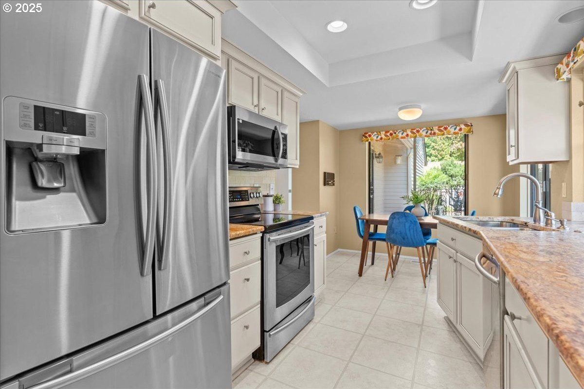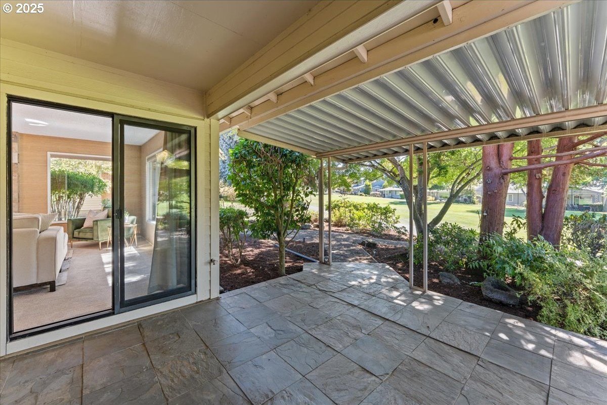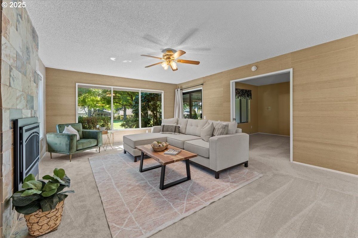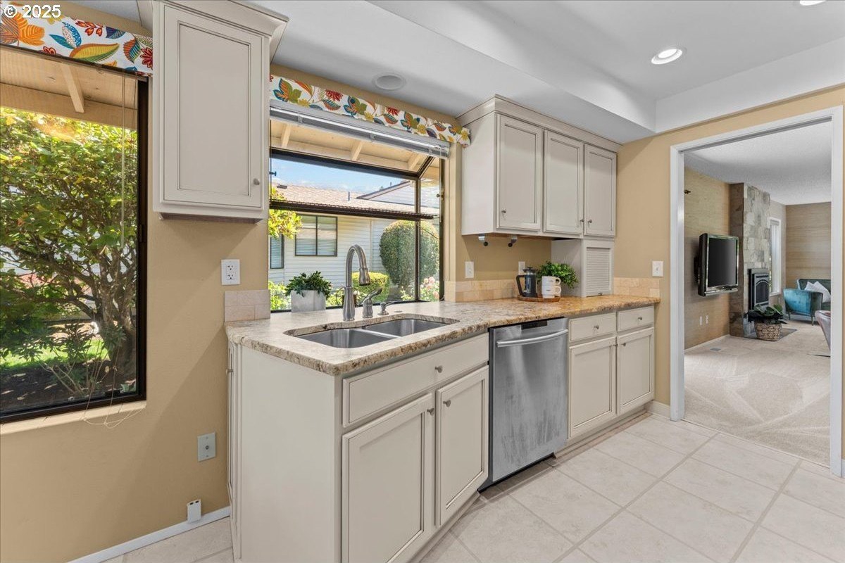Welcome home to this charming 1-level townhome on the golf course in the vibrant Summerfield 55+ community! Just the right size for entertaining & everyday living, this 2 bedroom, 2 bath updated beauty features an inviting living room w/large windows, fireplace w/gas insert & sliding glass door opening to a gracious paver back patio. Natural light filters in as you watch your favorite foursomes take their opening drive from the first tee. Make the patio space your outdoor oasis w/cushy furniture & colorful potted plants! The lush landscape, shade, & sweeping golf course view make it a perfect place to host a barbecue or to relax w/a book. The kitchen w/garden window, updated appliances, and granite countertops is located right between a cheery breakfast nook & a formal dining area. Transferring meals to either table is so convenient. The primary bedroom has an ensuite bath w/updated glass & tile shower & double closets. Bedroom #2 can be used as a guestroom, office, or sewing room. Its built-in cabinets & desk are perfect for storage of all your important documents and/or fun crafting items! The 2-car garage offers lots of cabinet storage, plus a pull down ladder to tuck seasonal items & totes out of sight in the overhead attic area. The refrigerator, upright freezer, & washer & dryer are included. Updates 2025: New Carpet, New Microwave. 2024: New Roof. 2017: New Primary Bath Shower. 2013: Kitchen & Bath Remodel. Residents become members of the Summerfield Clubhouse, featuring golf, tennis, pickleball, swimming, & a variety of social & fitness activities including book clubs, art classes, music classes, and so much more! HOA takes care of exterior maintenance, lawn care, & provides basic cable TV, allowing you more time to enjoy all Summerfield 55+ community amenities. Please ask for the complete list of HOA Amenities included! Located just steps away from the clubhouse, pool, & pro shop, & close to local dining & shopping. Carefree retirement living at its best!
