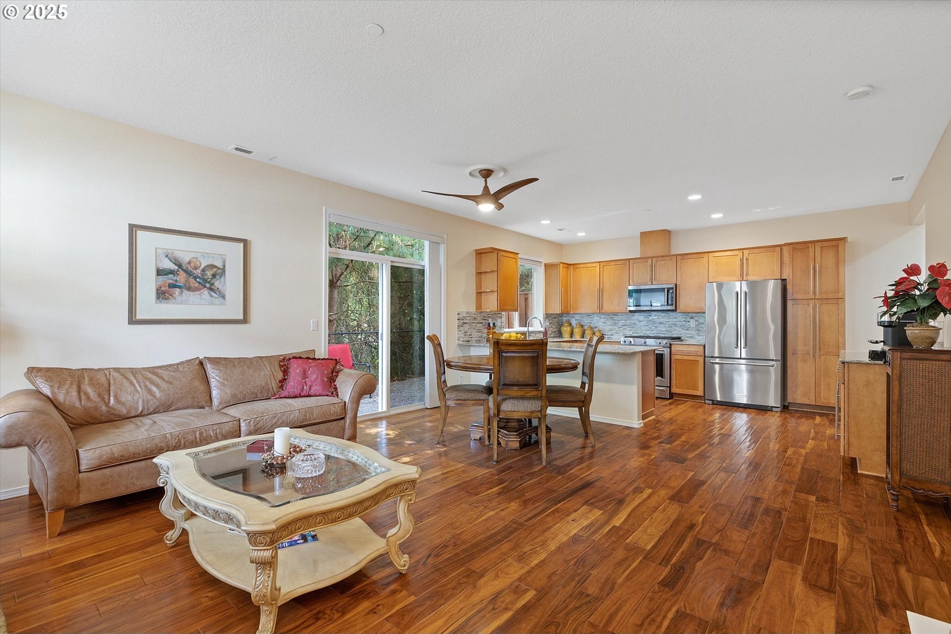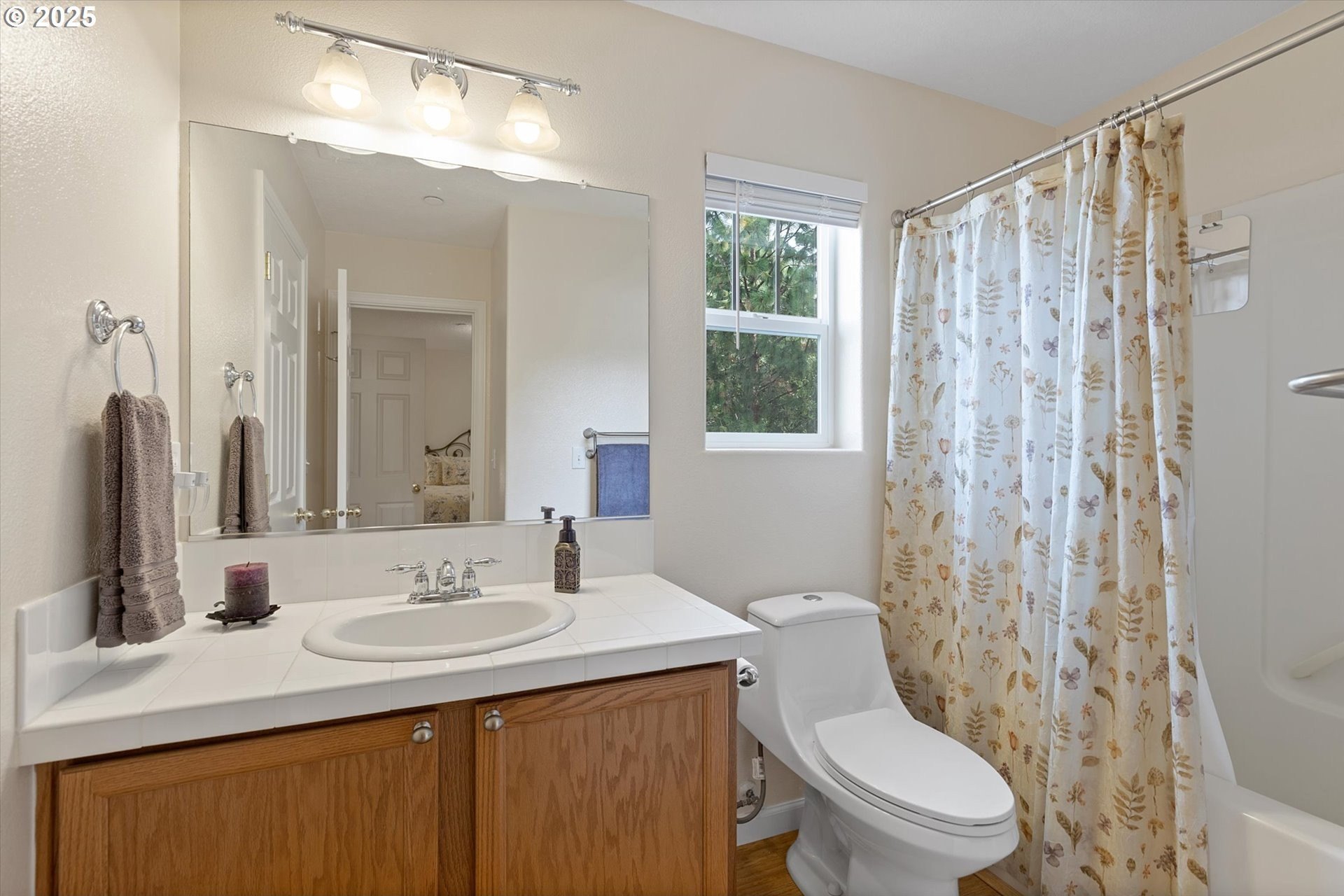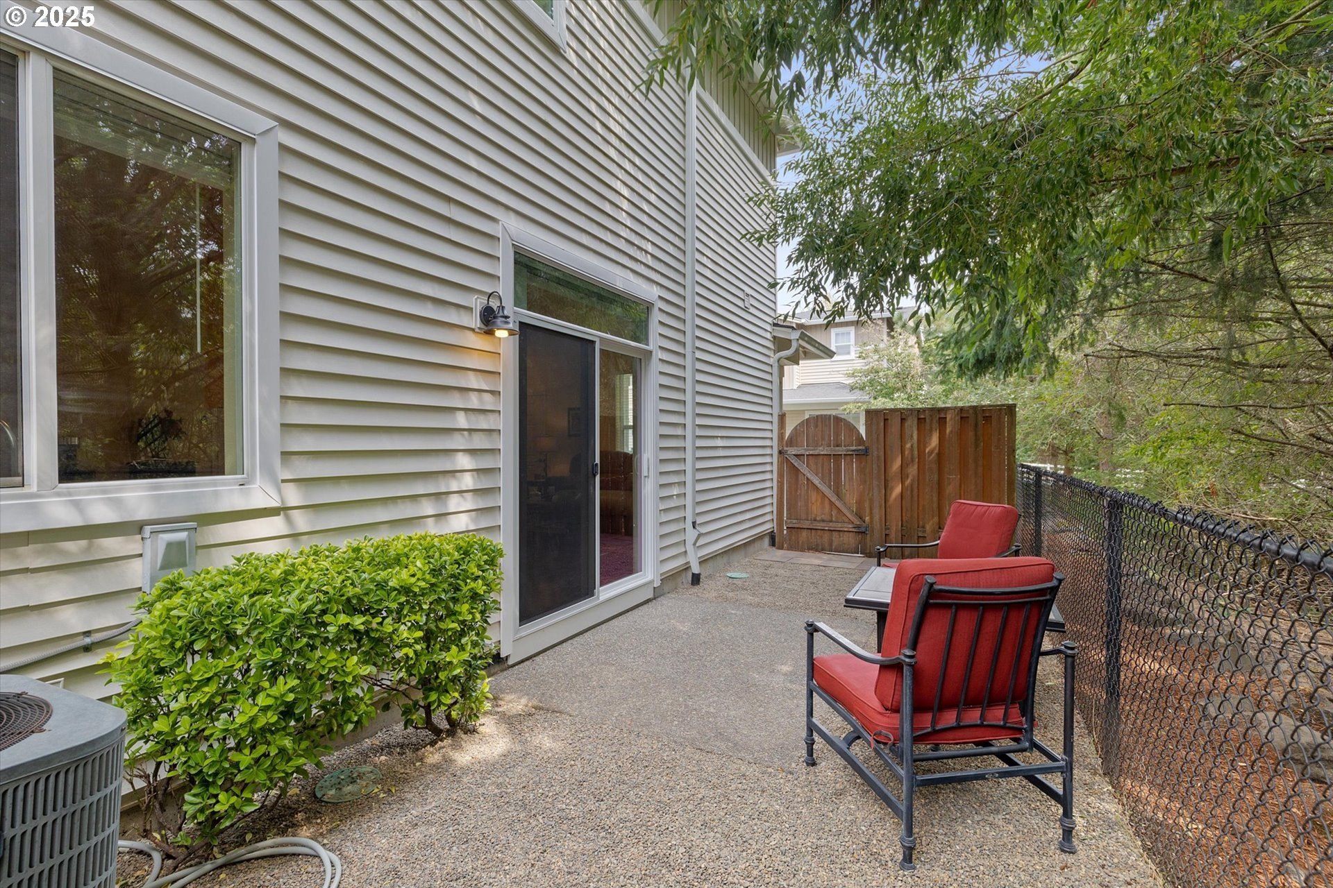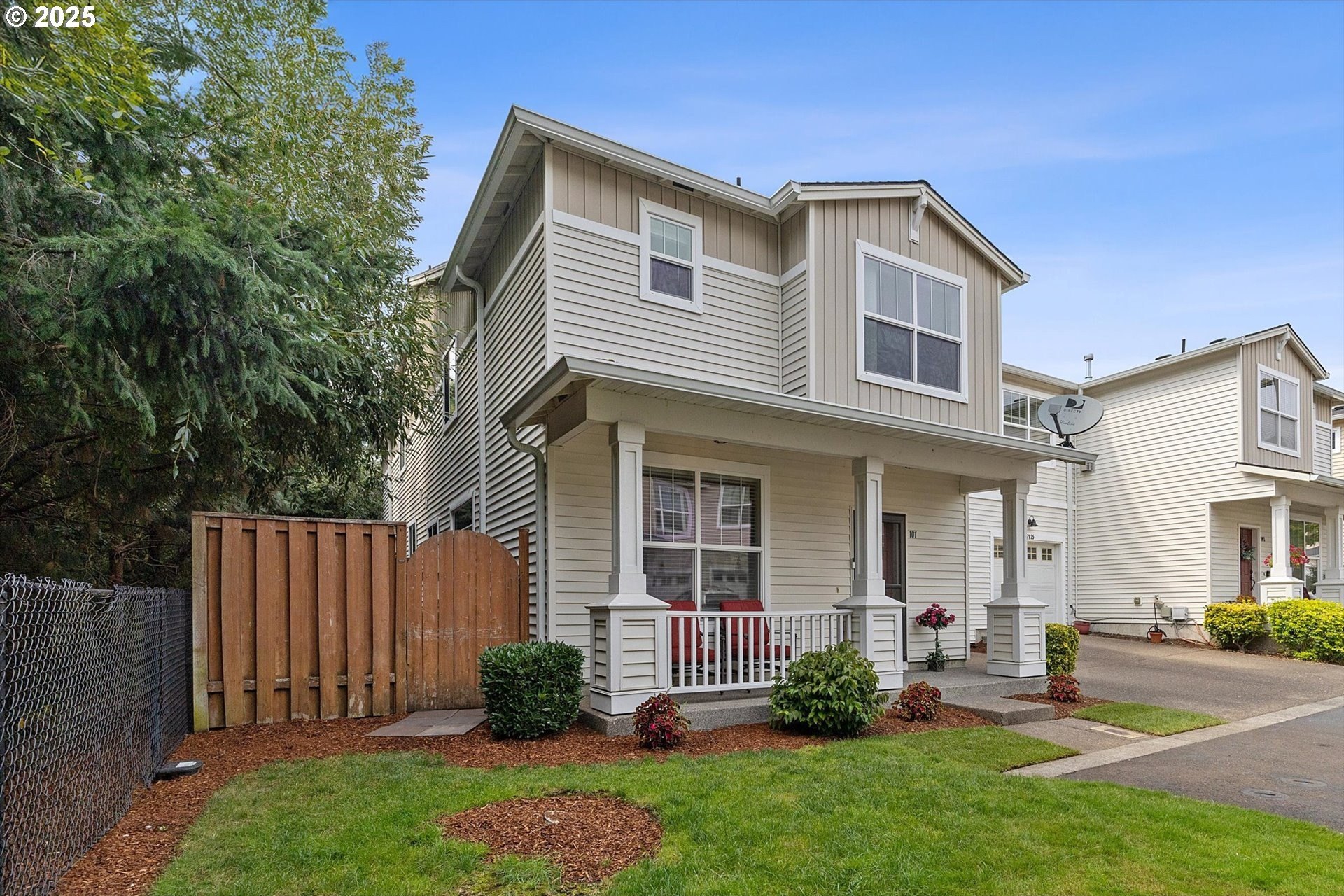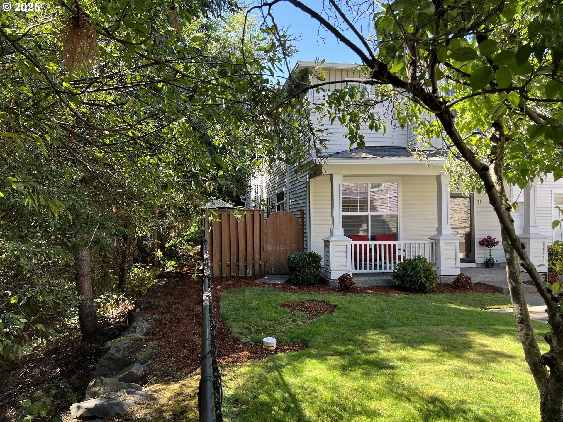 Meticulously remodeled end unit condo in desirable Progress Ridge area. Next to a beautiful green-space with a creek on a dead end street. Situated in prime location in the Orchard Glen neighborhood near the community park with a playground and basketball court. The main level flows seamlessly from the entry boasting high ceilings to the open concept living with a cozy gas fireplace. Dining area has slider to patio and connects to the spacious remodeled kitchen with an eat bar, beautiful granite counters, soft close cabinets and drawers, plus stainless steel kitchen aid appliances. Nicely updated half bath tucked away for privacy. Primary suite has walk-in closet, oversized vanity, shower/tub combo, and separate toilet room. Upstairs laundry room conveniently next to bedrooms and full bathroom. Bamboo floors upstairs. Plenty of storage and closet space throughout each floor and in garage. Private and serene back yard is fenced adjoining green space for added privacy! Perfect for entertaining and relaxing. HOA maintains all common areas, ground maintenance, front and back landscaping, and exterior maintenance. All kitchen appliances, extra freezer in garage and washer and dryer are included. See 3D Tour! New interior paint, finished garage, New blinds, new slider, Near walking paths, lots of great restaurants, shopping, entertainment and so many more amenities! See attached list of updates.