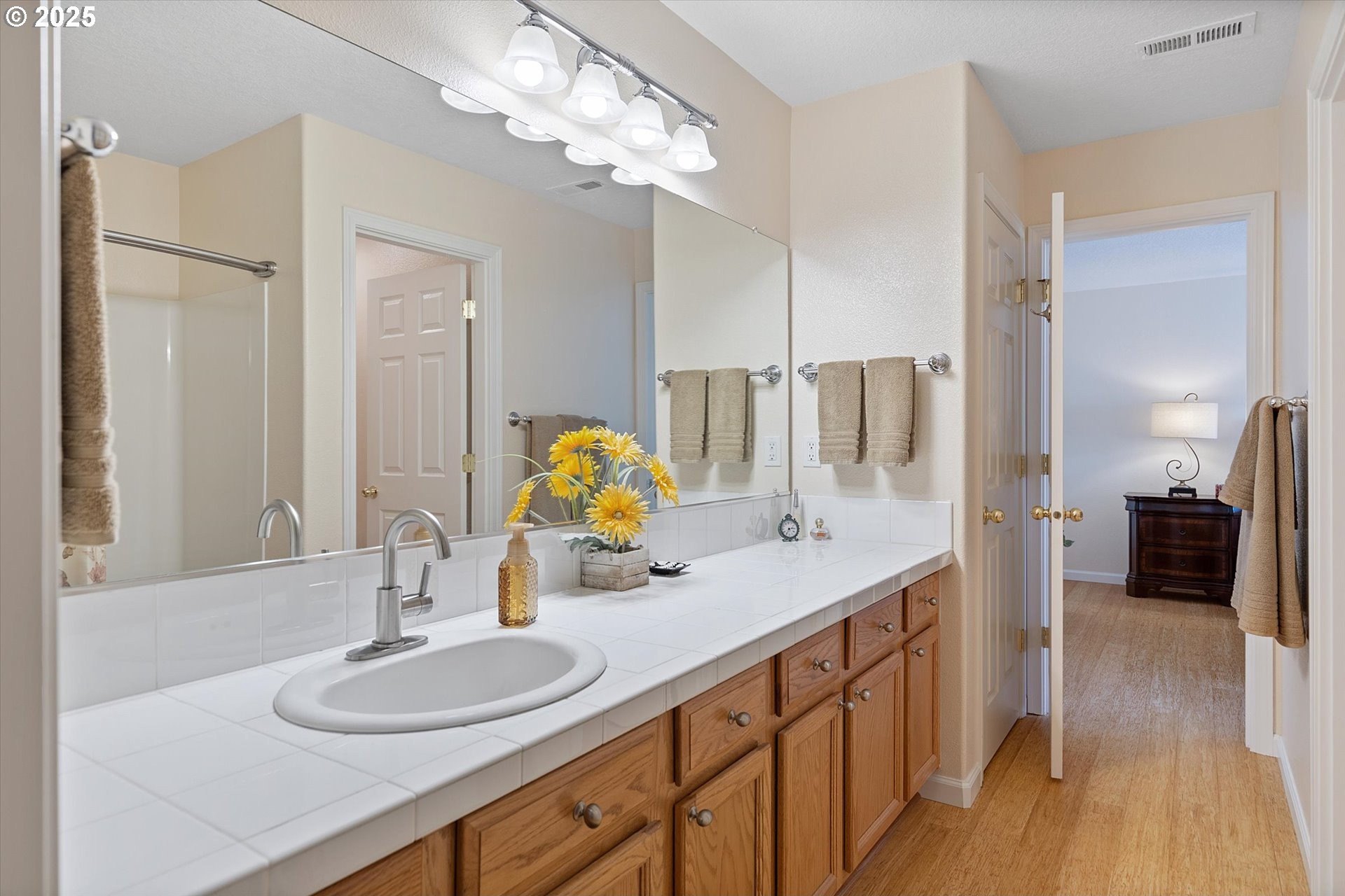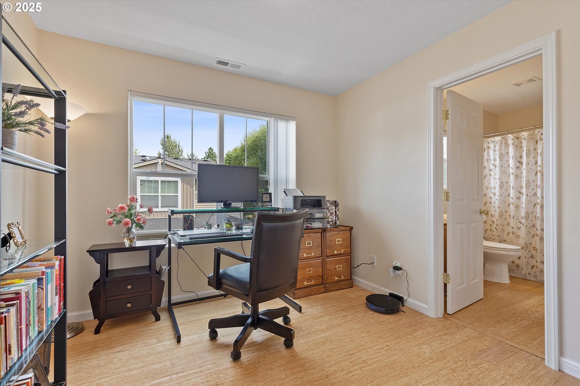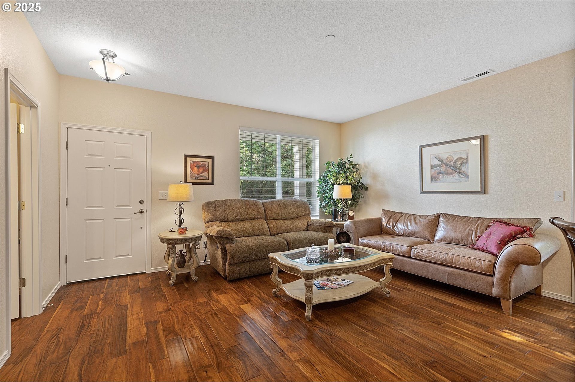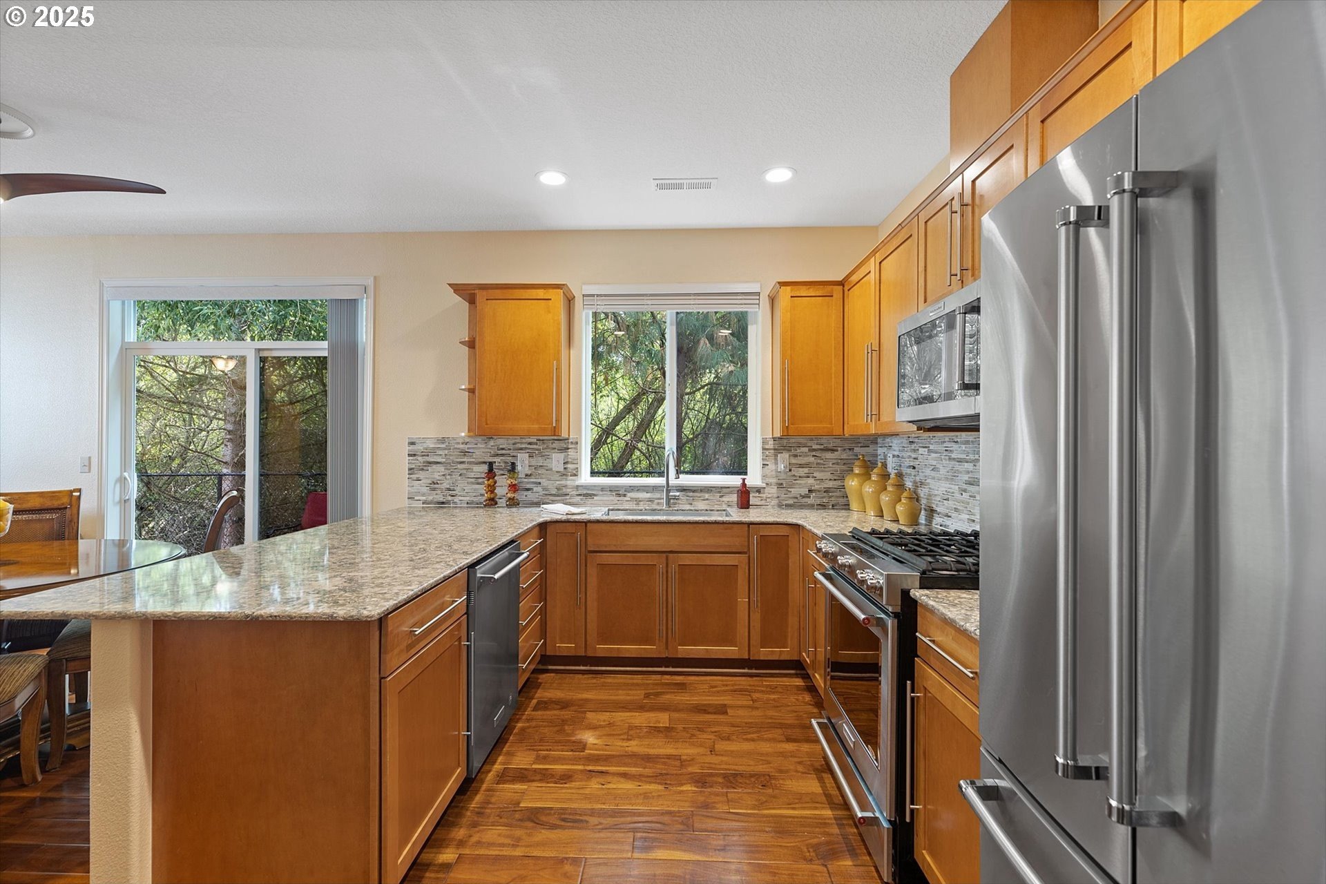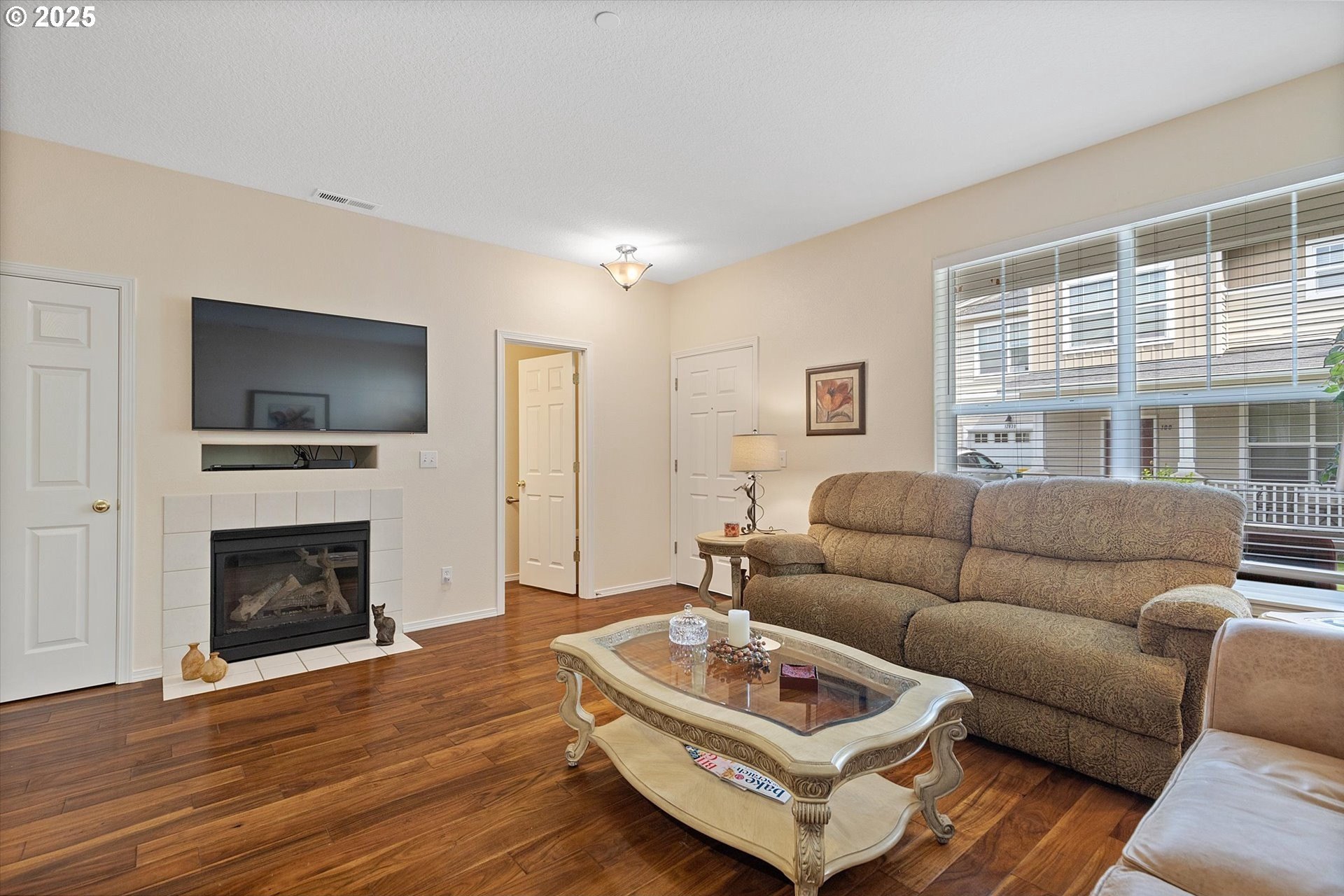 Meticulously remodeled end unit condo in desirable Progress Ridge area. Next to a beautiful green-space with a creek on a dead end street. Situated in prime location in the Orchard Glen neighborhood near the community park with a playground and basketball court. The main level flows seamlessly from the entry boasting high ceilings to the open concept living with a cozy gas fireplace. Dining area has slider to patio and connects to the spacious remodeled kitchen with an eat bar, beautiful granite counters, soft close cabinets and drawers, plus stainless steel kitchen aid appliances. Nicely updated half bath tucked away for privacy. Primary suite has walk-in closet, oversized vanity, shower/tub combo, and separate toilet room. Upstairs laundry room conveniently next to bedrooms and full bathroom. Bamboo floors upstairs. Plenty of storage and closet space throughout each floor and in garage. Private and serene back yard is fenced adjoining green space for added privacy! Perfect for entertaining and relaxing. HOA maintains all common areas, ground maintenance, front and back landscaping, and exterior maintenance. All kitchen appliances, extra freezer in garage and washer and dryer are included. See 3D Tour! New interior paint, finished garage, New blinds, new slider, Near walking paths, lots of great restaurants, shopping, entertainment and so many more amenities! See attached list of updates.