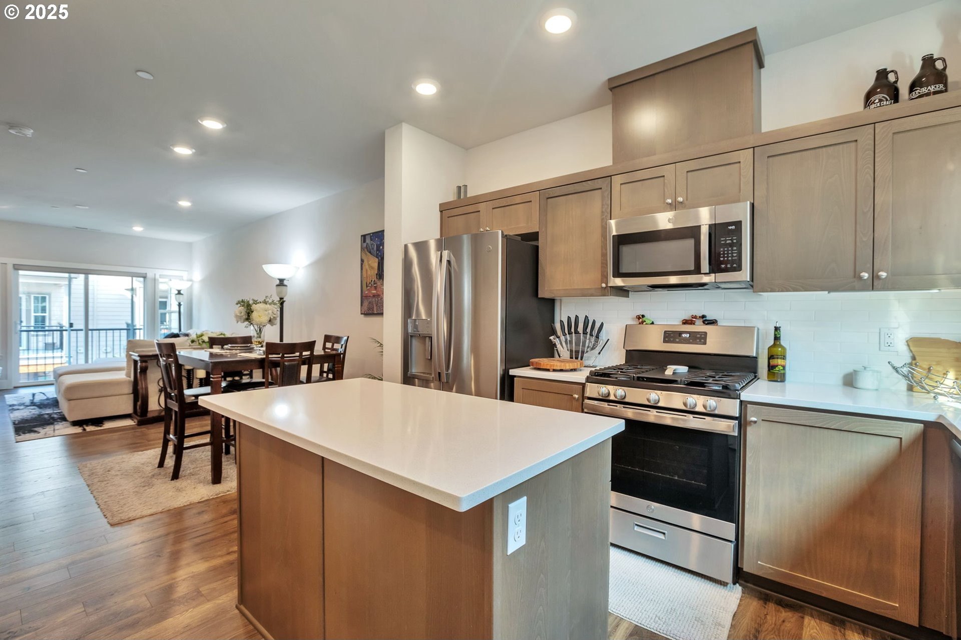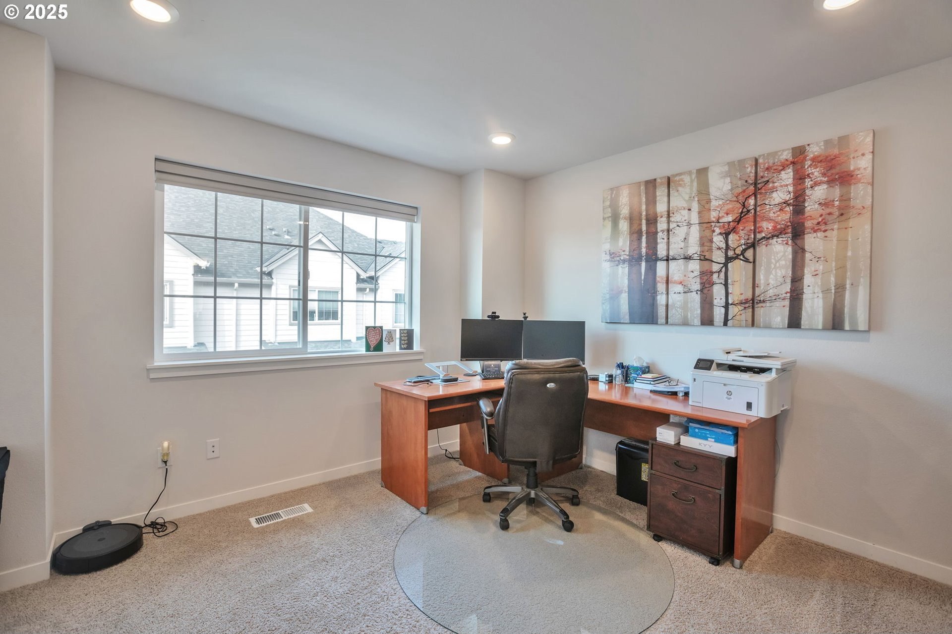 Welcome to this meticulously maintained townhome in North Bethany! For sale by the original owner, this classic floorpan offers modern comforts and thoughtful upgrades throughout. Featuring 2 bedrooms, 2.5 baths and a versatile ground-floor den/studio with a half bath. On the main level, enjoy a spacious open-concept layout with high ceilings, living room, dining area and island kitchen. Sleek quartz countertops are featured throughout the kitchen and both full bathrooms. All appliances are included along with an undermount water filtration system.The sliding glass door leads to a covered balcony. The upper level has two generous sized bedrooms, each with its’ own ensuite bathroom. Upgrades include Window Coverings: Stylish Hunter Douglas Sonnette™ Cellular Roller Shades installed throughout the home for enhanced light control, insulation, and a modern aesthetic.Premium GE Energy Star Refrigerator: Sleek, fingerprint-resistant French door model featuring a hands-free auto-fill water dispenser—combining energy efficiency with convenience. Professional Storage Solutions: Heavy-duty metal storage racks expertly installed to maximize organization and make the most of available space. Versatile Bonus Room: flexible space complete with a half bathroom—ideal for a home office, gym, or creative studio. Don't miss this incredible opportunity to purchase!