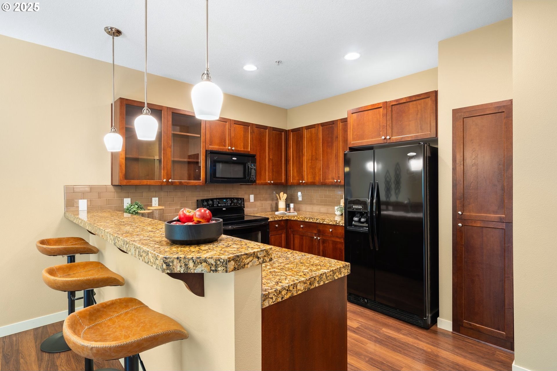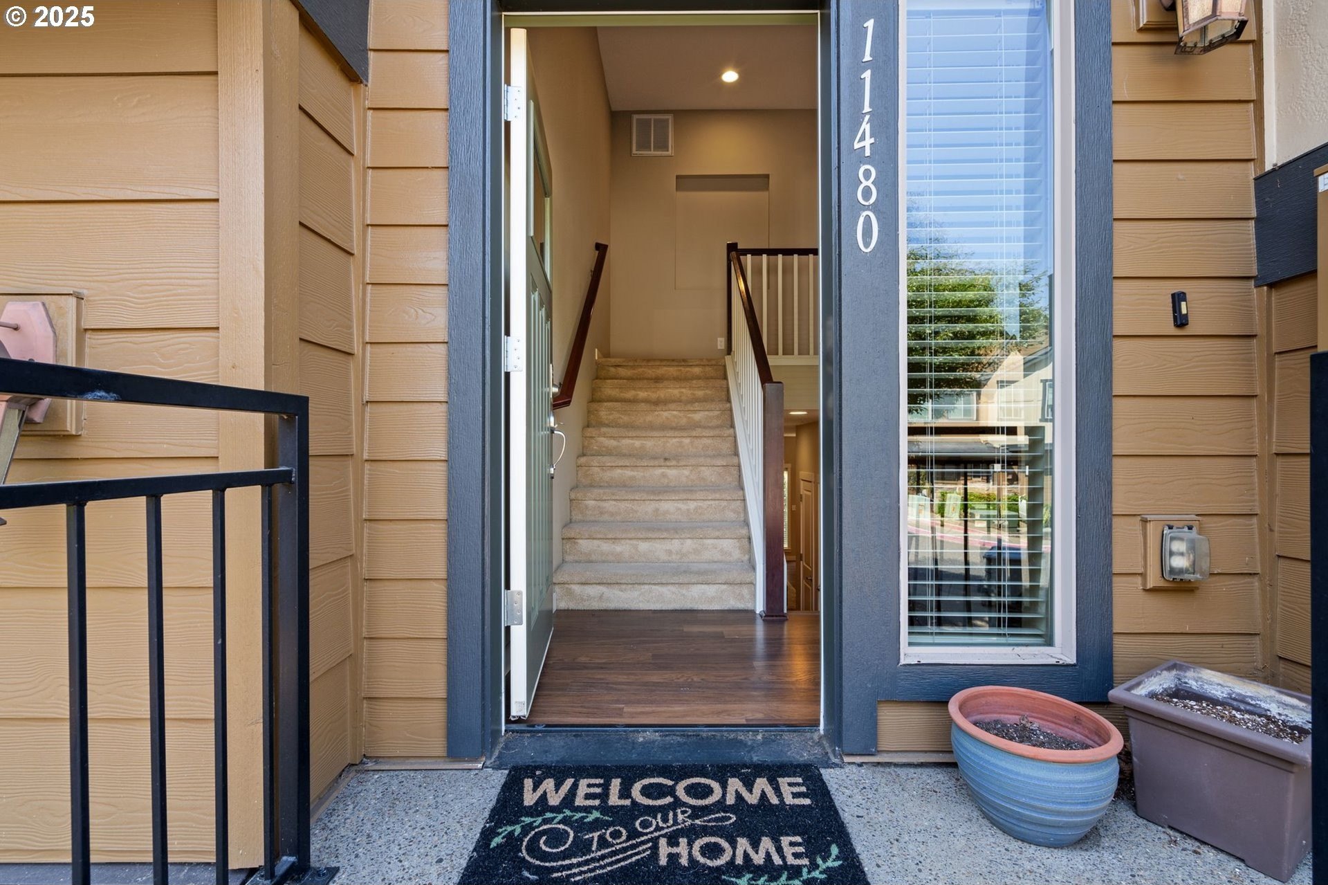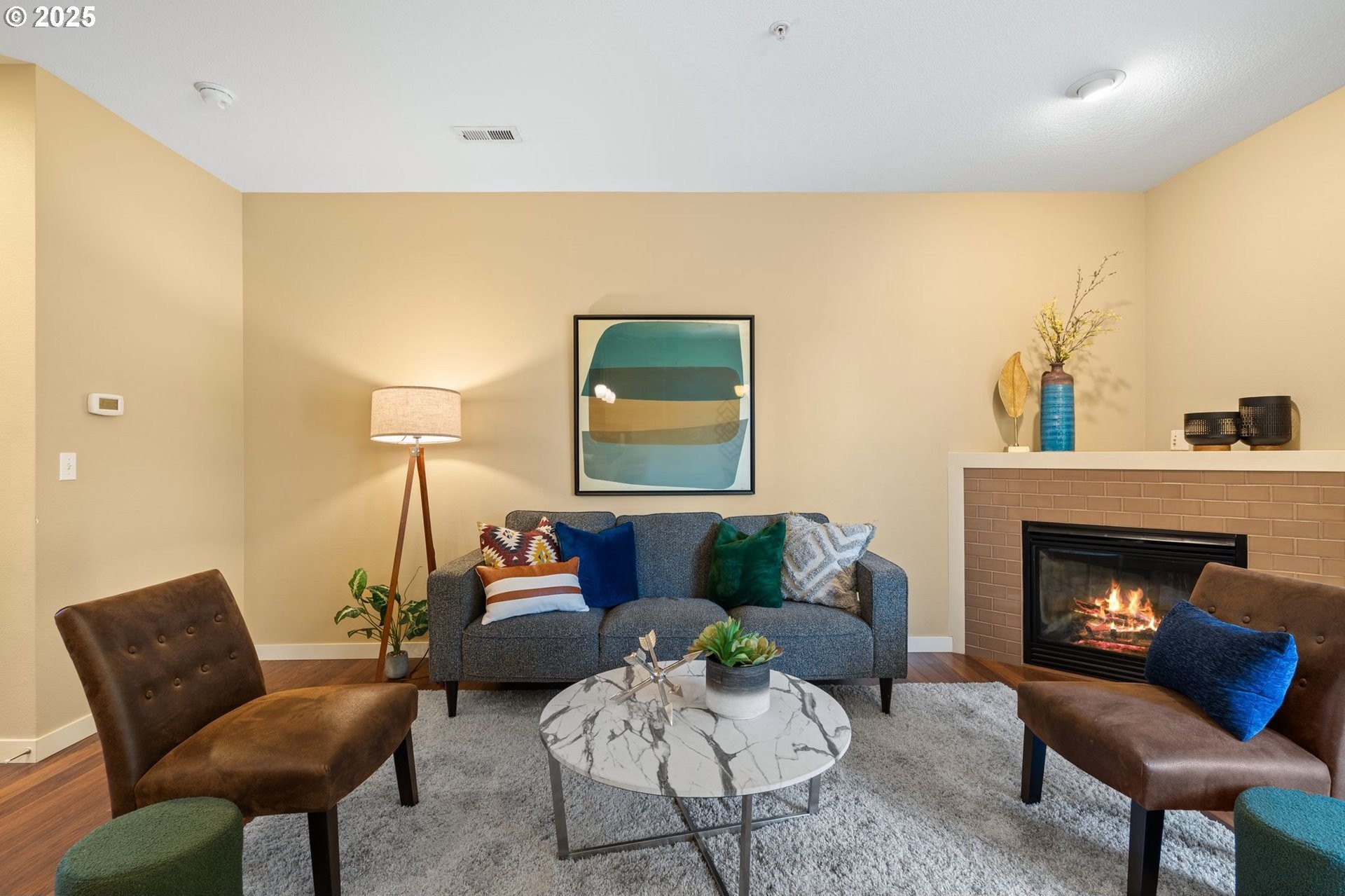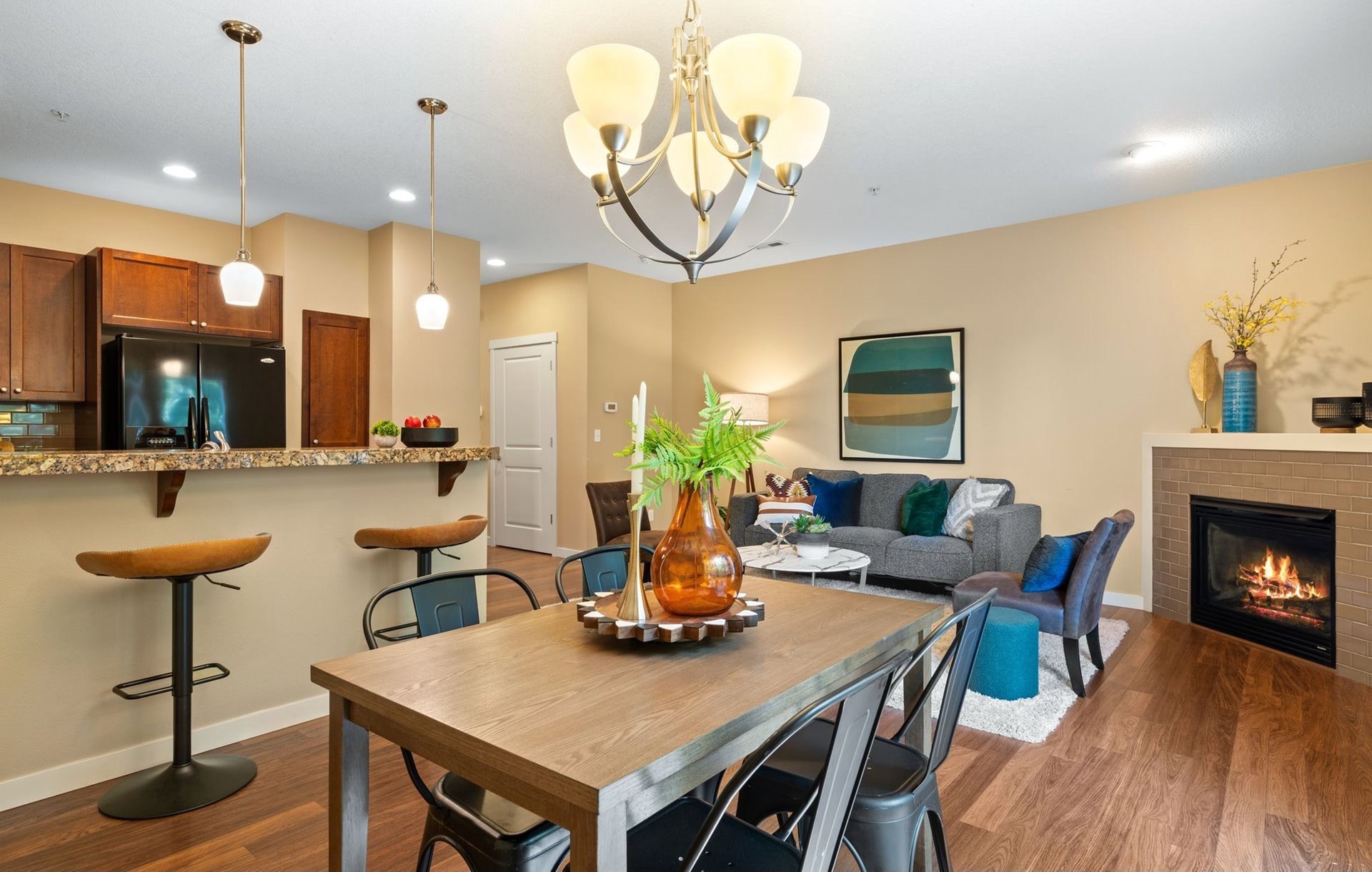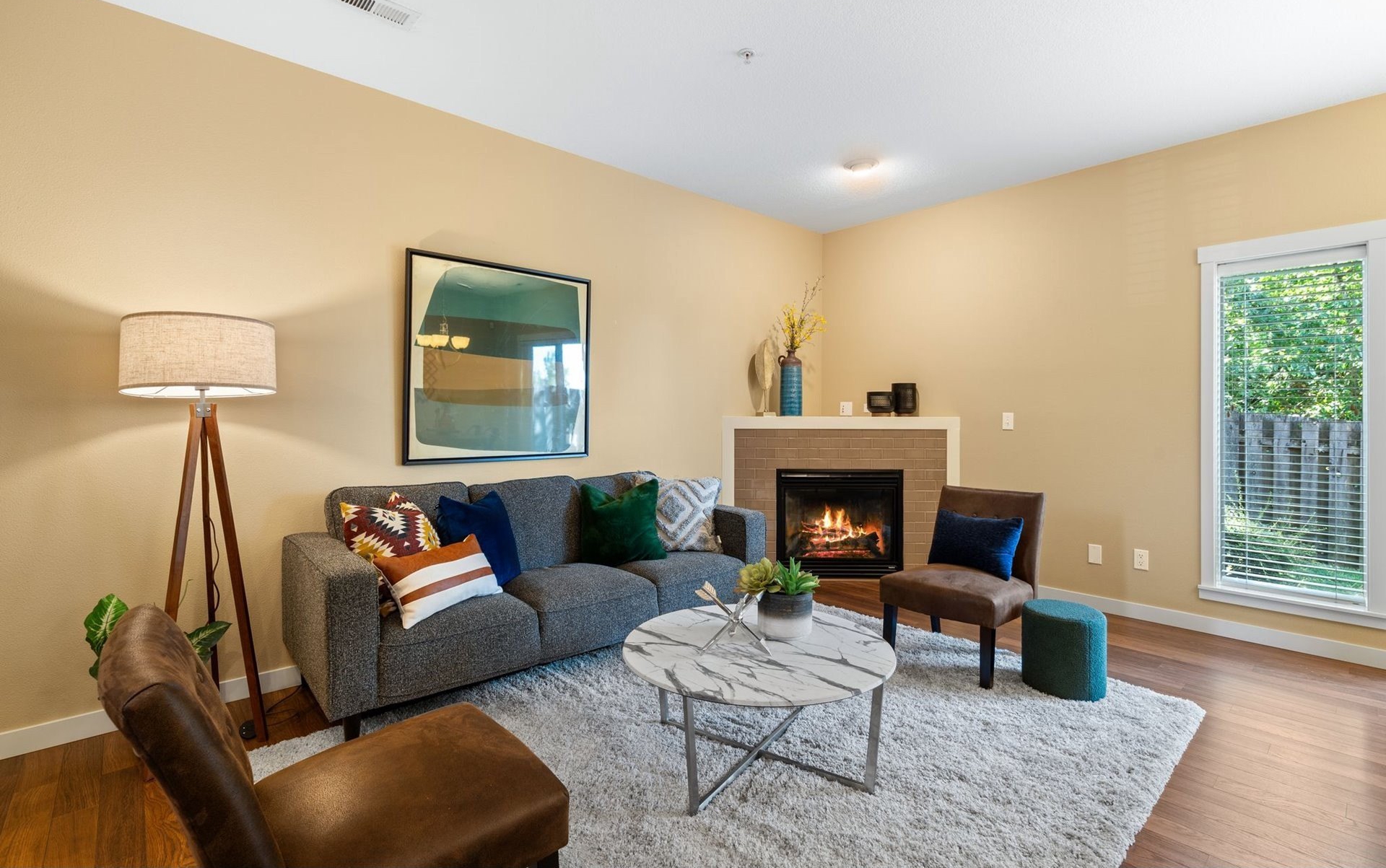 Calling All Golf Lovers – Impeccable Happy Valley Townhome! This beautifully designed 1,430 sq. ft. home offers the perfect blend of style, comfort, and location. Next door to the serene trees along Eagle Landing Golf Course, it’s a golfer’s dream. The open-concept main level features a spacious living room with a cozy gas fireplace, dining area, and a gorgeous kitchen with granite countertops, black appliances, a large eating bar, and abundant cabinetry. Dark wide-plank engineered hardwood floors and designer-selected finishes elevate the space, create an airy, inviting feel. Upstairs, you’ll find three bedrooms, including a generous primary suite with a private bath and walk-in shower, plus convenient upstairs laundry. Step outside to your private, fenced backyard with patio—perfect for morning coffee or evening gatherings.Additional highlights include a one-car attached garage, highly efficient HVAC system, and HOA-covered exterior maintenance. The HOA at Eagle Landing covers front and back landscaping, exterior paint, common area upkeep, and access to golf course amenities. Located in one of Happy Valley’s most livable communities—just steps from Mt. Scott Elementary and minutes to I-205, Costco, Walmart, and local parks—this home is truly move-in ready. Timeless design meets everyday function in this one-of-a-kind Happy Valley gem. Don’t miss your chance—schedule your private showing today!