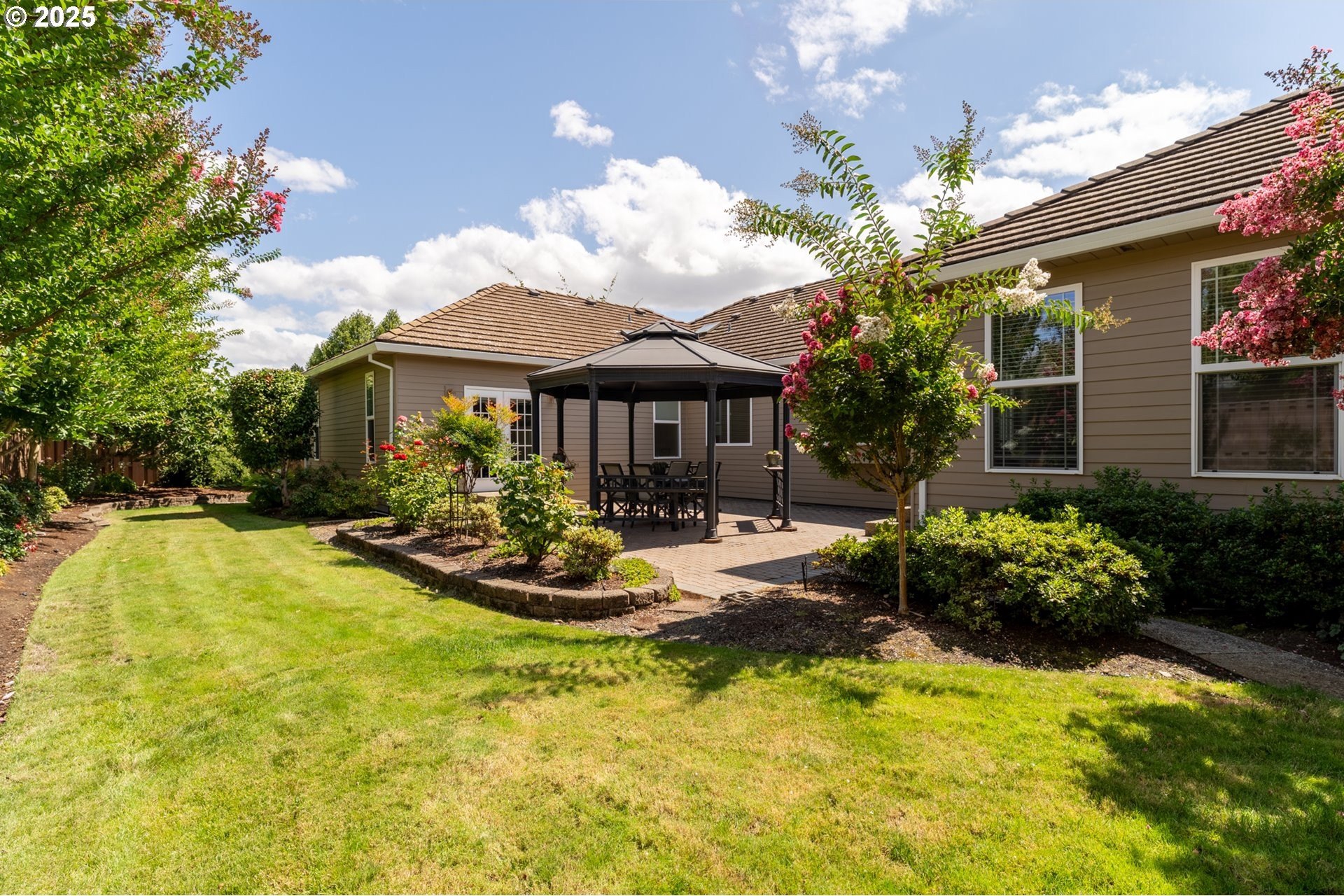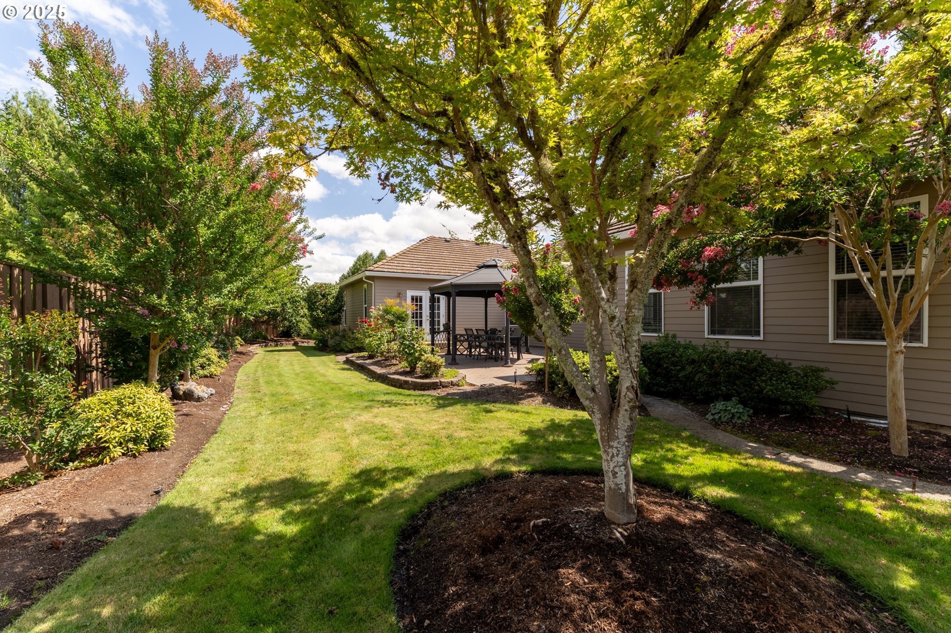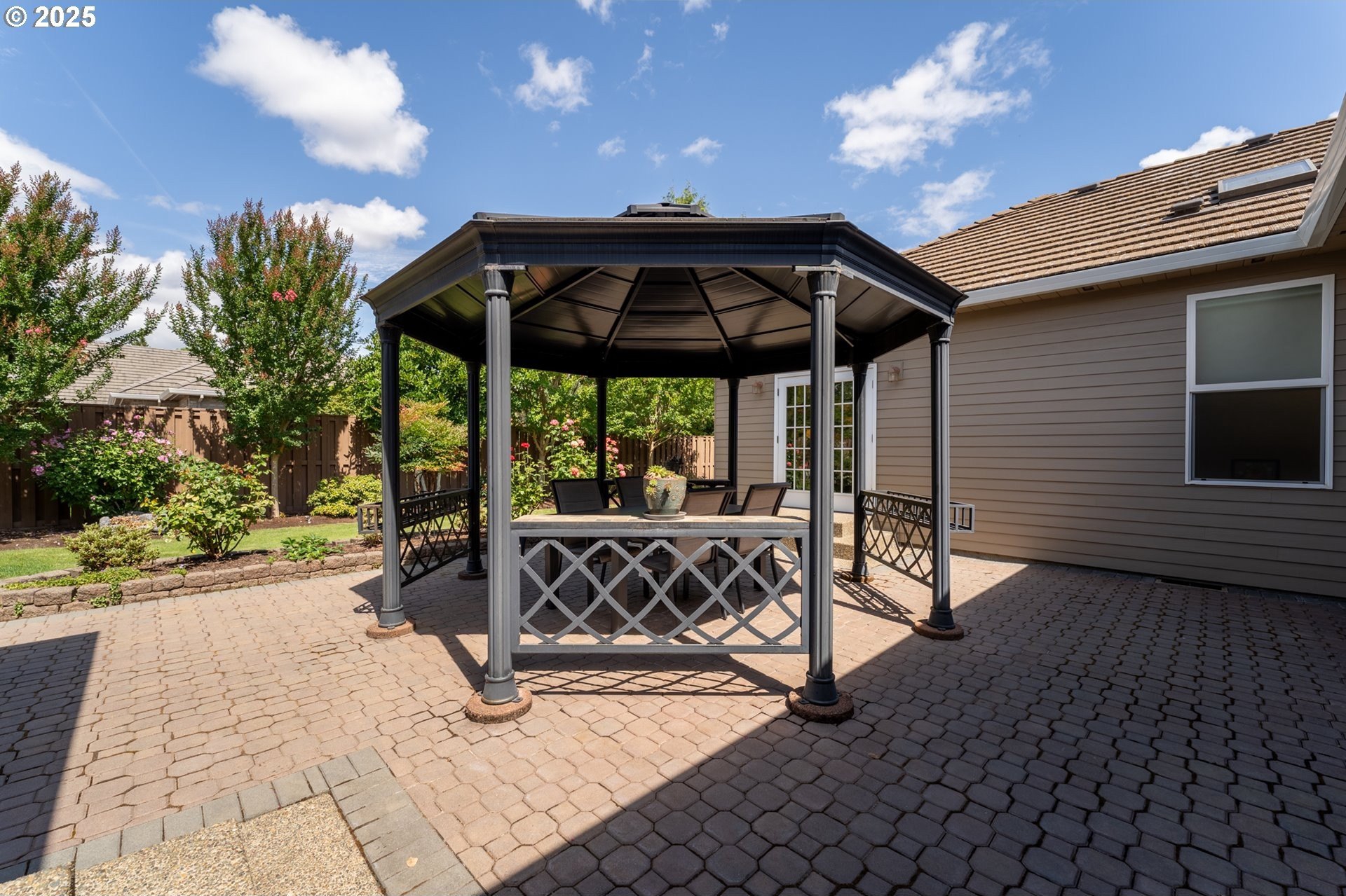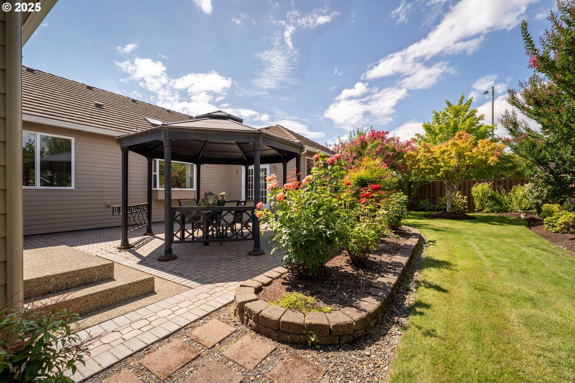 OPEN HOUSE - SATURDAY (AUG 30th) 11 -2. Single-level living soars to new heights in this elegant corner lot home nestled in the highly sought after Michelbook 6th Addition. This custom built home with its open floor plan, vaulted cielings and abundance of windows in the main living spaces welcomes you in. A gas fireplace and rich hardwood oak floors promise comfort, as does the kitchen with updated cooktop, cherry cabinets, granite counters, spacious island, and walk-in pantry.The primary suite is a sanctuary only steps away from the rest of the home with sunken jetted tub, walk-in closet, and its own entrance to the backyard. Twoadditional bedrooms as well as an office/flex space offer room for living your best life.The backyard delights with a private courtyard, gazebo, and garden areas perfect for a quiet afternoon with a book or a party with your friends. Fully fenced and beautifully landscaped, the opportunities for outdoor living abound. The expansive three-car garage allows space for a workshop, golf cart, or extra storage. And with a newsump pump, all of the practicalities are covered. Whatever you are looking for—comfort, beautiful entertaining spaces, an escape from the world—this home will provide. Lovingly maintained and thoughtfully updated, this home is the oasis you'vebeen looking for.