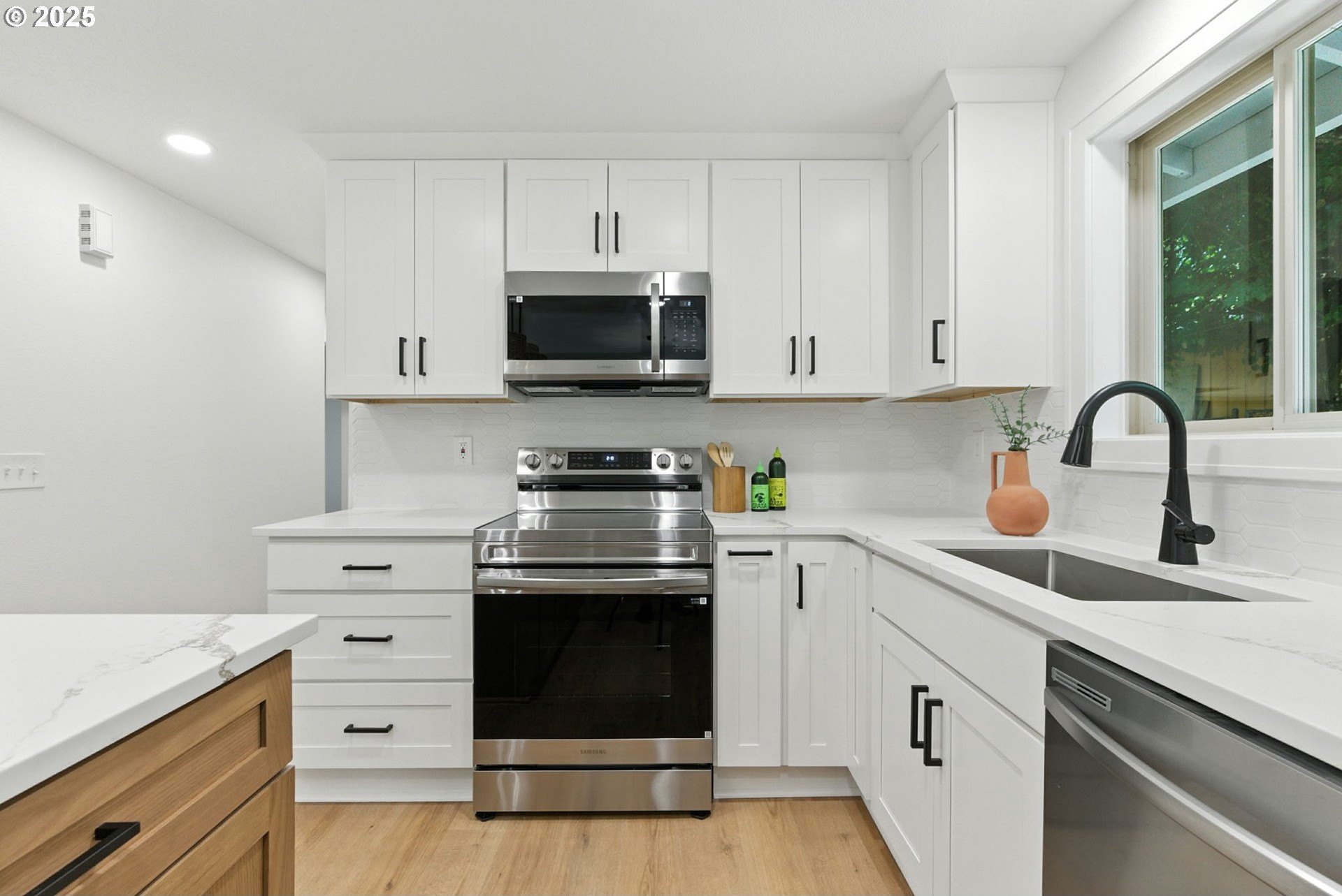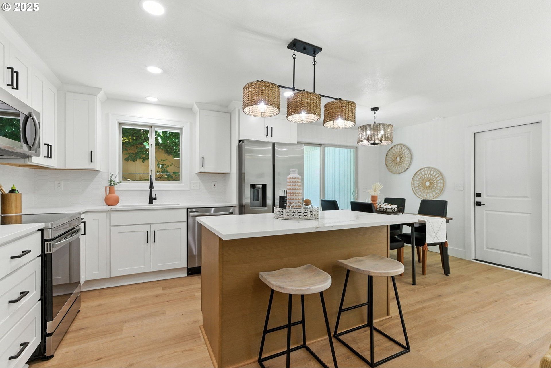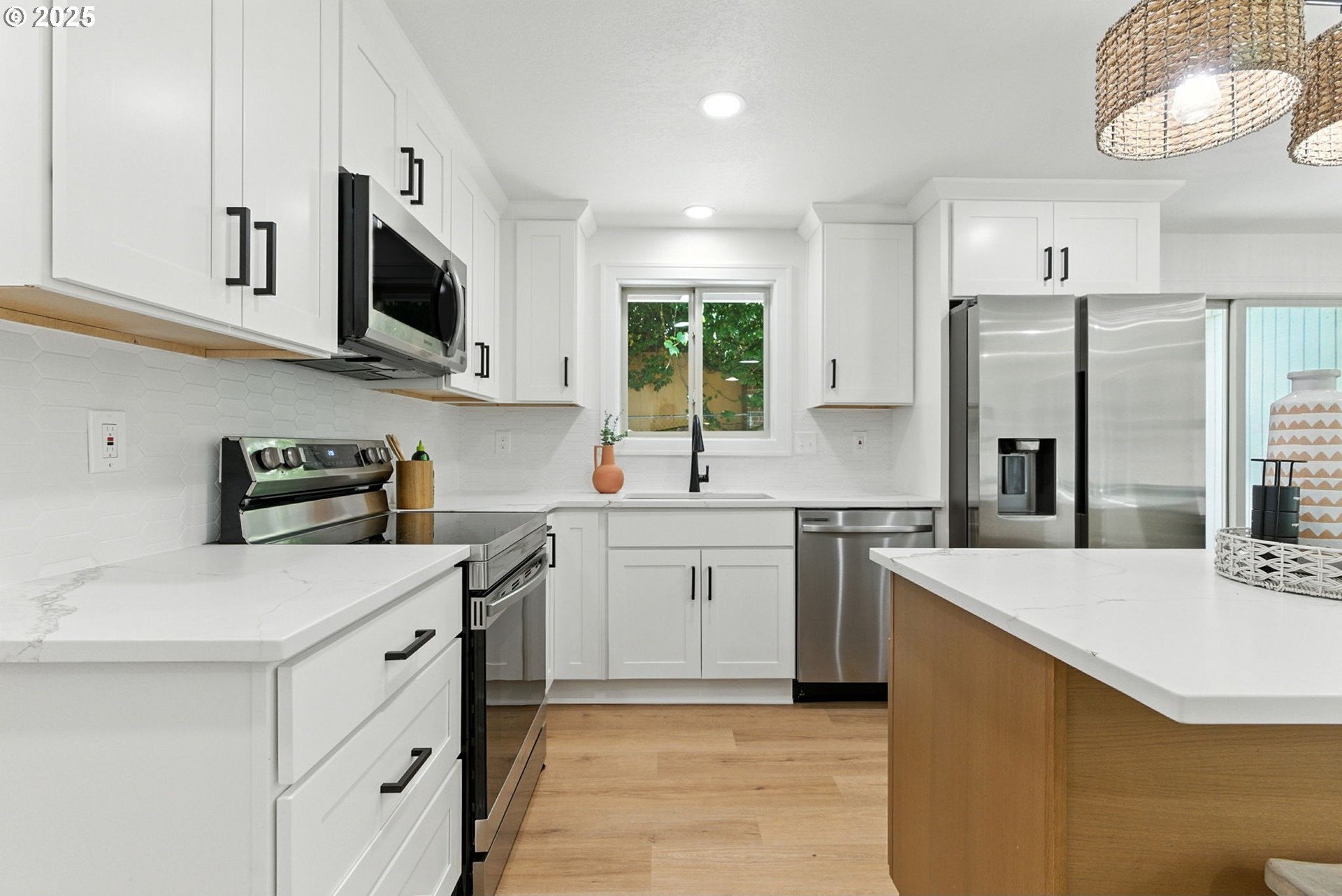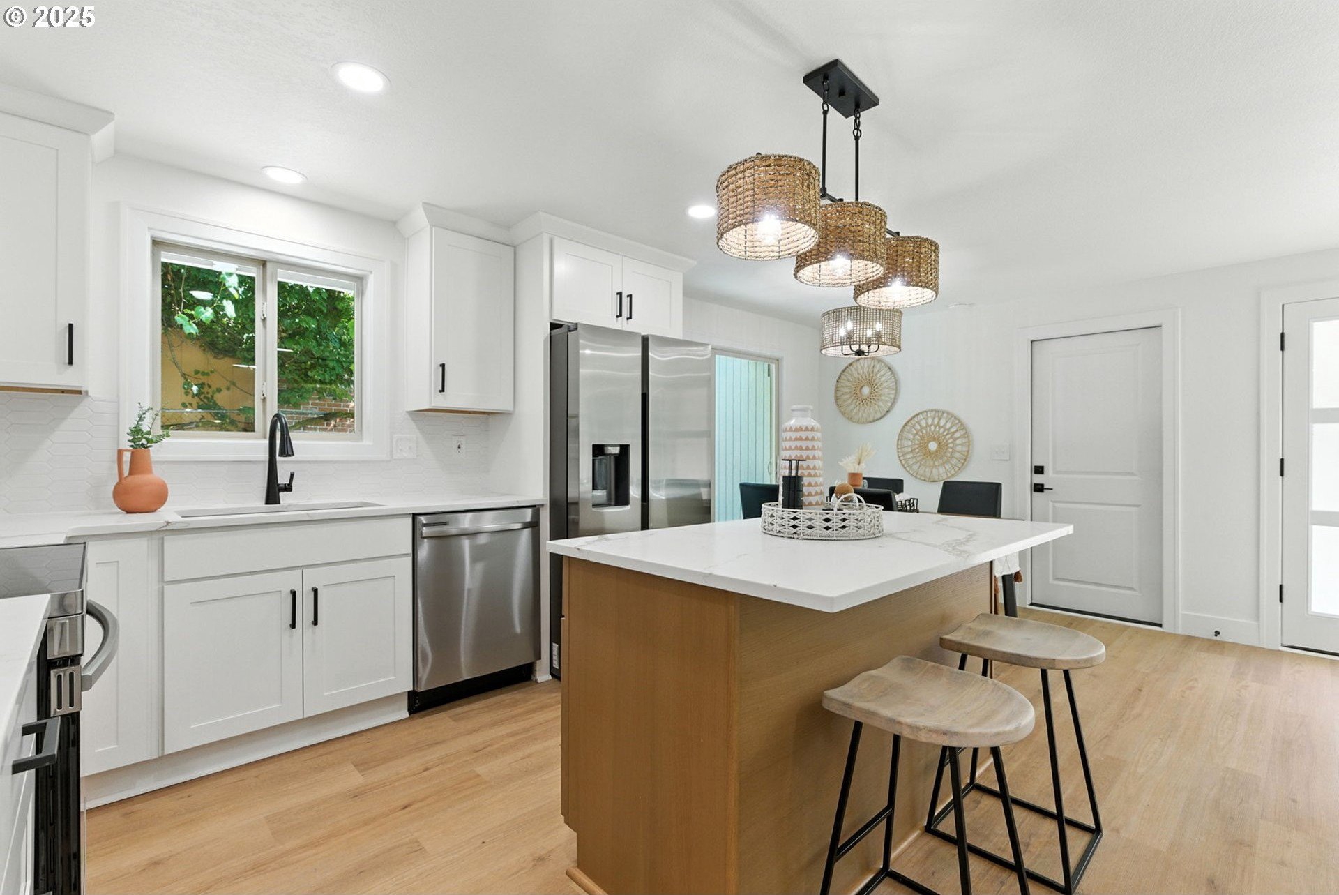 *Open House* Saturday, 08/30 | 12-2 p.m. & Sunday, 08/31 | 12-2 p.m. Charming remodeled 3 bed, 1 bath ranch in Milwaukie with an open-concept kitchen and family room. The kitchen features an island, quartz countertops, and stainless steel appliances—perfect for everyday living and entertaining. Step outside to a spacious yard with fig, prune, and apple trees, plus grapes and an English garden vibe. Just steps from the Willamette River, nature trails, and parks—ideal for kayaking or paddleboarding. Windows, and gutters updated in 2009, hot water heater replaced in 2019. All this just minutes to Sellwood and PDX! [Home Energy Score = 10. HES Report at https://rpt.greenbuildingregistry.com/hes/OR10237444]