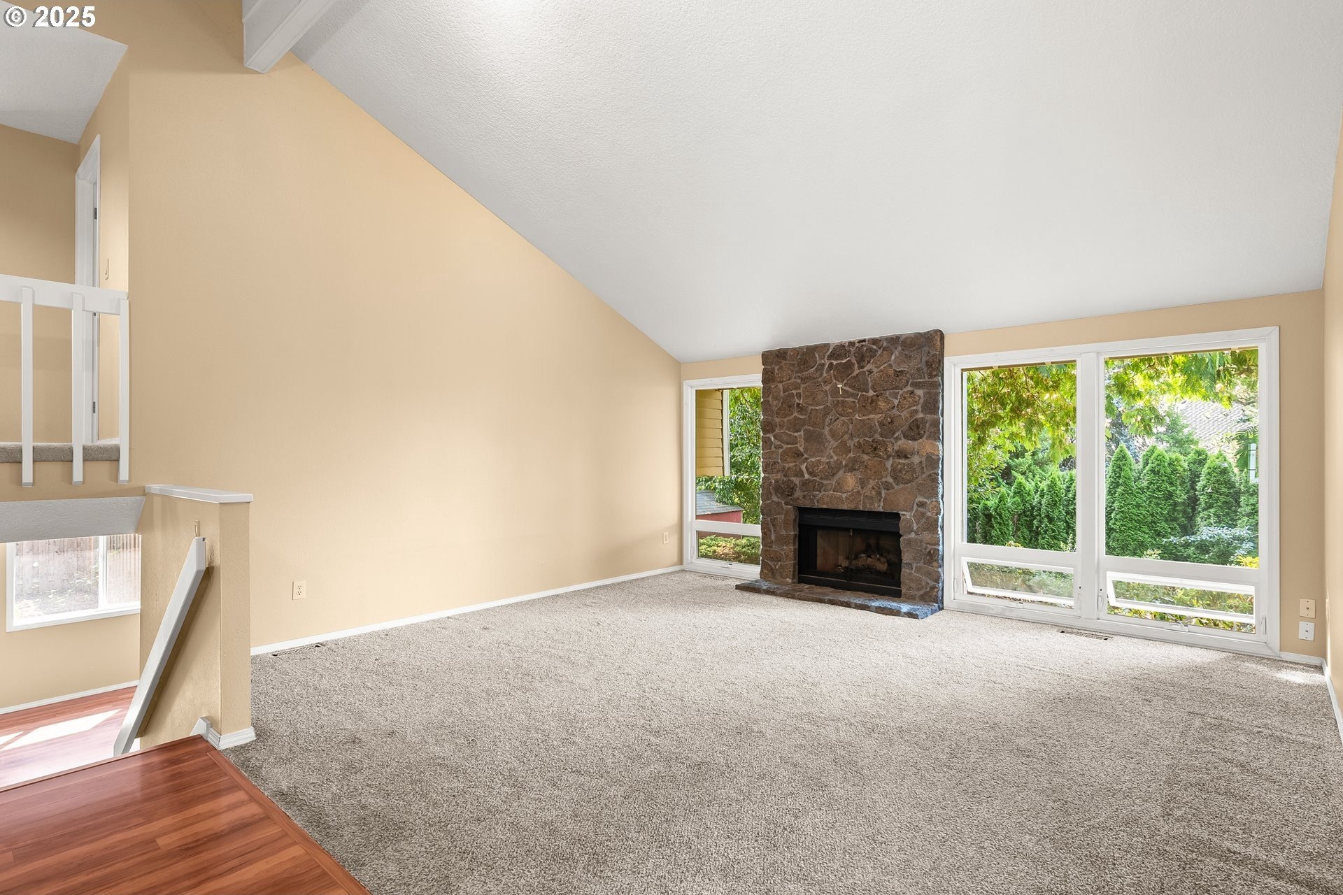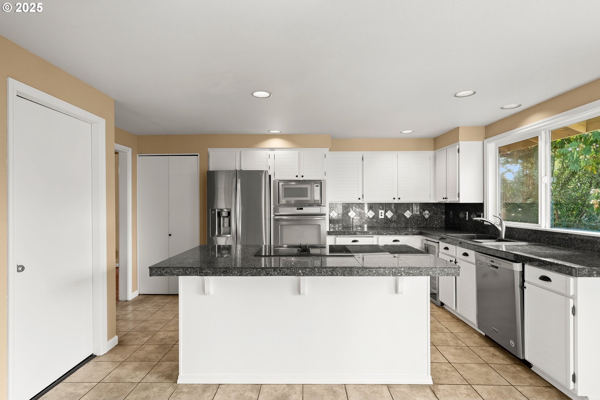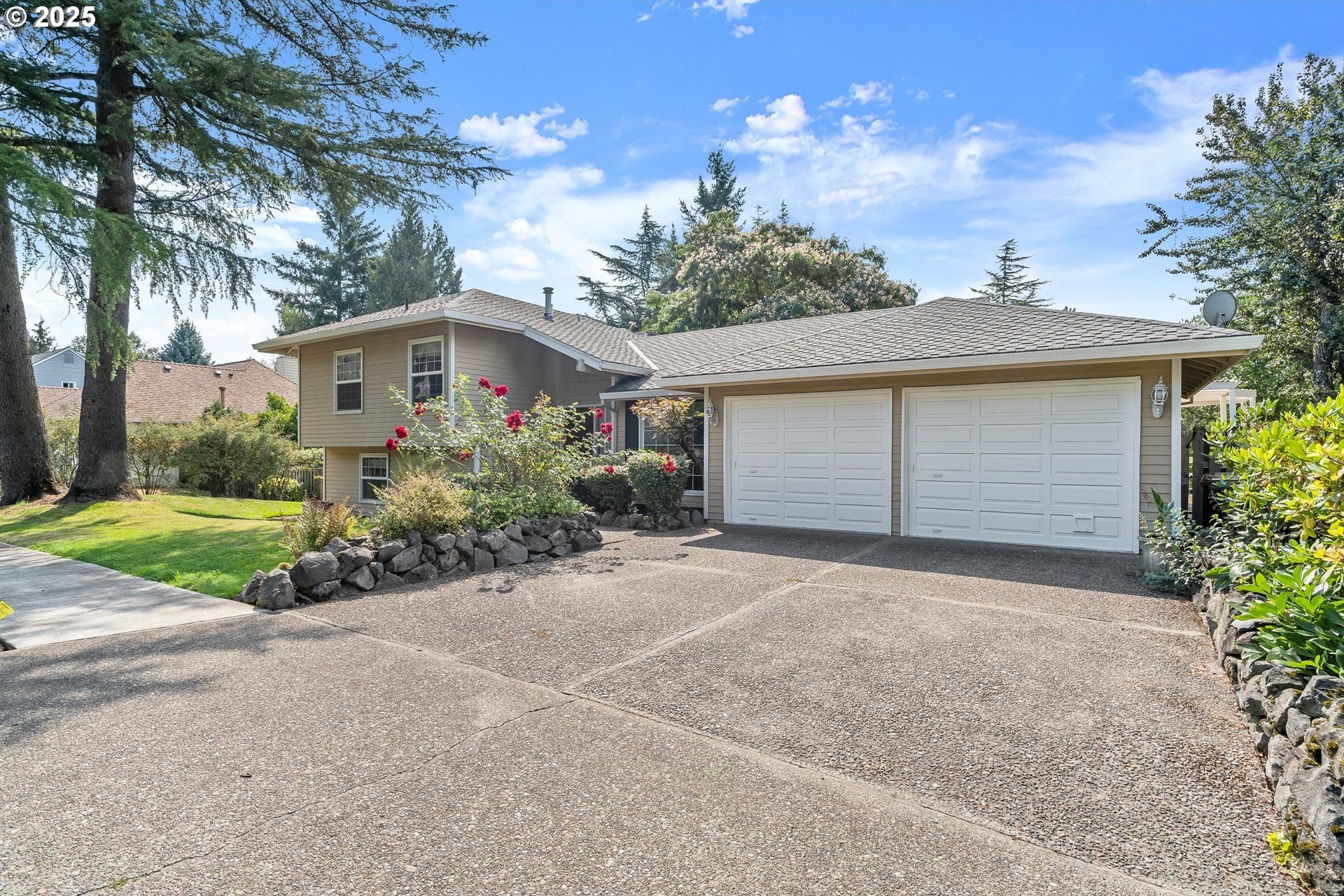 This beautifully maintained split-tri-level home is situated on a spacious 10,100 sq. ft. lot, offering privacy, functionality, and ample room to entertain. The expansive fenced backyard is a true highlight, featuring a large grassy area, mature landscaping, and a wood-burning freestanding fire pit. The main floor offers an open and welcoming design with separate living, sleeping, and entertaining areas. The vaulted living room is filled with natural light from floor-to-ceiling windows centered around a striking stone surround wood-burning fireplace. The adjacent dining room seamlessly flows into the kitchen, which features a large cook island, granite countertops, stainless steel appliances, a wine refrigerator, and a cozy eating area with a ceiling fan. French doors from the kitchen lead directly to the covered deck, creating an effortless indoor-outdoor connection. Upstairs, the primary suite features three closets, plus an ensuite bathroom boasting natural light from a skylight and a walk-in shower. Two additional bedrooms and a full bathroom complete the upper level. The lower level is ideal for entertaining or multi-generational living, featuring a spacious family room, a second fireplace, and a wet bar. French doors open to the backyard, enhancing the home’s flow for gatherings. A fourth bedroom, a full bathroom, and a dedicated laundry room complete this level. Additional updates include the replacement of windows in the living room, primary bedroom, and lower-level entertaining area. The split-tri-level layout ensures privacy and functionality, with distinct living, sleeping, and entertaining areas. Located in the highly coveted Westlake community, this home is surrounded by wide tree-lined streets and offers easy access to Westlake Park, Mt. Park hiking trails, shopping, dining, and major highways. Served by the award-winning Lake Oswego School District.