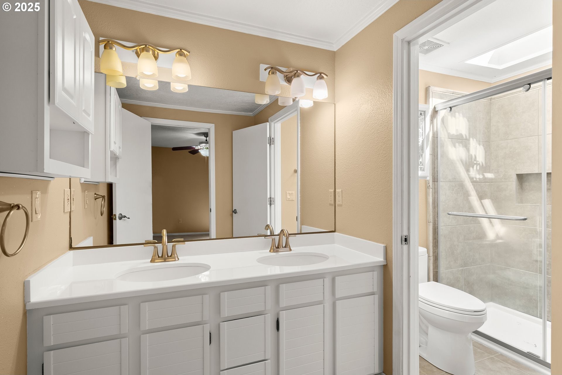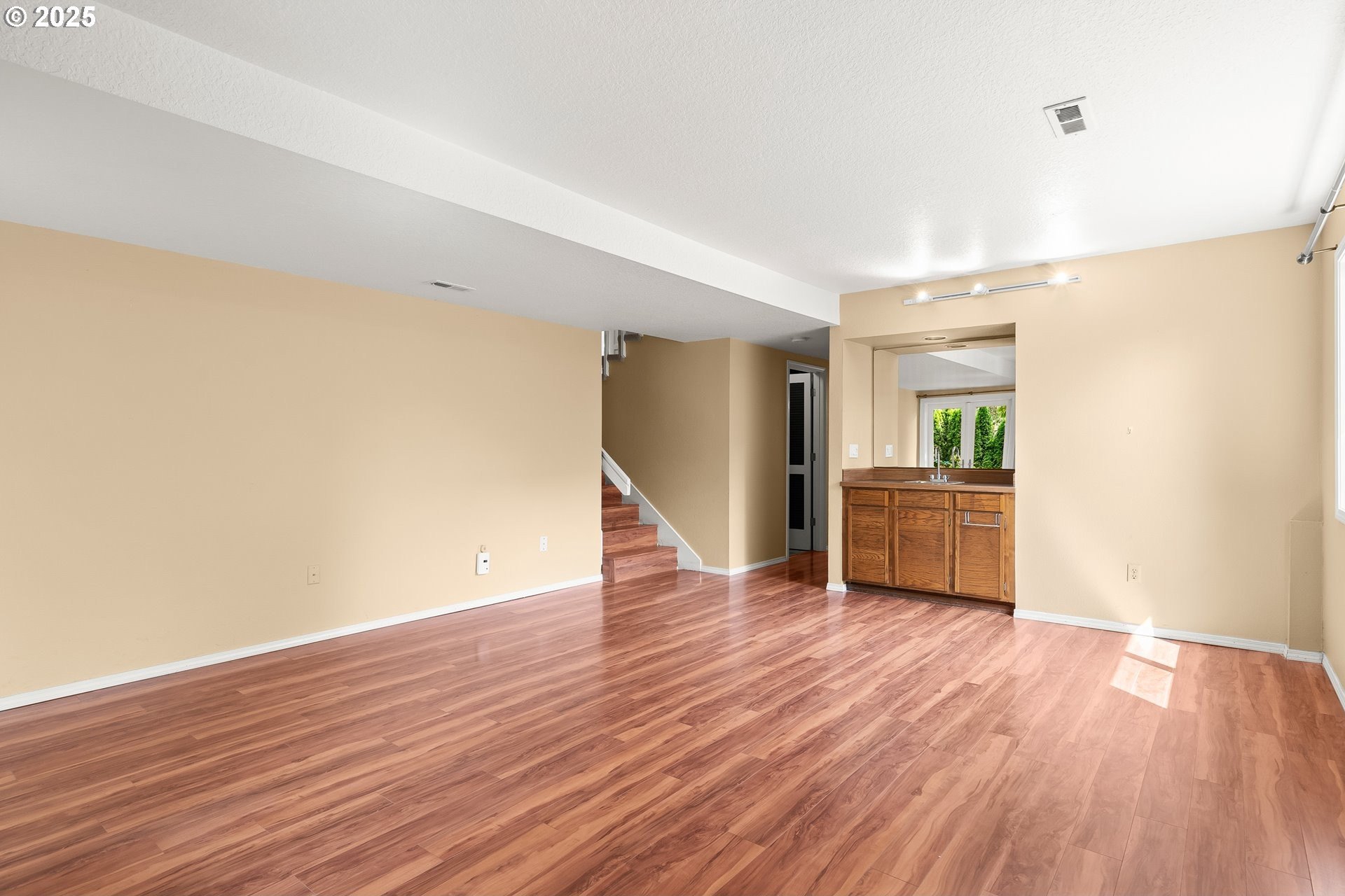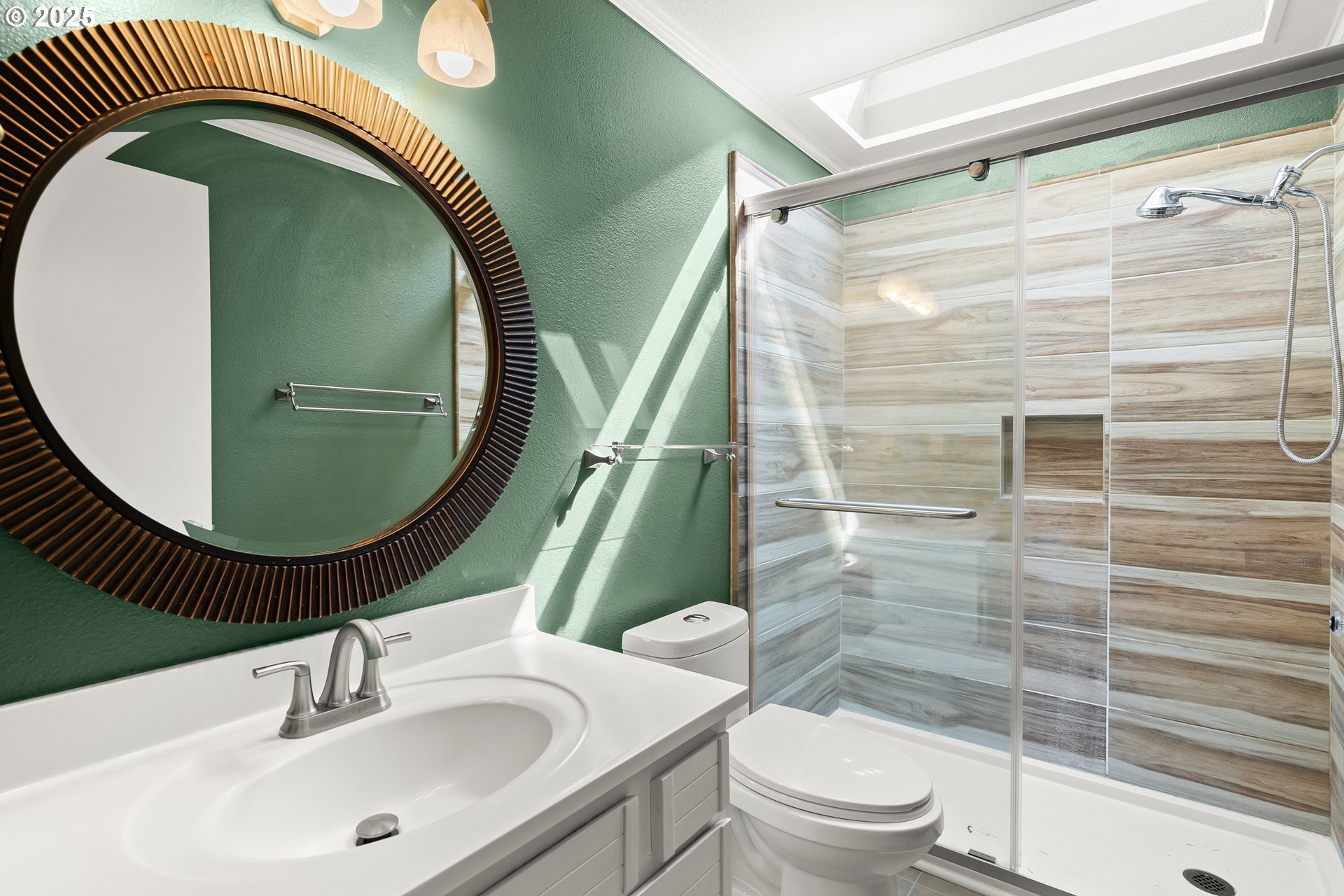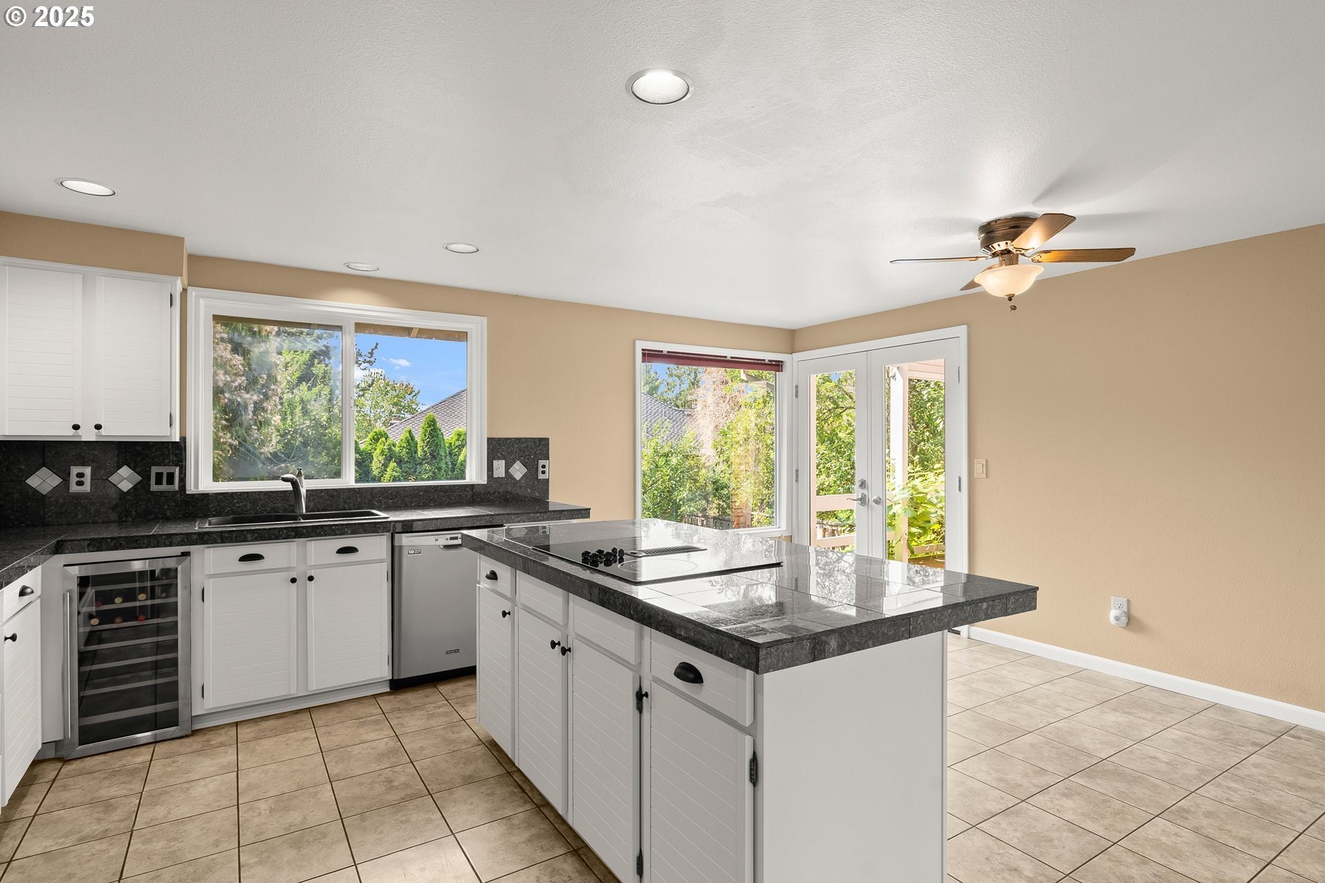 This beautifully maintained split-tri-level home is situated on a spacious 10,100 sq. ft. lot, offering privacy, functionality, and ample room to entertain. The expansive fenced backyard is a true highlight, featuring a large grassy area, mature landscaping, and a wood-burning freestanding fire pit. The main floor offers an open and welcoming design with separate living, sleeping, and entertaining areas. The vaulted living room is filled with natural light from floor-to-ceiling windows centered around a striking stone surround wood-burning fireplace. The adjacent dining room seamlessly flows into the kitchen, which features a large cook island, granite countertops, stainless steel appliances, a wine refrigerator, and a cozy eating area with a ceiling fan. French doors from the kitchen lead directly to the covered deck, creating an effortless indoor-outdoor connection. Upstairs, the primary suite features three closets, plus an ensuite bathroom boasting natural light from a skylight and a walk-in shower. Two additional bedrooms and a full bathroom complete the upper level. The lower level is ideal for entertaining or multi-generational living, featuring a spacious family room, a second fireplace, and a wet bar. French doors open to the backyard, enhancing the home’s flow for gatherings. A fourth bedroom, a full bathroom, and a dedicated laundry room complete this level. Additional updates include the replacement of windows in the living room, primary bedroom, and lower-level entertaining area. The split-tri-level layout ensures privacy and functionality, with distinct living, sleeping, and entertaining areas. Located in the highly coveted Westlake community, this home is surrounded by wide tree-lined streets and offers easy access to Westlake Park, Mt. Park hiking trails, shopping, dining, and major highways. Served by the award-winning Lake Oswego School District.