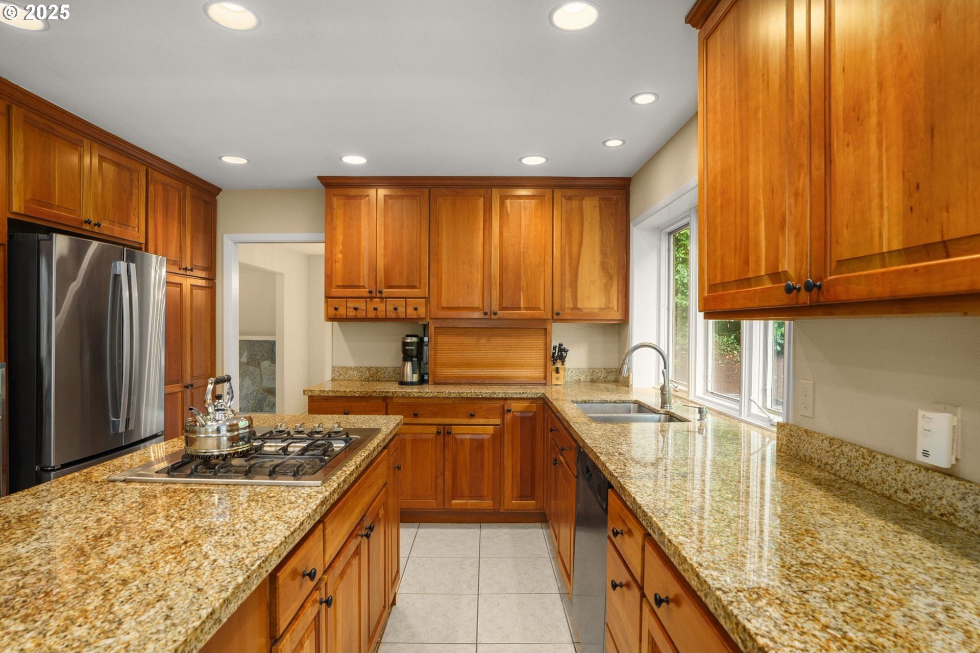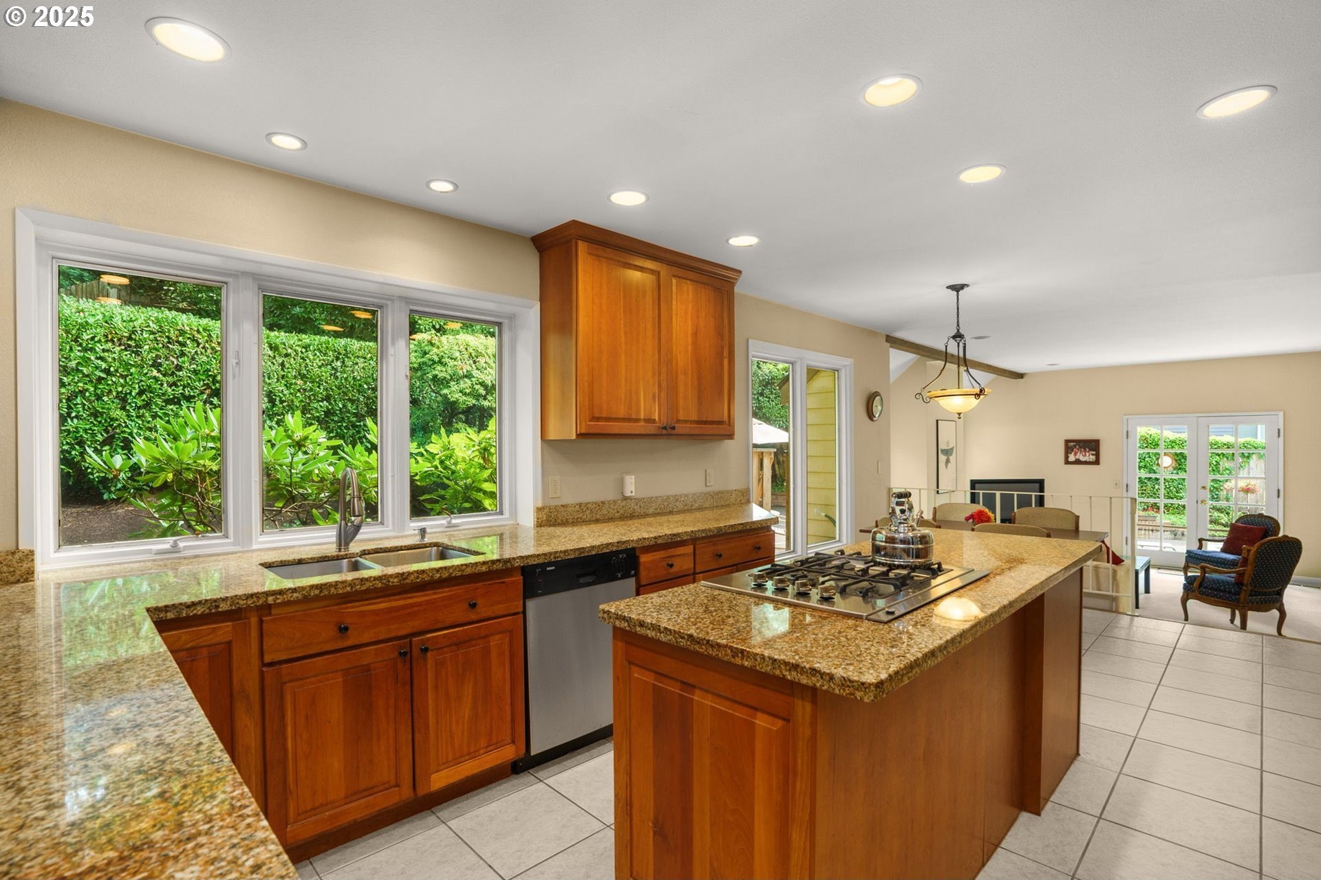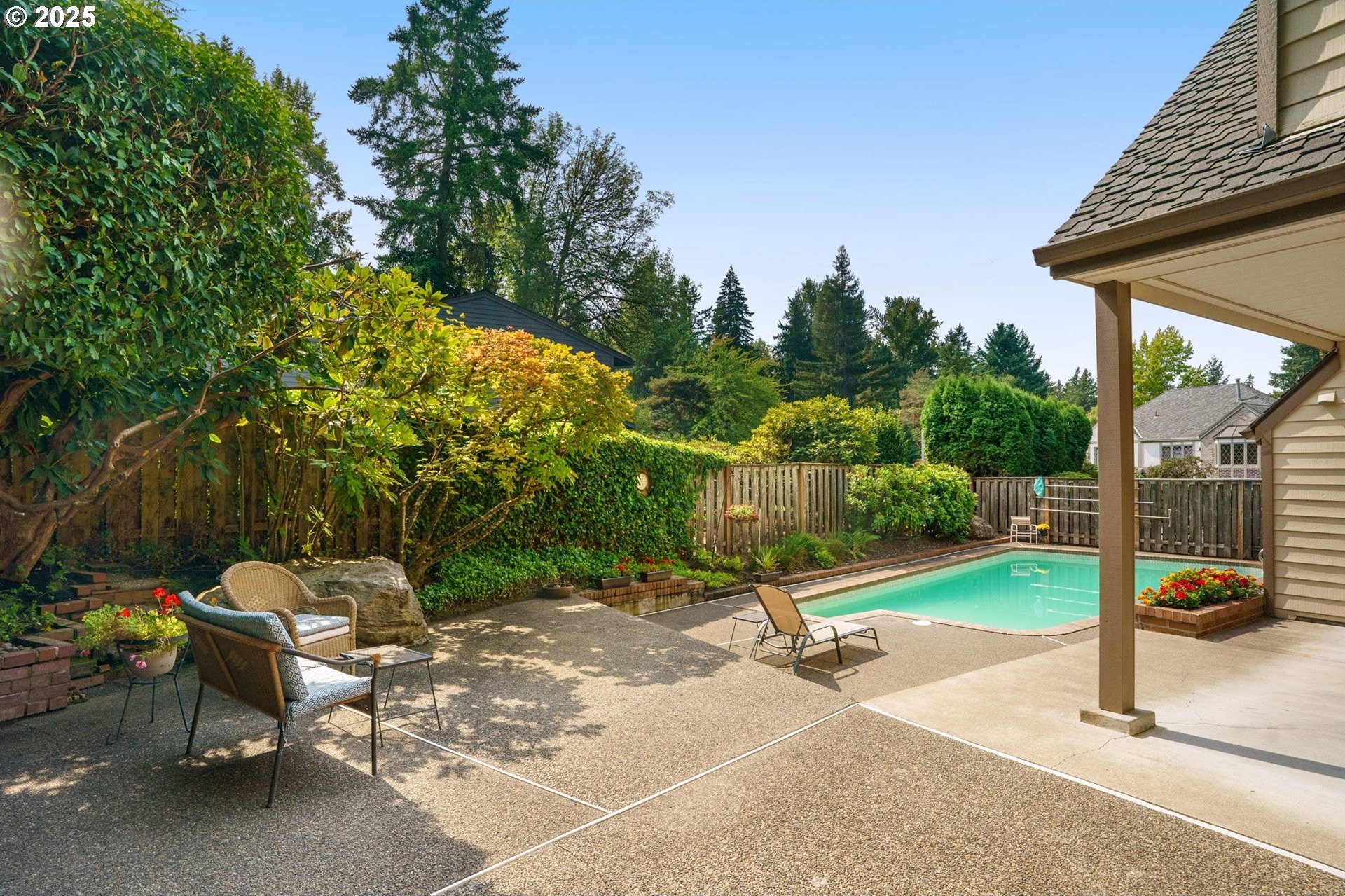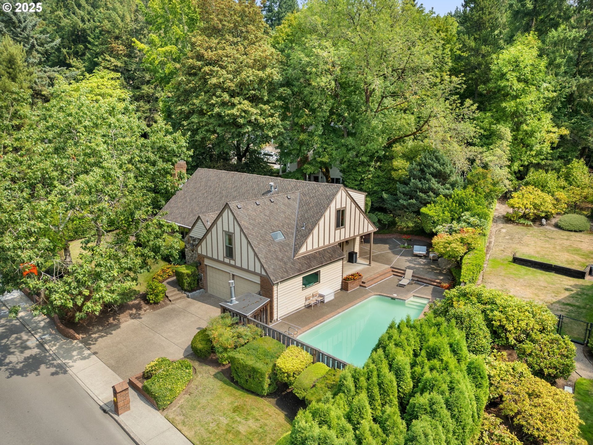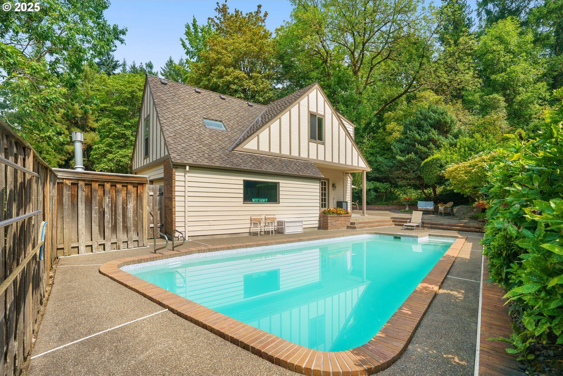 This charming storybook home is nestled in Lake Oswego’s coveted Westridge neighborhood. Thoughtfully designed, it offers four bedrooms, two and a half baths, and versatile spaces for both entertaining and everyday living. The living room welcomes you with soaring vaulted ceilings, a striking stone fireplace, and windows that bathe the space in natural light. The adjoining dining room is conveniently connected to the kitchen through a pocket door, while French doors open to a private patio—perfect for indoor-outdoor gatherings. The inviting kitchen boasts stainless steel appliances, abundant counter space, and garden views, flowing seamlessly into the sunlit family room with its cozy gas fireplace.Step outside to your own backyard oasis! A sparkling pool, extensive patio, and lush landscaping create the ultimate summer retreat, complete with privacy, mature plantings, and space for dining or play.Upstairs, the owner’s suite offers an ensuite bath and dual closets, joined by three additional bedrooms with ample storage. A versatile laundry room with counters and cabinetry can easily double as a utility or craft space.Recent updates include a newer furnace, A/C, and roof. Enjoy all that Lake Oswego offers—award-winning schools, swim parks, trails, boutique shopping, and easy access to I-5 and 217.