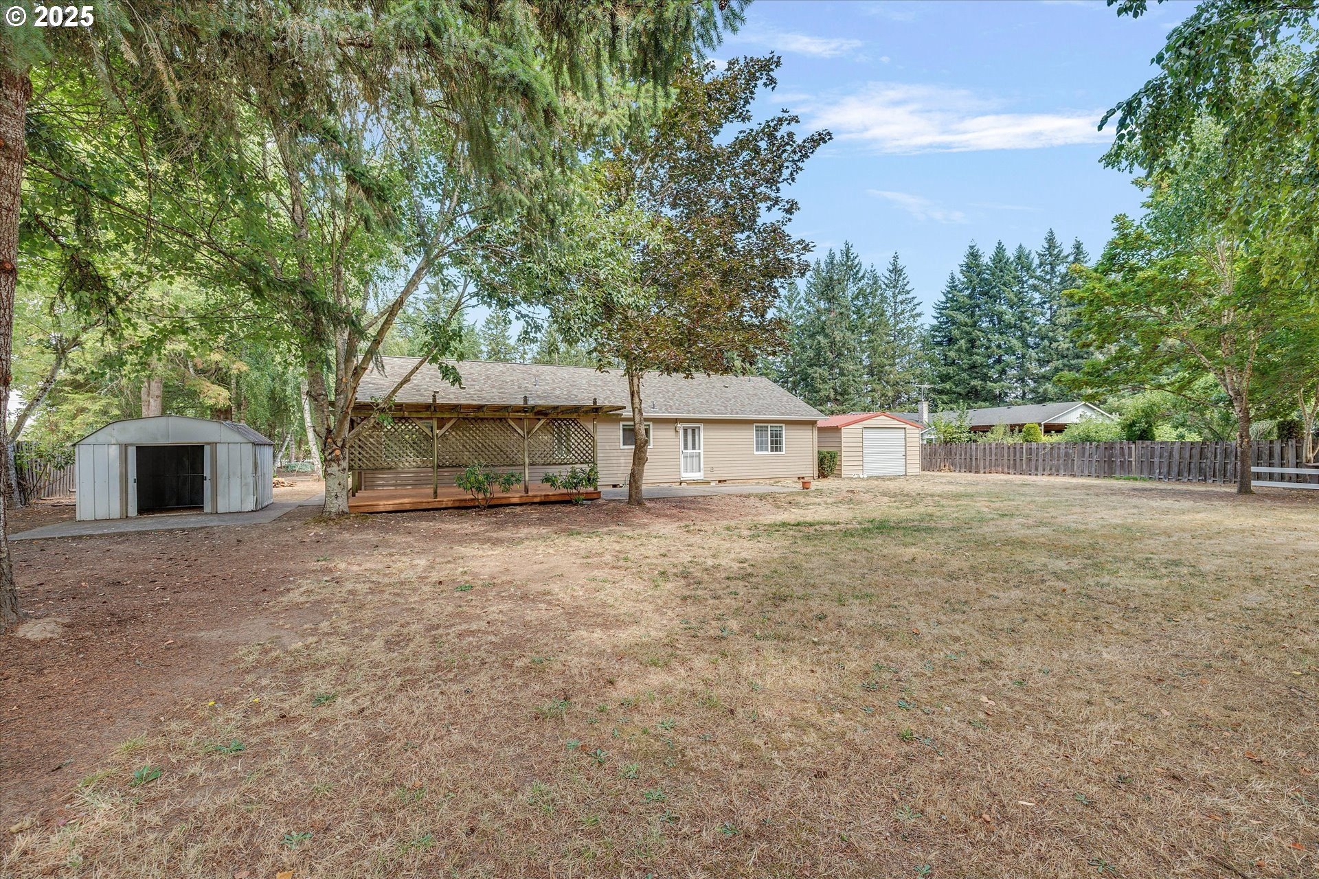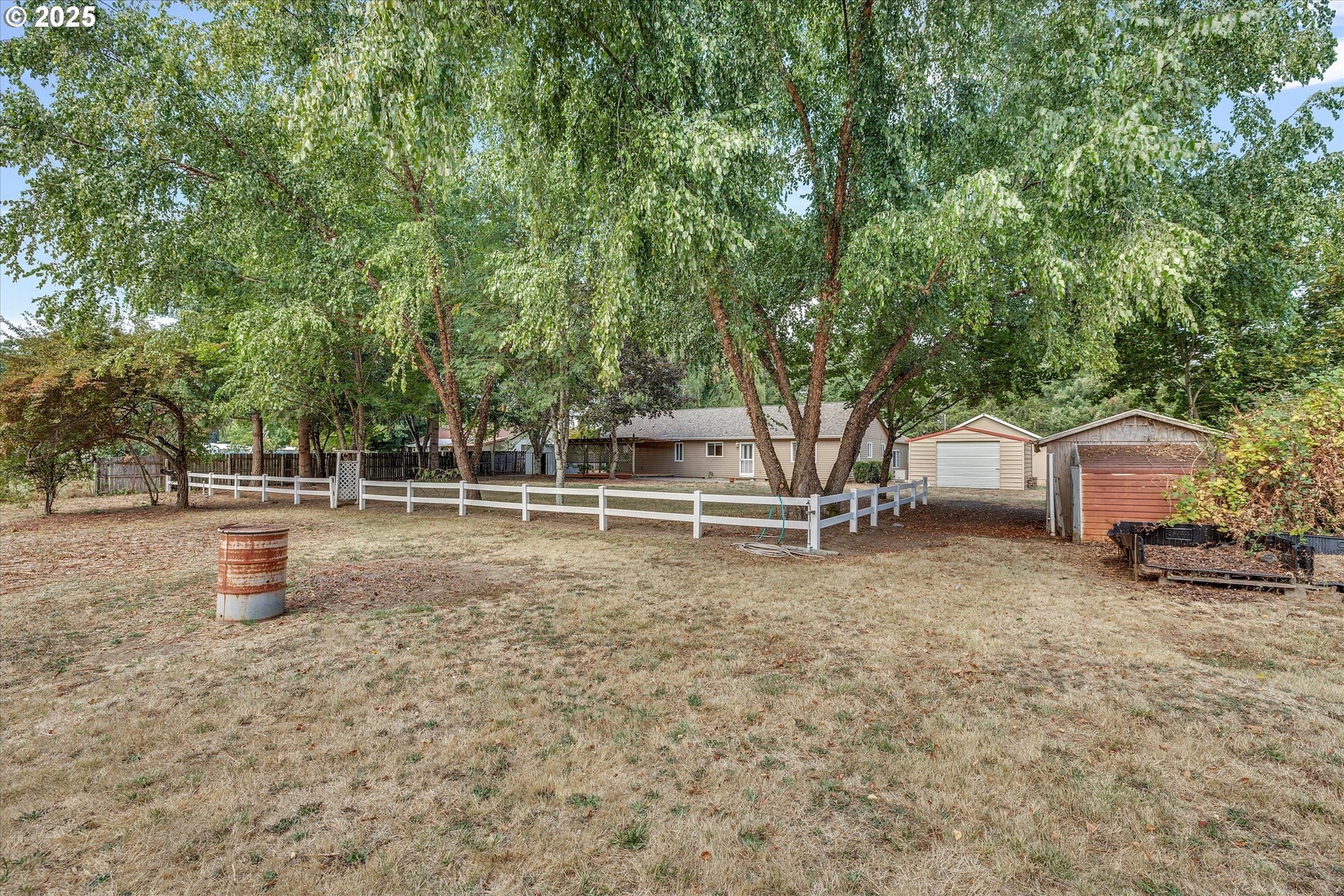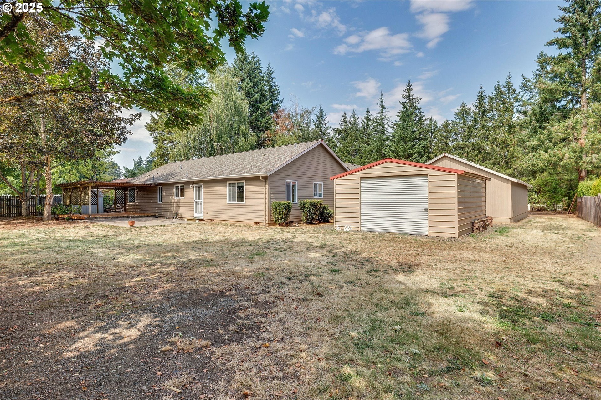 Convenient Country Retreat Just Minutes from Town! This unique property lives larger than its .88 size, with 3 separate buildings to house all your vehicles for work and hobbies, extra parking, pasture and more (see details below). This well-maintained home is mostly one-level, with vaulted living and dining areas open to the kitchen; as well as an adjacent bonus room for a play area, office, entertaining, etc... Each of the 3 bedrooms enjoys privacy, as they are not near to one another. Relax in an enormous primary bedroom with ensuite bath including shower, soaking tub and large walk-in closet. Additional features include A/C, new interior paint (2025), exterior paint (2024), a roof approx 10 years old. A brand new back deck is the perfect spot for outdoor relaxation. The buildings include... An oversized detached garage with a separate heated shop with its own electrical panel incl both 110 and 220; An extra 2-car mostly-enclosed carport with a garage door, another separate electrical panel and an RV outlet on the exterior for easy charging; An 18’x20’ metal pole barn with rollup garage door. There are also a couple of tool sheds and ample gravel parking for guests, equipment, and vehicles; a pasture appropriate for small livestock; several fruit trees to enjoy; plus generous front and back yards. Situated at the west end of Hillsboro, this highly desirable location is only ¼ mile to T.V. Hwy, approx 2 miles to Historic Downtown Hillsboro and MAX line, and less than 22 miles to downtown Portland. Not in a flood zone. No Railroad Tracks. Schedule your private showing today! Don’t miss your chance to own this special piece of country living!