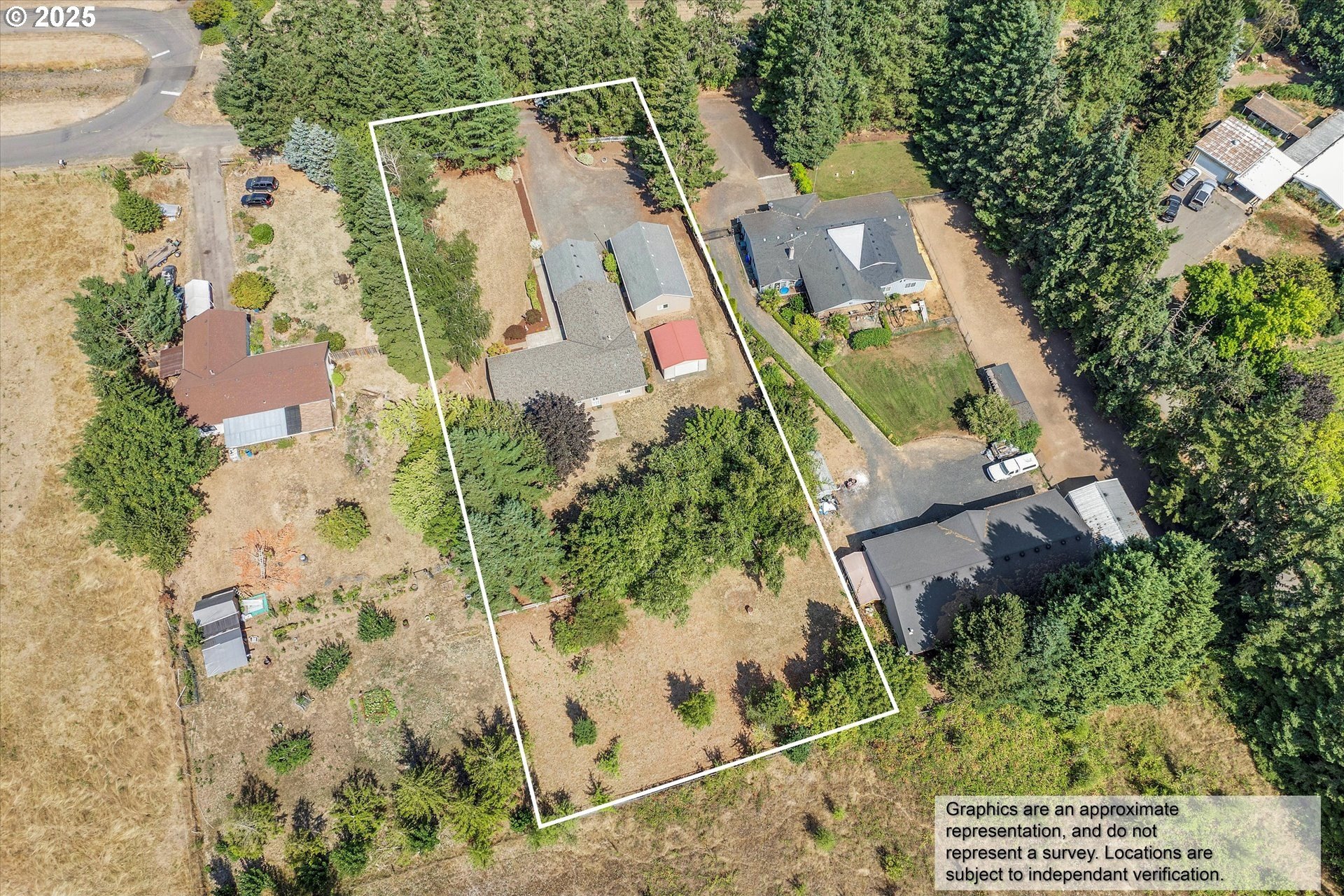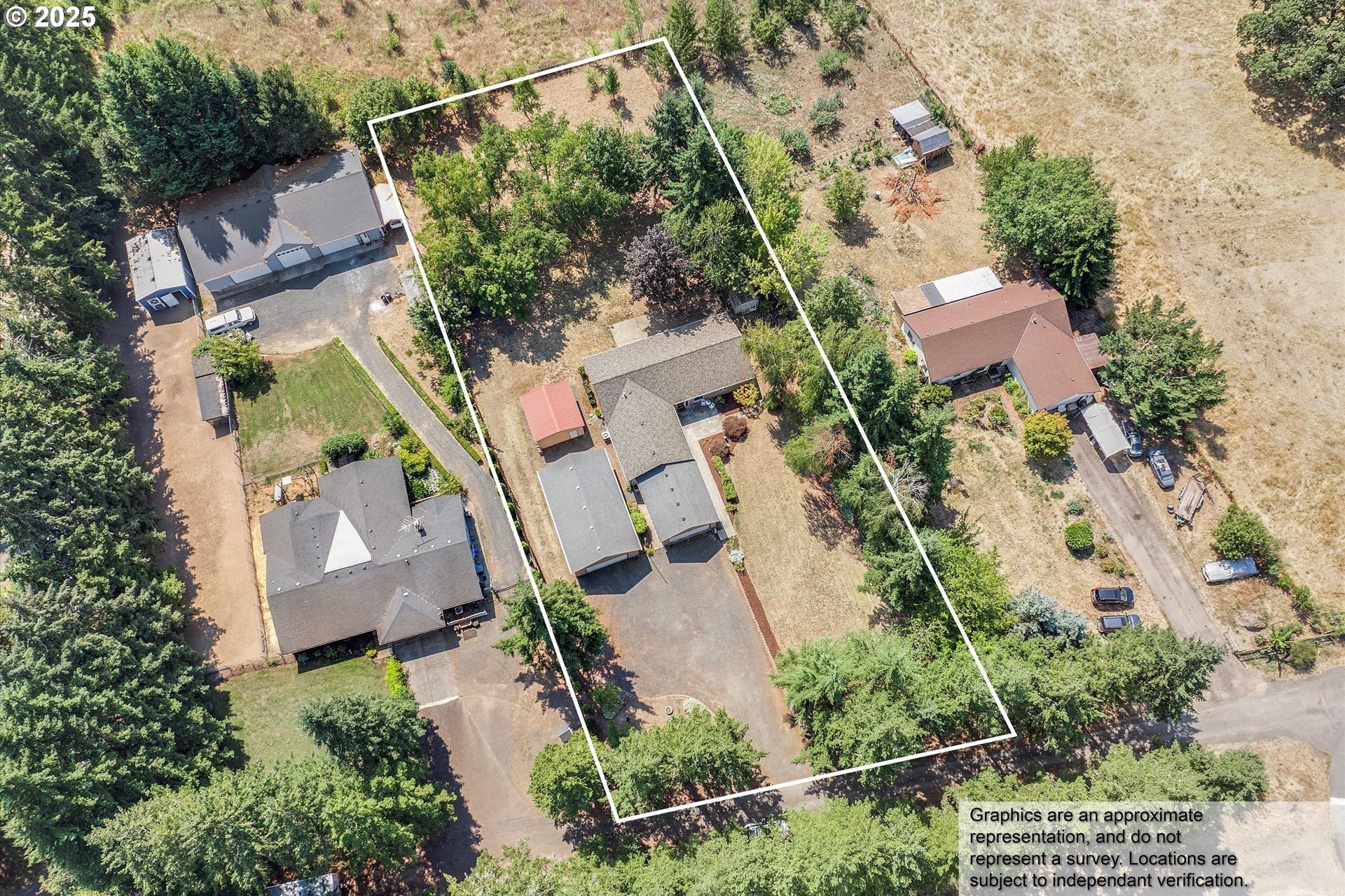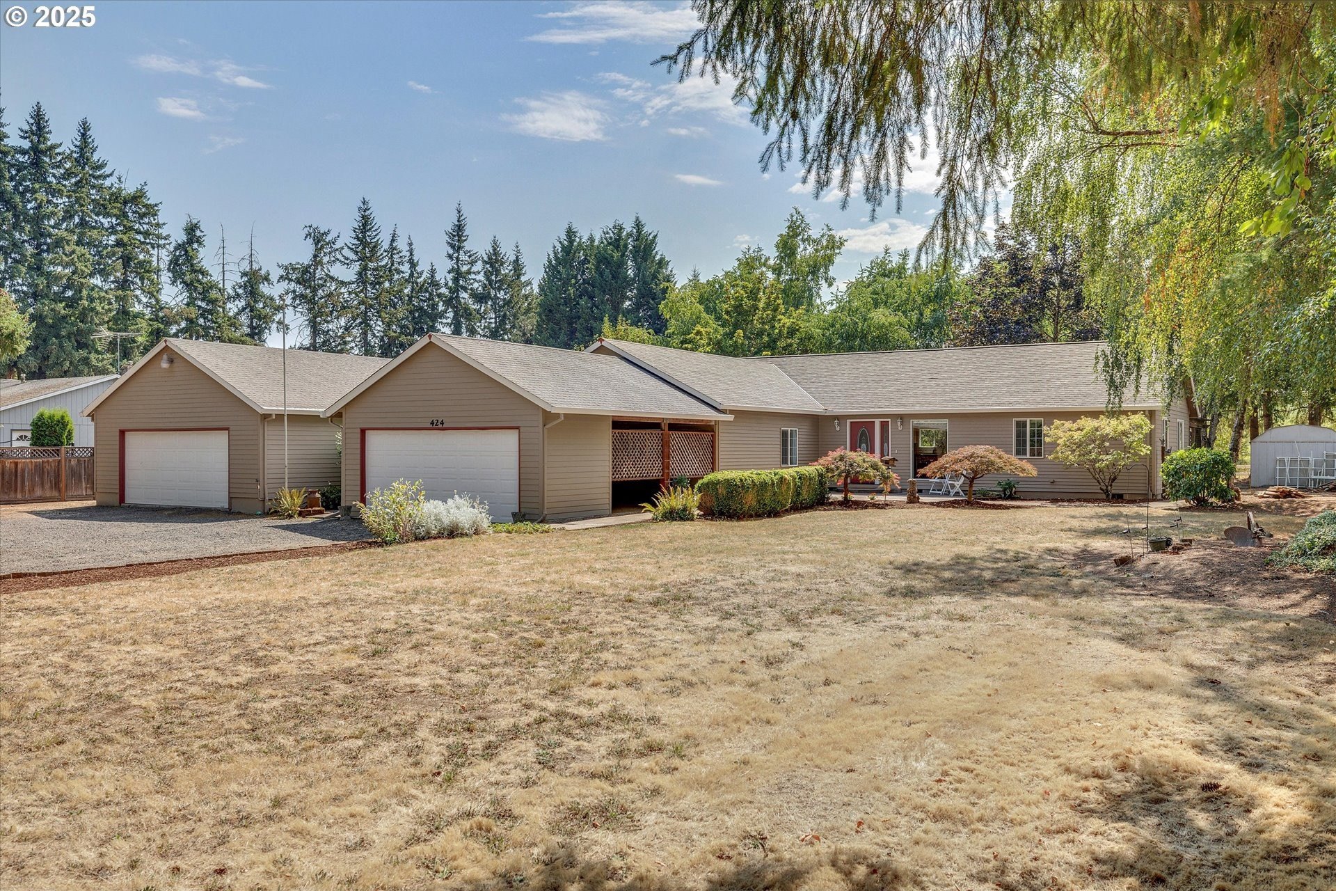 Convenient Country Retreat Just Minutes from Town! This unique property lives larger than its .88 size, with 3 separate buildings to house all your vehicles for work and hobbies, extra parking, pasture and more (see details below). This well-maintained home is mostly one-level, with vaulted living and dining areas open to the kitchen; as well as an adjacent bonus room for a play area, office, entertaining, etc... Each of the 3 bedrooms enjoys privacy, as they are not near to one another. Relax in an enormous primary bedroom with ensuite bath including shower, soaking tub and large walk-in closet. Additional features include A/C, new interior paint (2025), exterior paint (2024), a roof approx 10 years old. A brand new back deck is the perfect spot for outdoor relaxation. The buildings include... An oversized detached garage with a separate heated shop with its own electrical panel incl both 110 and 220; An extra 2-car mostly-enclosed carport with a garage door, another separate electrical panel and an RV outlet on the exterior for easy charging; An 18’x20’ metal pole barn with rollup garage door. There are also a couple of tool sheds and ample gravel parking for guests, equipment, and vehicles; a pasture appropriate for small livestock; several fruit trees to enjoy; plus generous front and back yards. Situated at the west end of Hillsboro, this highly desirable location is only ¼ mile to T.V. Hwy, approx 2 miles to Historic Downtown Hillsboro and MAX line, and less than 22 miles to downtown Portland. Not in a flood zone. No Railroad Tracks. Schedule your private showing today! Don’t miss your chance to own this special piece of country living!