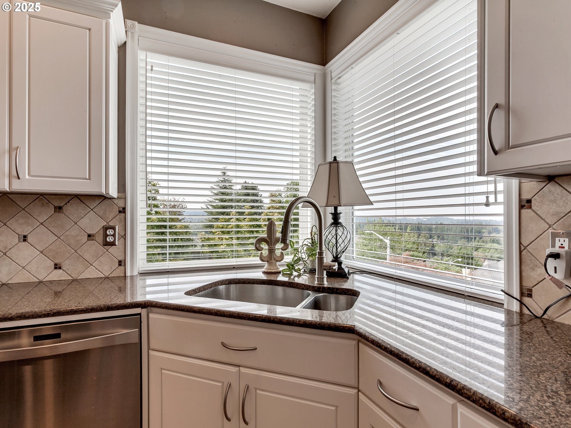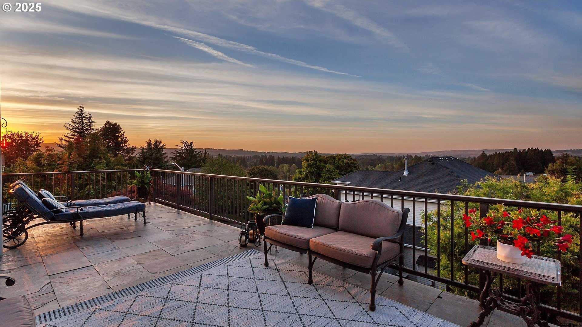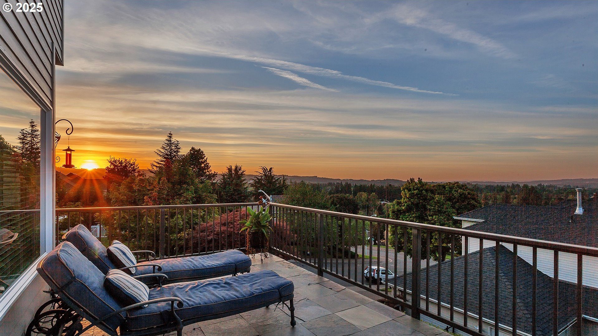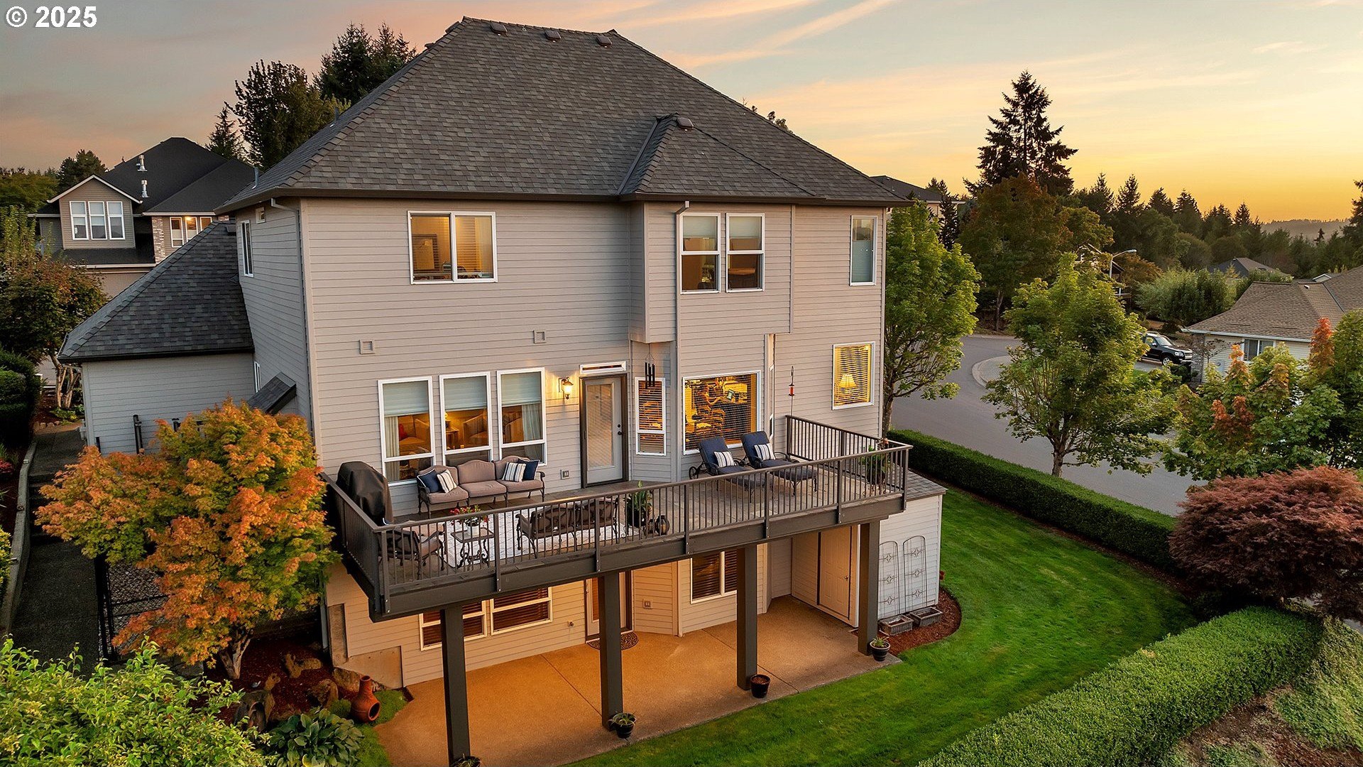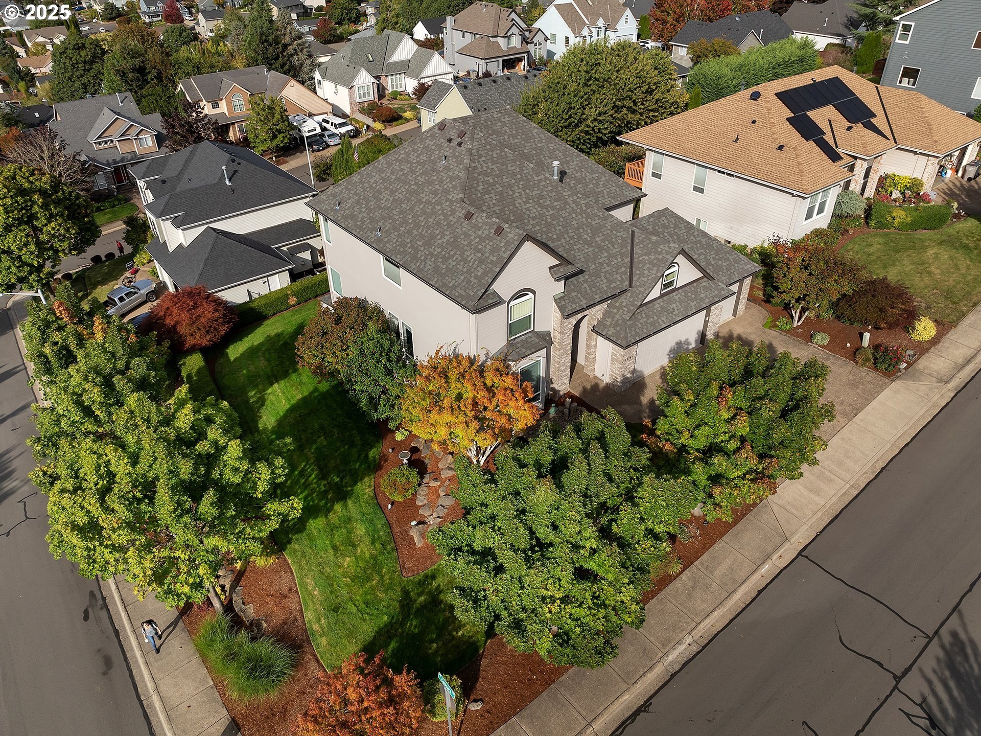 Impeccably maintained by its original owner, this 3,648 sq. ft. home is nestled on a spacious 9,000+ sq. ft. corner lot atop Sherwood’s highly sought-after Highpoint Drive. 4 bedrooms, office, weight room, 3 full/1.5 half baths. This stunning 3 level home offers breathtaking valley views. The beautifully updated paver deck has a built-in gas hook-up making barbecuing a breeze. New roof & water heater in 2022 & freshly painted on the exterior in 2023. No HOA’s, wide streets, just minutes to Old Town, shops, restaurants, parks & schools. The vaulted entry, living & dining room lead to the open Kitchen, nook & Family room. Crisp white cabinetry pairs beautifully w/granite counters & hrdwd floors. A cook’s island w/4-burner gas range, fridge, built-in oven & microwave along with ss appliances elevate this kitchen into a chef’s dream. The family room is anchored by a cozy gas fireplace framed w/custom shelving, surround sound & a wall of windows. Step into the entertainer’s dream basement, featuring a custom wet bar w/ice maker, fridge, sink & dishwasher. Gather around the spacious pool table area enhanced w/surround sound, stereo, & karaoke system for endless fun. Also included are a full bath, fitness room w/custom cabinets & storage area. The outdoor patio is thoughtfully designed w/a hidden rain gutter system. Upstairs, retreat to the primary suite featuring coved ceilings, generous walk-in closet & top-down/bottom up blackout shades. The ensuite boasts heated tile floors, double vanities, jetted tub & tiled shower. All bedroom closets & laundry room are thoughtfully designed w/closet organizers. The custom office room features a dual-tiered design w/both laminate & carpet flooring. Built-in maple cabinetry offers multiple desks, bookshelves & a cozy window seat. Additional amenities include updated lighting fixtures, water softener, dog kennel, spacious three-car garage & attic storage. The exterior features a charming fountain, sprinklers, lighting & outdoor shed.