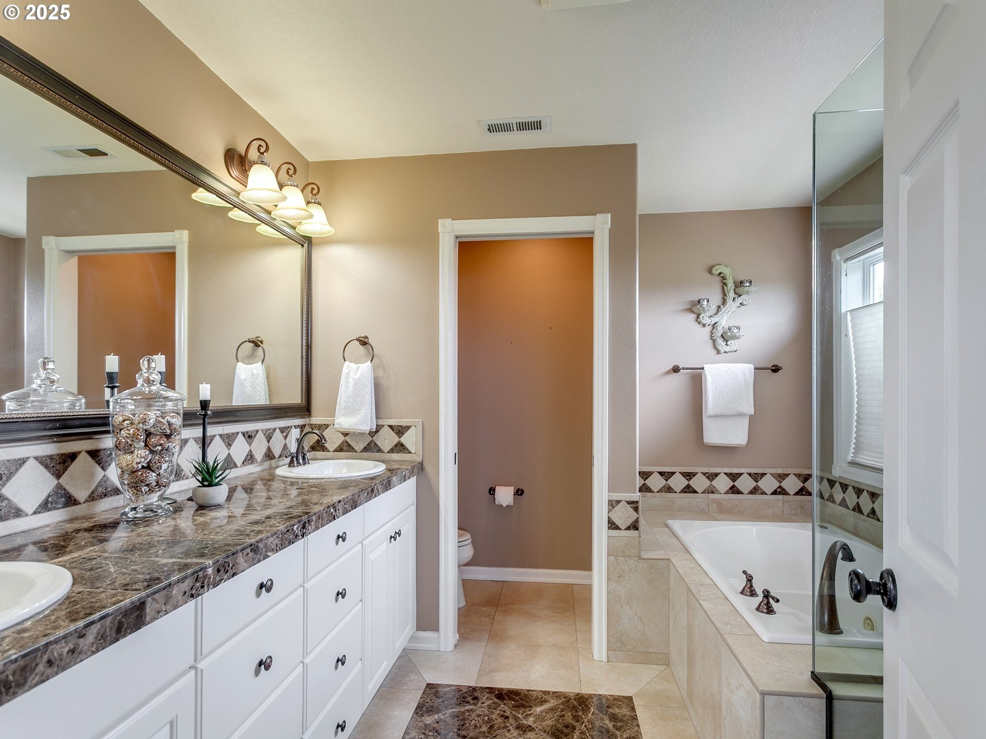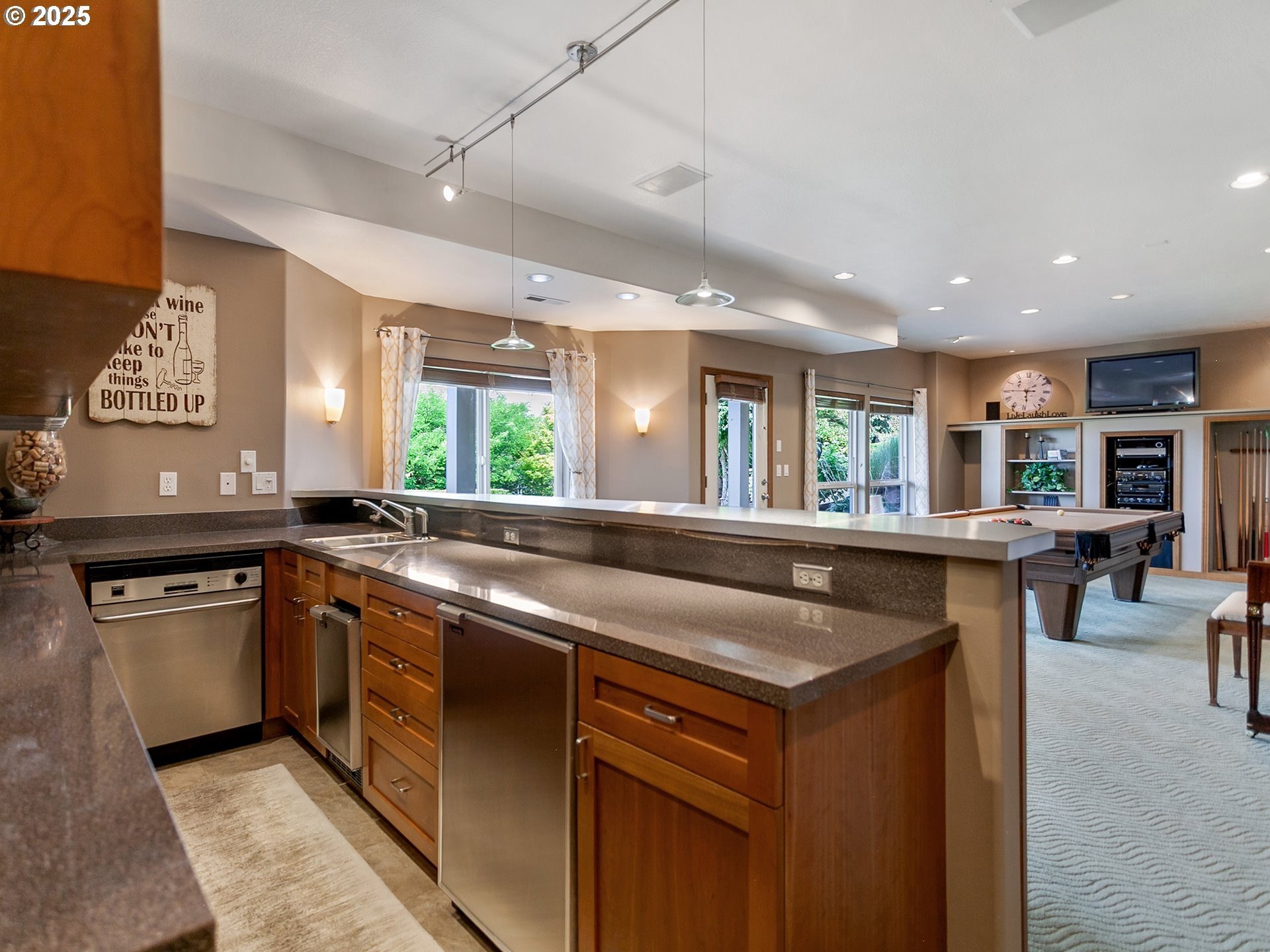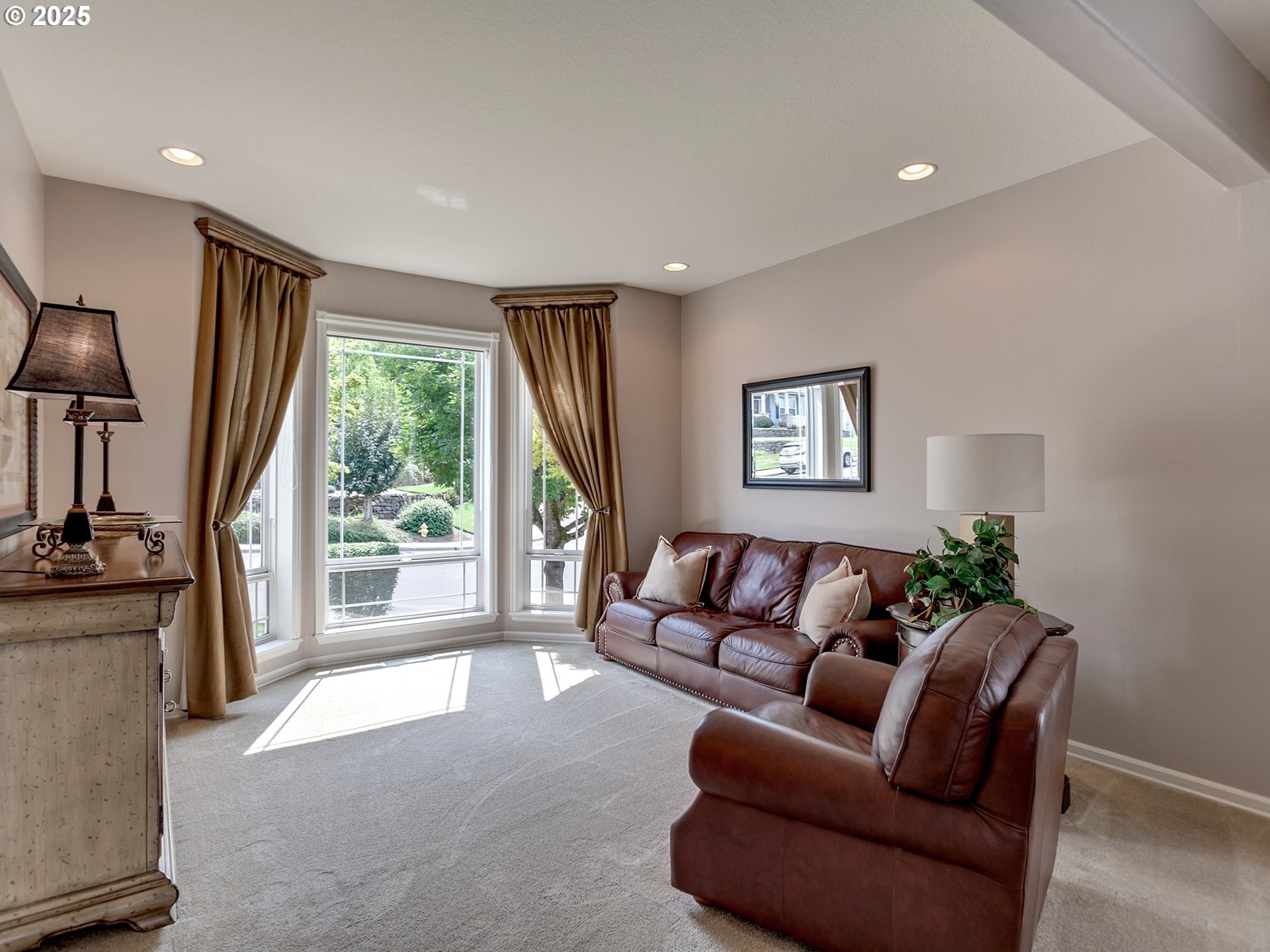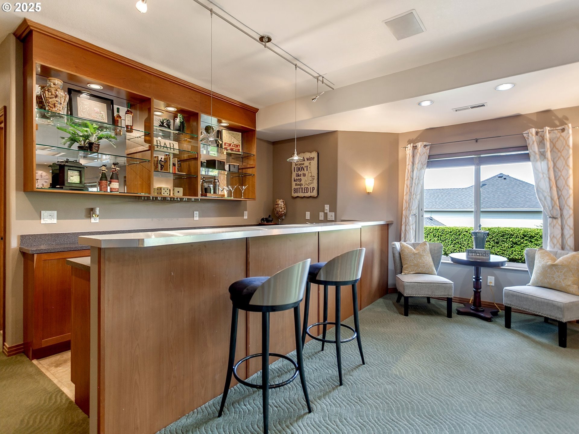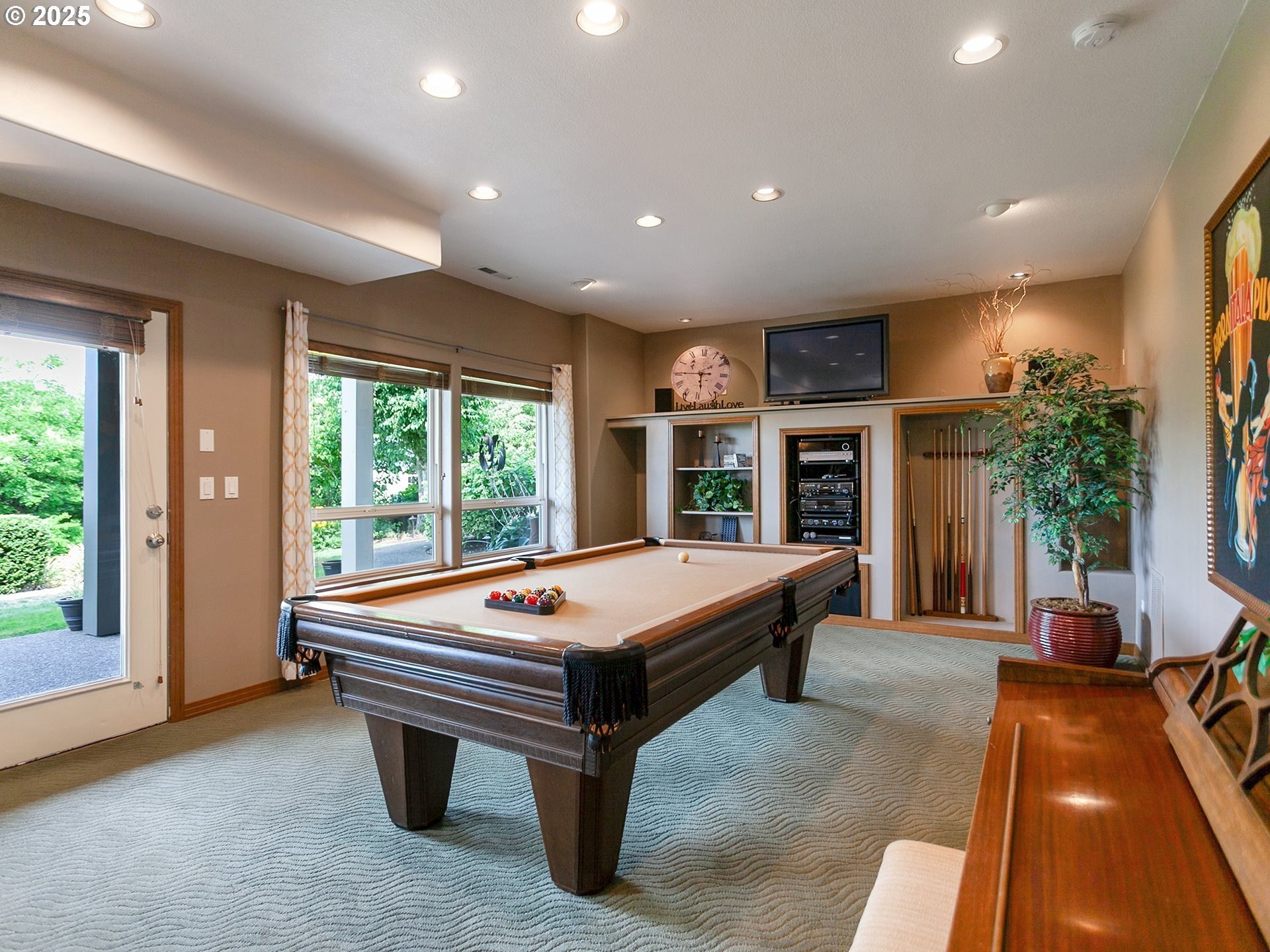 Impeccably maintained by its original owner, this 3,648 sq. ft. home is nestled on a spacious 9,000+ sq. ft. corner lot atop Sherwood’s highly sought-after Highpoint Drive. 4 bedrooms, office, weight room, 3 full/1.5 half baths. This stunning 3 level home offers breathtaking valley views. The beautifully updated paver deck has a built-in gas hook-up making barbecuing a breeze. New roof & water heater in 2022 & freshly painted on the exterior in 2023. No HOA’s, wide streets, just minutes to Old Town, shops, restaurants, parks & schools. The vaulted entry, living & dining room lead to the open Kitchen, nook & Family room. Crisp white cabinetry pairs beautifully w/granite counters & hrdwd floors. A cook’s island w/4-burner gas range, fridge, built-in oven & microwave along with ss appliances elevate this kitchen into a chef’s dream. The family room is anchored by a cozy gas fireplace framed w/custom shelving, surround sound & a wall of windows. Step into the entertainer’s dream basement, featuring a custom wet bar w/ice maker, fridge, sink & dishwasher. Gather around the spacious pool table area enhanced w/surround sound, stereo, & karaoke system for endless fun. Also included are a full bath, fitness room w/custom cabinets & storage area. The outdoor patio is thoughtfully designed w/a hidden rain gutter system. Upstairs, retreat to the primary suite featuring coved ceilings, generous walk-in closet & top-down/bottom up blackout shades. The ensuite boasts heated tile floors, double vanities, jetted tub & tiled shower. All bedroom closets & laundry room are thoughtfully designed w/closet organizers. The custom office room features a dual-tiered design w/both laminate & carpet flooring. Built-in maple cabinetry offers multiple desks, bookshelves & a cozy window seat. Additional amenities include updated lighting fixtures, water softener, dog kennel, spacious three-car garage & attic storage. The exterior features a charming fountain, sprinklers, lighting & outdoor shed.