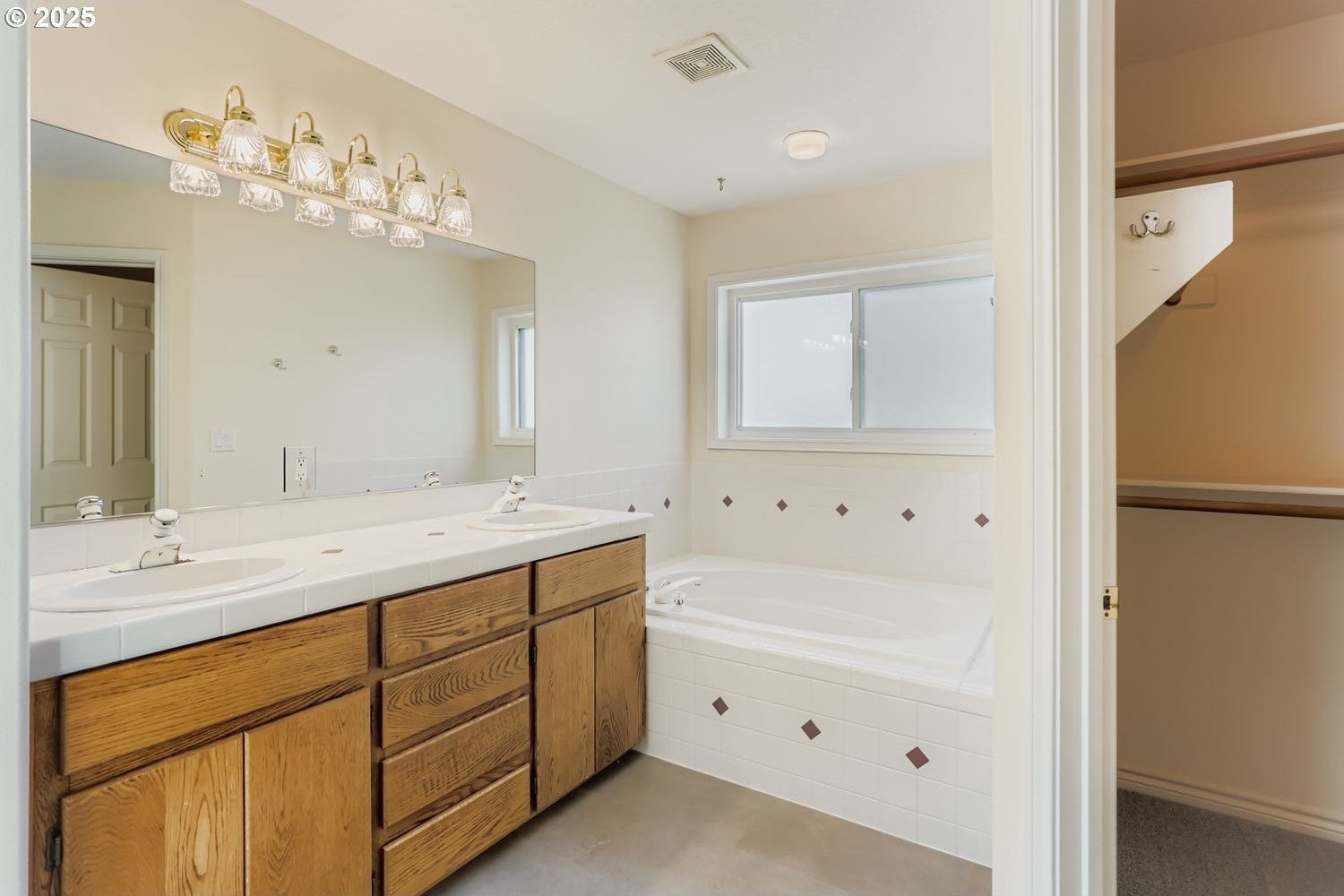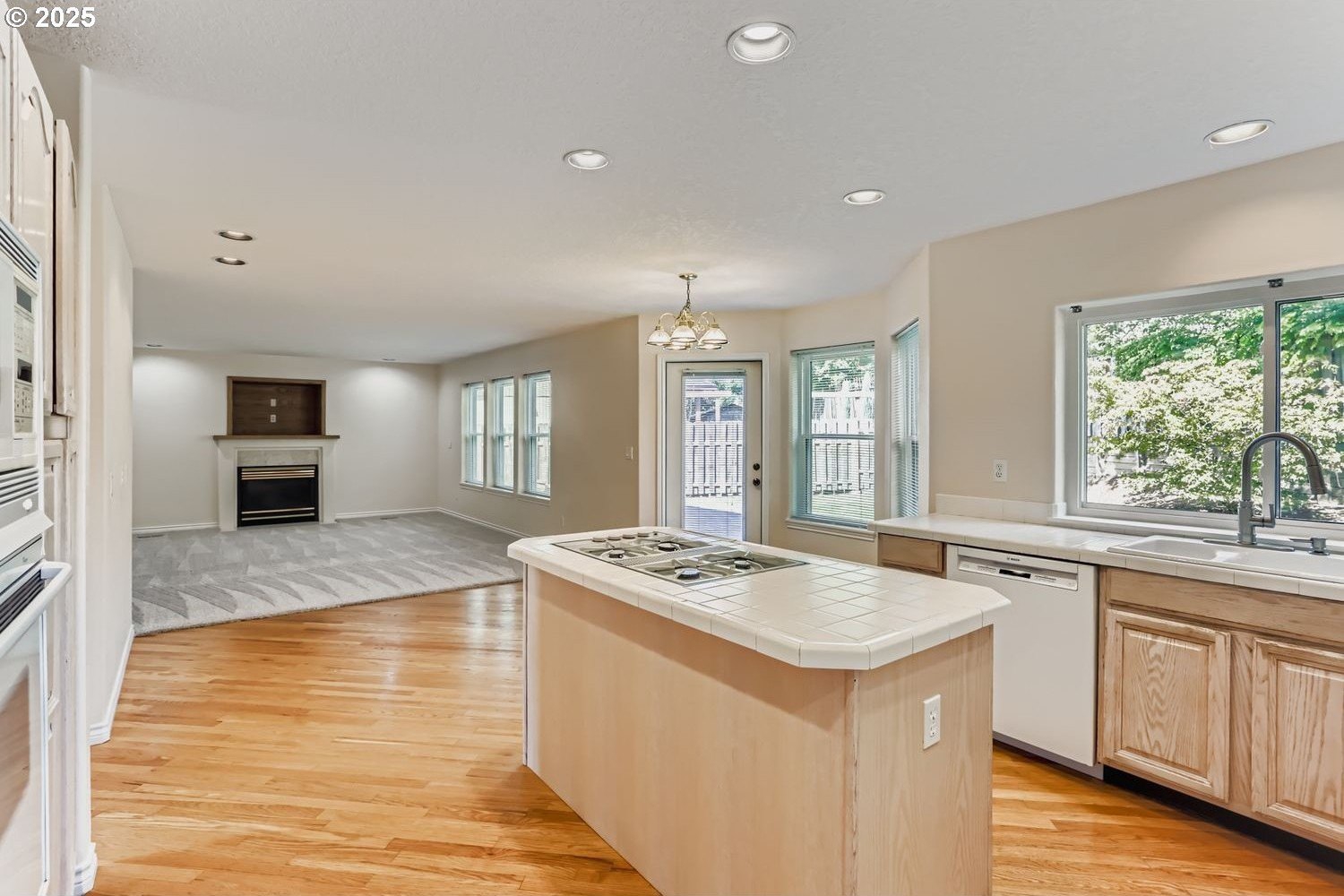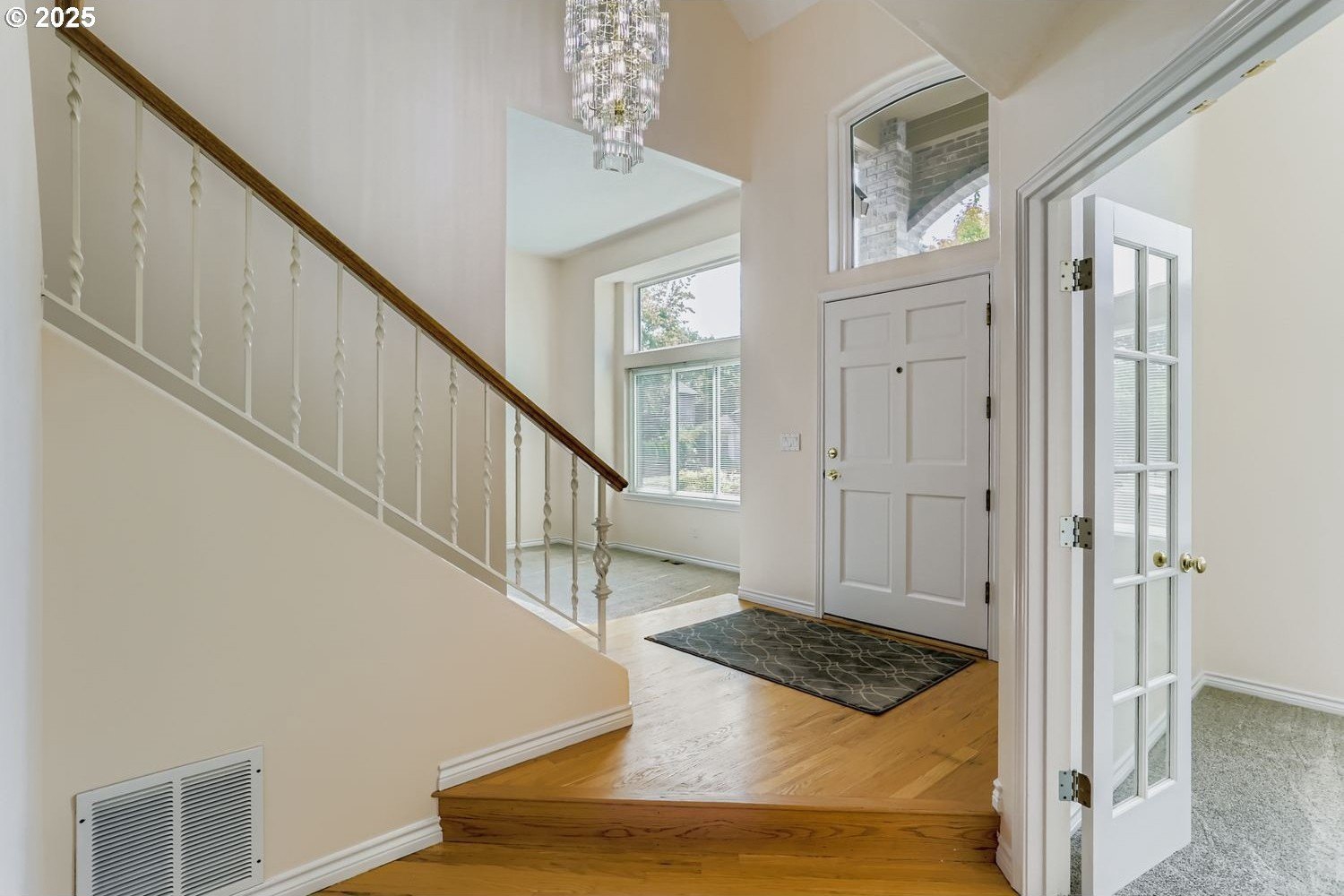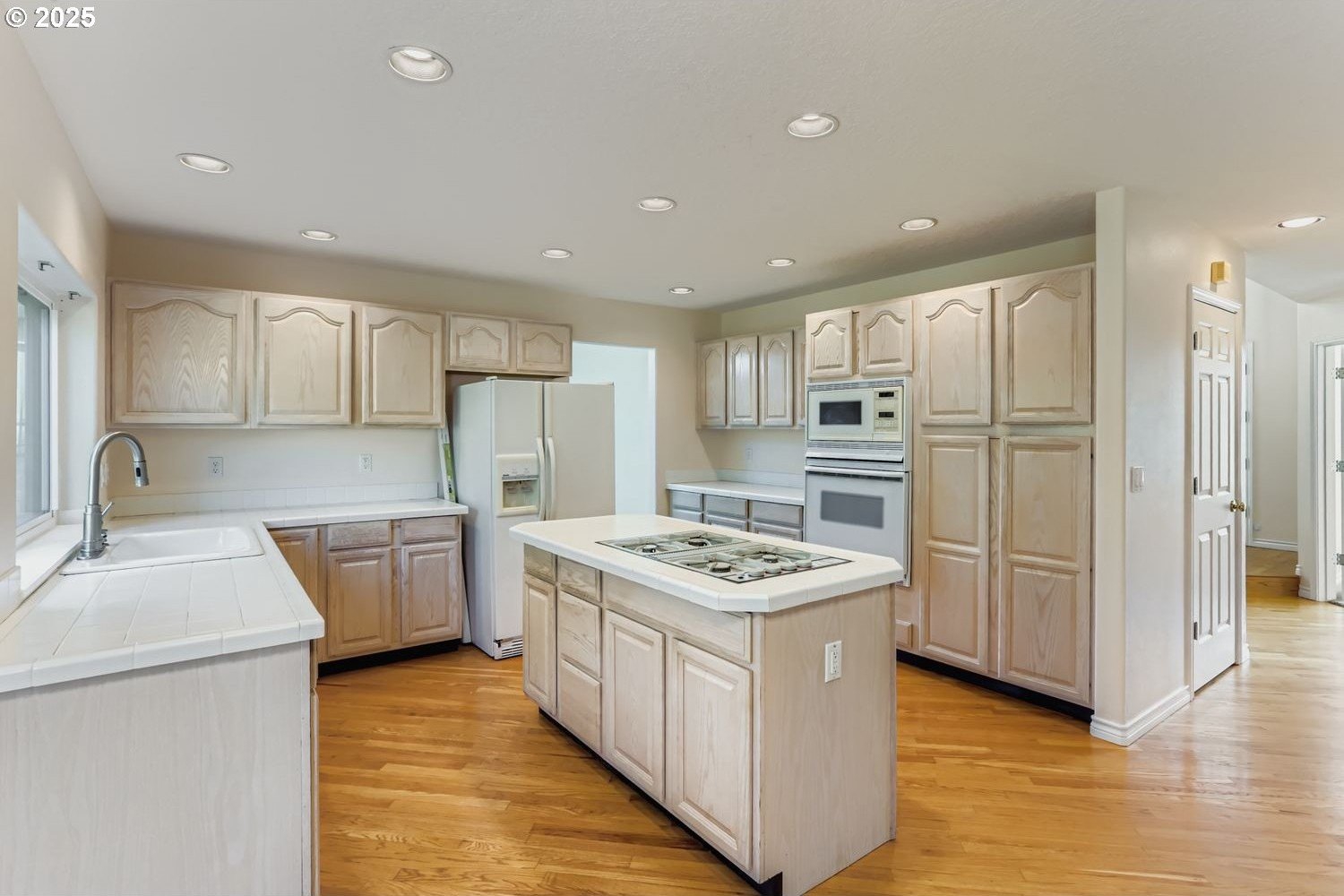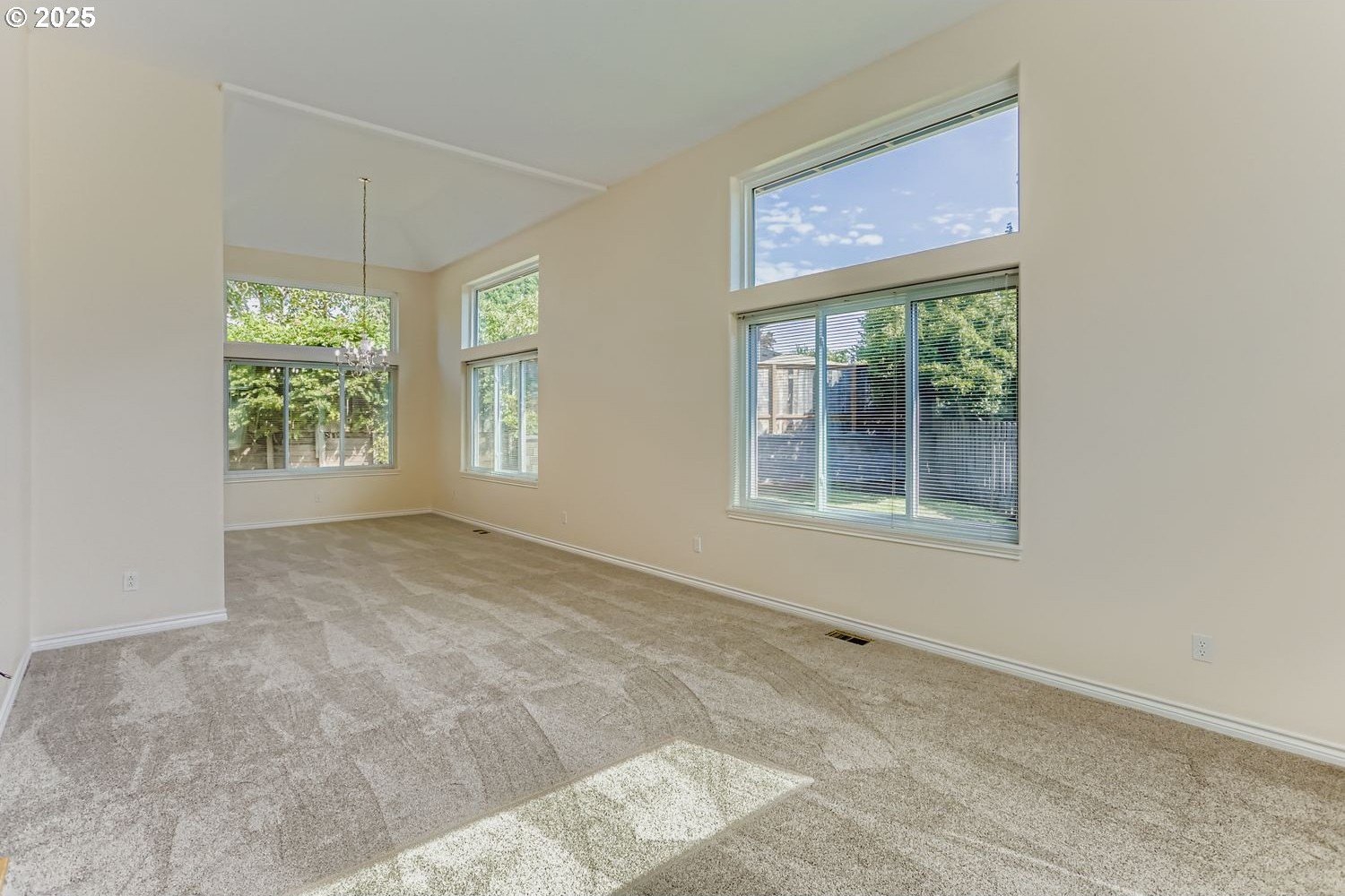 Fantastic Rock Creek Contemporary on quiet, loop street! With soaring ceilings, new upgraded vinyl windows, and an open design, natural light abounds! This two-story contemporary has been recently updated with big-ticket upgrades, including a new composition roof, brand-new fiber cement siding, a new deck, and more. Oversized kitchen features hardwood floors, abundant cabinetry space, cooking island, and all appliances included. The kitchen is open to a sunny dining nook and large family room with new carpet and a gas fireplace. Upstairs, French doors introduce a deluxe primary suite with new carpet, two closets (one walk-in),and an attached bathroom with soaking tub, walk-in shower, dual sinks, new LVT flooring, and skylight. There are two more sizable upstairs bedrooms, with ceiling fans and new carpet, plus a second full bathroom with double sinks and new LVT flooring. Perfectly situated on a private corner lot with a new high-end deck and poured concrete patio. Great location, close to several THPRD parks and trails, Rock Creek Country Club, and neighborhood schools.