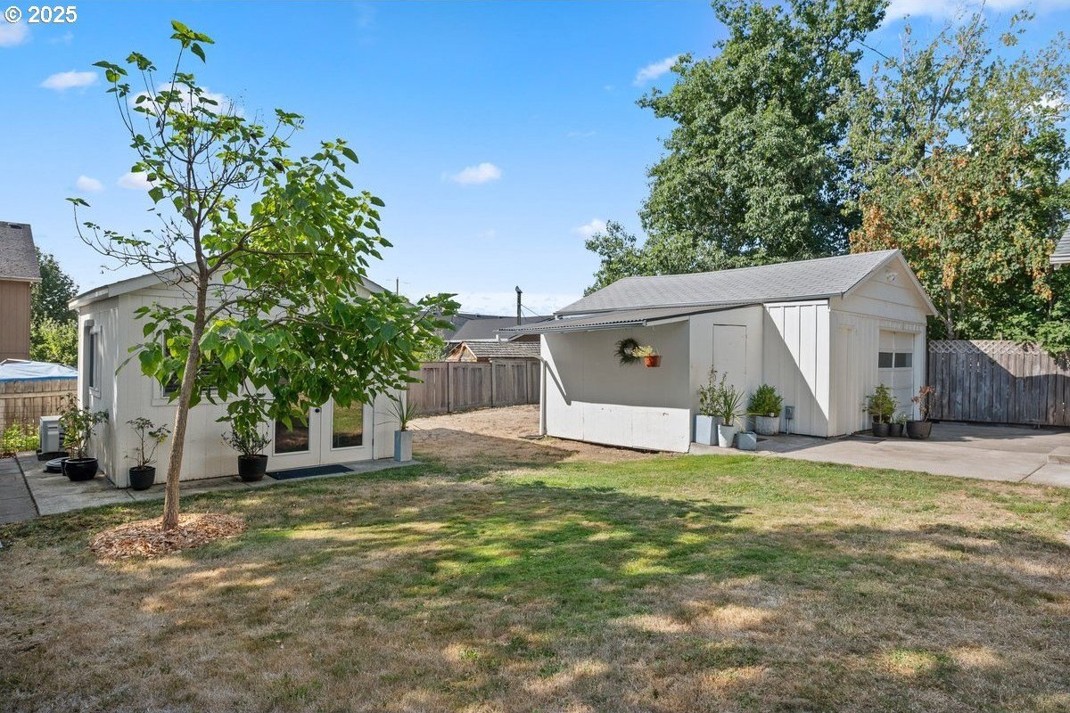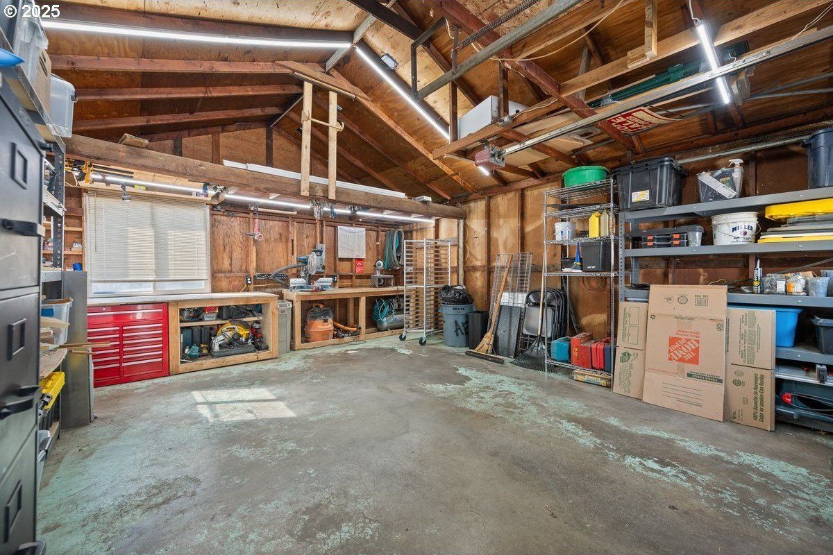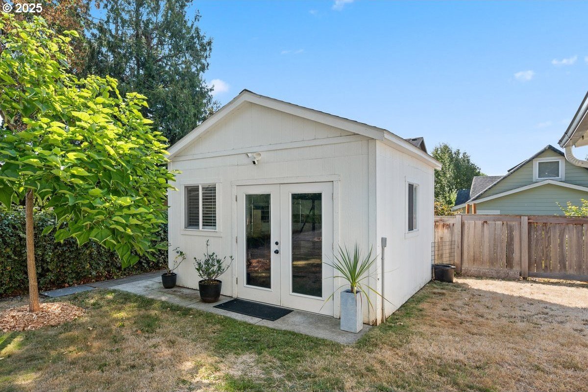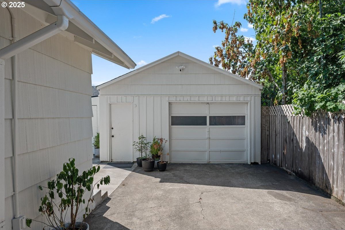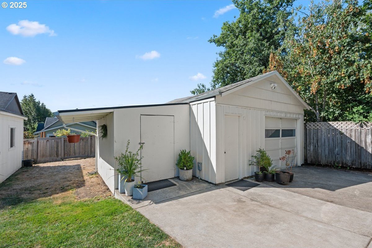 Solidly built 50's ranch in convenient location. Easy access to I-205, Portland PIckles baseball stadium, Lents international farmer's market and shopping. Relax on the front porch overlooking Bloomington Park. The backyard is a dream come true for business endeavors or hobbies. Tucked safely behind a secure gate is the oversized garage with attached tool/storage room and a beautiful 14x14 detached studio with high ceilings, power and mini-split (not included in square footage). The backyard is large enough for gardening, pets and barbecues with friends. Inside the house you will find hardwood floors in the living room and bedrooms, tile floors in the dining room and kitchen. The kitchen layout is functional and features stainless steel appliances. Rest easy knowing there are many updated systems and mechanicals: roof and windows 2013 (approx), A/C 2019, gas furnace 2023, interior electrical panel 2015. Washer and dryer are included. [Home Energy Score = 6. HES Report at https://rpt.greenbuildingregistry.com/hes/OR10241247]