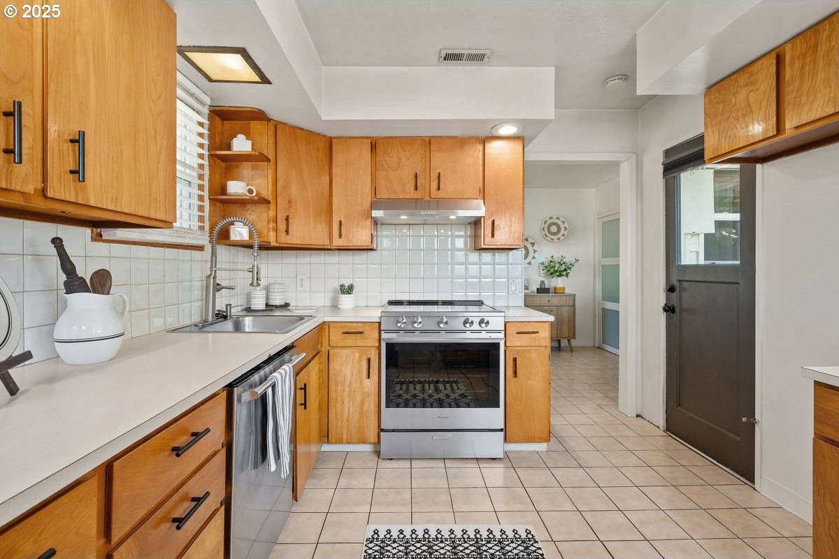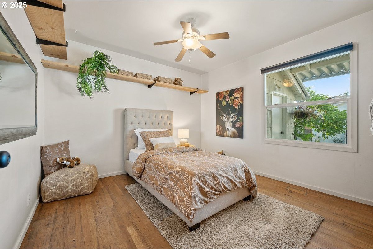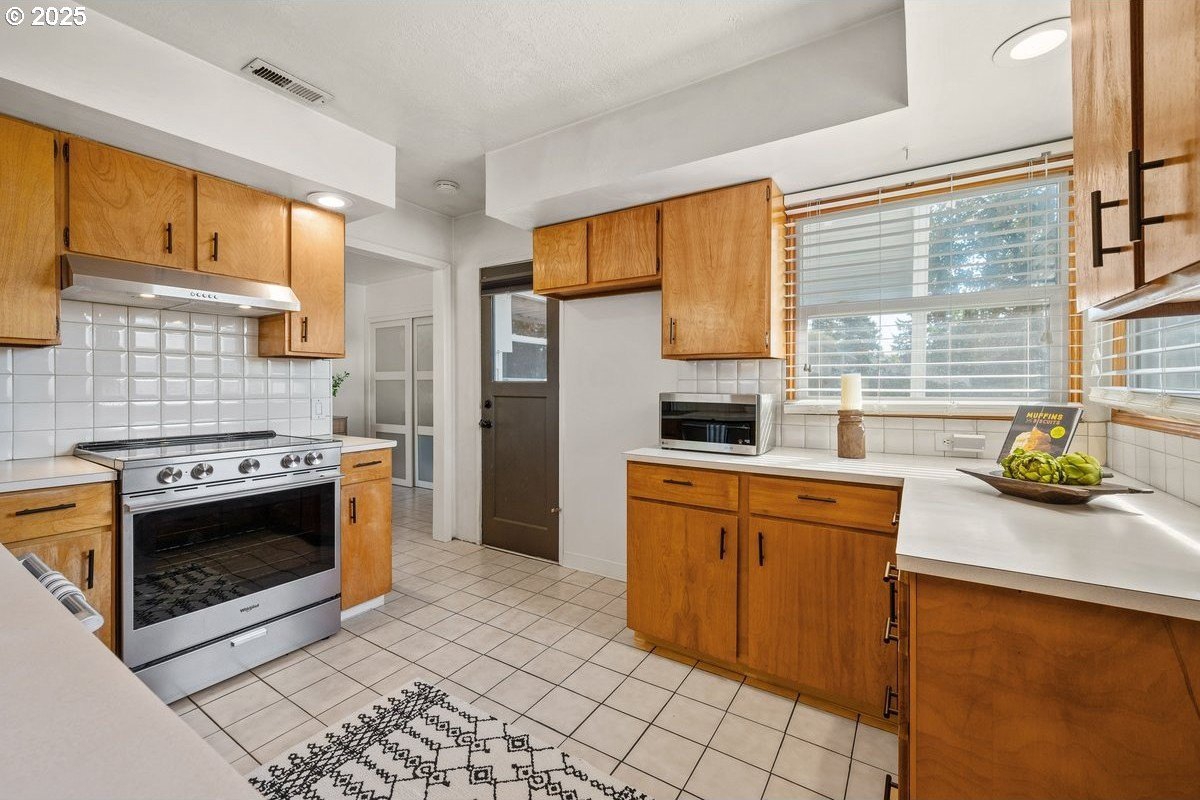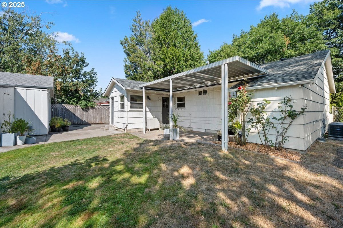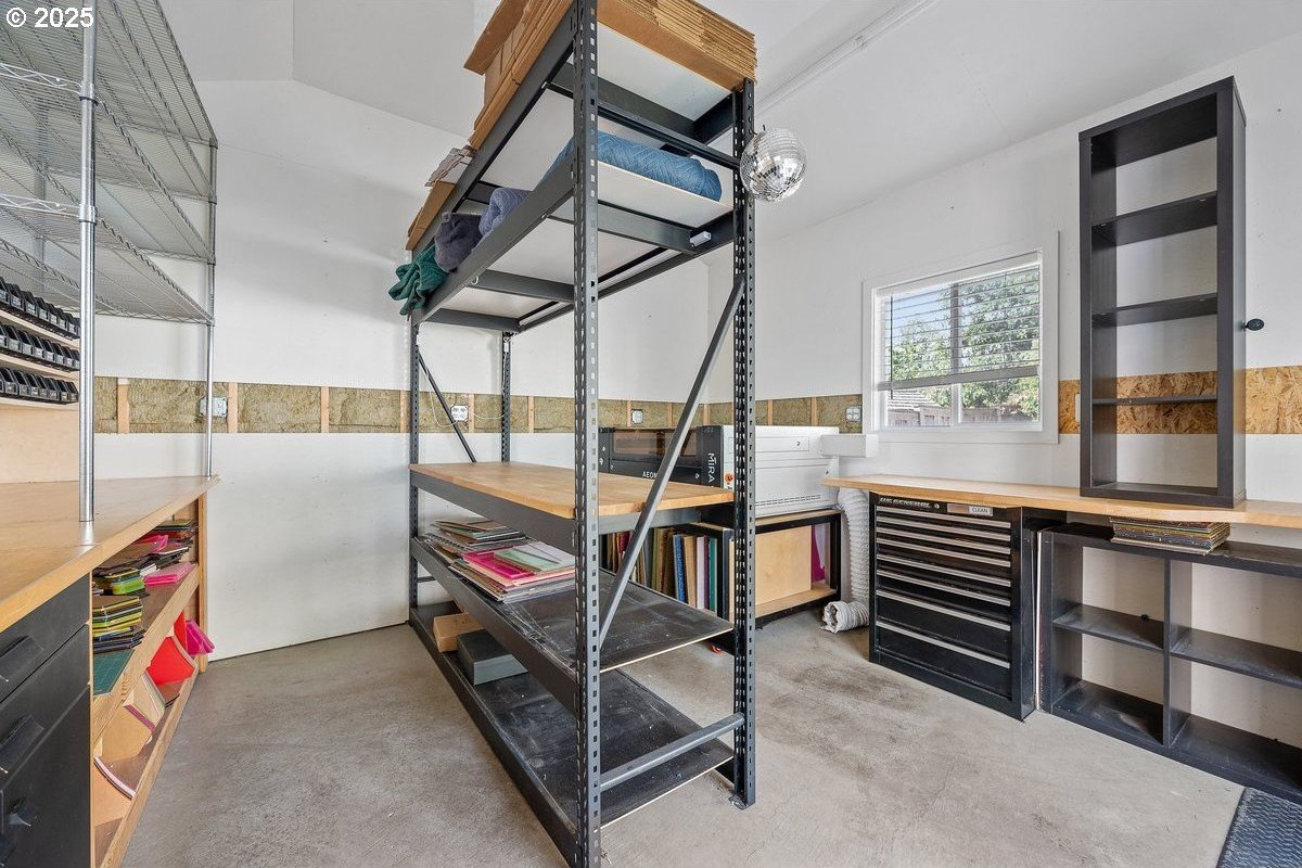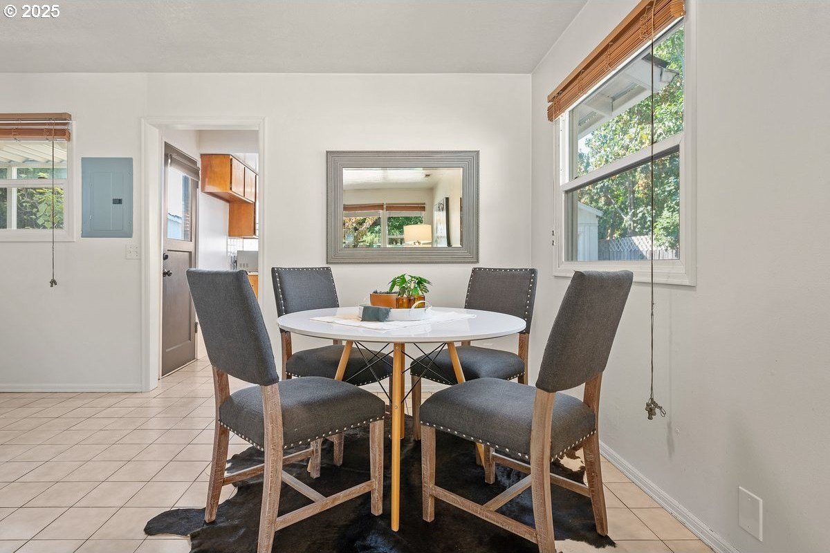 Solidly built 50's ranch in convenient location. Easy access to I-205, Portland PIckles baseball stadium, Lents international farmer's market and shopping. Relax on the front porch overlooking Bloomington Park. The backyard is a dream come true for business endeavors or hobbies. Tucked safely behind a secure gate is the oversized garage with attached tool/storage room and a beautiful 14x14 detached studio with high ceilings, power and mini-split (not included in square footage). The backyard is large enough for gardening, pets and barbecues with friends. Inside the house you will find hardwood floors in the living room and bedrooms, tile floors in the dining room and kitchen. The kitchen layout is functional and features stainless steel appliances. Rest easy knowing there are many updated systems and mechanicals: roof and windows 2013 (approx), A/C 2019, gas furnace 2023, interior electrical panel 2015. Washer and dryer are included. [Home Energy Score = 6. HES Report at https://rpt.greenbuildingregistry.com/hes/OR10241247]