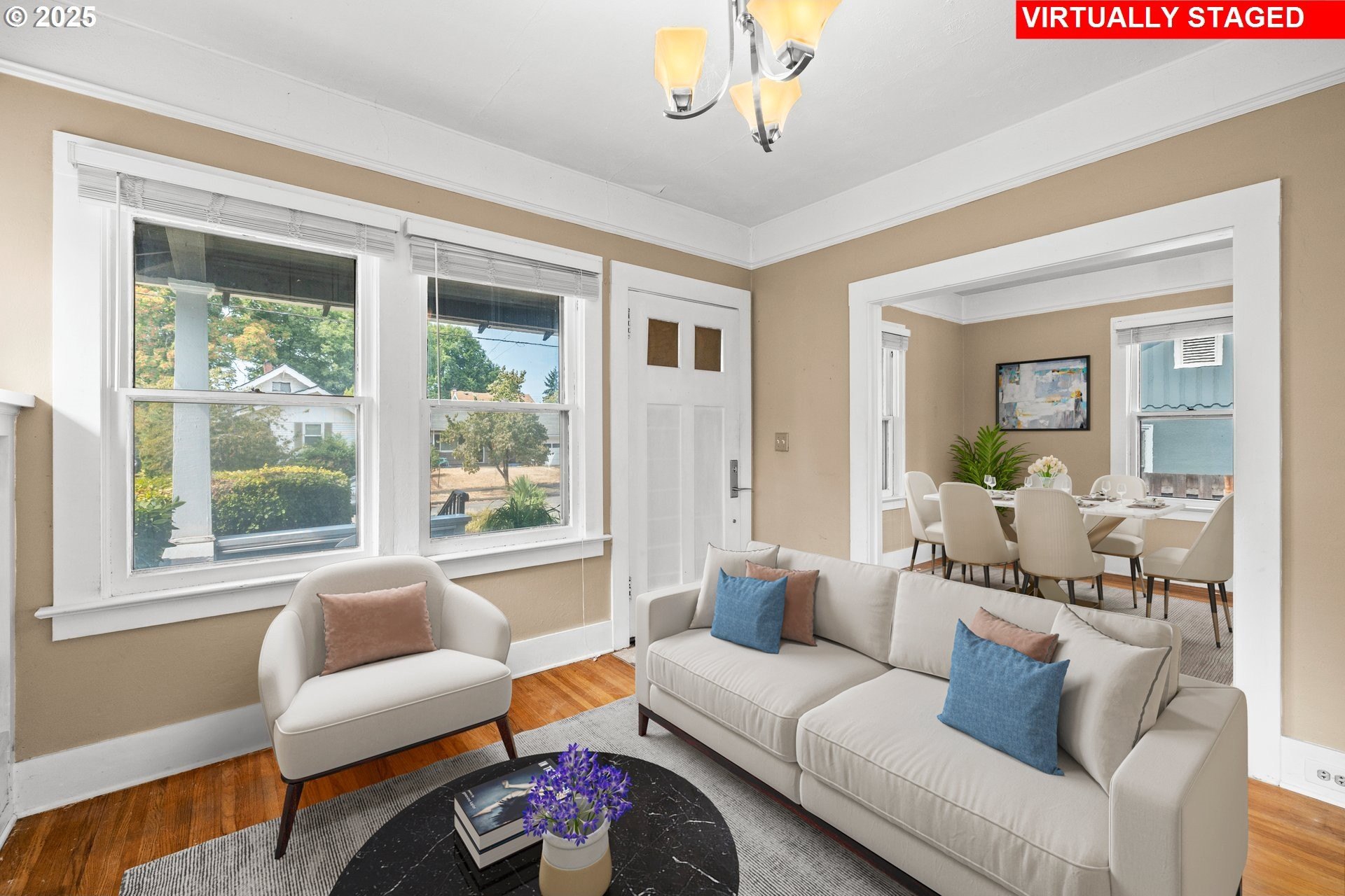 Open House Saturday Aug 30th from 11am-1pm. Welcome to 304 NE 63rd Ave, a timeless NE Portland gem tucked into the heart of the highly sought-after North Tabor neighborhood. This classic home offers the perfect blend of character, location, and potential—ideal for anyone looking to put down roots in one of the city's most walkable and bike-friendly areas. Just a short stroll away, you’ll find everything from major grocery stores to a vibrant scene of restaurants, pubs, shops, and farmers markets.Step inside to find hardwood floors that grace the main level, adding warmth and charm throughout. The home features a main-level bedroom and bath for ease and accessibility. A flexible dining area, previously a bedroom with a closet, offers potential to be converted back—allowing for a second bedroom on the main floor with minimal effort. Attentional interior amenities include a gas fireplace, and an indoor laundry. Relax on the peaceful covered front porch complete with a swing—perfect for morning coffee or evening unwinding. The oversized detached one-car garage provides excellent storage or workshop potential. Out back, a huge fully fenced yard offers endless possibilities for gardening, play, or future outdoor entertaining spaces.This location offers urban convenience with a dose of natural beauty. While the seller will make no repairs, the opportunity is ripe for someone to bring their vision and make this home truly shine. Don’t miss this soulful, centrally located Portland classic ready for your next chapter! [Home Energy Score = 3. HES Report at https://rpt.greenbuildingregistry.com/hes/OR10241538]