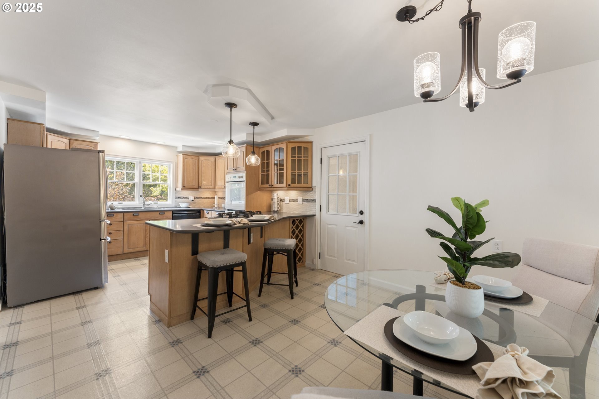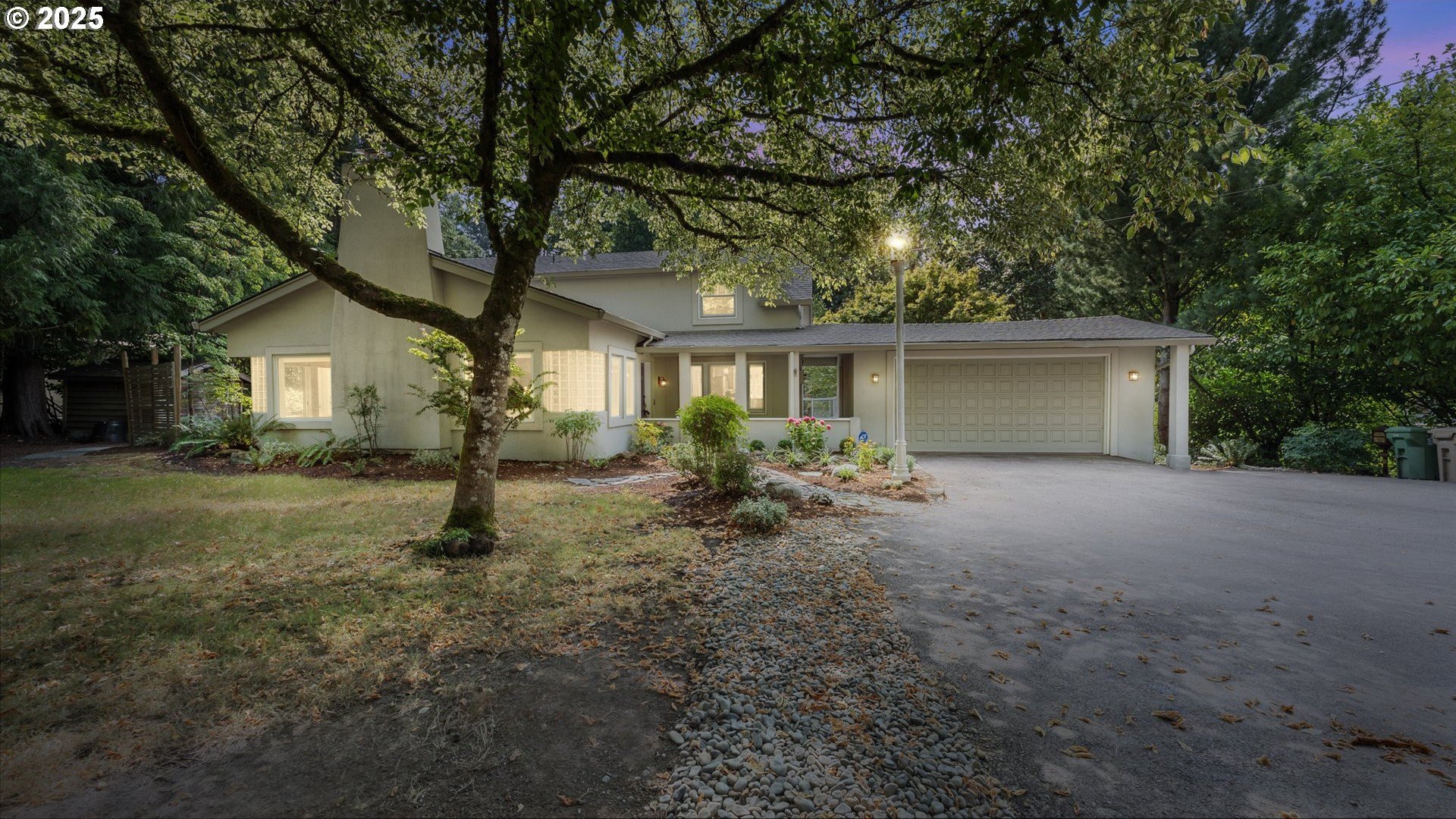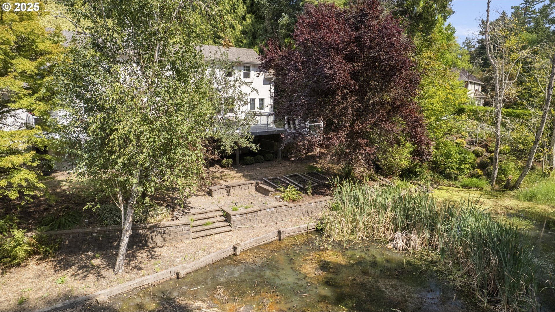 Open Sunday 10am-1pm. Welcome to a timeless 1940s custom home where classic elegance meets modern comfort on a picturesque .37-acre setting along Nettle Creek forming your private natural wetland, a sanctuary for ducks, geese, frogs, & other wildlife. This 3,878 sq ft, 4-bedroom, 3.5-bath residence balances serenity & convenience: just 1.5 miles to Lake View Village dining, boutiques, & grocers, with quick access to Oswego Lake Country Club, Oswego Lake, & multiple local parks.Inside, the home is refreshed with all-new interior paint & new Berber carpet in the living room, stairwells, & bedrooms, and features central air for year-round comfort. The main level showcases a grand living room with wood-burning fireplace & illuminated coved ceilings; a formal dining room with hardwoods; an expansive office with hardwoods & private patio; and a convenient half bath. A main-level deck spanning the length of the home—complete with built-in hot tub—creates effortless indoor-outdoor living.Upstairs, the primary suite is joined by two guest bedrooms, a full guest bath, & an office with a private balcony overlooking the grounds.The lower level is an entertainer’s haven with a great room, gas fireplace, pool table, eat-area, & a handy kitchenette with mini-fridge. A laundry room (washer & dryer included), full bath, ample storage, & exterior entry to the backyard complete the level.Outdoors, the terraced grounds invite leisure & play with raised garden beds, plum & hazelnut trees, blueberry bushes you can pick from your deck, a recirculating waterfall with mini bridge flowing into the wetlands, sprinkler system, tool shed, & an expansive deck. A two-car garage provides generous parking & storage. A rare blend of peaceful living & upscale convenience.
