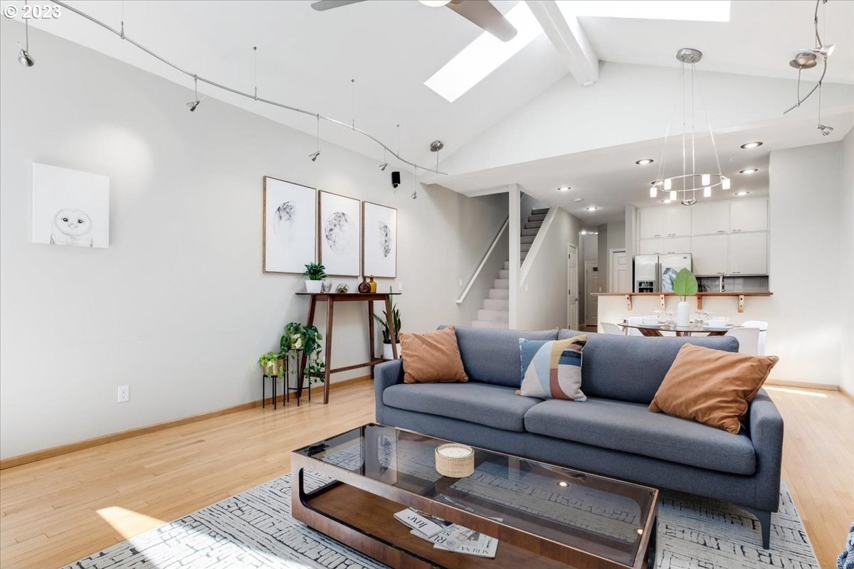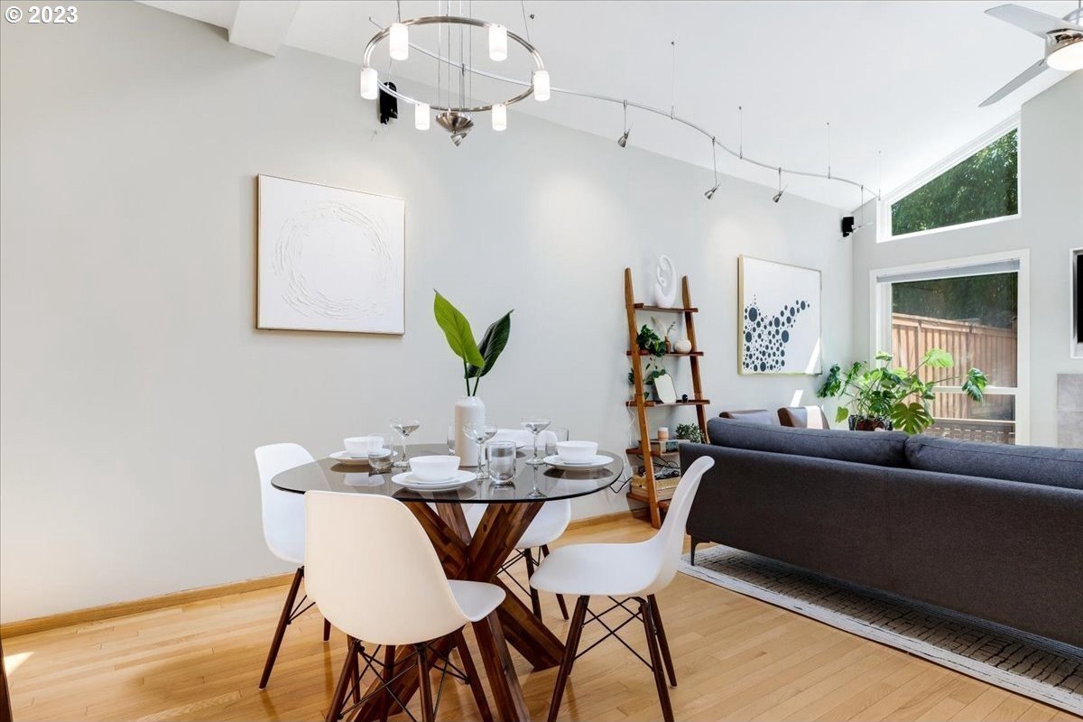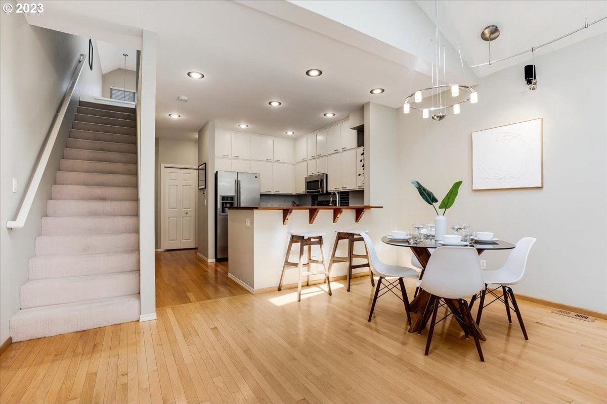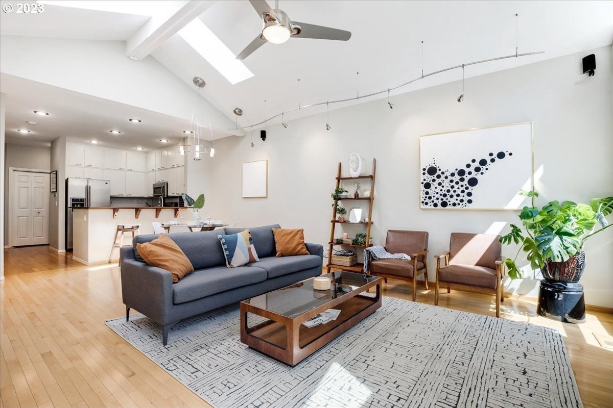 Fantastic Nob Hill townhome, a quiet retreat full of natural light in the heart of trendy NW Portland. This must-see is not just a home but offers the perfect lifestyle just blocks from boutiques, cafes, and restaurants as well as Wallace & Forest Parks. Fresh design throughout with quartz counters, gas cooking,updated bathrooms, hardwood floors, skylights, wired for sound, a/c, and the perfect outdoor patio space ideal for entertaining. With high ceilings and beautiful windows, you'll be sure to love coming home to your spacious great room floor plan with 2 beautiful bedrooms upstairs. This home is fully equipped with lots of storage space and a full laundry room. Wonderful investment property with limited CCRs, NO HOA, and min 30-day rentals allowed. Just a short distance to OHSU, I-405, Nike, Intel, and the Tech Corridor!