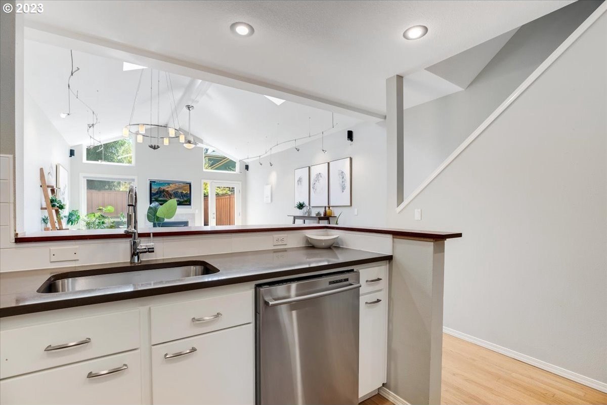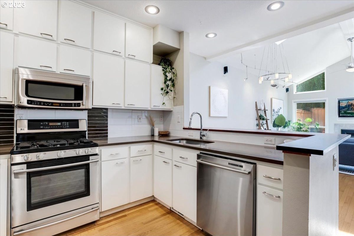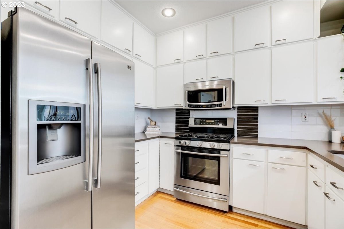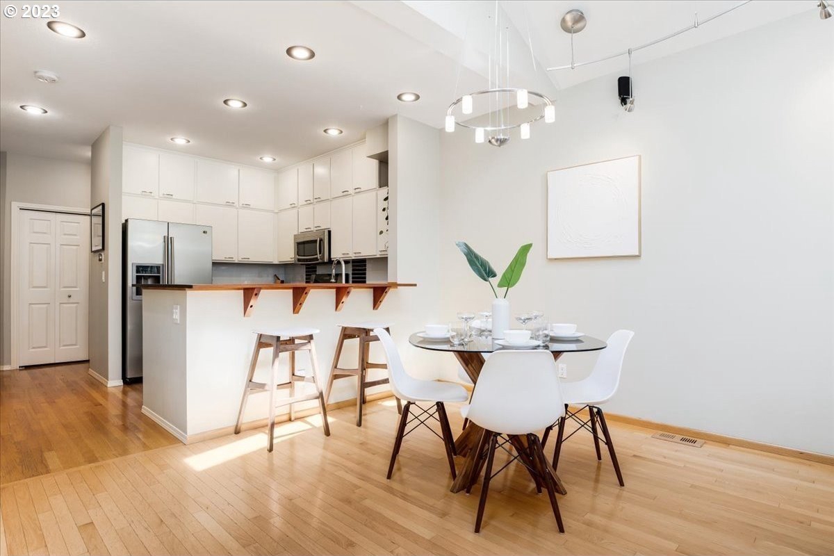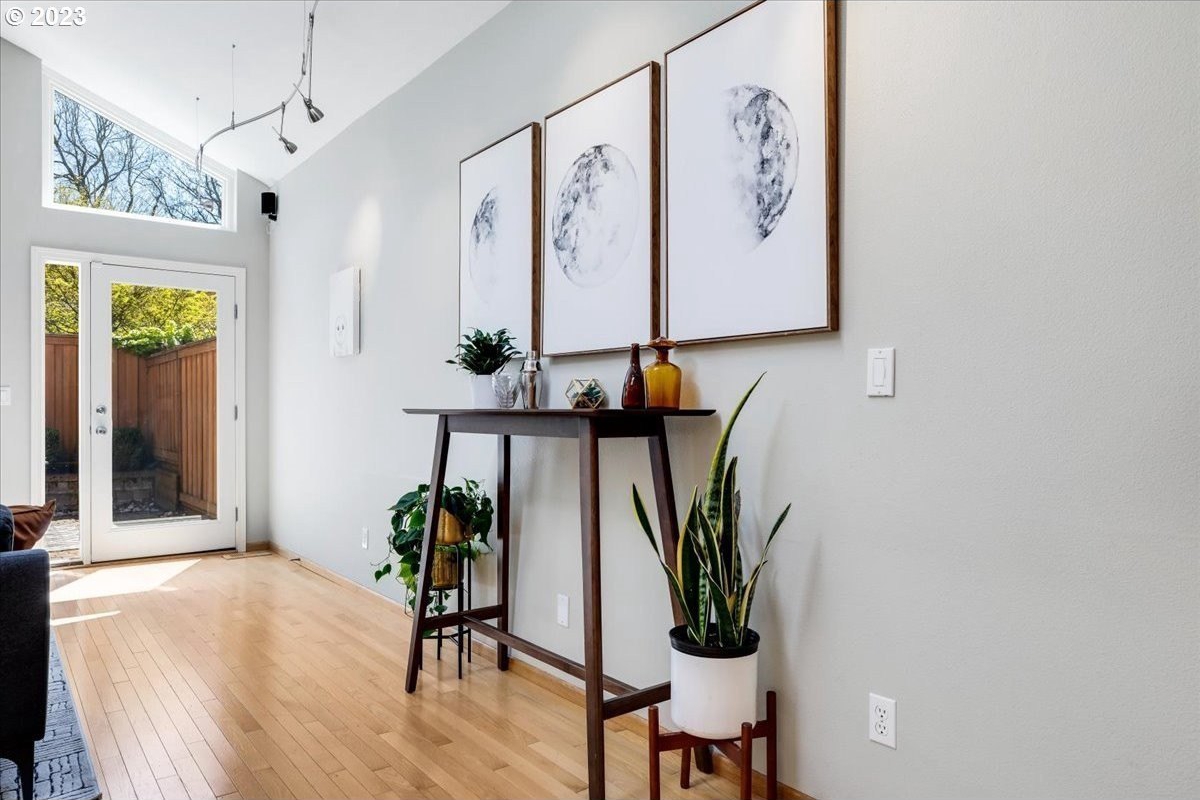 Fantastic Nob Hill townhome, a quiet retreat full of natural light in the heart of trendy NW Portland. This must-see is not just a home but offers the perfect lifestyle just blocks from boutiques, cafes, and restaurants as well as Wallace & Forest Parks. Fresh design throughout with quartz counters, gas cooking,updated bathrooms, hardwood floors, skylights, wired for sound, a/c, and the perfect outdoor patio space ideal for entertaining. With high ceilings and beautiful windows, you'll be sure to love coming home to your spacious great room floor plan with 2 beautiful bedrooms upstairs. This home is fully equipped with lots of storage space and a full laundry room. Wonderful investment property with limited CCRs, NO HOA, and min 30-day rentals allowed. Just a short distance to OHSU, I-405, Nike, Intel, and the Tech Corridor!