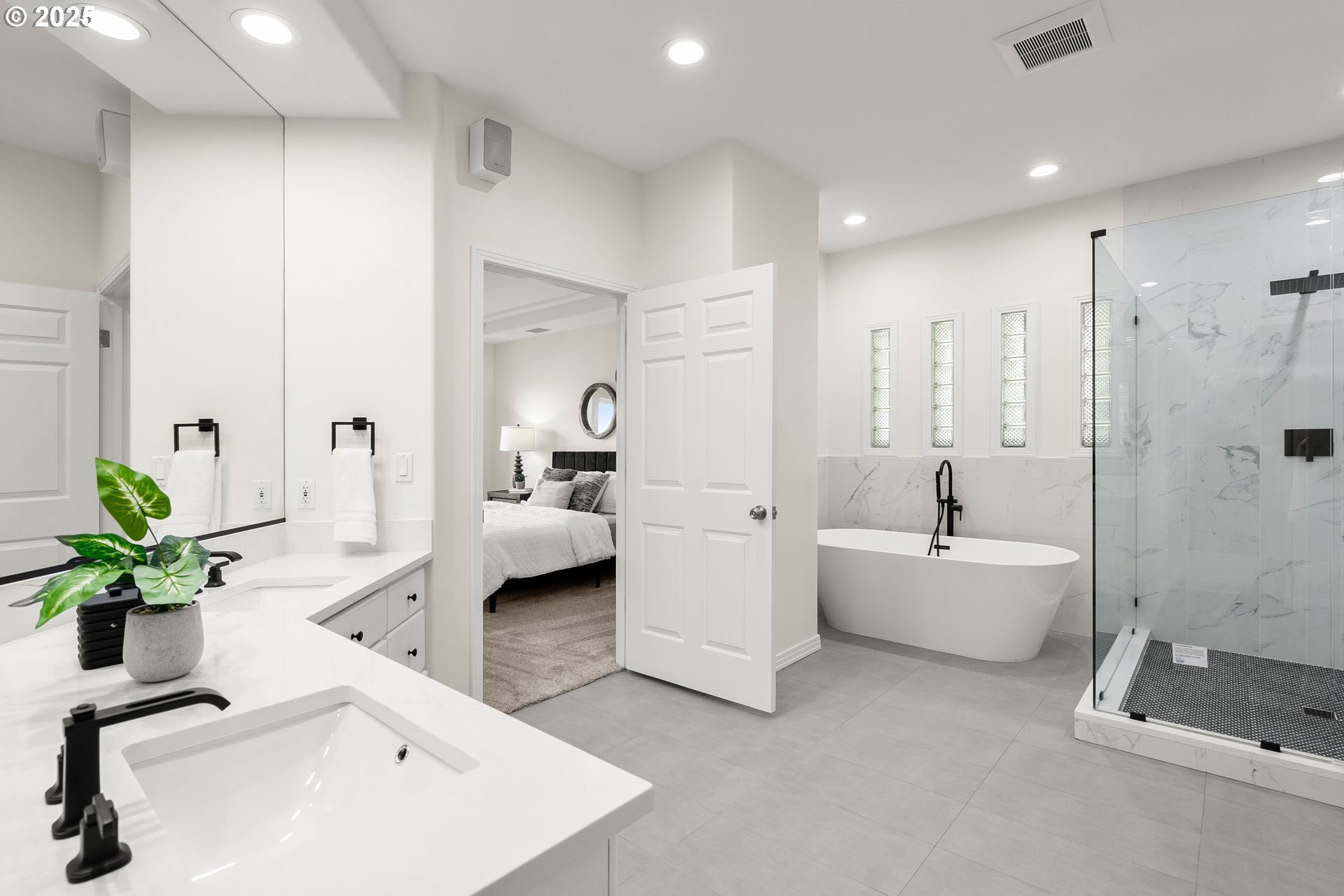 Luxury Meets Comfort in Forest Heights! Welcome to your dream home in the highly sought-after Forest Heights neighborhood! This stunning 4-bedroom, 3.1-bathroom home- thoughtfully remodeled with over $170,000 in updates, offering a perfect blend of luxury, comfort, and style. The grand foyer with soaring ceilings and elegant marble flooring that sets the tone for the rest of the home. The formal living and dining rooms impress with two-story floor-to-ceiling windows, wainscoting, and a gas fireplace. The spacious family room flows into a gourmet kitchen featuring stainless steel appliances, 3cm quartz countertops, a cooktop with exhaust, updated cabinetry with under- and over-cabinet lighting, and pantry. Work or study in peace in the private office/den, complete with built-in shelving and classic French doors. Upstairs, the primary suite is a true retreat with a remodeled spa-style bathroom, including a soaking tub, step-in tile shower, dual quartz vanities, and a private balcony overlooking the greenbelt. The lower level offers incredible flexibility with a large bonus/media room, an additional bedroom, and a full bathroom—ideal for guests, hobbies, or multigenerational living. Updates include: Brand new 63oz carpet , 8lb pad, LVP and tile flooring, updated lighting throughout with LED bulbs, Fresh interior paint including walls, ceilings, trim, cabinets, and doors, New hardware and modern lighting fixtures, Newer Trane high-efficiency two-stage furnace & A/C, Newer Presidential roof, expansive Trex deck on the main-level balcony, Professionally updated landscaping with new sod and sprinkler system. Enjoy peace and privacy with greenbelt views while being just minutes from top rated schools, shopping, dining, DT, parks, and trails. OPEN HOUSE AUG 30/31 SAT & SUN 12PM -2PM
