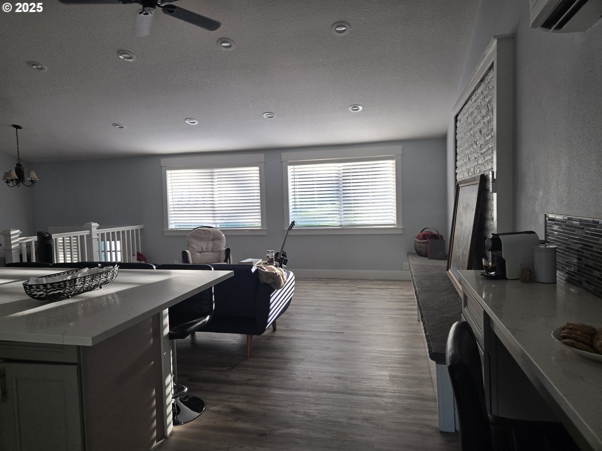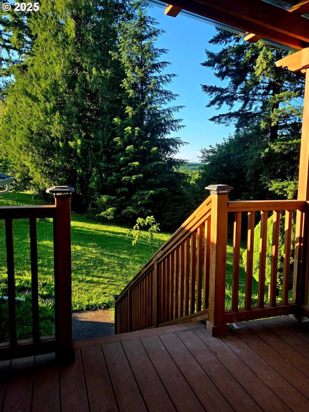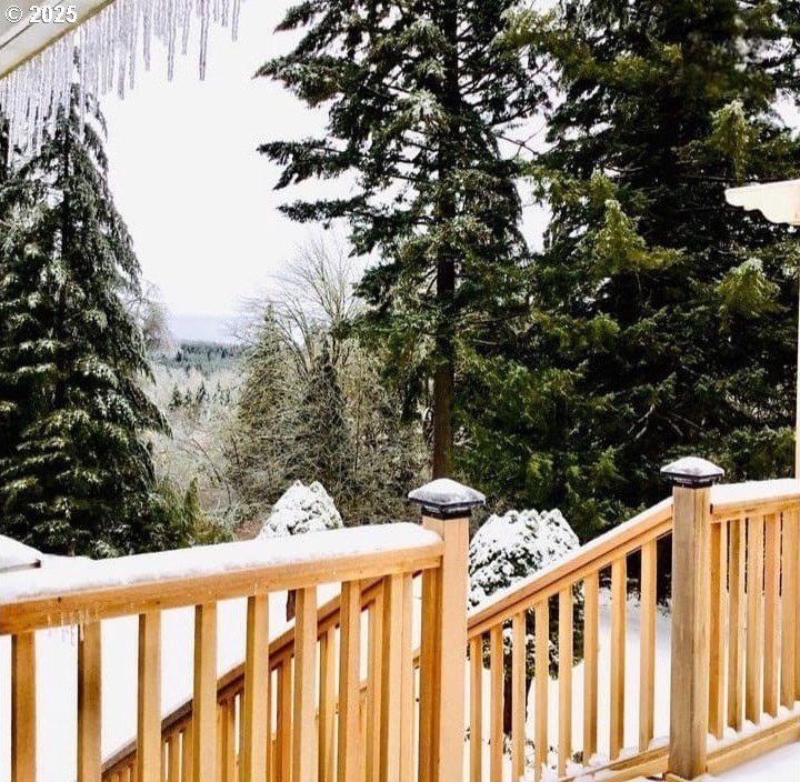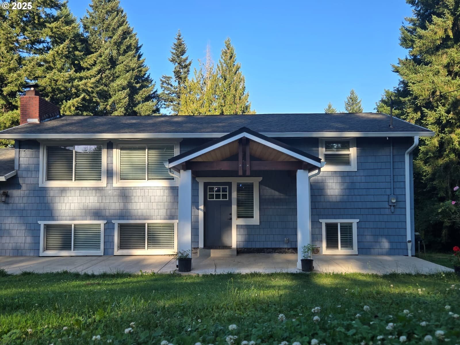 This charming, remodeled 2000 sqft split-level home in the sought-after Boring, OR, is situated on 7.2 acres of beautiful, lush, secluded woodland. Boasting beautiful and breathtaking views of Mt. Hood, while surrounded by calm and natural beauty. The front yard opens to a gently sloping lawn, dappled with shadows from towering trees. The thoughtful and maintained landscaping features a variety of shrubs, trees, and wildflowers that bloom year-round, creating a picture-perfect scene in every season. The spacious and beautiful deck is where you'll find yourself wanting to spend much of your time while entertaining, relaxing with family, or simply enjoying your morning coffee while taking in the mountain views. This home blends mid-century modern and contemporary suburban styles with a few unique touches that make this home feel both grounded and inviting. The kitchen and dining room is an open-concept space with vaulted ceilings, light vinyl floors, and soft gray tones. Features include a sleek quartz kitchen island with a mosaic backsplash and abundant natural light, perfect for stylish, modern living with a warm, personal touch, creating an ideal space to gather. Going down the staircase and just ahead you will find a charming bathroom with a walk-in shower and double vanity. Just down the hallway, you will find 3 bedrooms, one having a backdoor that showcases the beauty of the outdoors and the frequent deer visitors. You will also find a cozy, modern living room featuring a stone fireplace with a wood-burning stove. The master bedroom offers 2 spacious closets and a door leading to the deck. This exceptional property also includes a 3-bay shop, perfect for hobbies or projects, and right next to the shop you will find a pleasant and endearing studio or man cave with its own meter with full power, perfect for hobbies or projects. Included is also a manufactured home, 2 sheds, and a barn.