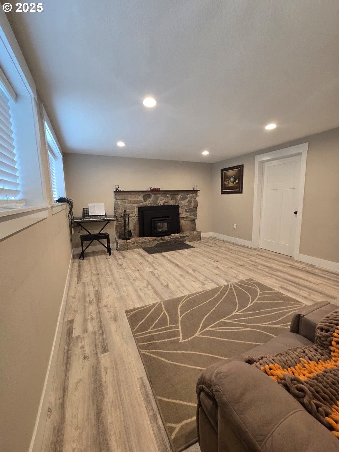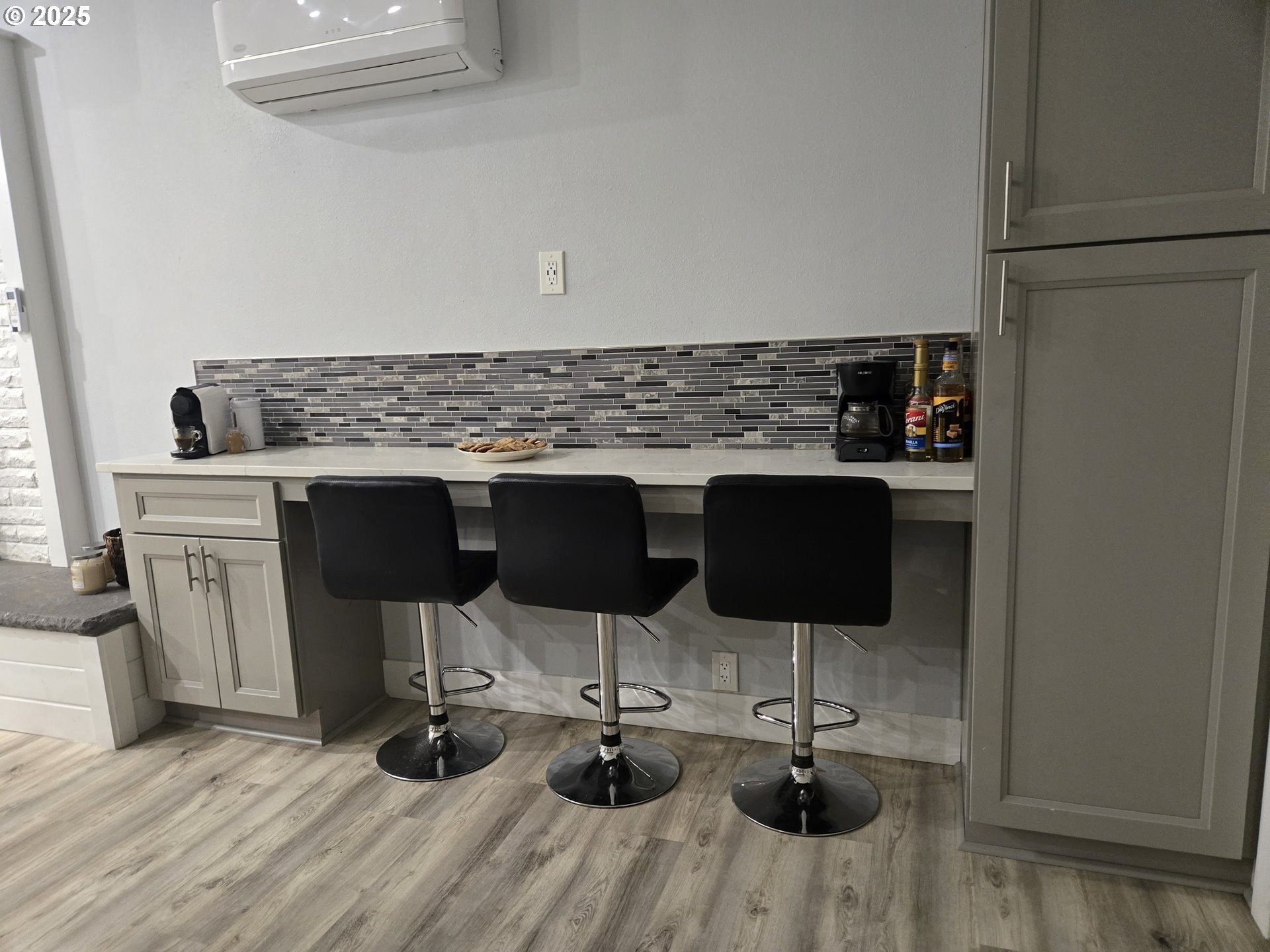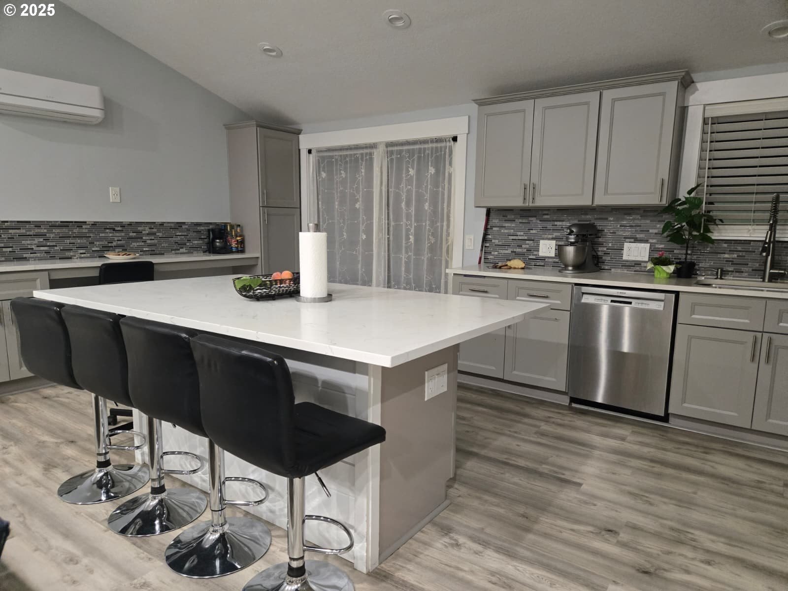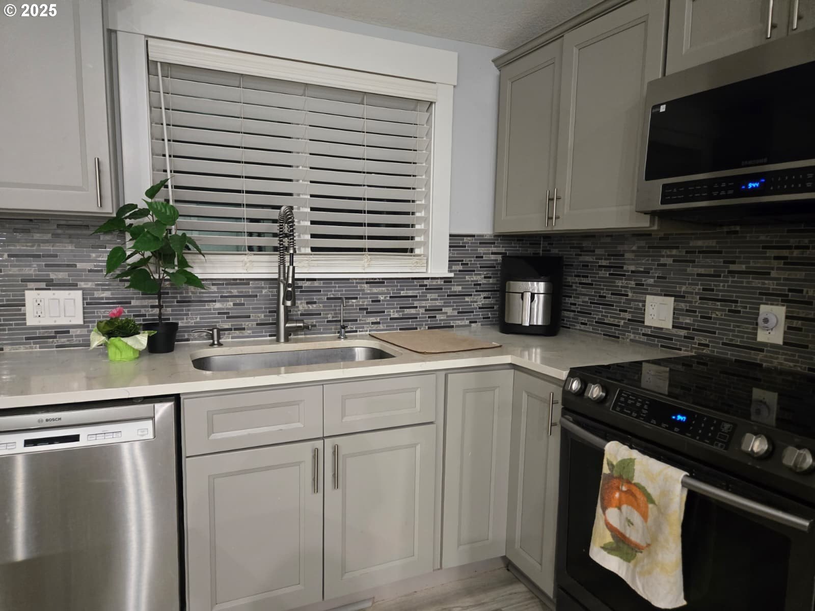 This charming, remodeled 2000 sqft split-level home in the sought-after Boring, OR, is situated on 7.2 acres of beautiful, lush, secluded woodland. Boasting beautiful and breathtaking views of Mt. Hood, while surrounded by calm and natural beauty. The front yard opens to a gently sloping lawn, dappled with shadows from towering trees. The thoughtful and maintained landscaping features a variety of shrubs, trees, and wildflowers that bloom year-round, creating a picture-perfect scene in every season. The spacious and beautiful deck is where you'll find yourself wanting to spend much of your time while entertaining, relaxing with family, or simply enjoying your morning coffee while taking in the mountain views. This home blends mid-century modern and contemporary suburban styles with a few unique touches that make this home feel both grounded and inviting. The kitchen and dining room is an open-concept space with vaulted ceilings, light vinyl floors, and soft gray tones. Features include a sleek quartz kitchen island with a mosaic backsplash and abundant natural light, perfect for stylish, modern living with a warm, personal touch, creating an ideal space to gather. Going down the staircase and just ahead you will find a charming bathroom with a walk-in shower and double vanity. Just down the hallway, you will find 3 bedrooms, one having a backdoor that showcases the beauty of the outdoors and the frequent deer visitors. You will also find a cozy, modern living room featuring a stone fireplace with a wood-burning stove. The master bedroom offers 2 spacious closets and a door leading to the deck. This exceptional property also includes a 3-bay shop, perfect for hobbies or projects, and right next to the shop you will find a pleasant and endearing studio or man cave with its own meter with full power, perfect for hobbies or projects. Included is also a manufactured home, 2 sheds, and a barn.
