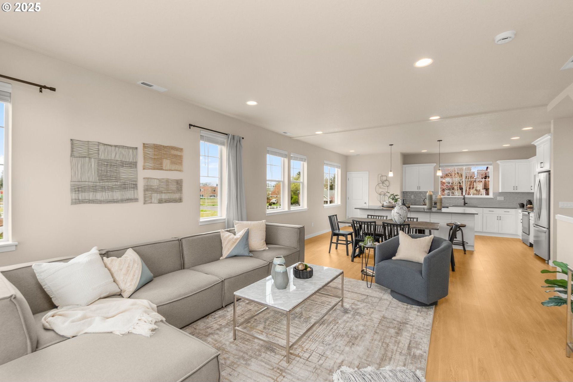 Brand New Luxury Townhome Community, Located in South Hillsboro! The Devon Plan offers 4 bedrooms, 3.5 baths, a large kitchen island + walk-in pantry and 9' ceilings or higher throughout entire home. Features include white cabinets, grey quartz counters & under-mount sinks in kitchen AND bathrooms, black matte hardware, lighting fixtures & faucets, stainless steel appliances, soft close doors & drawers at all cabinets and wide plank laminate hardwood flooring on entire main level. Stay warm in the winter with electric heat pump that will also keep you cool in the summer! The primary suite has a vaulted ceiling, walk-in closet, walk in shower, dual sinks and more. The upstairs loft area is a great flex space for a desk or small couch. The home has a two car side by side garage, 2 car driveway, and parking in front of the home. Covered deck off the great room with views out towards the Reserve Golf Course, plus a bedroom and full bath on the ground level. Grassy front yard, barkdusted side yard! 50 amp EV outlet in garage. Pictures are of a same floorplan in model building w/ similar finishes. Call for more information and to schedule your on-site appointment. Taxes TBD. Home is MOVE IN READY! [Home Energy Score = 7. HES Report at https://rpt.greenbuildingregistry.com/hes/OR10226120]
