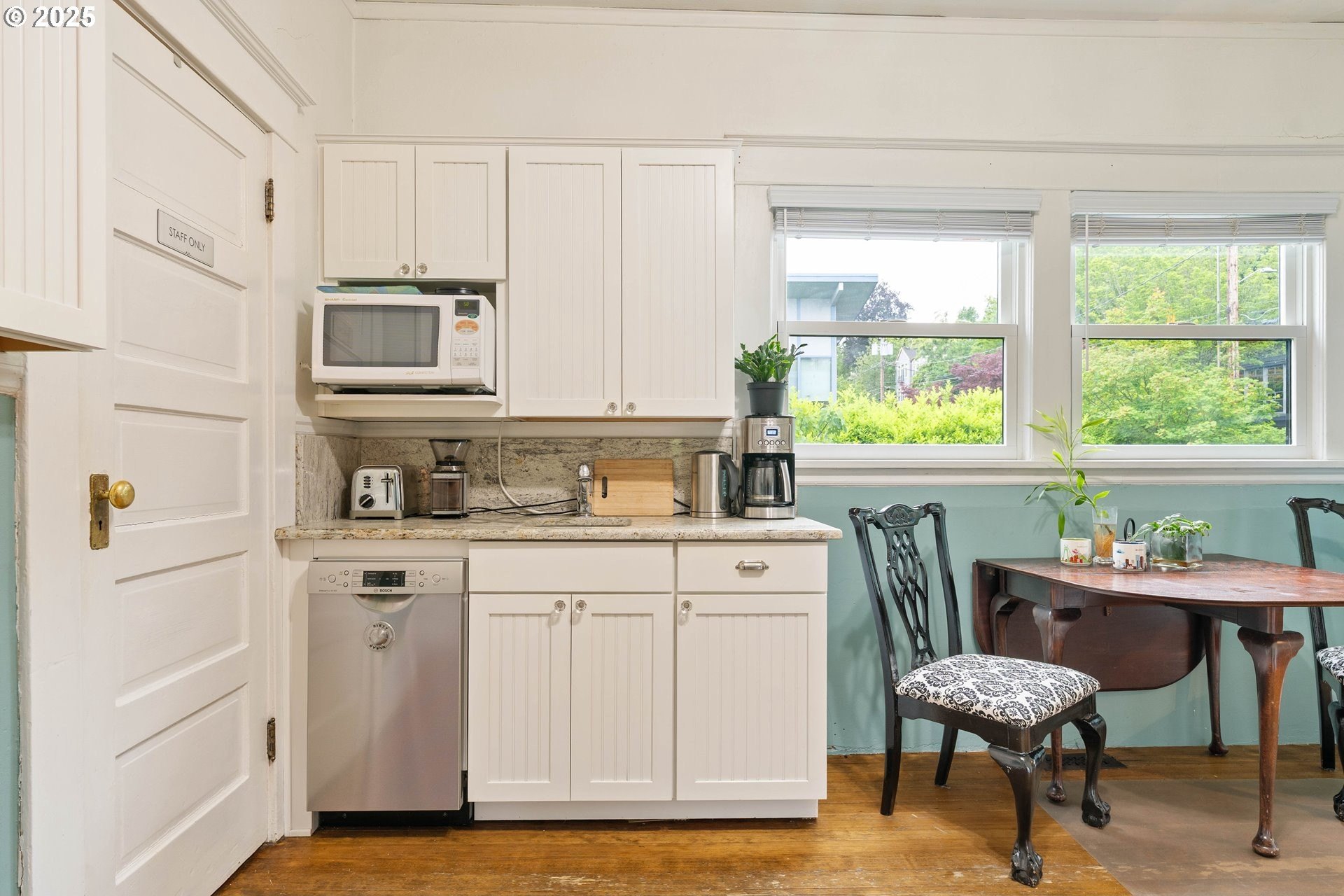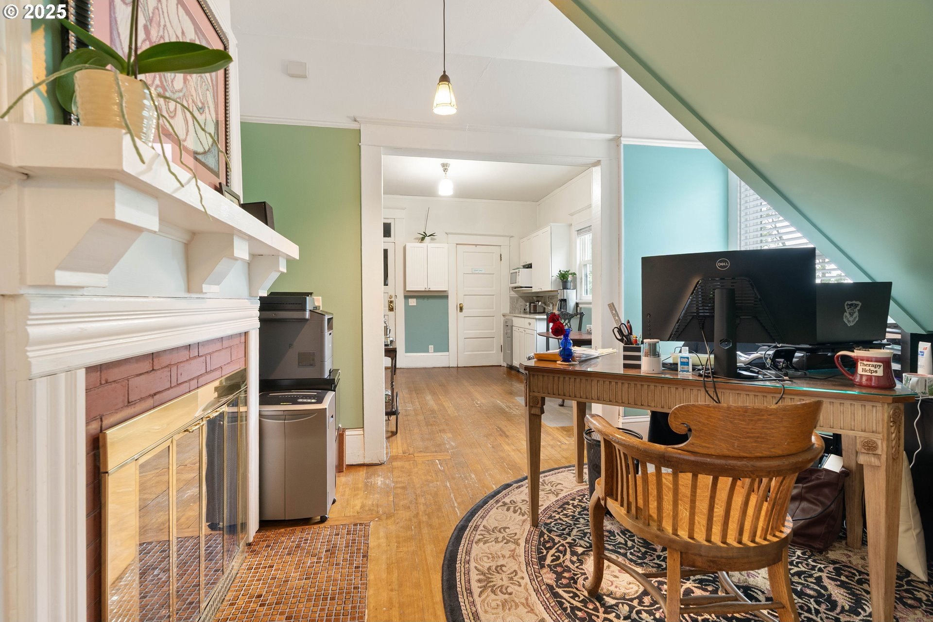 Tired of paying rent for your work space? Perfect Live / Work property! Introducing the original Kelly House, located in the vibrant South Waterfront area near the OHSU Plaza and OHSU Center for Health & Healing I & II . This prime Residential/Commercial/Office mixed-use property features stunning architecture and versatile spaces. Meticulously maintained and restored to perfection, the property offers multifaceted potential uses, The property showcases a beautiful wraparound porch, balconies, Mt Hood views and exquisite architectural details both inside and out (updates/upgrades by Arciform).The timeless Classic Portland Craftsman architecture seamlessly transitions from the exterior to the interior, highlighting rich woodwork and trim, built-ins, fireplaces, hardwood and wood floors, spacious rooms with high ceilings, crown moldings, and tin ceilings. A full, dry basement with higher ceilings provides additional spaces for use. The approximately 100x100 lot includes a paved section with 10 off-street parking spaces. Consider adding to this space for a garage, possible ADU or to create student housing or renting to food carts to enhance the already vibrant community."