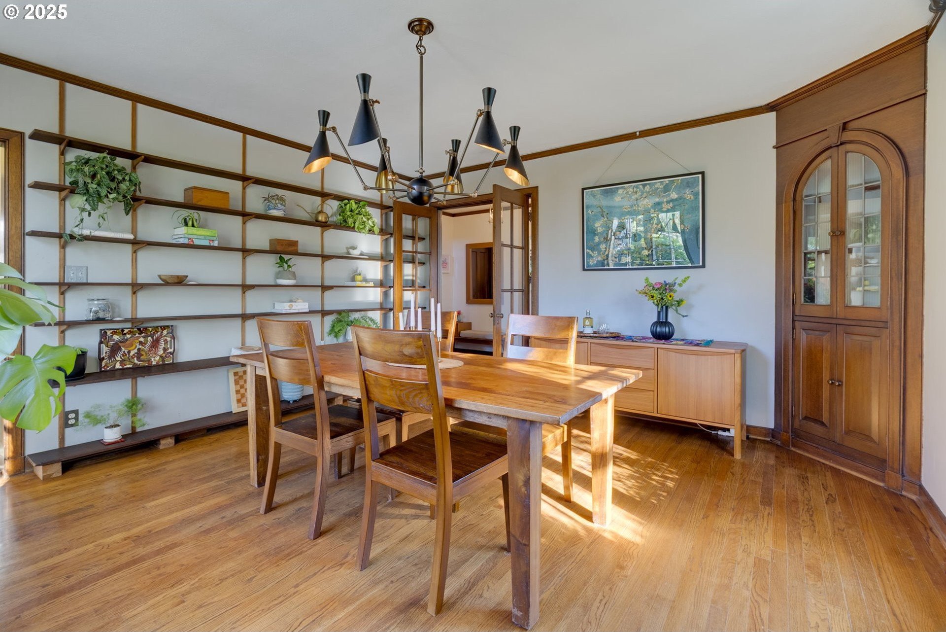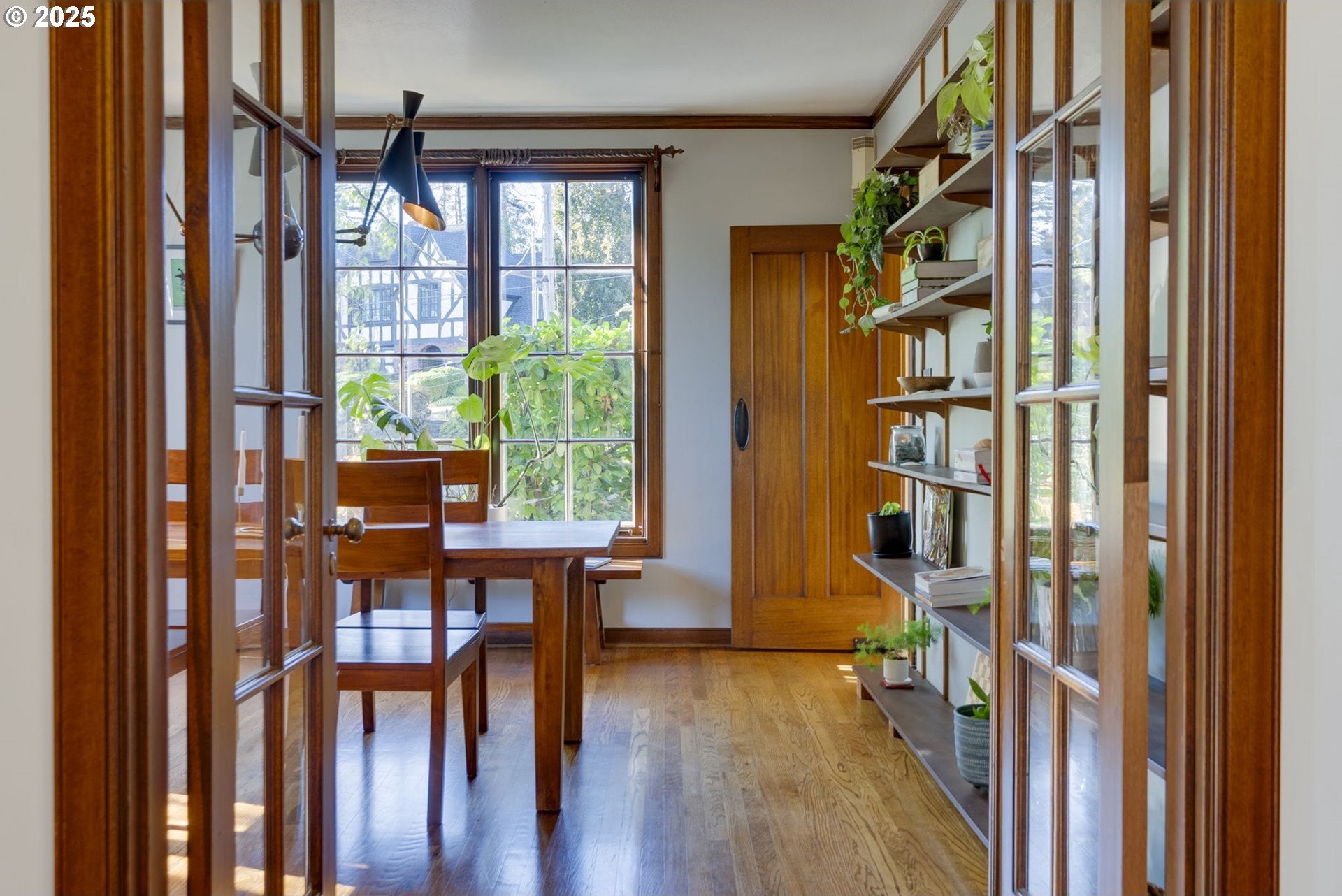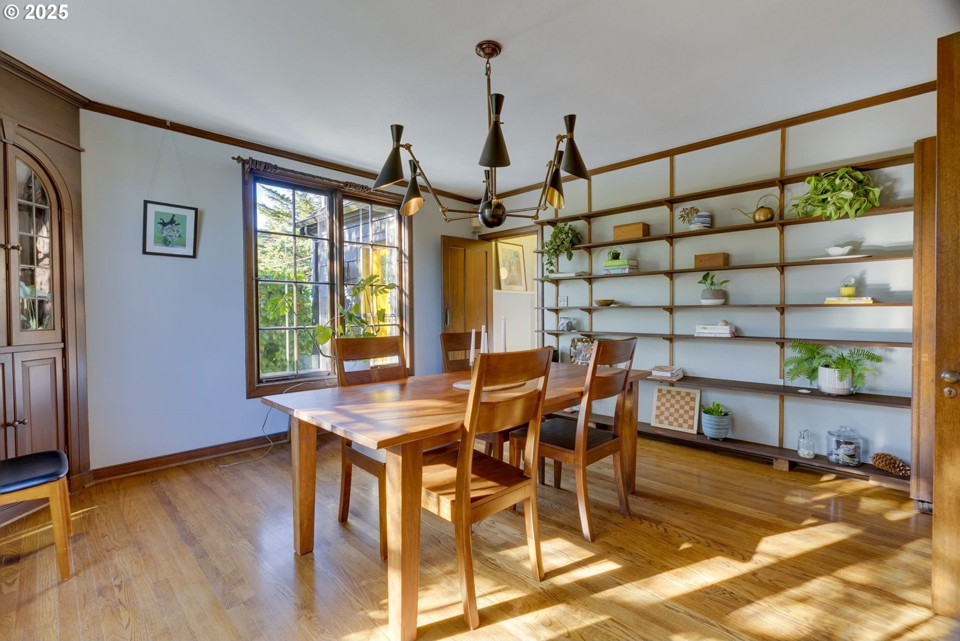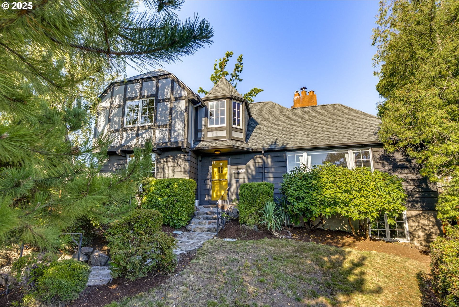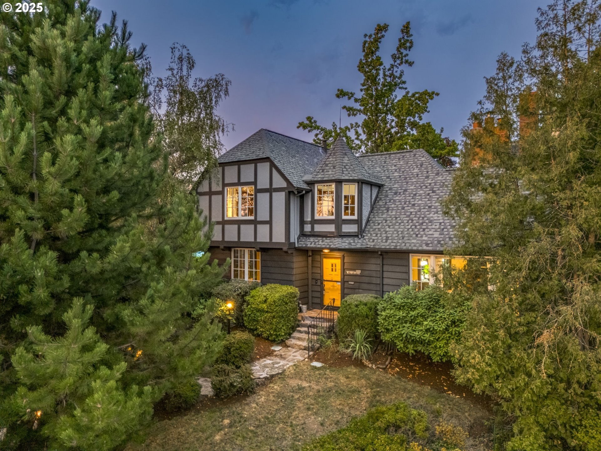 Perched atop the coveted Alameda Ridge, this timeless Tudor captures sweeping views of downtown Portland and blends classic craftsmanship with inviting living spaces. Rich hardwood floors, natural woodwork, and graceful built-ins fill the home with warmth, while abundant natural light brings every detail to life.The expansive main level is designed for connection—whether hosting elegant dinners in the formal dining room or relaxing in cozy sitting areas. Charming nooks provide perfect spots to curl up with a book or enjoy quiet conversation, while a half bath with retro wallpaper adds a playful touch of personality.Upstairs, three spacious bedrooms await, including a serene primary suite with an adjoining office or den—ideal for working from home, creating a private retreat (or adding a walk-in closet). The lower level includes a bonus living room and attached garage access, with plenty of potential for a home gym, or future expansion.Outdoors, a covered patio offer a year-round sanctuary, while a deck above the garage provides a tranquil perch for morning coffee or sunset views. Set within the boundaries of Portland’s sought-after schools, this home offers the perfect balance of location, lifestyle, and timeless charm.This is more than a home—it’s a rare opportunity to enjoy the unmatched views, charm, and community of one of Portland’s most beloved neighborhoods. [Home Energy Score = 3. HES Report at https://rpt.greenbuildingregistry.com/hes/OR10017719]