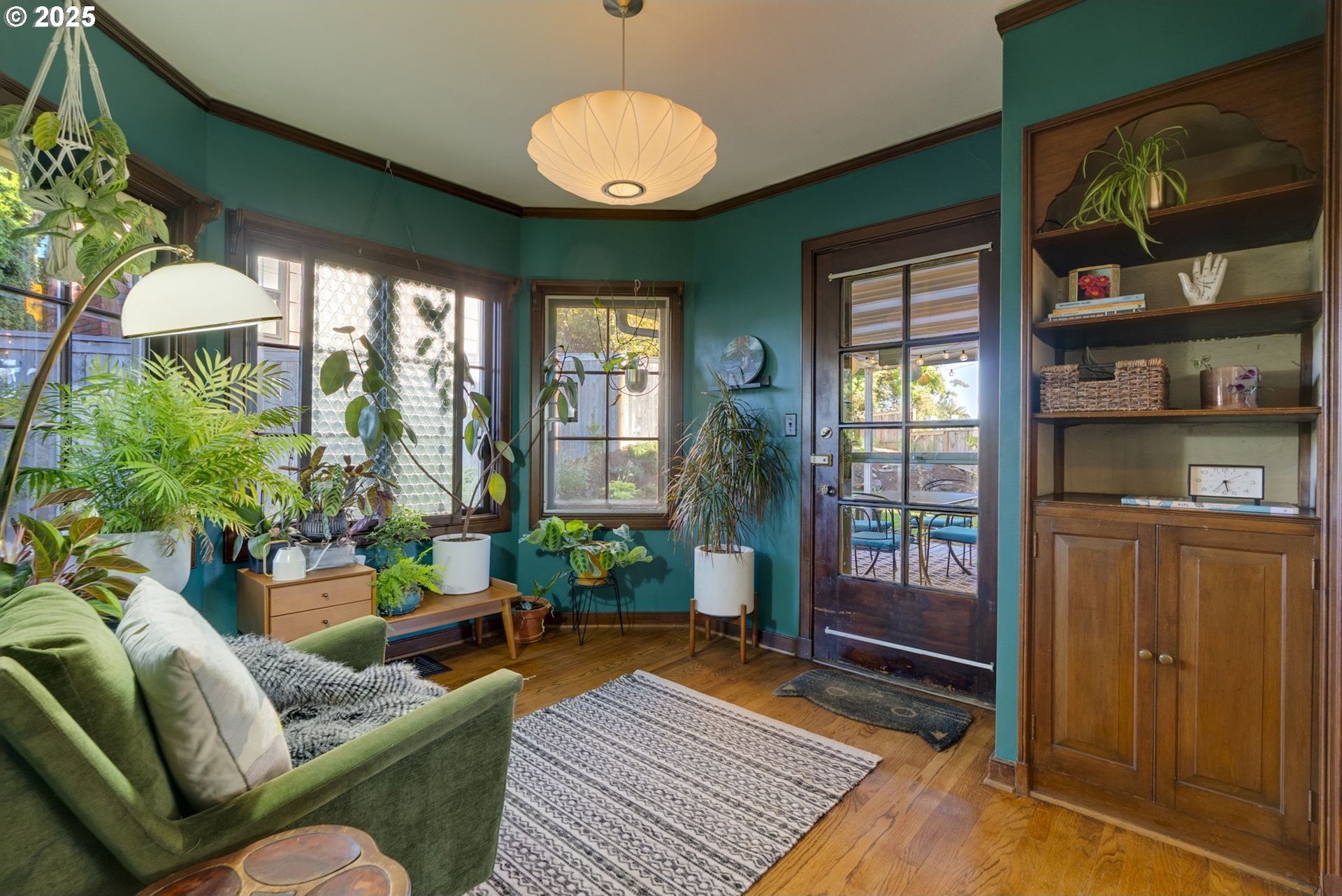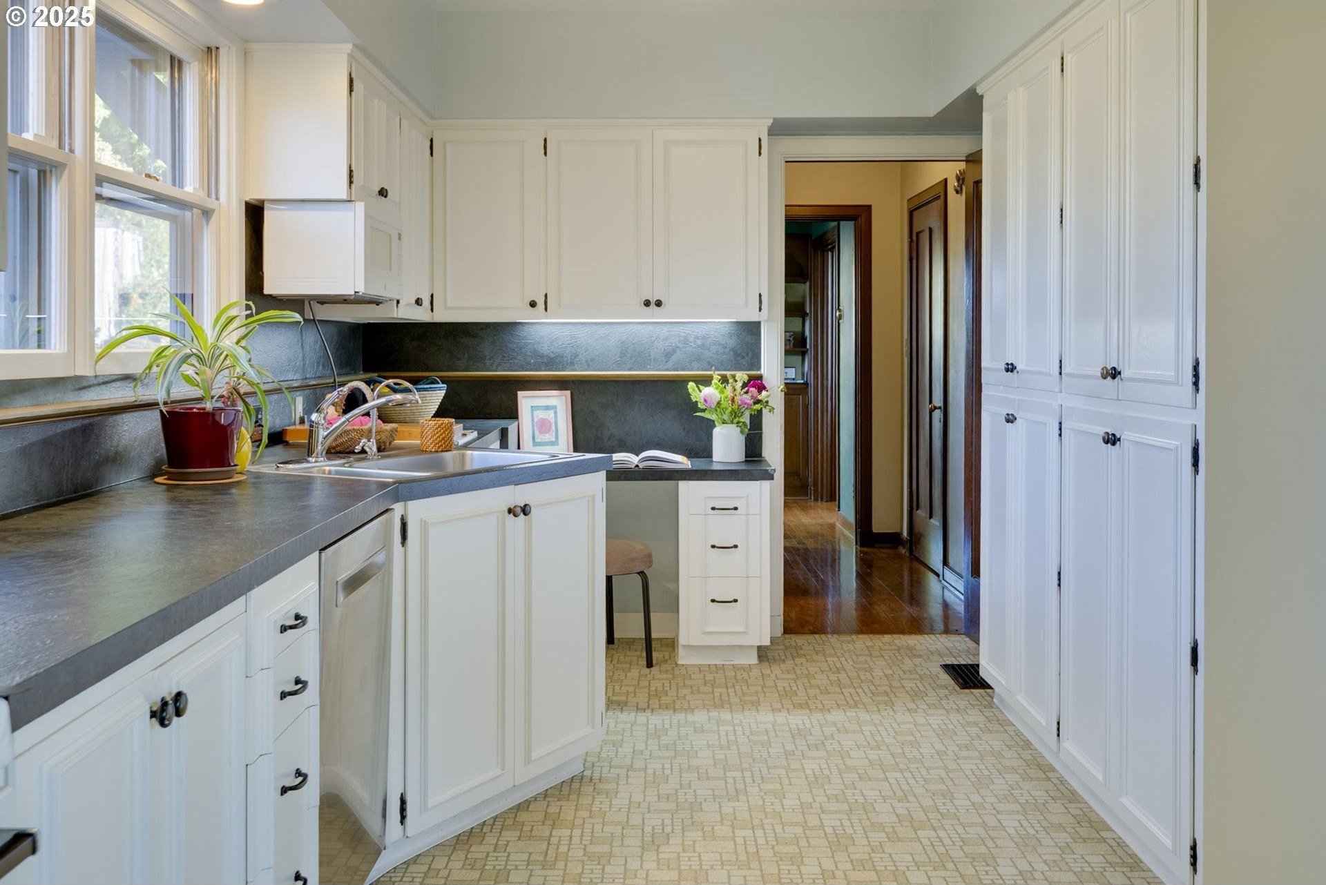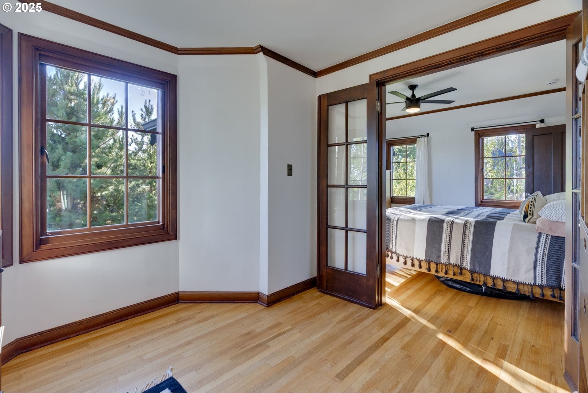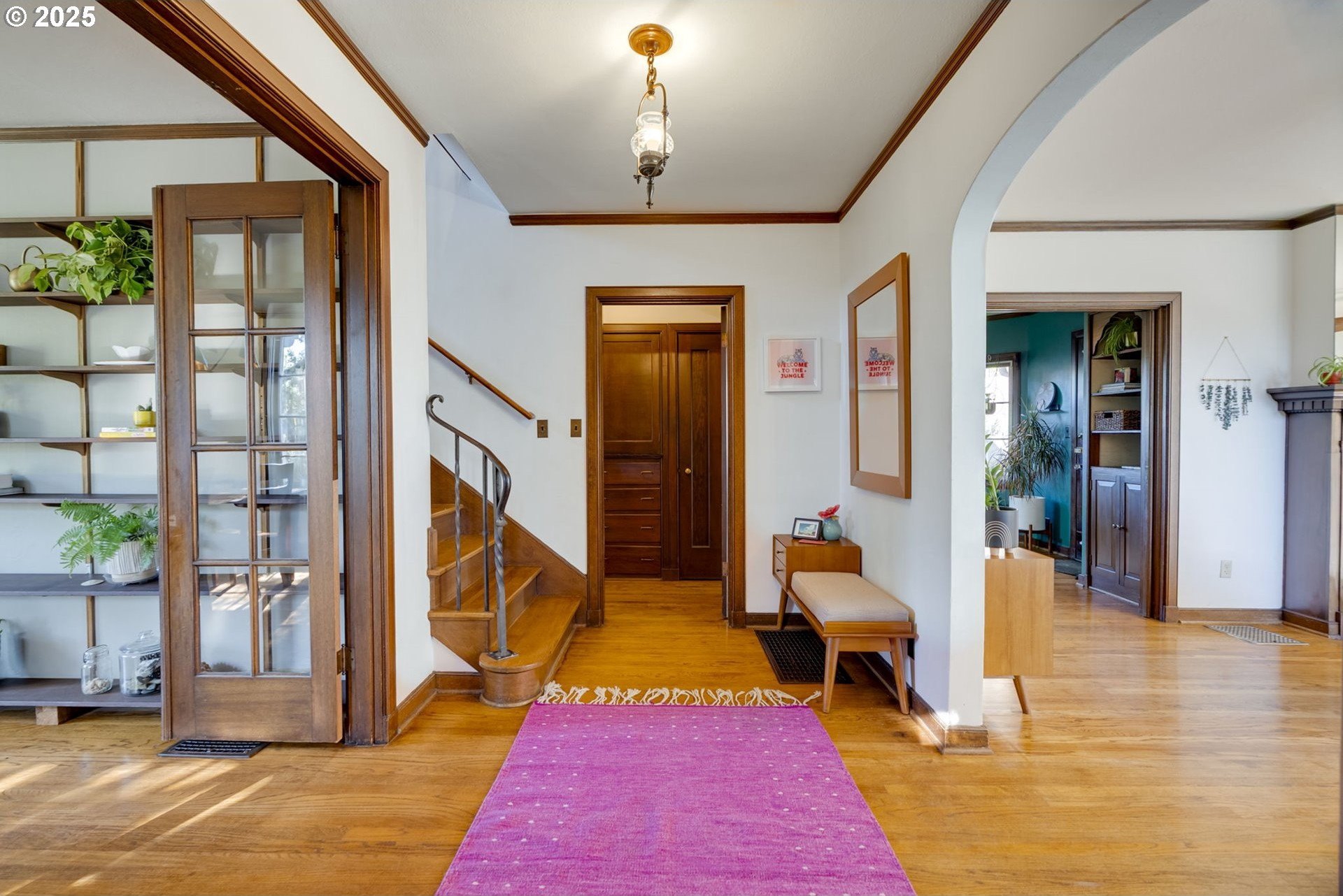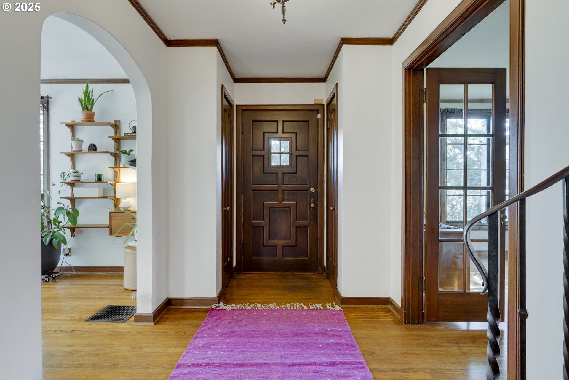 Perched atop the coveted Alameda Ridge, this timeless Tudor captures sweeping views of downtown Portland and blends classic craftsmanship with inviting living spaces. Rich hardwood floors, natural woodwork, and graceful built-ins fill the home with warmth, while abundant natural light brings every detail to life.The expansive main level is designed for connection—whether hosting elegant dinners in the formal dining room or relaxing in cozy sitting areas. Charming nooks provide perfect spots to curl up with a book or enjoy quiet conversation, while a half bath with retro wallpaper adds a playful touch of personality.Upstairs, three spacious bedrooms await, including a serene primary suite with an adjoining office or den—ideal for working from home, creating a private retreat (or adding a walk-in closet). The lower level includes a bonus living room and attached garage access, with plenty of potential for a home gym, or future expansion.Outdoors, a covered patio offer a year-round sanctuary, while a deck above the garage provides a tranquil perch for morning coffee or sunset views. Set within the boundaries of Portland’s sought-after schools, this home offers the perfect balance of location, lifestyle, and timeless charm.This is more than a home—it’s a rare opportunity to enjoy the unmatched views, charm, and community of one of Portland’s most beloved neighborhoods. [Home Energy Score = 3. HES Report at https://rpt.greenbuildingregistry.com/hes/OR10017719]
