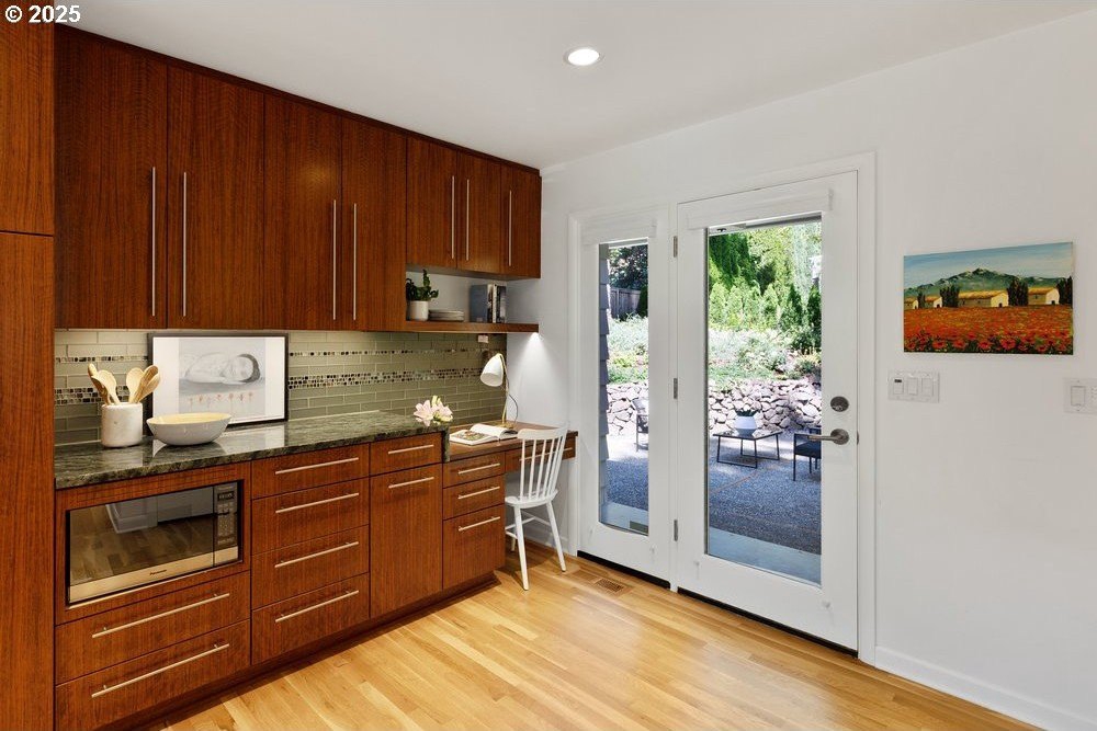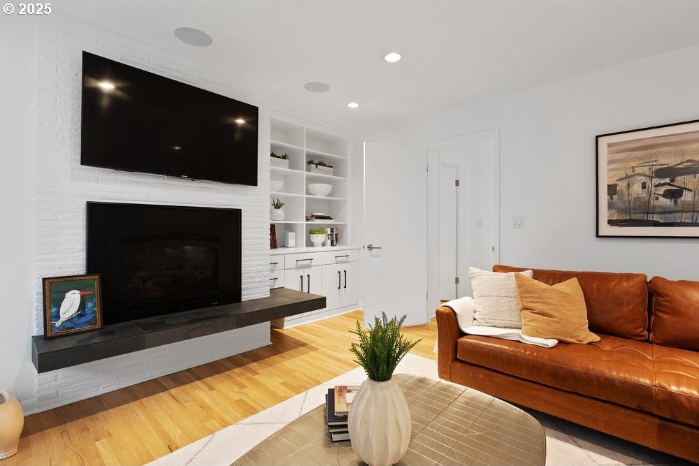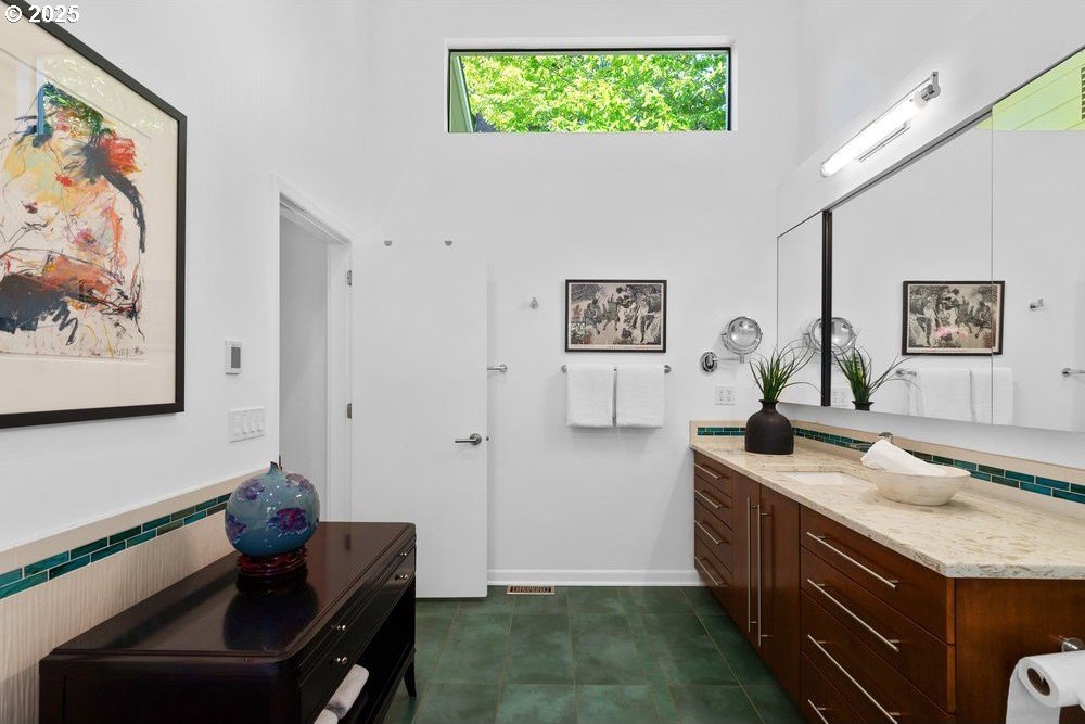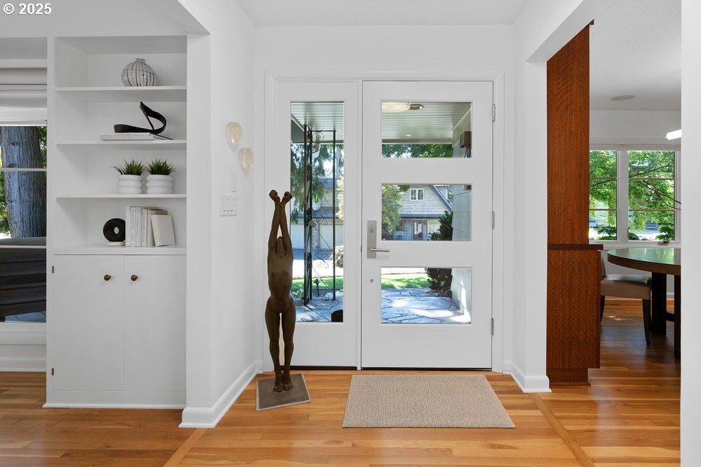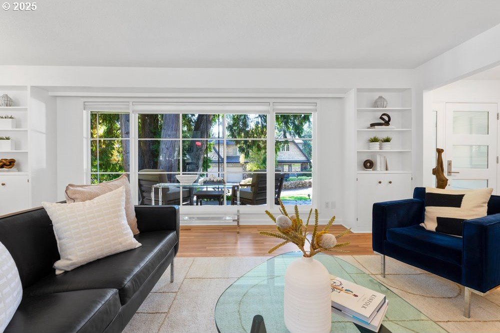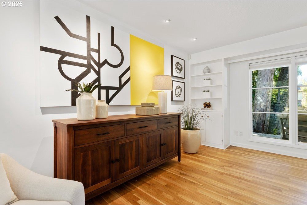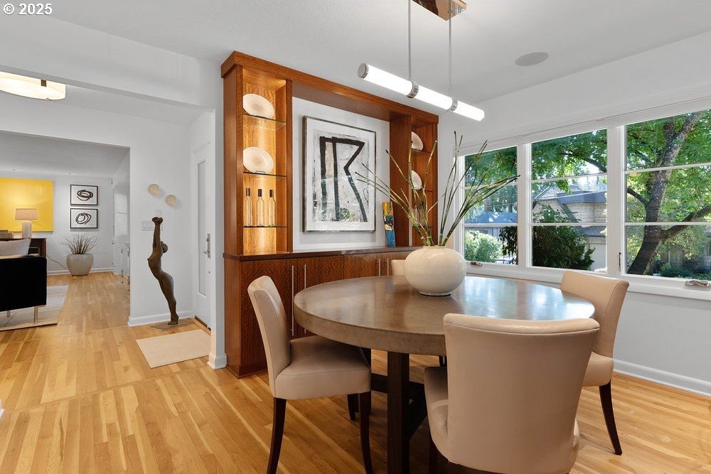 Fashionably Modernized Mid-Century, Remodeled to Perfection in the Lakewood neighborhood near Downtown Lake Oswego! This remarkable TRUE main-level living home sits on a large, private corner lot just steps from lake easement access, charming shops, restaurants, the river, and local parks including George Rogers Park. Nestled on a quiet, highly coveted street of multi-million dollar homes, this home showcases the highest quality craftsmanship, clean lines, exquisite materials, and warm, inviting design throughout.The main floor was meticulously repainted, beautifully refinished hardwood floors, updated cabinetry, and a stunning new powder room featuring Ann Sacks tile, a custom vanity, new faucet, and designer lighting. Enjoy the newly installed tile flooring in the sunroom, and new hardwoods in the TV/media room. The home also features fresh Hunter Douglas window coverings and elegant Rejuvenation light fixtures throughout—including the dining room and all bathrooms.New Bosch refrigerator and dishwasher (April 2025), new front door with side panel, and updated main floor laundry room. Exterior painted in 2023 and refreshed landscaping by Aurora Landscaping (May 2025) adds to the incredible curb appeal.Two patios, walking paths, mature custom-designed gardens, and a welcoming flagstone front porch create outdoor living at its finest. The lower level offers exciting possibilities for future expansion or additional living space. A rare and timeless opportunity in one of Lake Oswego’s most desirable neighborhoods. Rights to three easements include North Lake Club, South View Club and Lakewood Yacht Club. Recently Seismically Upgraded.