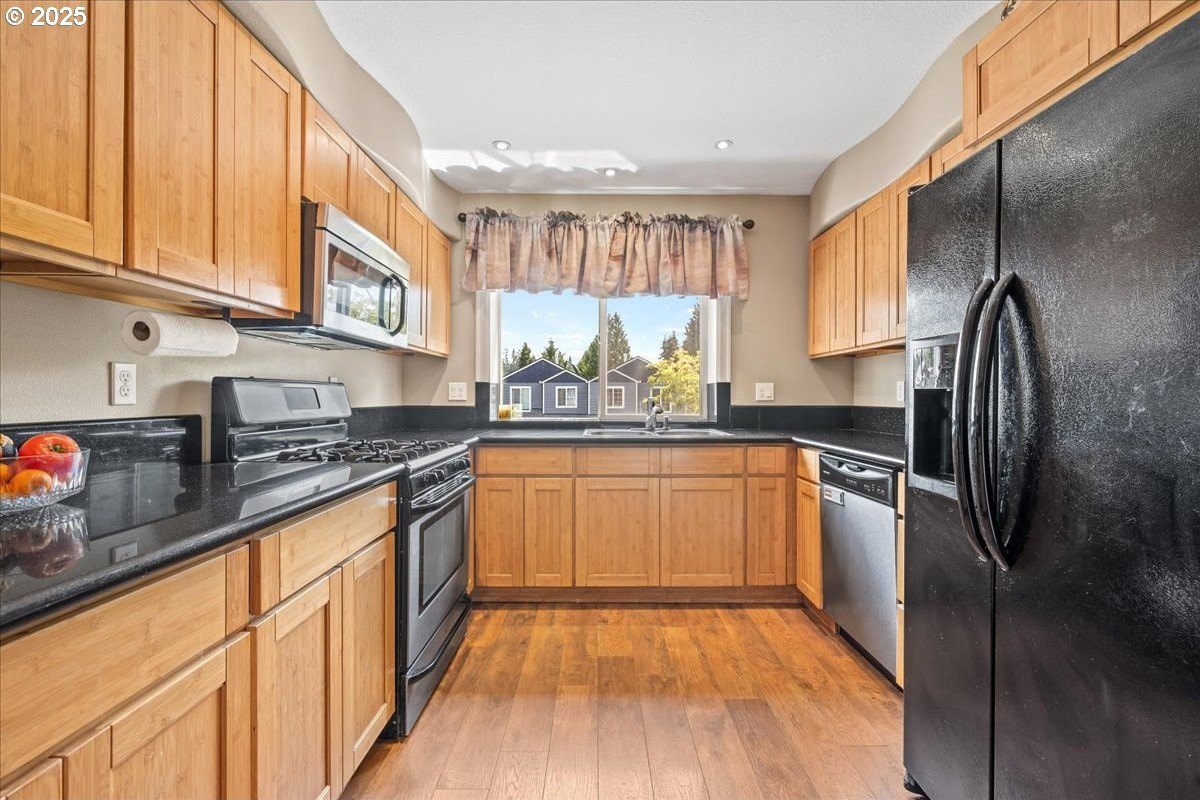 $429,900 | Rare Townhouse with Fenced Yard, New Roof & Low HOA!Motivated sellers just reduced the price—don’t miss this incredible value in a quiet, well-kept community near Nike, Intel, and Hillsboro amenities.This 3-bed, 2.5-bath townhouse lives large with a rare fully fenced yard—perfect for pets, play, or a private garden retreat. The home is freshly updated with a brand-new roof (2024) and boasts a 10/10 Energy Score, keeping utility costs down.Inside, warm wood floors and neutral tones create an inviting space anchored by a cozy gas fireplace. The kitchen features granite counters, honey-toned cabinetry, and a charming window over the sink with neighborhood views. Three levels offer incredible flexibility:Top floor: two spacious bedrooms, a full bath, and a versatile loft—ideal for a home office, gym, or play areaLower level: a private suite perfect for guests, remote work, or a peaceful escapeMain level: open living, kitchen, and dining with access to an elevated Trex-style deck for outdoor dining or relaxingEnjoy the ease of an attached garage, plus community perks like a shared play area and low HOA dues that include guest parking, annual dryer vent and backflow cleaning, and sprinkler system maintenance.This is one of the few townhomes at this price with a private yard, efficient systems, and recent upgrades—plus quick-close options and preferred lender credits available. Schedule your tour today—homes like this don’t last! [Home Energy Score = 10. HES Report at https://rpt.greenbuildingregistry.com/hes/OR10239959]