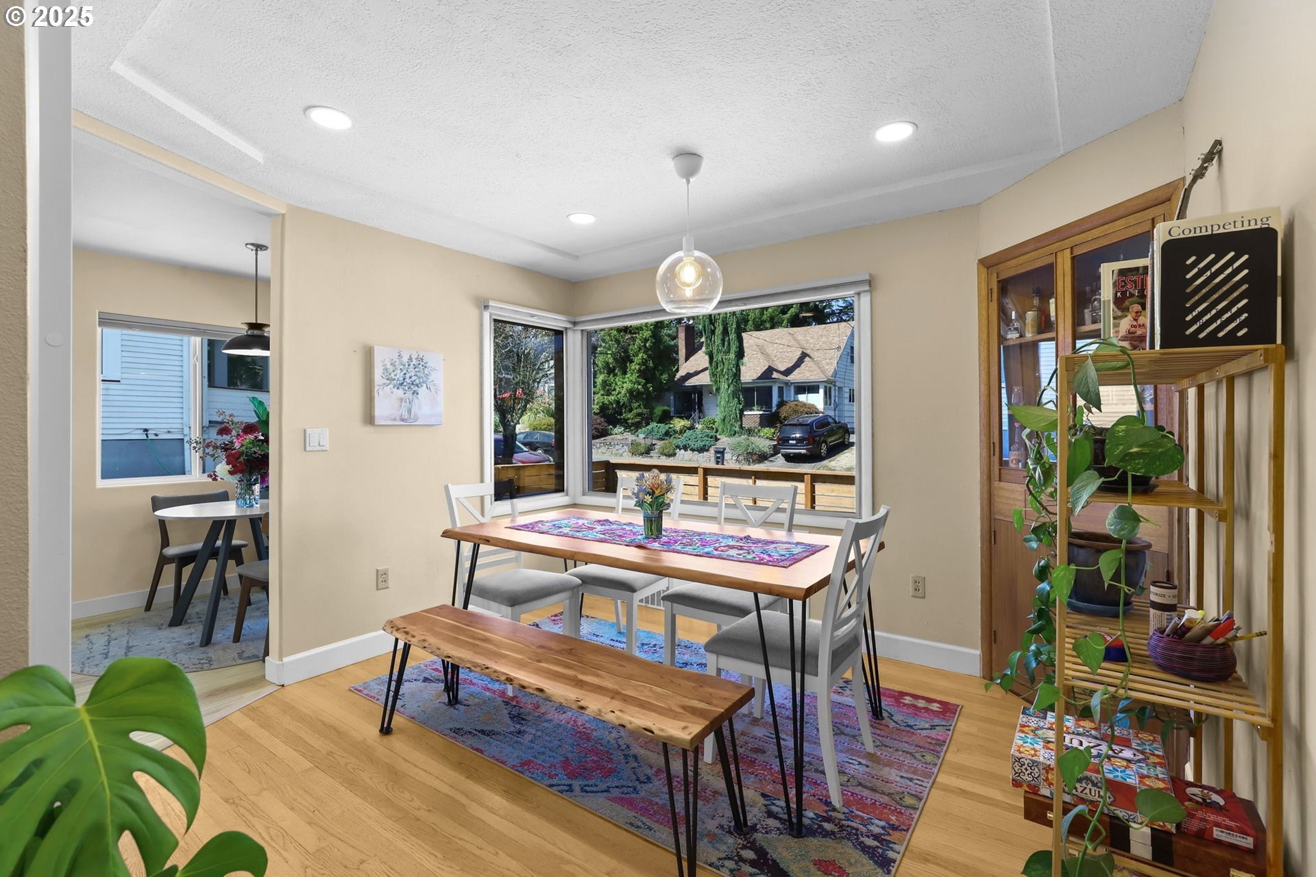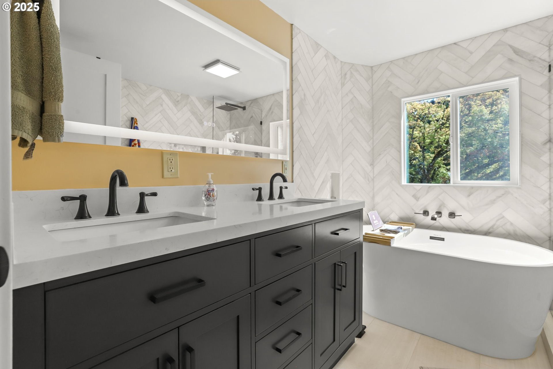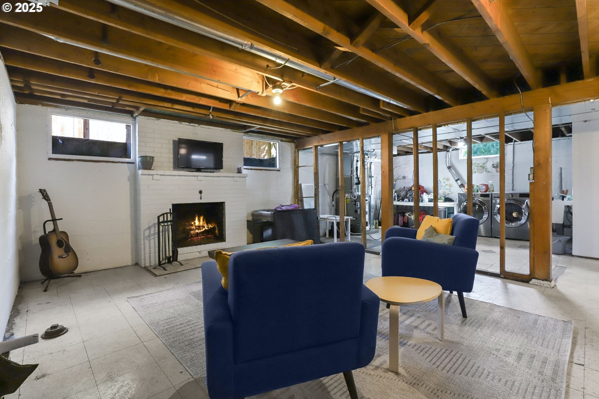 Modernized Mt. Tabor Beauty on a large lot, with a peek-a-boo view of Mt. Hood! Warm and modern updates throughout. Tons of potential for future expansion with an entire basement renovation already outlined – approved plans available! Bright & open floorplan has been refreshed with refinished hardwoods, a totally updated kitchen, new lighting, doors, and updated bathrooms, updated pex plumbing, as well as a newer furnace and brand new a/c unit. An inviting living room features a wood-burning fireplace, and the kitchen shines with new quartz surfaces, designer tile backsplash and stainless steel appliances. Two large bedrooms on the main level, and the upper level features a generous primary and updated spa-like bathroom with a marble surround shower and soaking tub. Detached 2-car garage for extra parking and storage. The house is equipped with an EV charger. The fully fenced yard is an outdoor oasis with a covered patio to enjoy year-round, a newly laid brick patio with a fire pit, and plenty of space for the gardener. Located in the heart of Mt. Tabor, you’ll enjoy quick access to Belmont, Montavilla, shopping, dining, entertainment, and, of course, Mt. Tabor Park just blocks away. [Home Energy Score = 1. HES Report at https://rpt.greenbuildingregistry.com/hes/OR10200887]