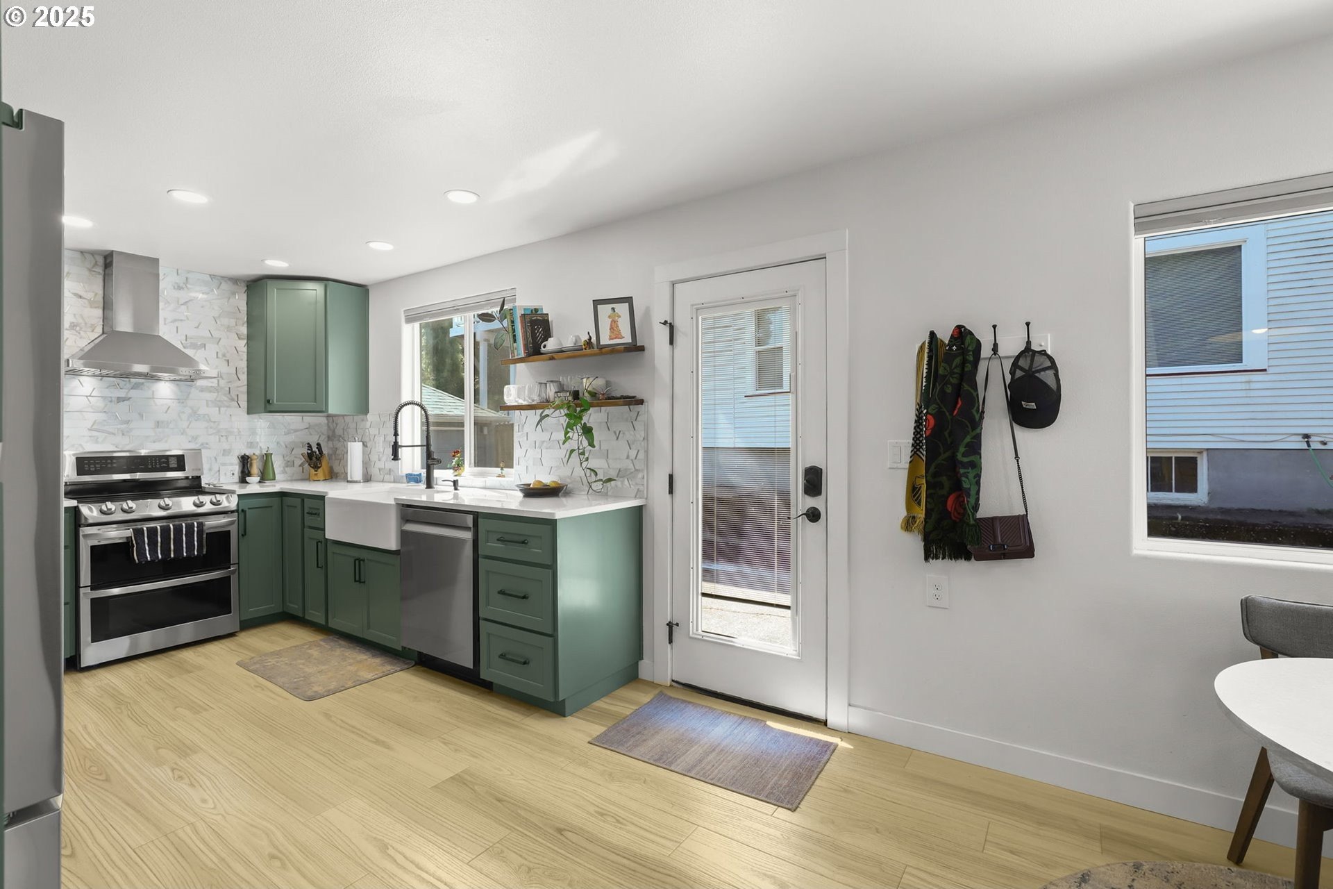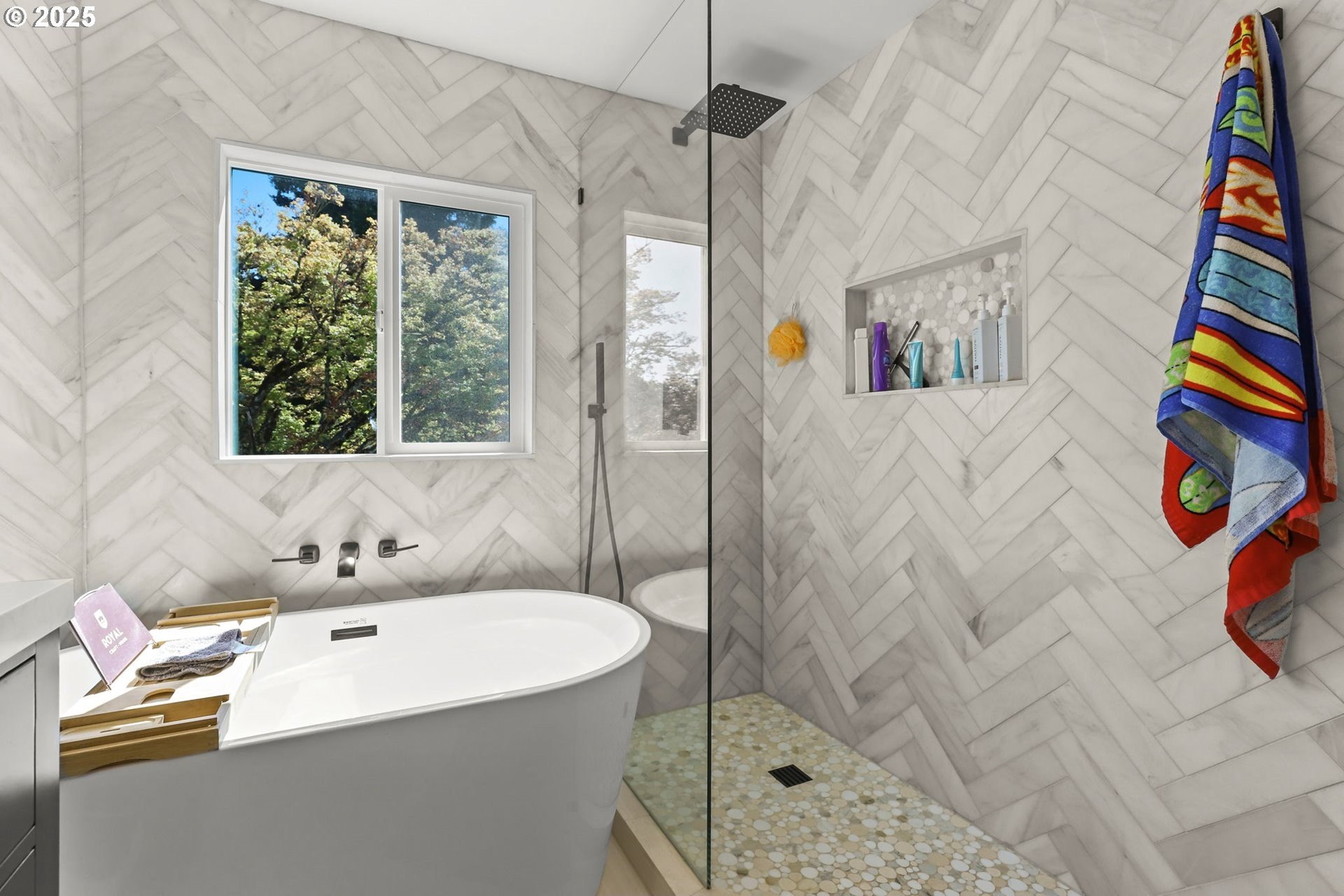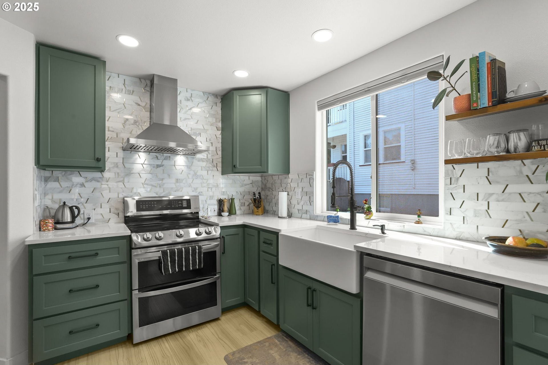 Modernized Mt. Tabor Beauty on a large lot, with a peek-a-boo view of Mt. Hood! Warm and modern updates throughout. Tons of potential for future expansion with an entire basement renovation already outlined – approved plans available! Bright & open floorplan has been refreshed with refinished hardwoods, a totally updated kitchen, new lighting, doors, and updated bathrooms, updated pex plumbing, as well as a newer furnace and brand new a/c unit. An inviting living room features a wood-burning fireplace, and the kitchen shines with new quartz surfaces, designer tile backsplash and stainless steel appliances. Two large bedrooms on the main level, and the upper level features a generous primary and updated spa-like bathroom with a marble surround shower and soaking tub. Detached 2-car garage for extra parking and storage. The house is equipped with an EV charger. The fully fenced yard is an outdoor oasis with a covered patio to enjoy year-round, a newly laid brick patio with a fire pit, and plenty of space for the gardener. Located in the heart of Mt. Tabor, you’ll enjoy quick access to Belmont, Montavilla, shopping, dining, entertainment, and, of course, Mt. Tabor Park just blocks away. [Home Energy Score = 1. HES Report at https://rpt.greenbuildingregistry.com/hes/OR10200887]