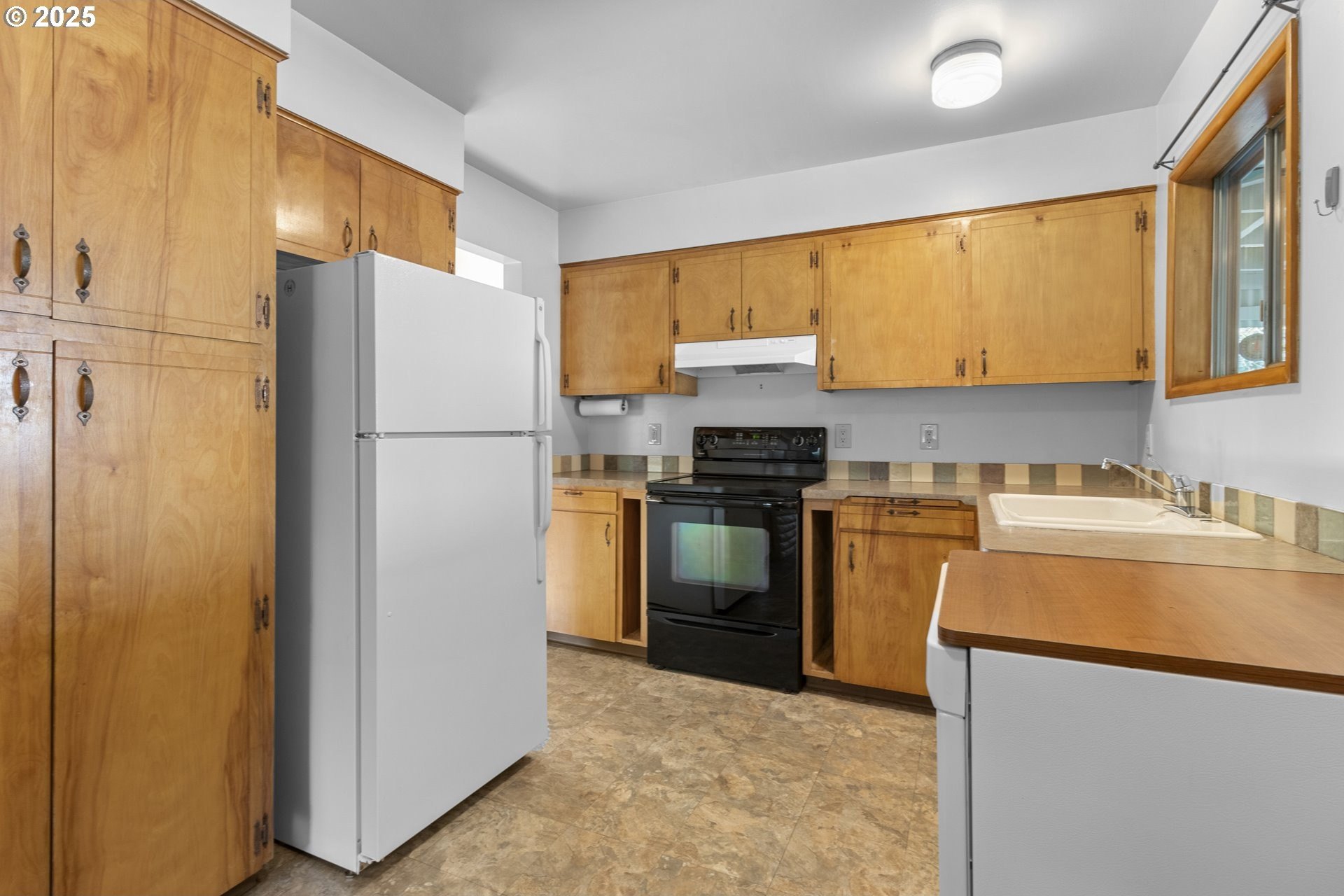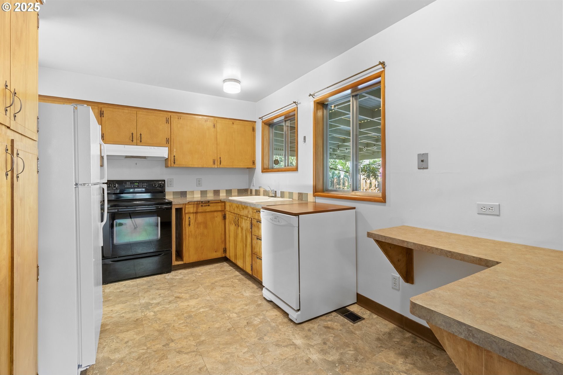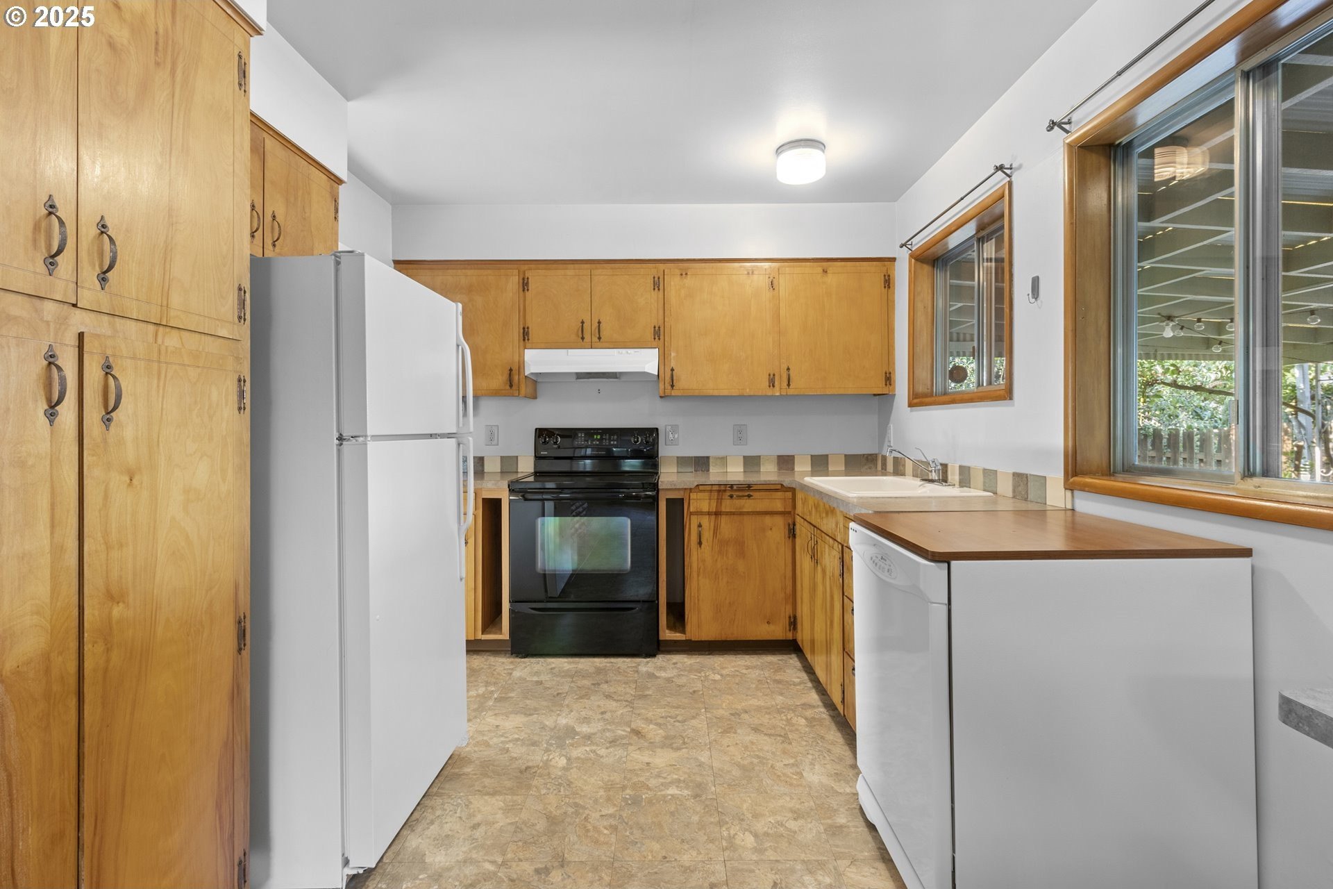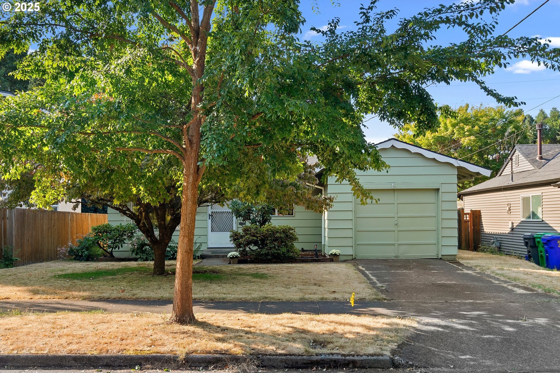 **OPEN HOUSES both Saturday & Sunday, 9/6-9/7 from 11am-1pm.** Meticulously cared for and in mint condition, this 3-bedroom, 1-bath mid-century modern is a true Woodstock treasure. Tucked on a peaceful non-through street, it feels like a time capsule with its original character intact while offering modern convenience. Inside, every detail shines, from the stunning original hardwood floors to the corner fireplace and custom built-ins throughout. Convenient 1-level living with a full basement. The basement is pristine and versatile, with a complete workshop setup, laundry area with washer and dryer, room for hobbies, and storage galore. All appliances stay for a move-in-ready experience. New exterior paint 2019, vinyl windows were installed in bedrooms in 2017, plumbing updates in 2005- bye bye galvanized steel! Outside, the sunny, fully fenced backyard is ideal for raised beds, play, or entertaining, framed by fruit trees, established perennials, and a covered patio for year-round enjoyment. Everyday living is made simple thanks to a Walk Score in the 90s and a Bike Score of 99, placing you steps from Woodstock Park, Woodstock Farmers Market, and sought-after Woodstock Elementary. Just blocks away, the vibrant village center offers New Seasons Market, Double Mountain Brewery, Delta Café, and Lutz Tavern—plus neighborhood favorites like Otto’s Sausage Kitchen, Cloud City Ice Cream, and Bridge City Pizza. This home perfectly blends timeless mid-century style, meticulous upkeep, and an unbeatable location in one of Portland’s most beloved neighborhoods. Ready to be cherished for its next chapter. This is a total gem so add it to your home tour list this weekend! [Home Energy Score = 3. HES Report at https://rpt.greenbuildingregistry.com/hes/OR10241481]