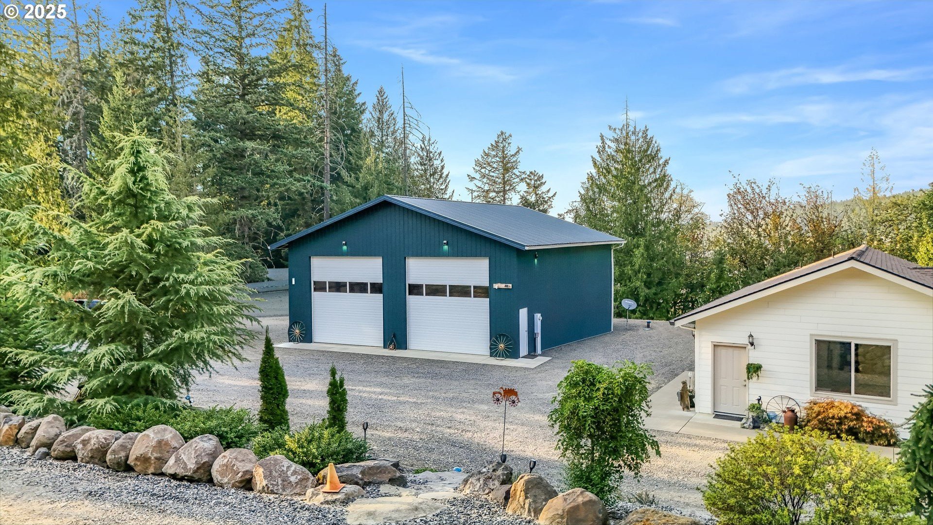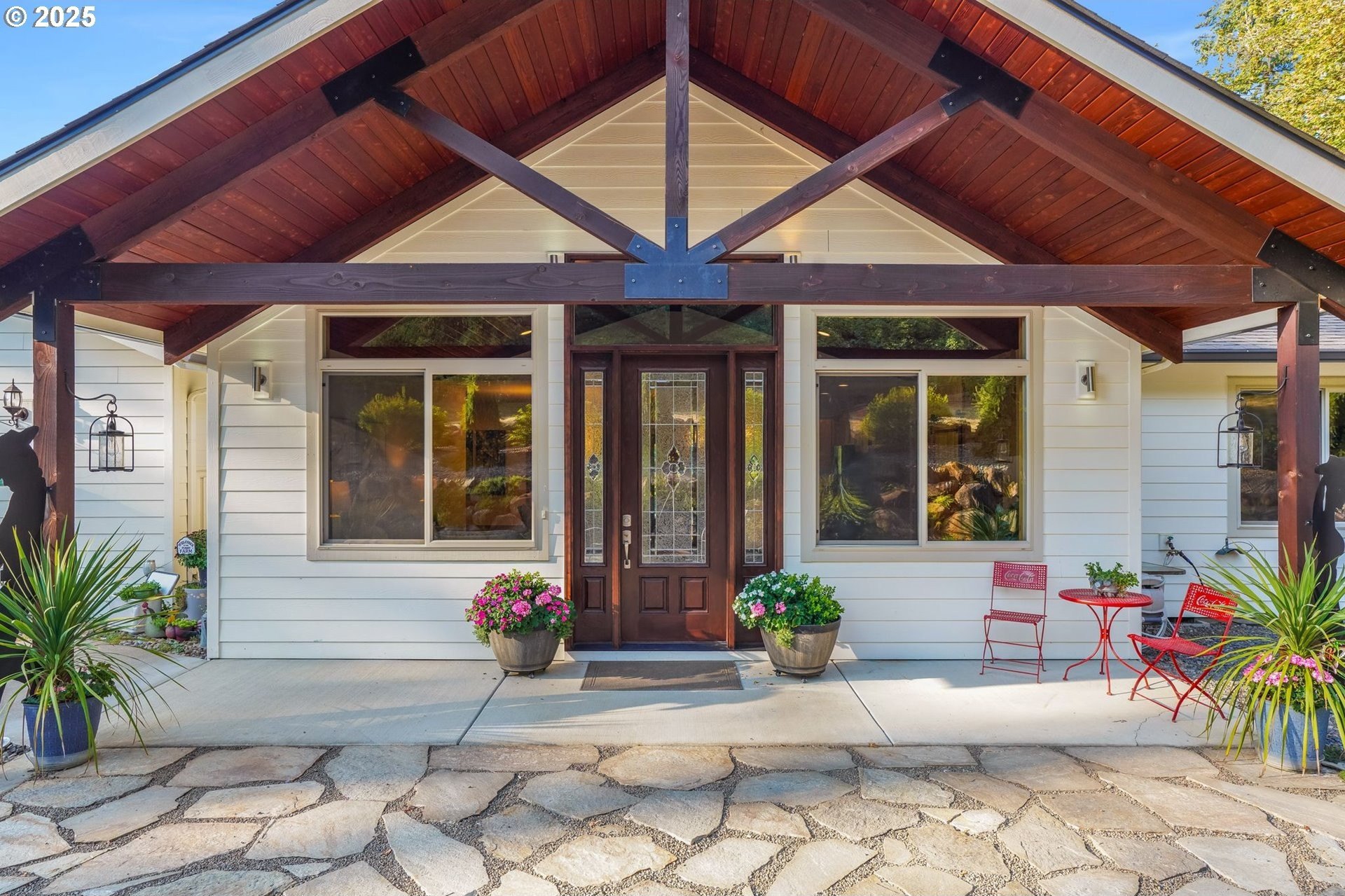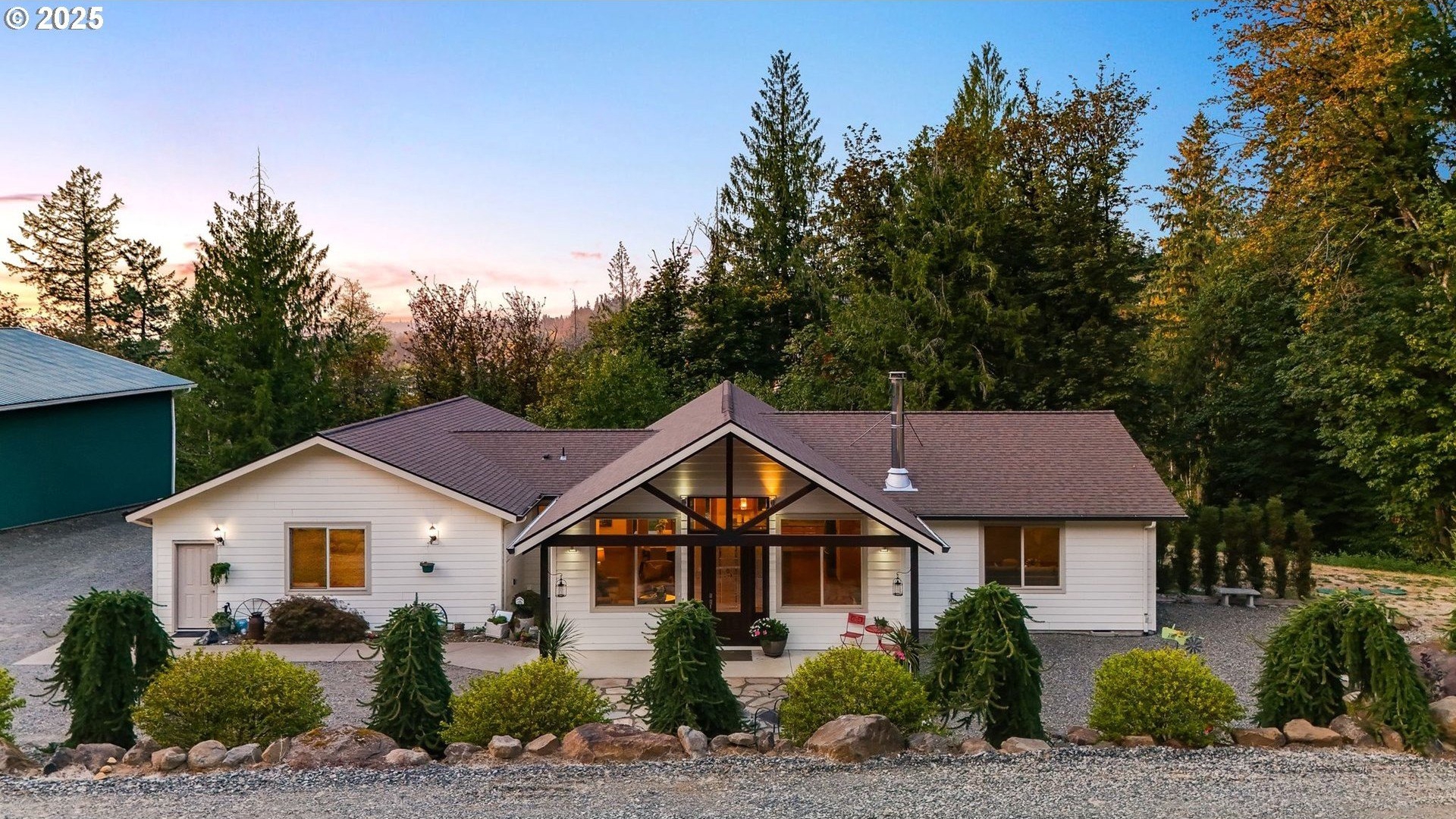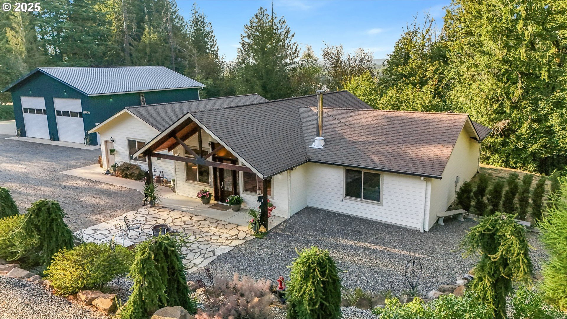 Tucked away on 5.3 private acres in the middle of Estacada, welcome to your centrally located retreat! This custom one-level home offers space, comfort, and practicality. Enjoy your private pond and Currin Creek running through the bottom of the property, along with views of your wooded surroundings. Inside, this home was lovingly prepared for long-term living with wide halls, 3-foot doors, and a smart layout to make daily life feel easy. The kitchen, complete with a large island, granite countertops, and soft close drawers, opens to a large living area with vaulted ceilings and filled with natural light. Imagine entertaining family and friends! The primary bedroom is on one side of the home, complete with en suite bath, walk in closet, and French doors to the back patio. Don't miss the vanity with marble countertops and heated tile floors in the primary bath! The guest room and second bath are located on the other side of the home, giving family or guests a space of their own. Convert the bonus/media room to a third bedroom to suit your needs! Step outside to a covered patio that works for everything from sipping morning coffee, relaxing with friends, and year-round outdoor living! The 40x48 shop includes 200-amp service, 50-amp RV hookup, two 16-foot roll-up doors, and room for ATVs, gear, or your next chapter. Finally, add an attached or detached 900 sq ft ADU (acceptable per Clackamas County). Buyer to do due diligence. If you’ve been looking for privacy, space, and flexibility for your life without giving up town access, this charming home might be for you!
