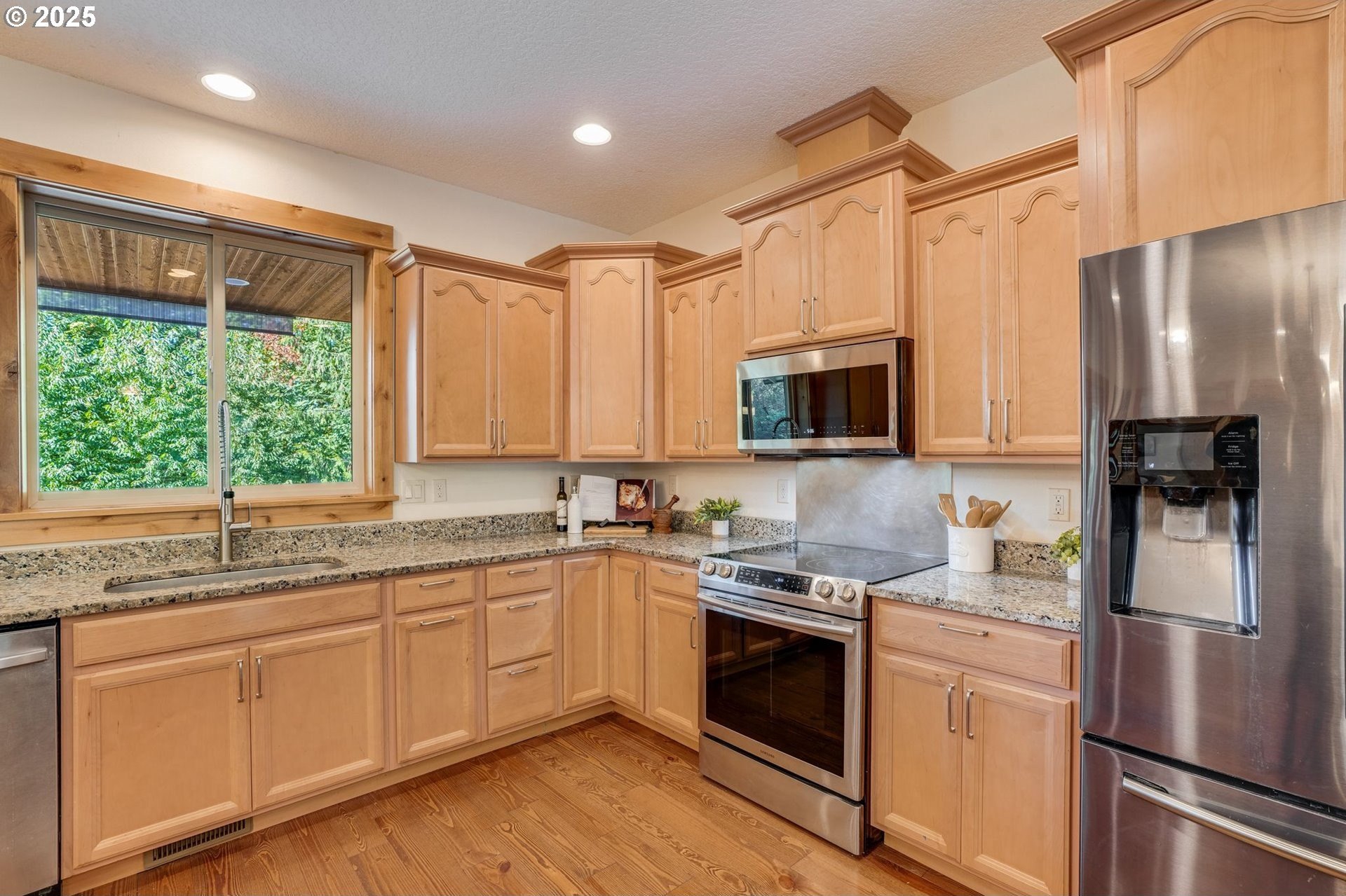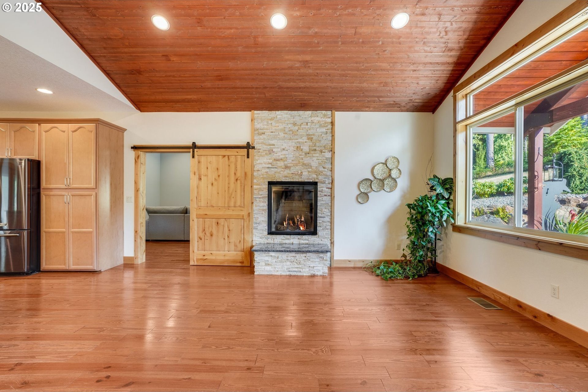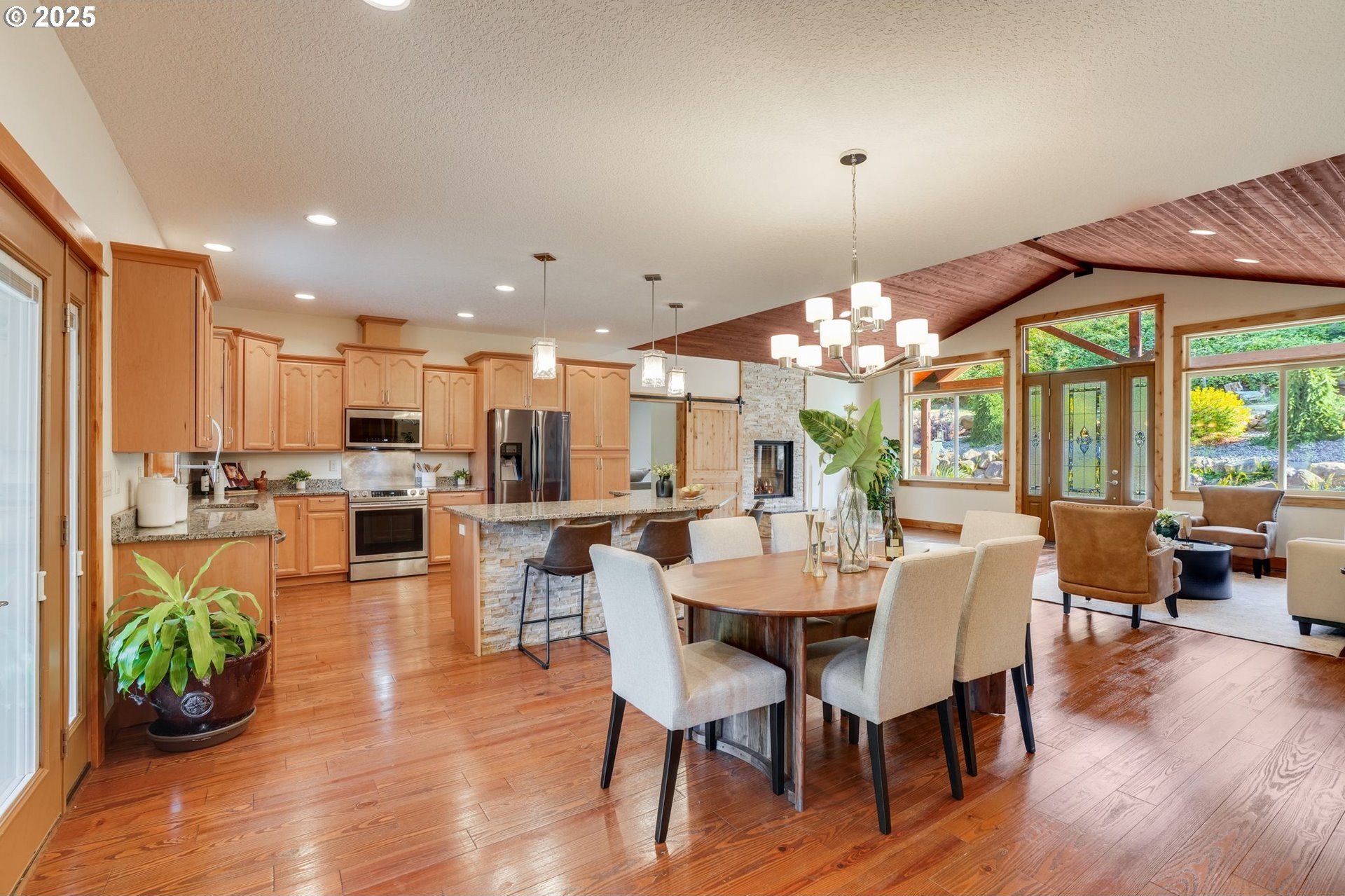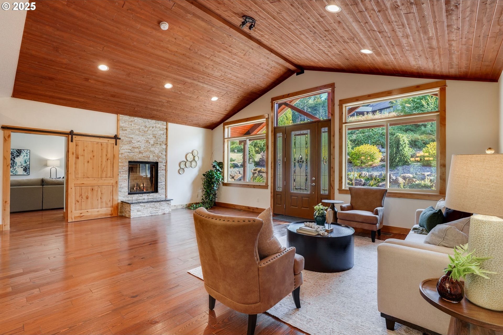 Tucked away on 5.3 private acres in the middle of Estacada, welcome to your centrally located retreat! This custom one-level home offers space, comfort, and practicality. Enjoy your private pond and Currin Creek running through the bottom of the property, along with views of your wooded surroundings. Inside, this home was lovingly prepared for long-term living with wide halls, 3-foot doors, and a smart layout to make daily life feel easy. The kitchen, complete with a large island, granite countertops, and soft close drawers, opens to a large living area with vaulted ceilings and filled with natural light. Imagine entertaining family and friends! The primary bedroom is on one side of the home, complete with en suite bath, walk in closet, and French doors to the back patio. Don't miss the vanity with marble countertops and heated tile floors in the primary bath! The guest room and second bath are located on the other side of the home, giving family or guests a space of their own. Convert the bonus/media room to a third bedroom to suit your needs! Step outside to a covered patio that works for everything from sipping morning coffee, relaxing with friends, and year-round outdoor living! The 40x48 shop includes 200-amp service, 50-amp RV hookup, two 16-foot roll-up doors, and room for ATVs, gear, or your next chapter. Finally, add an attached or detached 900 sq ft ADU (acceptable per Clackamas County). Buyer to do due diligence. If you’ve been looking for privacy, space, and flexibility for your life without giving up town access, this charming home might be for you!
