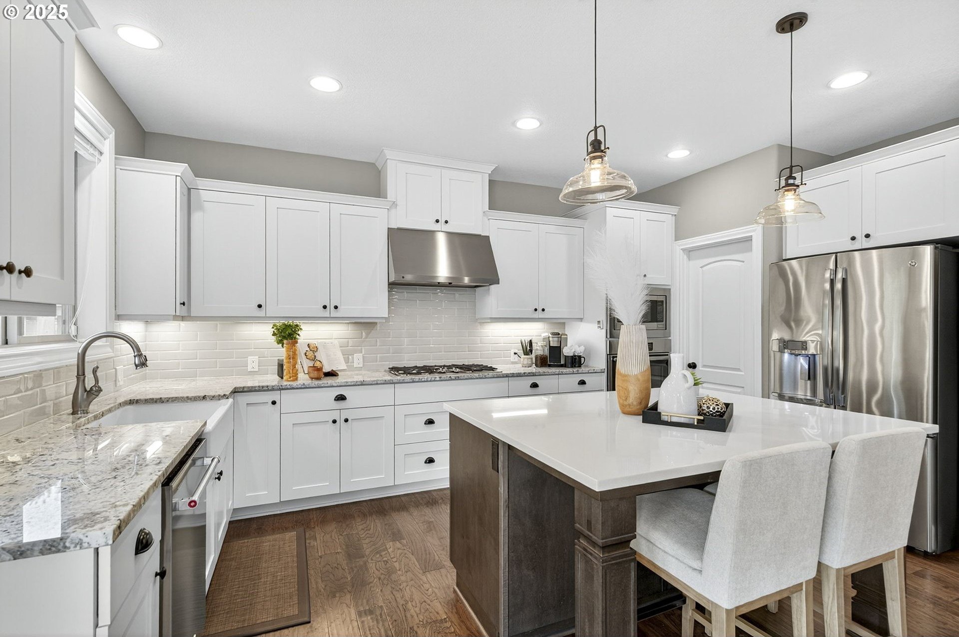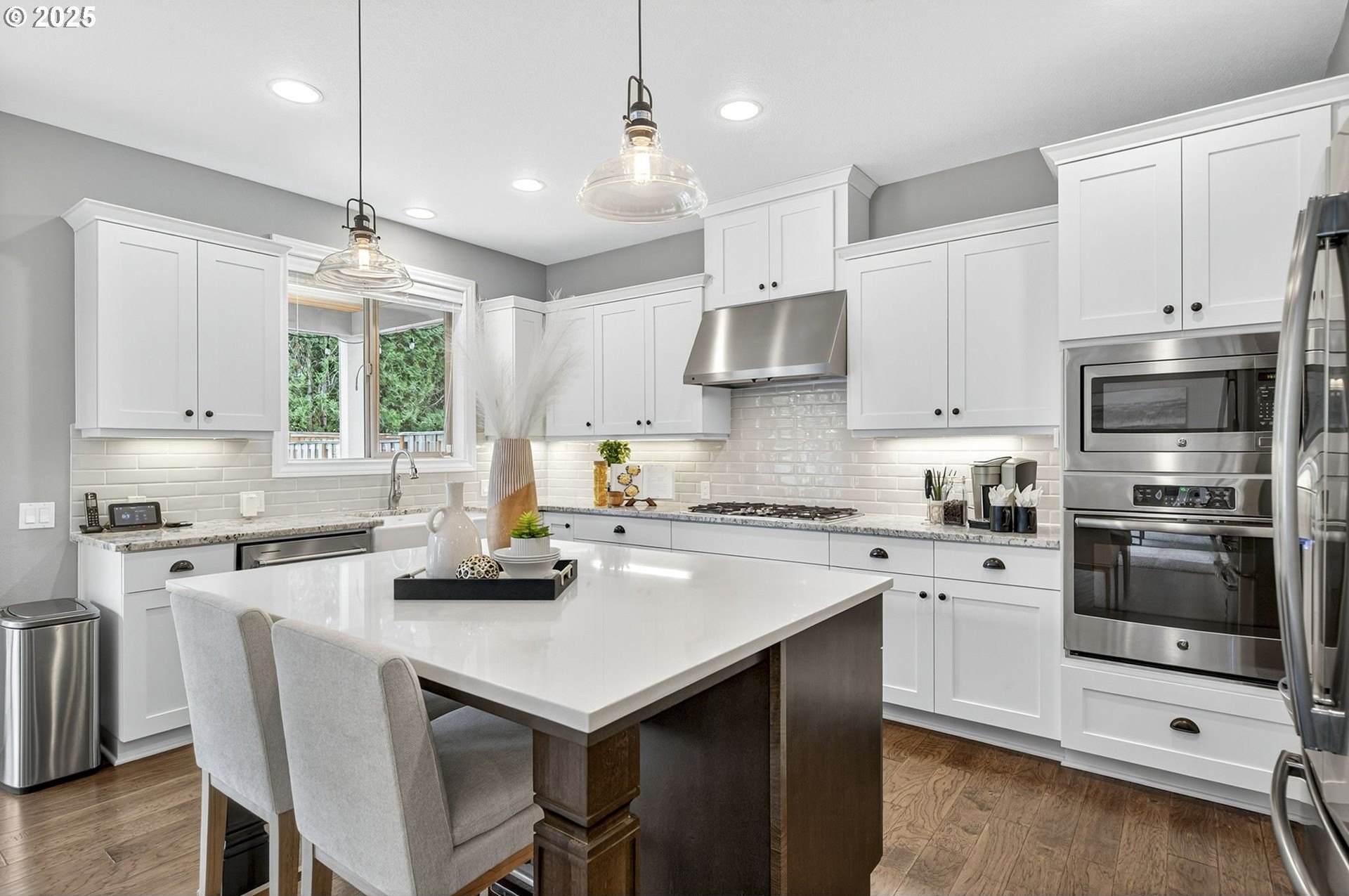 OPEN HOUSE: Sat 9/6 @ 12-2pm & Sun 9/7 @ 11am-1pm! This stunning Renaissance home is better than new! As the model home, there are many upgrades that you will not find in the others - only 3 homes have this floorpan in the entire neighborhood! The open concept & spacious main level has beautiful hardwood floors, custom built-ins, cozy gas fireplace & gorgeous beam ceilings. The gourmet kitchen has granite counters, quartz island eat bar, SS gas appliances, farm sink & large pantry. Upstairs you will find 5 large bedrooms (one is staged as a Bonus rm) and convenient laundry room that has ample storage, counter space & a utility sink. Central vac througout. The covered patio is a perfect place to begin or end your day and has a private, fenced backyard. Gas is plumbed for your BBQ - imagine entertaining in this space! Oversized 3 car garage with epoxy floors. HOA includes community pool, greenspace & playground just a block down the street! Highly rated schools, close to shopping, restaurants, groceries & more. Ask your realtor for the full amenities list - too much to list! This home is a 5 star - MUST SEE!