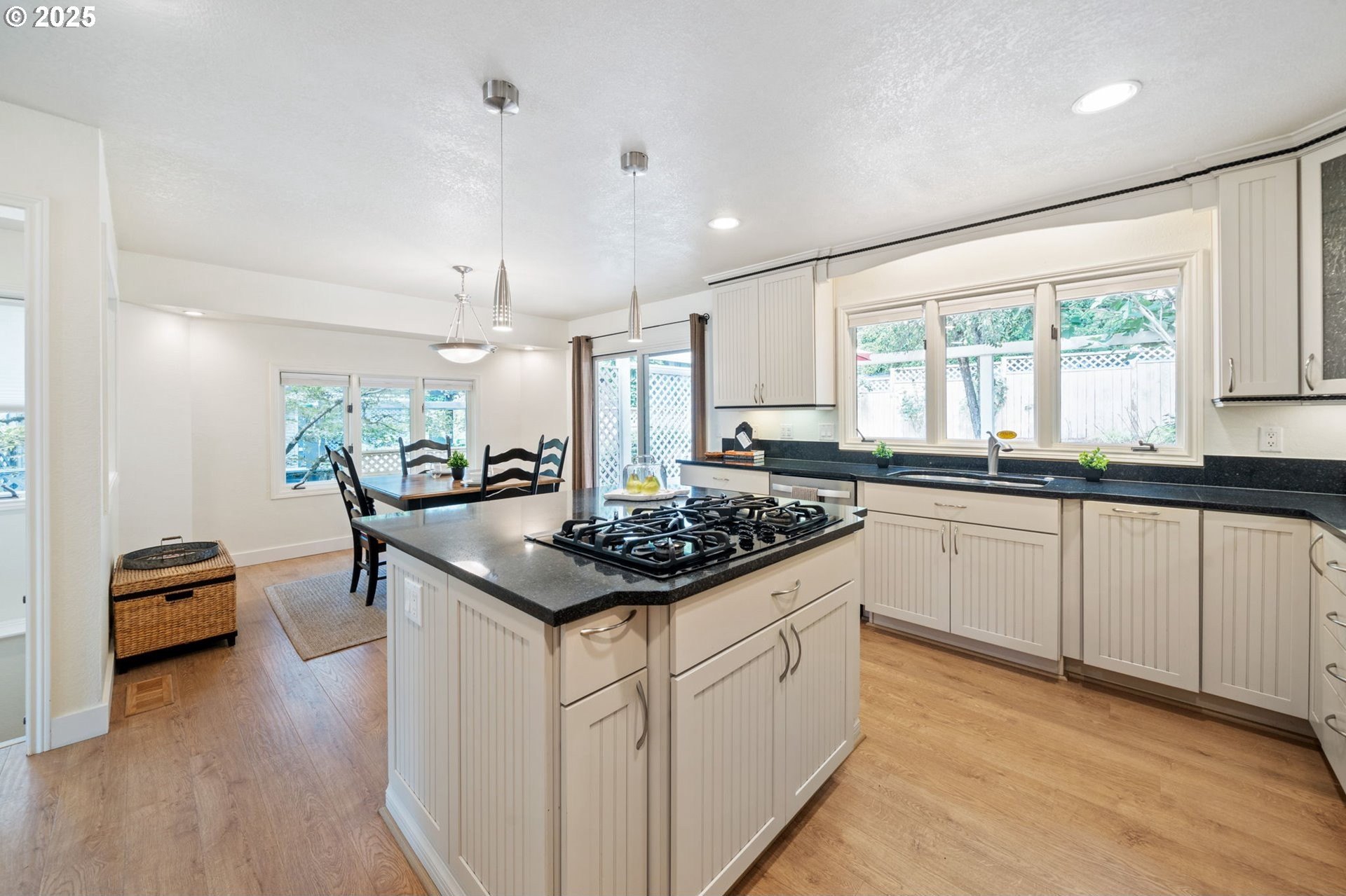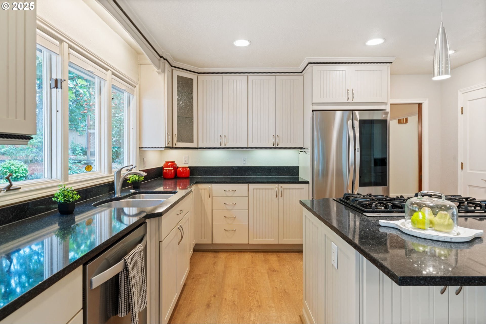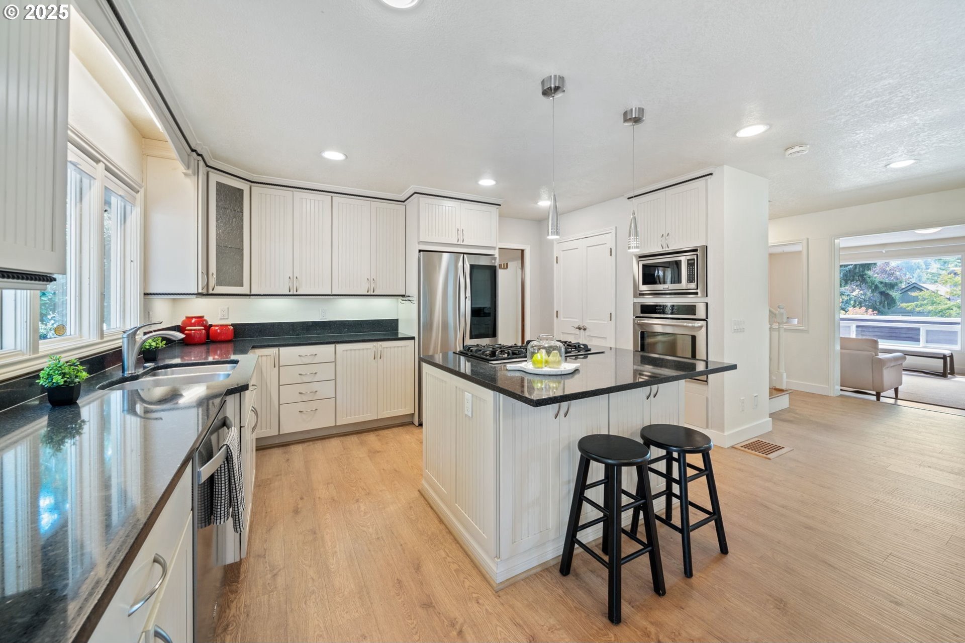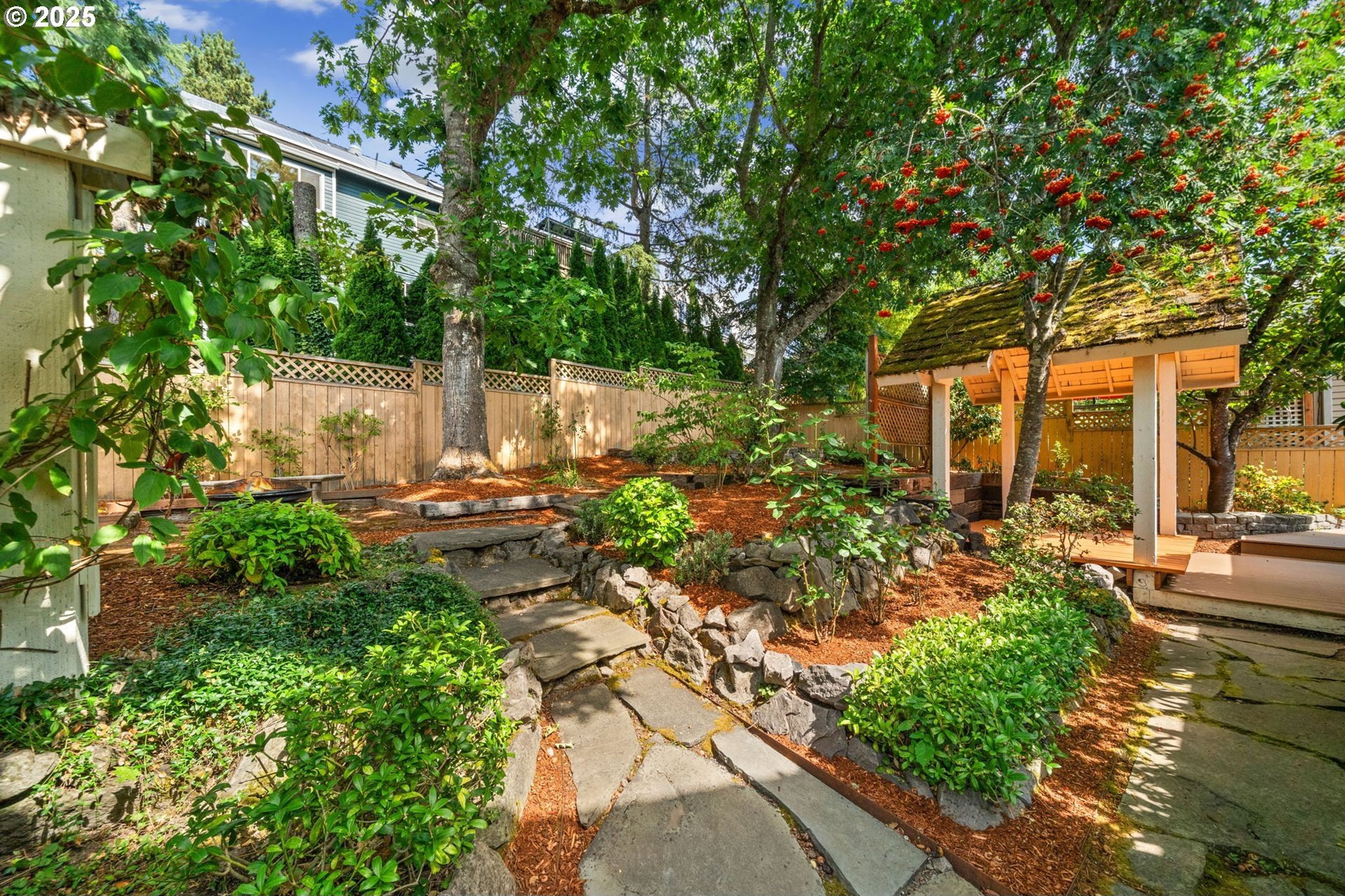 Perfectly perched on Windemere Loop in sought after West Hills area. Enjoy proximity to Downtown, Cedar Hills, parks/trails, St. Vincent’s Hospital, EZ access to Hi-Tech Corridor, along w many of Portland’s iconic attractions. Convenient grocery, shopping, and dining options nearby @ West Hills Plaza. Step inside this well maintained 5 BR, 3 BA home w 3,388+/-sf offering a thoughtful traditional design for comfortable everyday living. Off inviting entryway is the formal, carpeted living room w high ceiling, newer wide plank Luxury Vinyl flooring and hardwoods throughout main level. On main, is a bedroom or could be office w walk-in closet and view out to luscious landscape. Down the hall to generous size primary retreat w wood floors, dressing area, large walk-through, lighted closet w organizers leads to spacious ensuite w clawfoot soak tub and separate shower, dual sinks, skylight, plus private access to the back patio for gazebo sitting area. Laundry room at end of hall w laundry chute, cabinets, and skylight. Kitchen updated w white cabinets, counters, a cook island w gas stove top, stainless steel appliances, pantry, and eating area. Slider to trex deck w arbor for a lovely outdoor area. Family room offers updated fireplace, mantle, and large tile accent wall, opens onto another deck [re-enforced over garage, w half wall] makes for great extended entertaining area, space for versatile sitting areas. Formal dining space off kitchen w another access to back yard. Three bedrooms and large full-size bathroom w skylight at the top of stairs. Two-car oversize garage w storage + workbench. Brand new furnace. Exterior painted 2 years ago. Front yard offers sprinkler system, landscaped and rockwork. Back yard is a lush retreat and largely private. Stone pathway and steps. Yard provides figs, pears, blueberries, kiwis, and apples. This place is full of goodness! A Portland address, Washington County taxes, w Beaverton and private schools. We think you’d love it here!