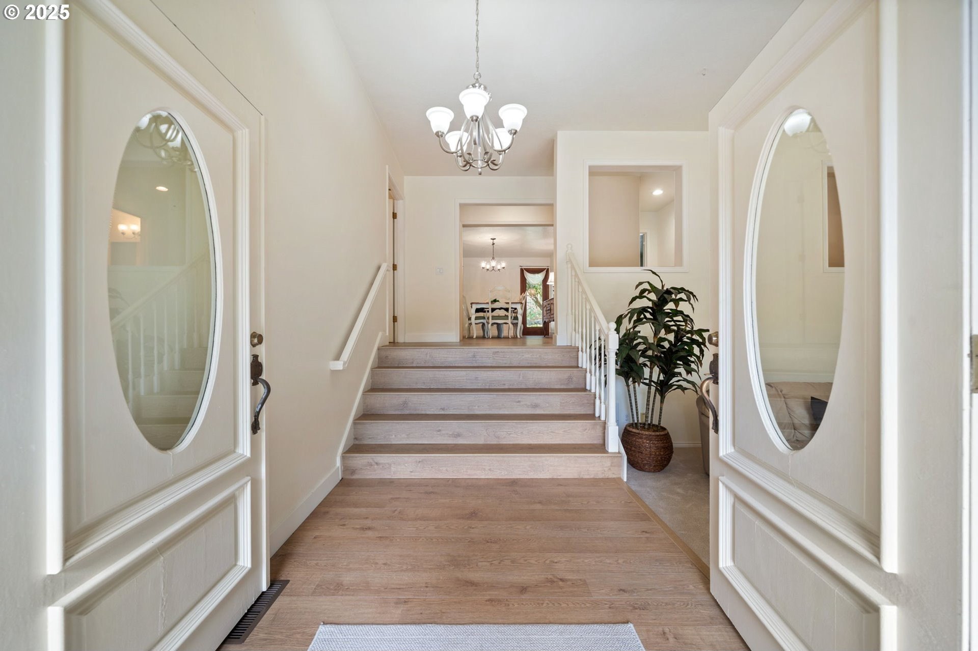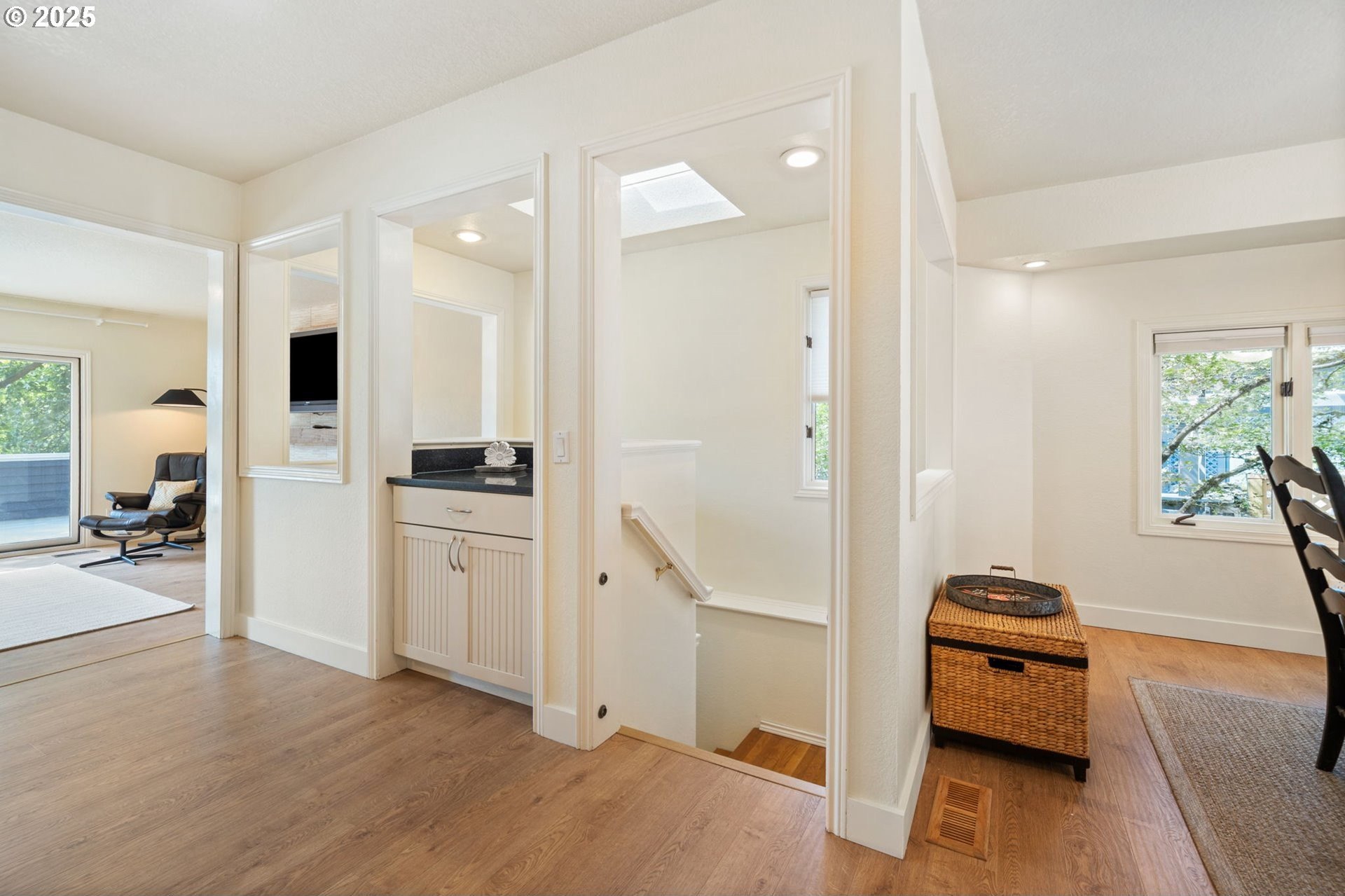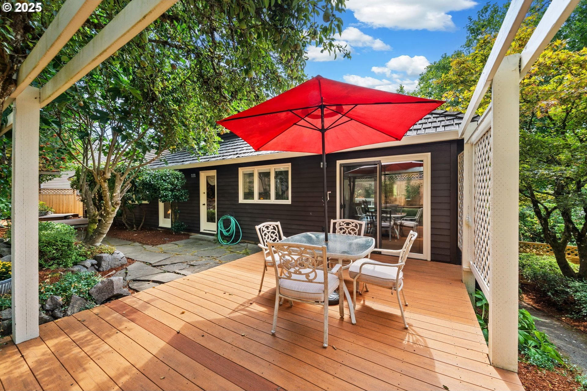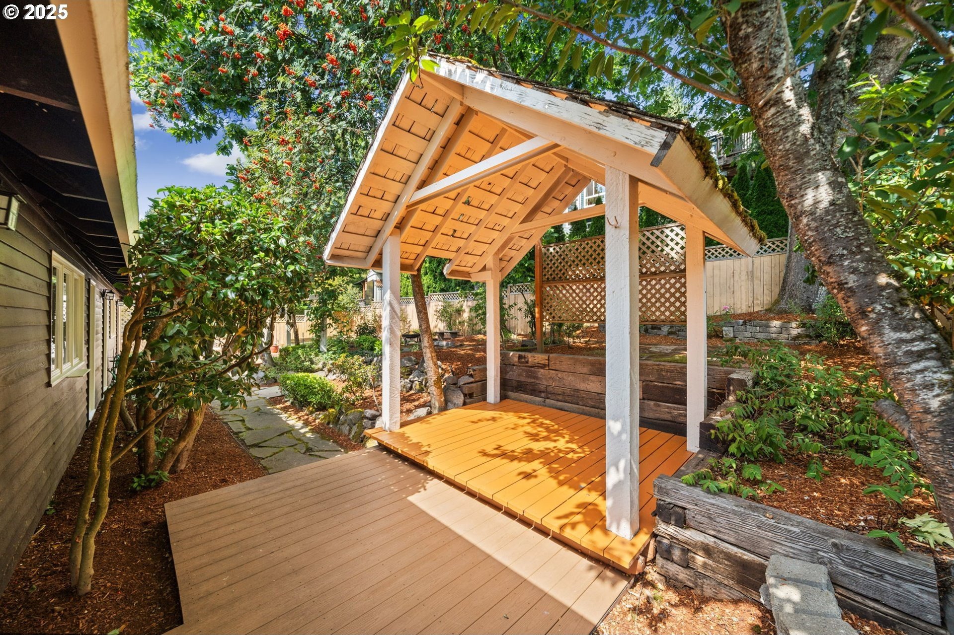 Perfectly perched on Windemere Loop in sought after West Hills area. Enjoy proximity to Downtown, Cedar Hills, parks/trails, St. Vincent’s Hospital, EZ access to Hi-Tech Corridor, along w many of Portland’s iconic attractions. Convenient grocery, shopping, and dining options nearby @ West Hills Plaza. Step inside this well maintained 5 BR, 3 BA home w 3,388+/-sf offering a thoughtful traditional design for comfortable everyday living. Off inviting entryway is the formal, carpeted living room w high ceiling, newer wide plank Luxury Vinyl flooring and hardwoods throughout main level. On main, is a bedroom or could be office w walk-in closet and view out to luscious landscape. Down the hall to generous size primary retreat w wood floors, dressing area, large walk-through, lighted closet w organizers leads to spacious ensuite w clawfoot soak tub and separate shower, dual sinks, skylight, plus private access to the back patio for gazebo sitting area. Laundry room at end of hall w laundry chute, cabinets, and skylight. Kitchen updated w white cabinets, counters, a cook island w gas stove top, stainless steel appliances, pantry, and eating area. Slider to trex deck w arbor for a lovely outdoor area. Family room offers updated fireplace, mantle, and large tile accent wall, opens onto another deck [re-enforced over garage, w half wall] makes for great extended entertaining area, space for versatile sitting areas. Formal dining space off kitchen w another access to back yard. Three bedrooms and large full-size bathroom w skylight at the top of stairs. Two-car oversize garage w storage + workbench. Brand new furnace. Exterior painted 2 years ago. Front yard offers sprinkler system, landscaped and rockwork. Back yard is a lush retreat and largely private. Stone pathway and steps. Yard provides figs, pears, blueberries, kiwis, and apples. This place is full of goodness! A Portland address, Washington County taxes, w Beaverton and private schools. We think you’d love it here!