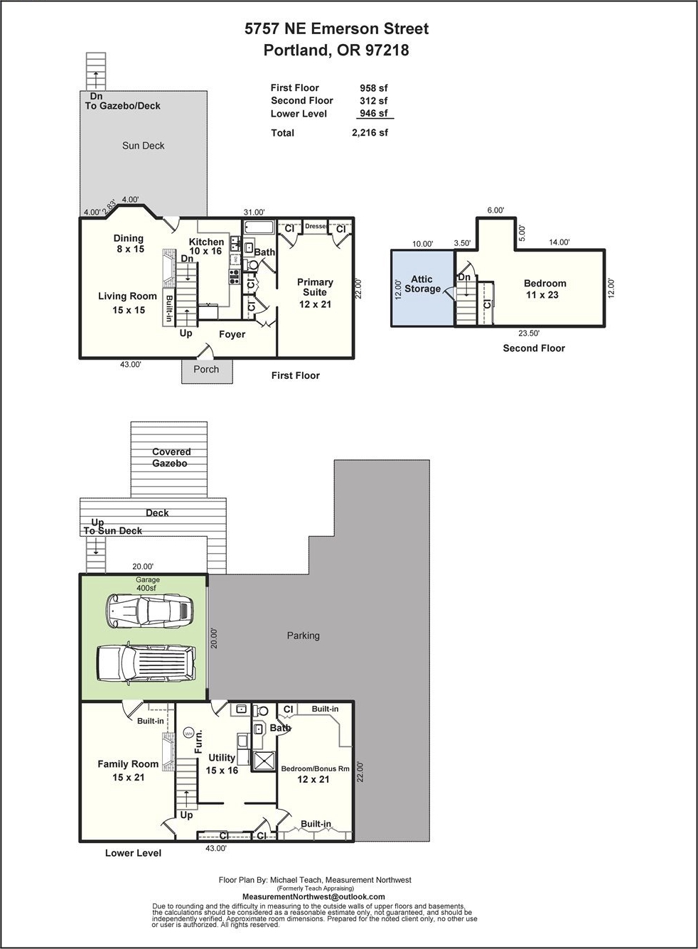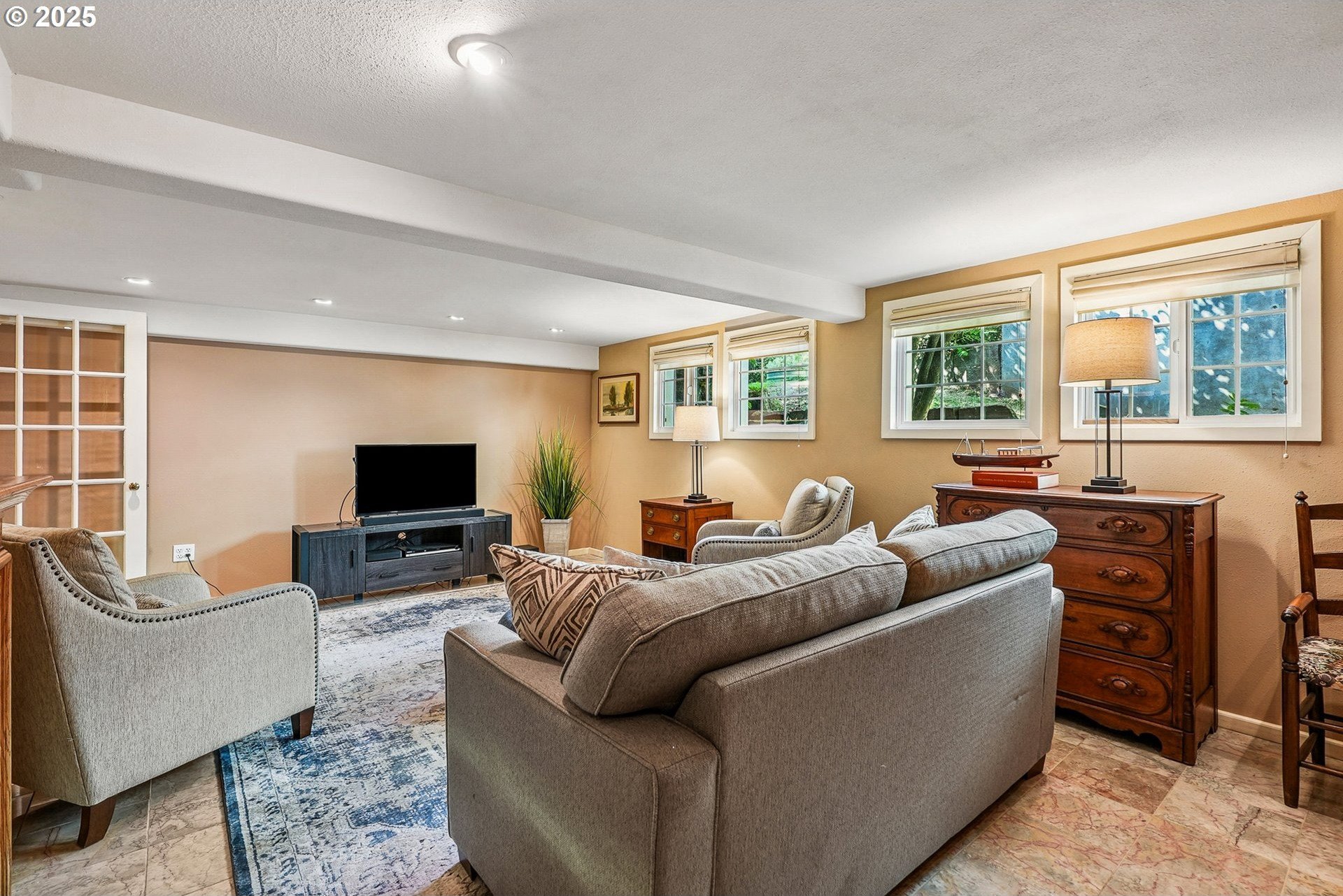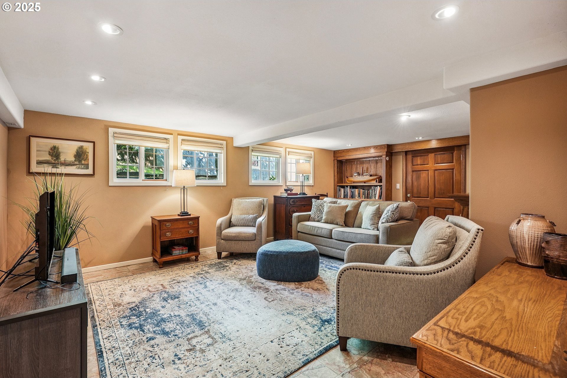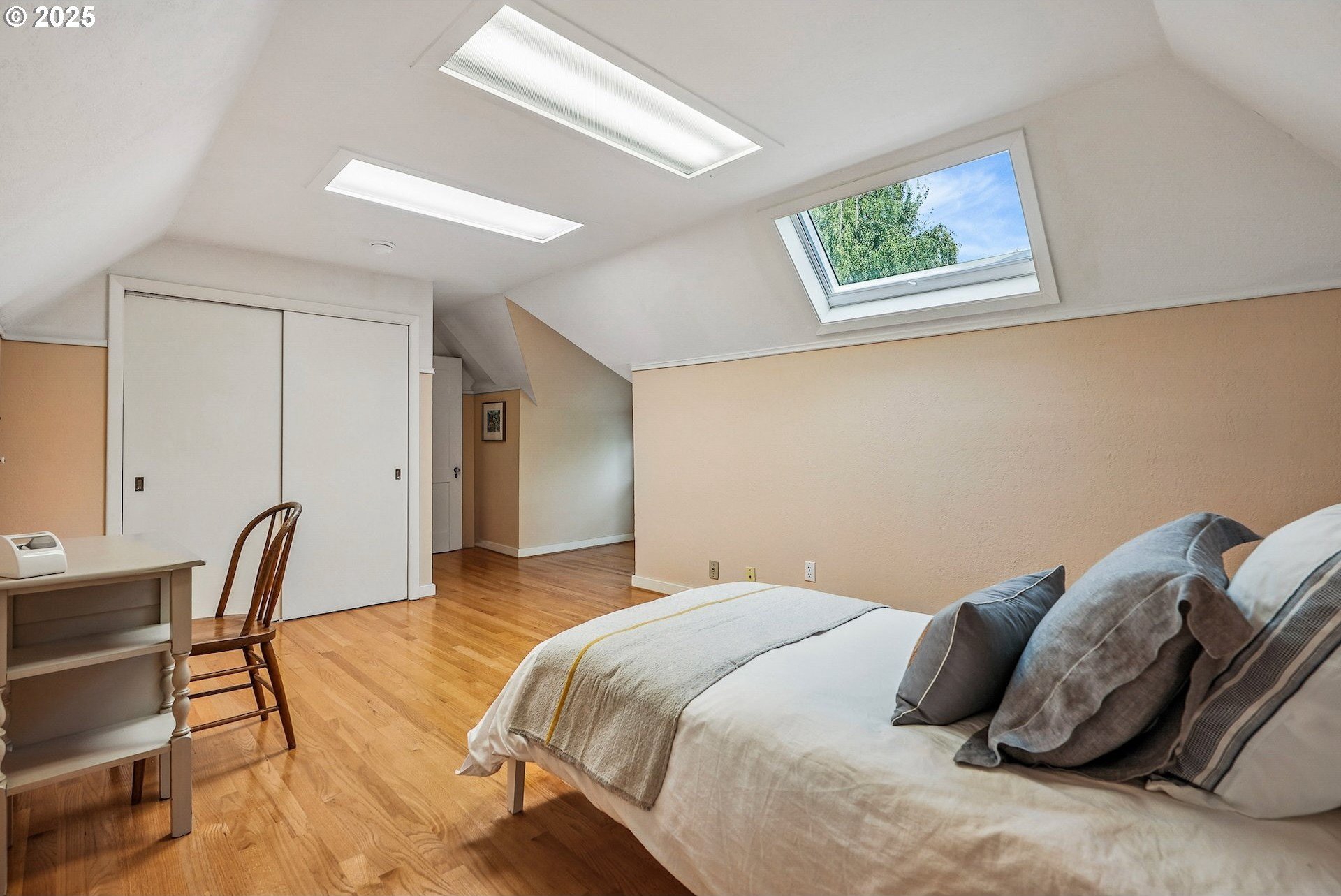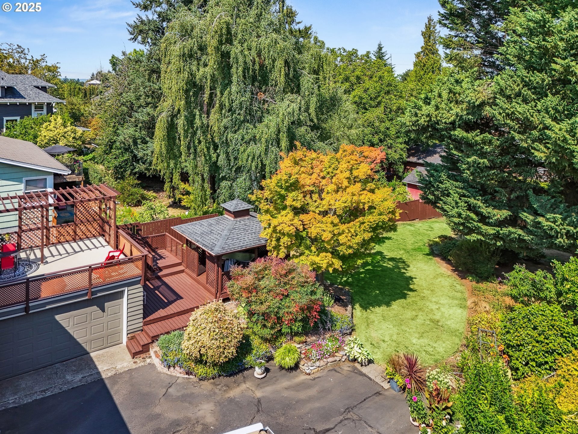 Updated, pristine Cape Cod with a spectacular fenced backyard with plenty of room for gardening & entertaining on the sun deck or covered gazebo. Attached garage & plenty of parking in the oversized driveway! The large, open living/dining room is flooded by light with windows on three sides & a gas fireplace surrounded by classic built-ins. Updated kitchen with stainless appliances, tile backsplash, quartz counters & custom cabinets. The elegant kitchen leads to the very large sun deck above the garage. The primary bedroom on the main level has custom wainscoting, several closets & an updated full bath. The cheerful bedroom upstairs is connected to oversized storage space. The finished basement has two separate exterior entrances making it prime for hobbies or potential as an ADU. Enjoy movies in the media room with it's own wood-burning fireplace. The lower level also includes a bedroom with ensuite full bath, desk space, several built-in cabinets & closets. The clean, bright laundry room has a sink and its own access to the exterior. Energy efficient updates include all the windows on the entire house have been replaced with double-pane windows and upgraded rigid spray foam & cellulose insulation. Updated systems include central AC & furnace in 2021, water heater in 2016, roof in 2011. Move-in ready perfection! New Season's, Kennedy School, Beaumont Village, Fernhill Park, Colwood & Rose City golf courses and endless shops, cafes & restaurants in every direction, plus easy access to the airport! [Home Energy Score = 5. HES Report at https://rpt.greenbuildingregistry.com/hes/OR10241252]