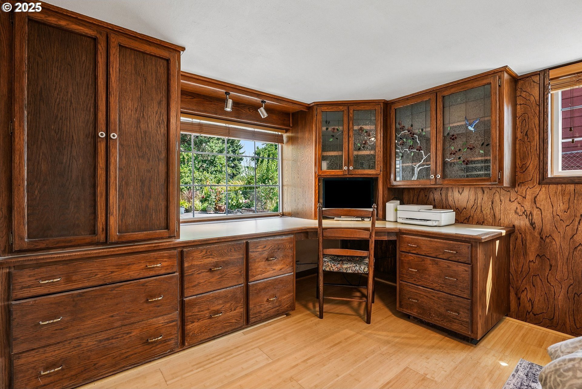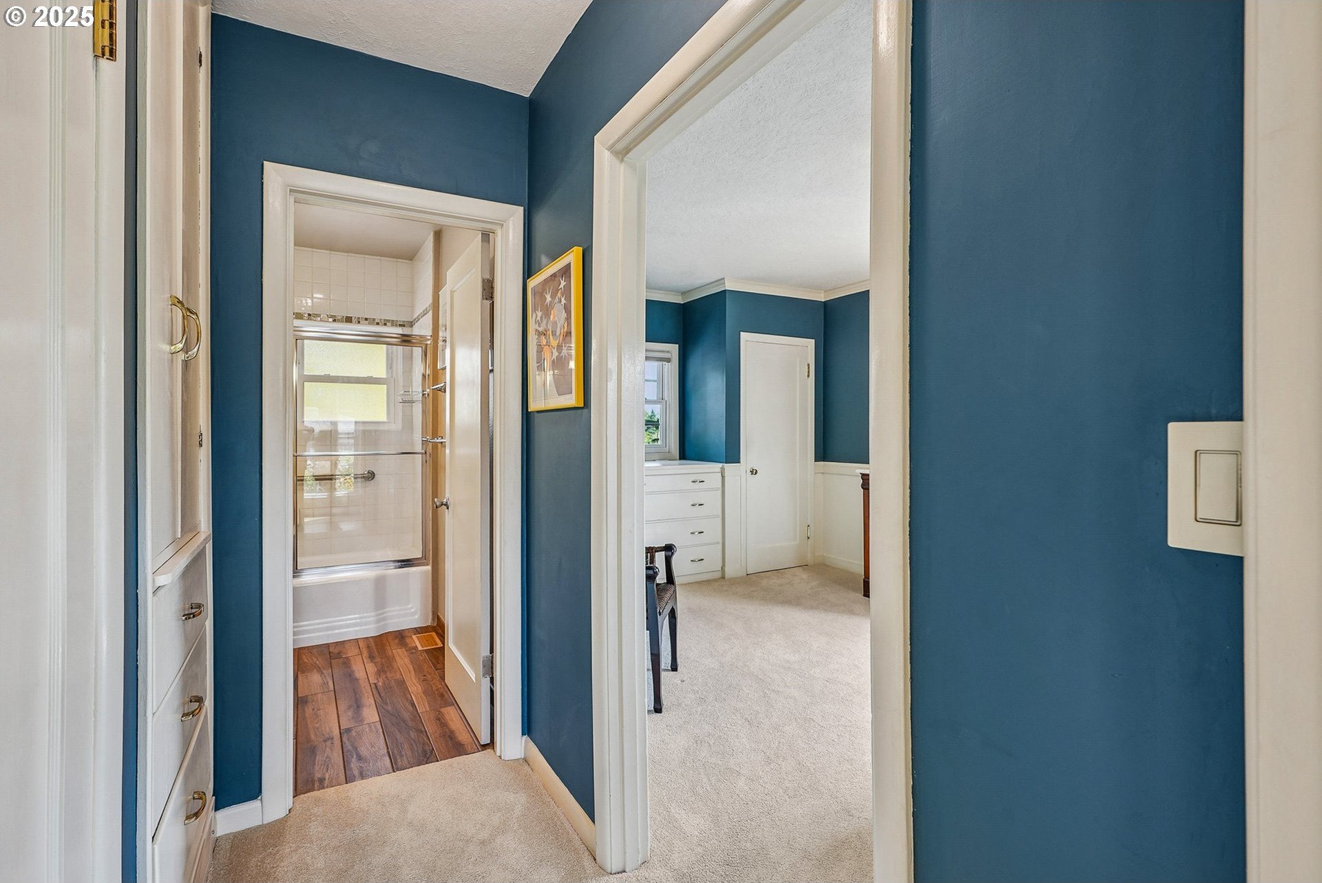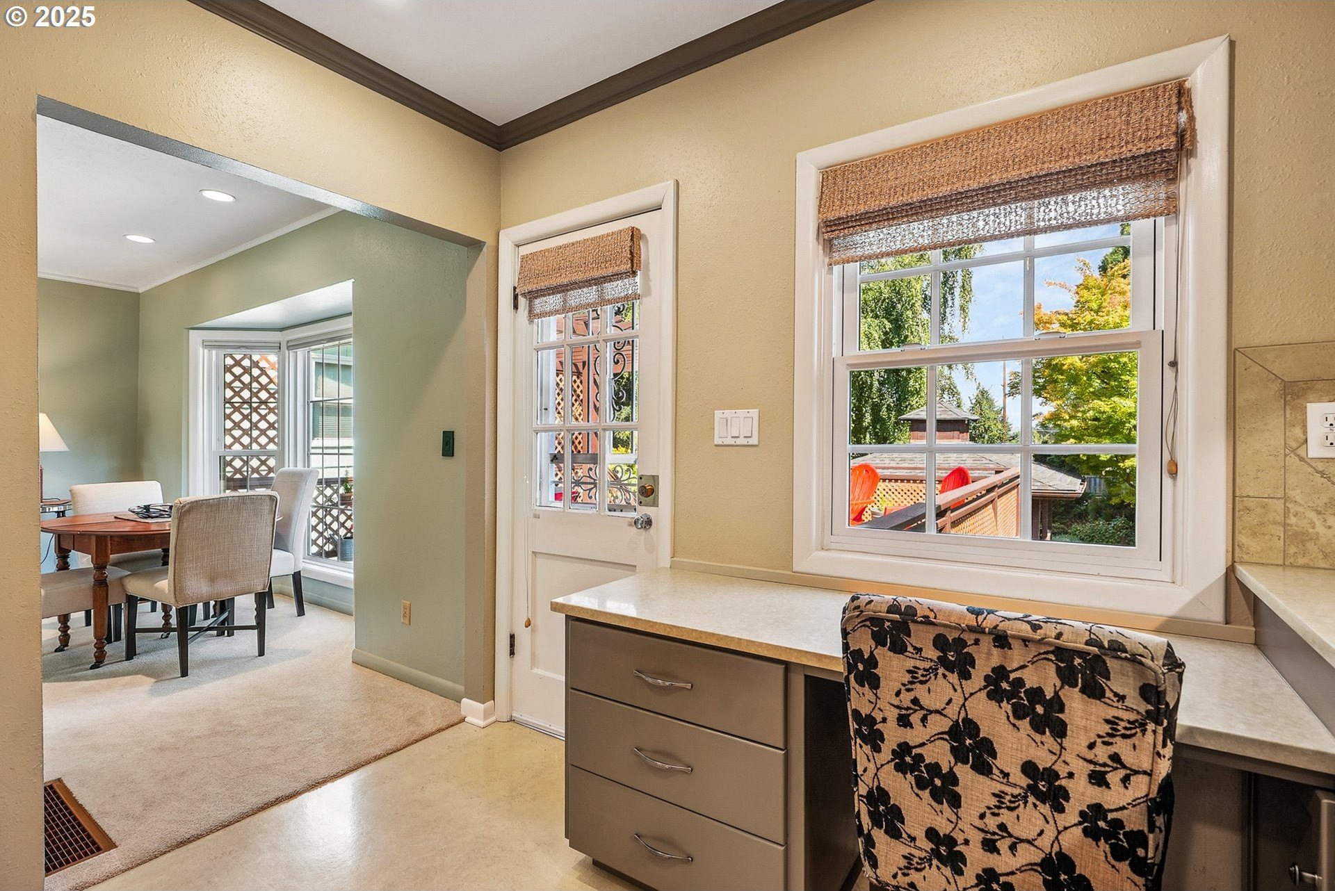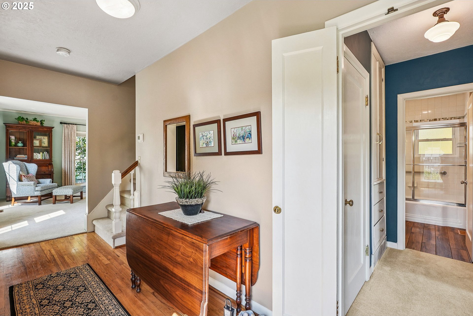 Updated, pristine Cape Cod with a spectacular fenced backyard with plenty of room for gardening & entertaining on the sun deck or covered gazebo. Attached garage & plenty of parking in the oversized driveway! The large, open living/dining room is flooded by light with windows on three sides & a gas fireplace surrounded by classic built-ins. Updated kitchen with stainless appliances, tile backsplash, quartz counters & custom cabinets. The elegant kitchen leads to the very large sun deck above the garage. The primary bedroom on the main level has custom wainscoting, several closets & an updated full bath. The cheerful bedroom upstairs is connected to oversized storage space. The finished basement has two separate exterior entrances making it prime for hobbies or potential as an ADU. Enjoy movies in the media room with it's own wood-burning fireplace. The lower level also includes a bedroom with ensuite full bath, desk space, several built-in cabinets & closets. The clean, bright laundry room has a sink and its own access to the exterior. Energy efficient updates include all the windows on the entire house have been replaced with double-pane windows and upgraded rigid spray foam & cellulose insulation. Updated systems include central AC & furnace in 2021, water heater in 2016, roof in 2011. Move-in ready perfection! New Season's, Kennedy School, Beaumont Village, Fernhill Park, Colwood & Rose City golf courses and endless shops, cafes & restaurants in every direction, plus easy access to the airport! [Home Energy Score = 5. HES Report at https://rpt.greenbuildingregistry.com/hes/OR10241252]