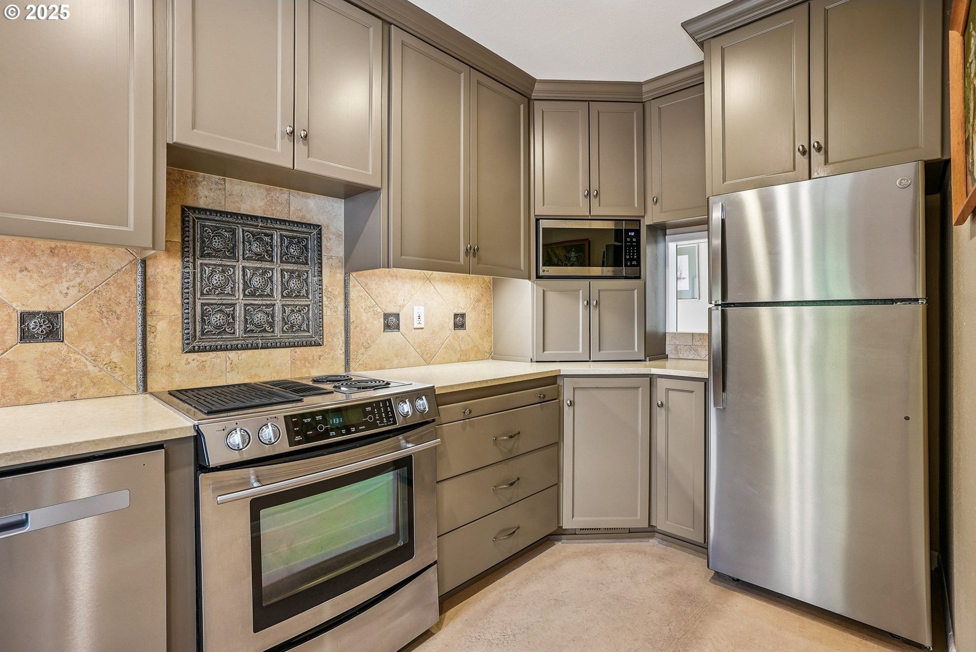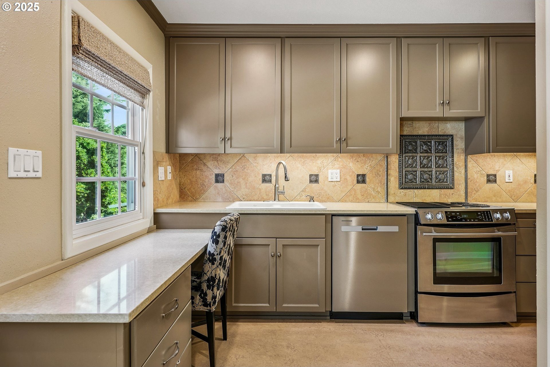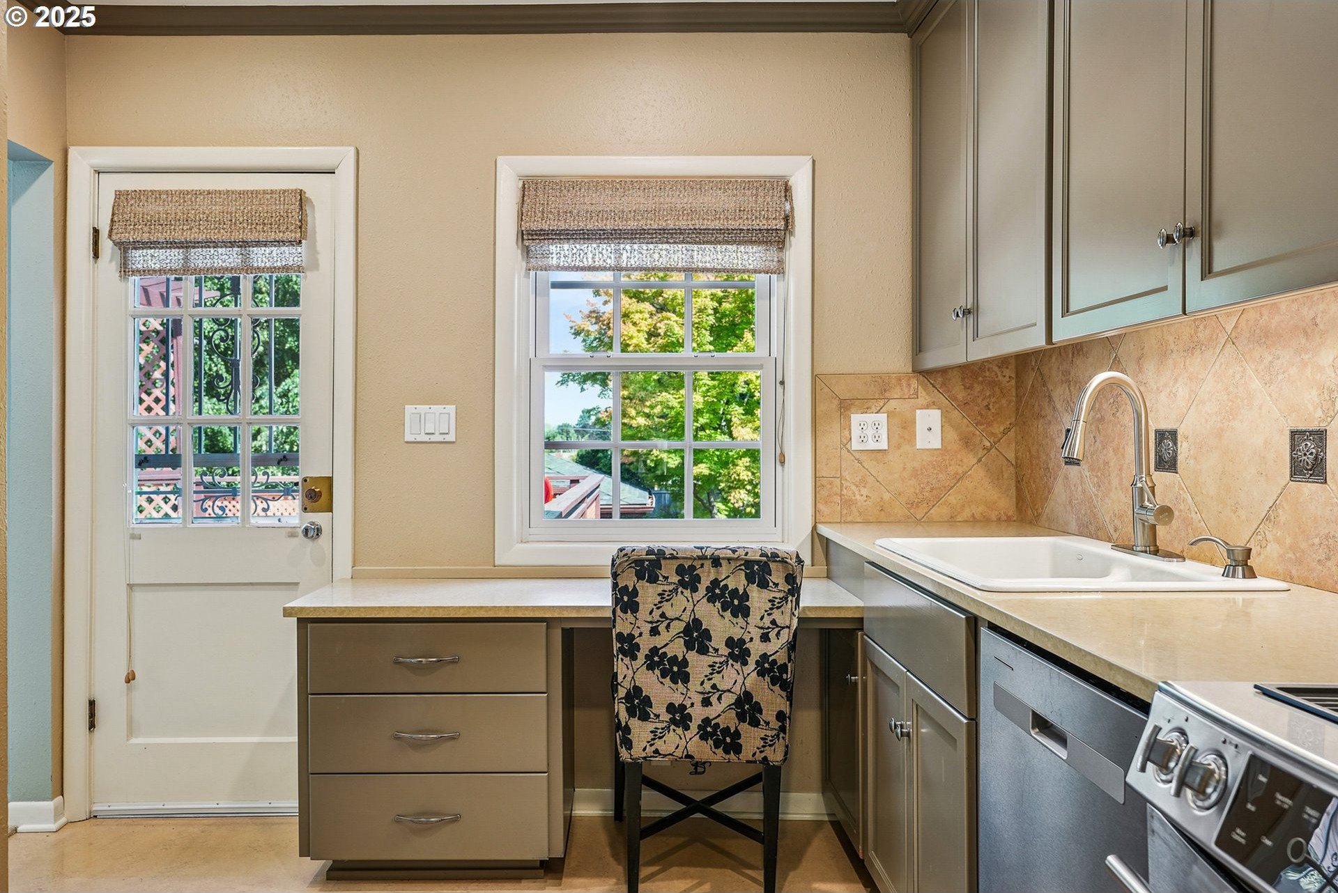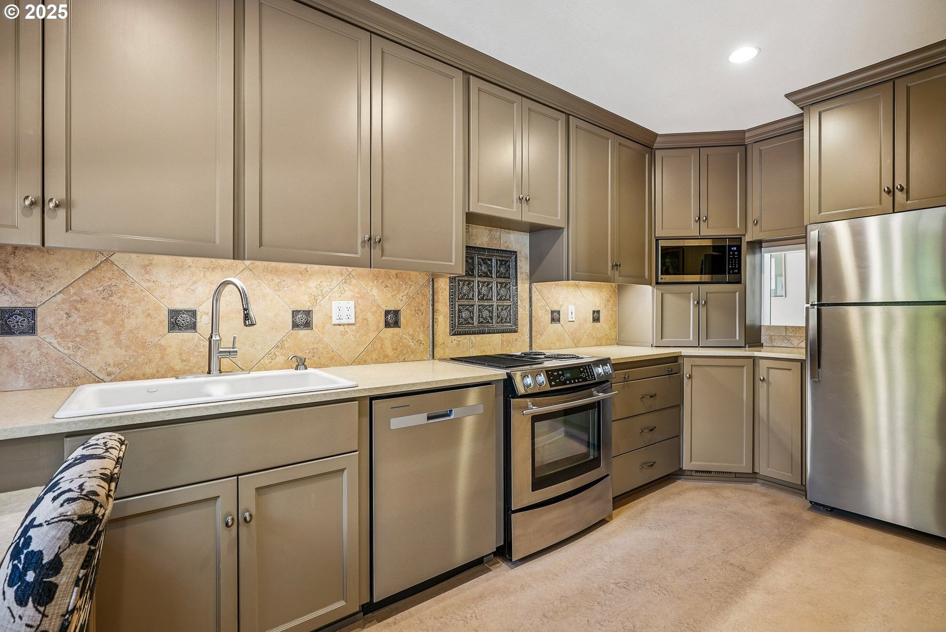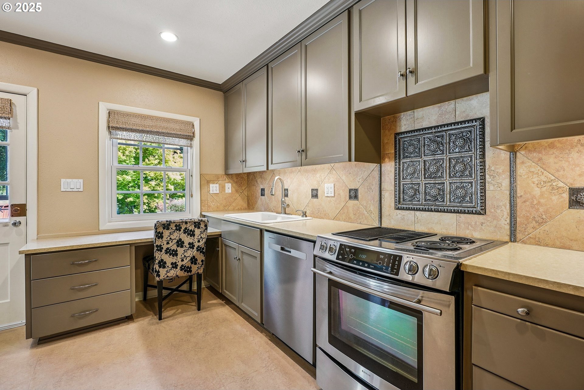 Updated, pristine Cape Cod with a spectacular fenced backyard with plenty of room for gardening & entertaining on the sun deck or covered gazebo. Attached garage & plenty of parking in the oversized driveway! The large, open living/dining room is flooded by light with windows on three sides & a gas fireplace surrounded by classic built-ins. Updated kitchen with stainless appliances, tile backsplash, quartz counters & custom cabinets. The elegant kitchen leads to the very large sun deck above the garage. The primary bedroom on the main level has custom wainscoting, several closets & an updated full bath. The cheerful bedroom upstairs is connected to oversized storage space. The finished basement has two separate exterior entrances making it prime for hobbies or potential as an ADU. Enjoy movies in the media room with it's own wood-burning fireplace. The lower level also includes a bedroom with ensuite full bath, desk space, several built-in cabinets & closets. The clean, bright laundry room has a sink and its own access to the exterior. Energy efficient updates include all the windows on the entire house have been replaced with double-pane windows and upgraded rigid spray foam & cellulose insulation. Updated systems include central AC & furnace in 2021, water heater in 2016, roof in 2011. Move-in ready perfection! New Season's, Kennedy School, Beaumont Village, Fernhill Park, Colwood & Rose City golf courses and endless shops, cafes & restaurants in every direction, plus easy access to the airport! [Home Energy Score = 5. HES Report at https://rpt.greenbuildingregistry.com/hes/OR10241252]