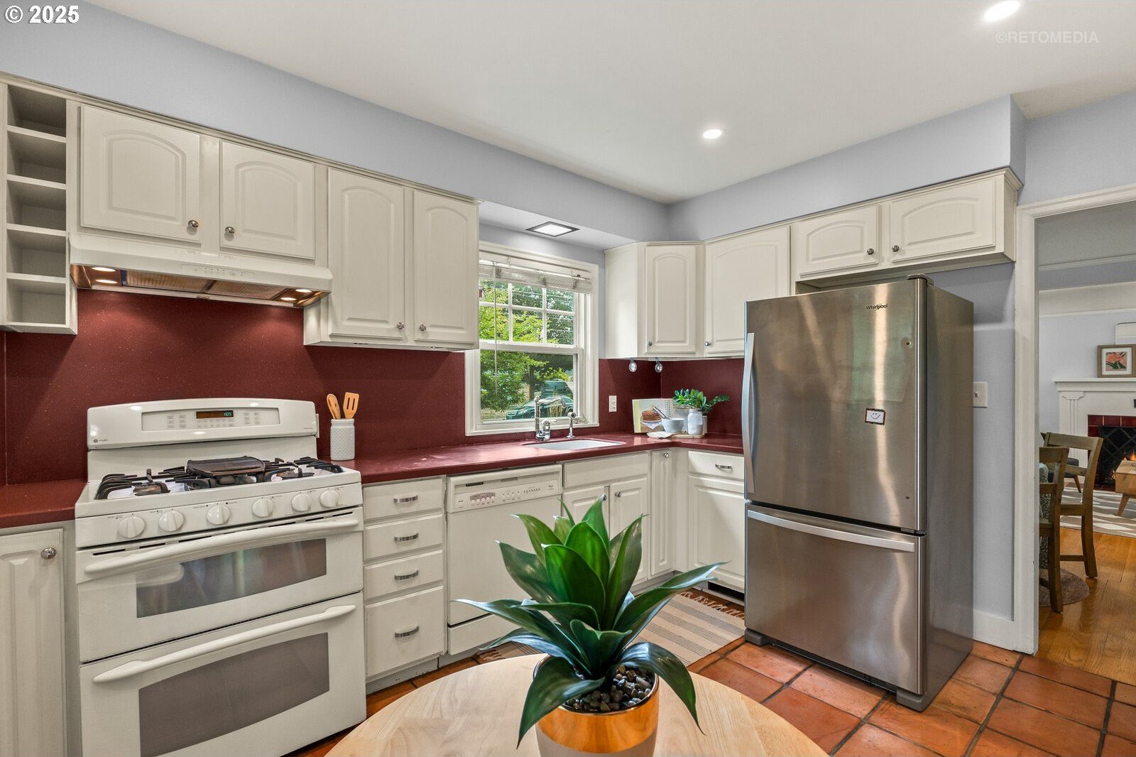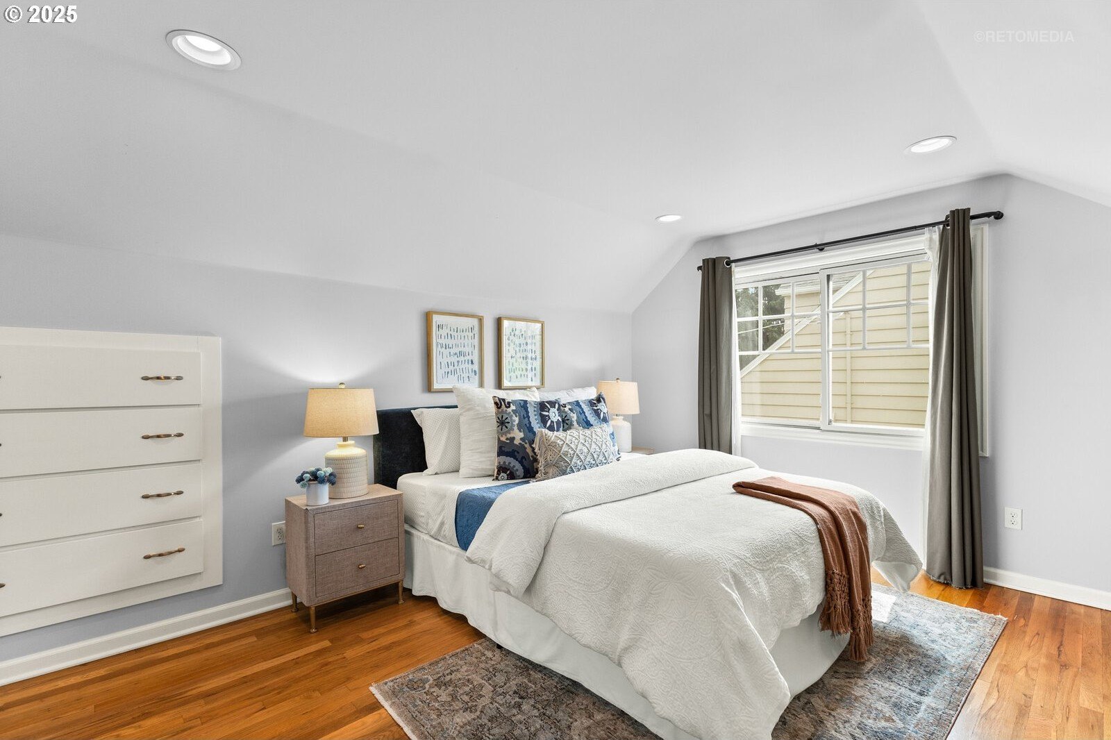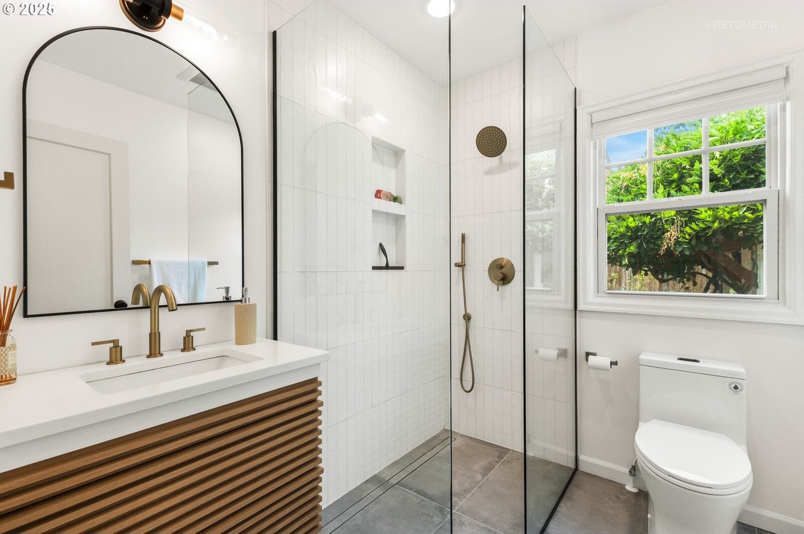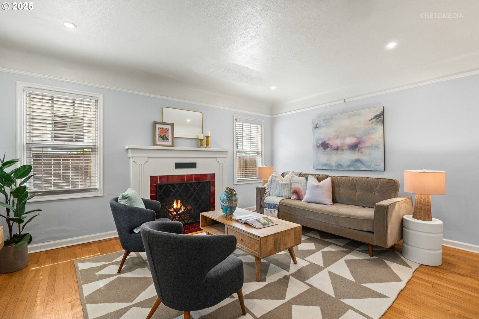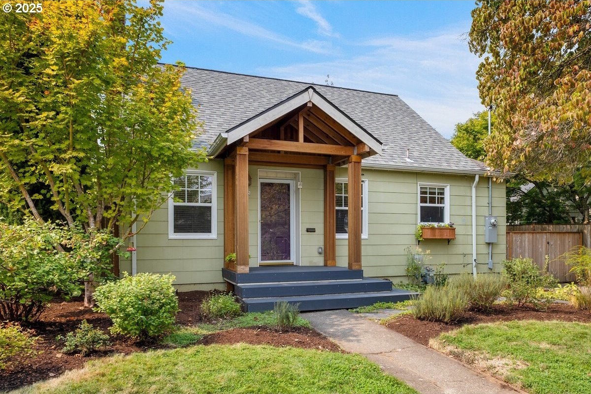 Fall in love with this charming NE Portland Cape Cod, where timeless character meets everyday comfort. Featuring a backyard built for summer BBQs, gardening, and relaxing under the covered patio. With raised garden beds, a private fully fenced yard, and space to gather, it’s the perfect outdoor retreat right in your very own home. Inside, the main level offers two bedrooms and a beautifully remodeled full bathroom boasting a stunning walk-in shower with a glass surround and elegant tile walls. The light-filled living room centers around a cozy wood-burning fireplace, while the dining area flows easily into the kitchen. Hardwood floors add warmth and elegance throughout the main and upper levels, leading to a spacious bedroom with its own walk-in closet. The huge, finished basement expands the home’s versatility with a large family room, full bathroom, laundry, and plenty of storage. A wonderful bonus is an electric car charger! This home blends charm, function, and flexibility, making it an ideal find in one of Portland’s most beloved neighborhoods. [Home Energy Score = 1. HES Report at https://rpt.greenbuildingregistry.com/hes/OR10241604]