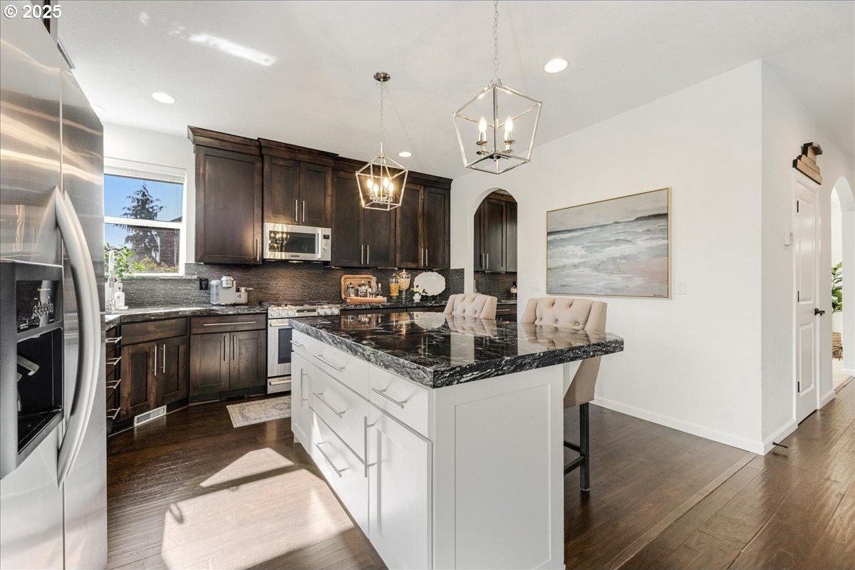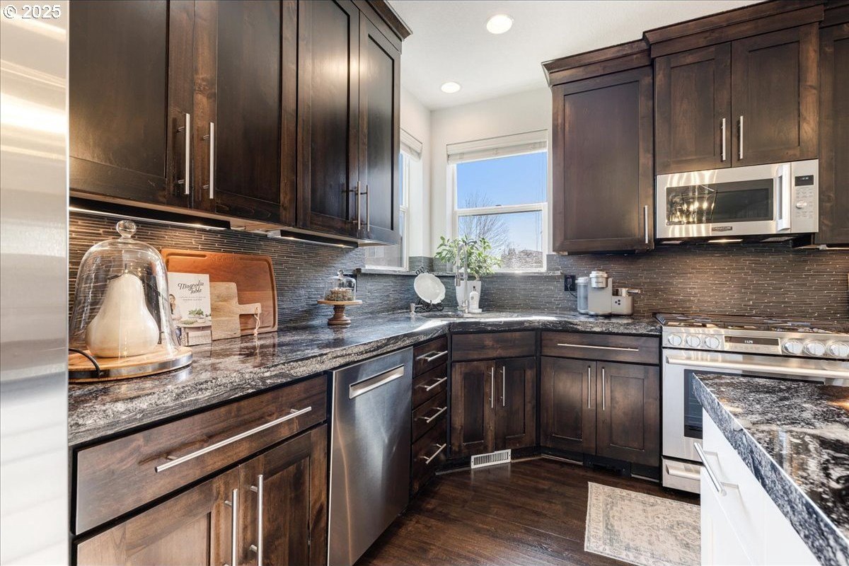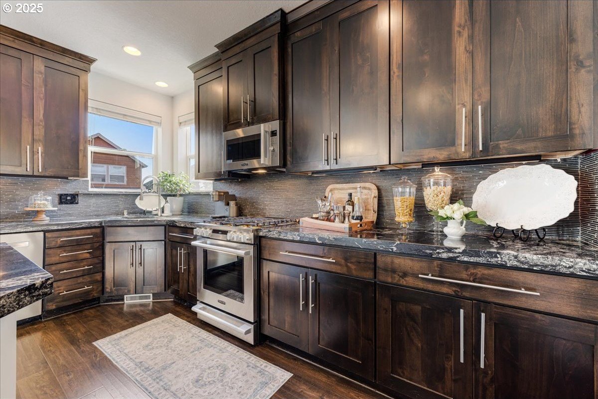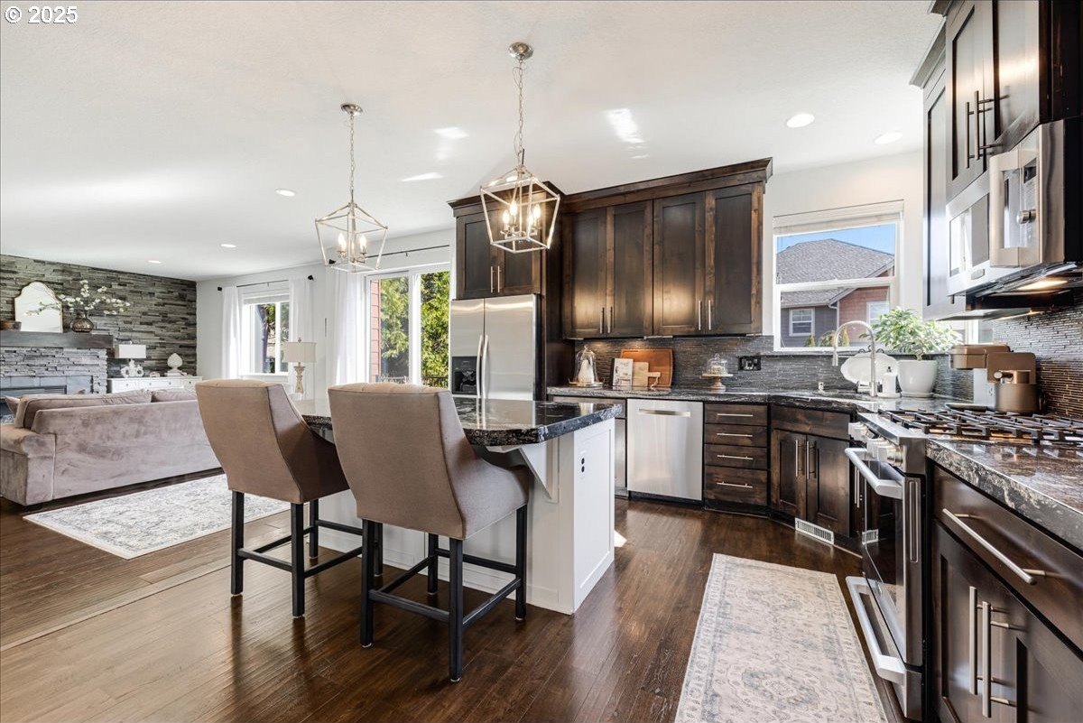 Beautiful gem in the heart of Clackamas; just a stones throw to Happy Valley's favorites! TONS of recent improvements make this home better than NEW!! All newer top of the line Stainless Steel kitchen appliances, Furnace, AC, Water, Heater, Whole House Purification, newly renovated bathroom vanities, 10x4 stacked stone raised garden planter & so much more! Gourmet kitchen includes freshly painted spacious island, full height cabinetry & an expansive butlers pantry perfect for entertaining! Living space features a full stone accent wall, where you can enjoy cozy nights in front of the fireplace. Flex room is ideal for dining, a pool table or those Friday night card games! The generous upper level has a luxurious & expansive primary suite with a jetted tub, separate shower & walk in closet. The laundry room can double as a craft room or spacious storage room. Residents of this home will get access to the community's pool and fitness center! This adorable neighborhood is just minutes to schools, Happy Valley Food Cart Station & Farmers Market, parks, shopping and entertainment!