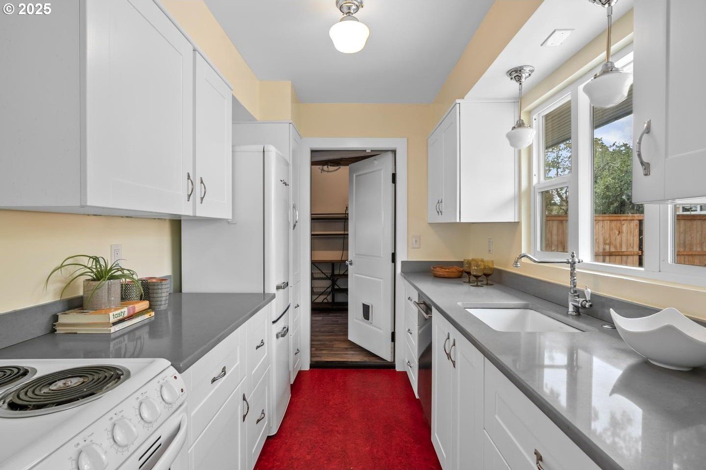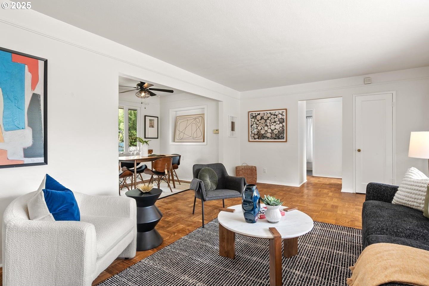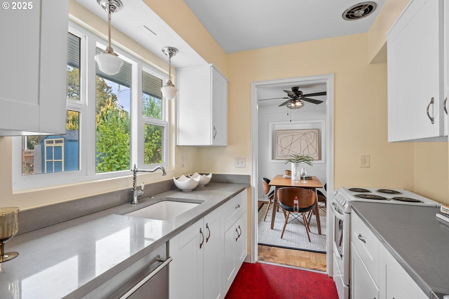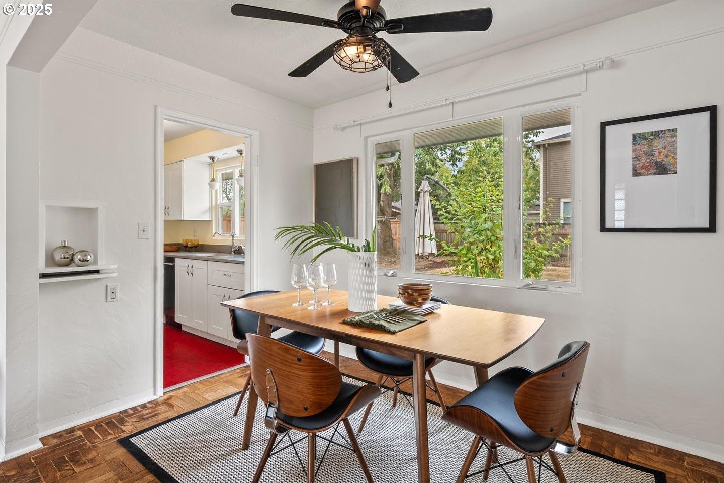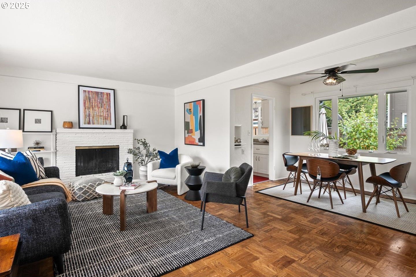 Come have a look at this sunny delight of a home! Full of charm and thoughtful updates that make it truly move-in ready. A great layout with two generously sized bedrooms, hardwood floors, a cozy wood-burning fireplace, wonderful natural light, and many recent upgrades! Updates include: kitchen & bath, tankless water heater and boiler for radiant floor heat, electrical work with grounded outlets, newer double pane vinyl windows, sewer line and clean out, plus fresh interior and exterior paint in 2025.Situated on an oversized, fully fenced corner lot, the outdoor space offers endless opportunity for gardening, entertaining, or running around! The location is unbeatable - steps from Peninsula Park with the beautiful rose gardens, pool, and playground, plus close to neighborhood coffee shops, restaurants, New Seasons, multiple TriMet options, and easy access to I-5.Don’t miss your chance to call this delightful home yours! Join us at the open house on Sunday, September 7th, from 11am–1pm. [Home Energy Score = 7. HES Report at https://rpt.greenbuildingregistry.com/hes/OR10241307]