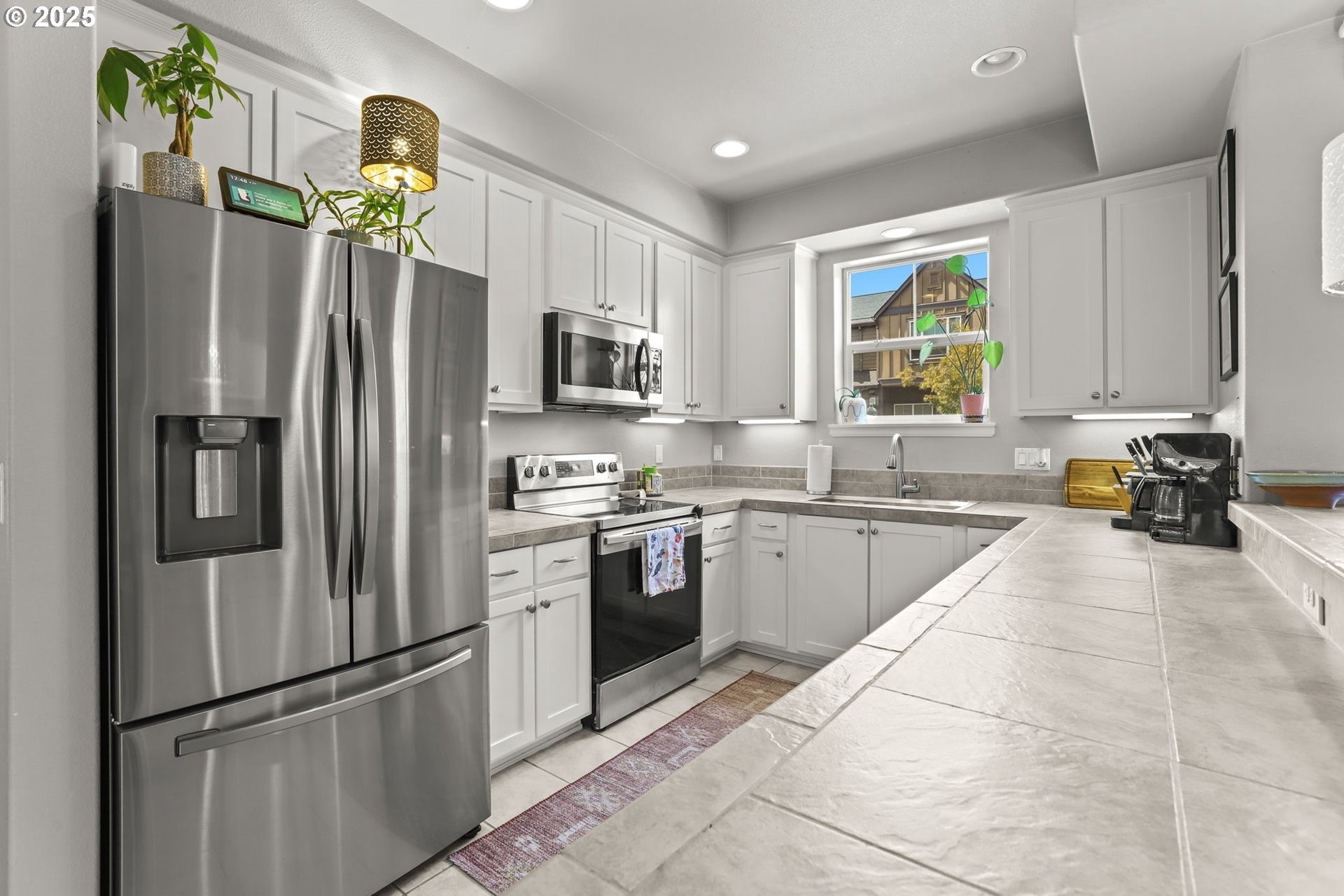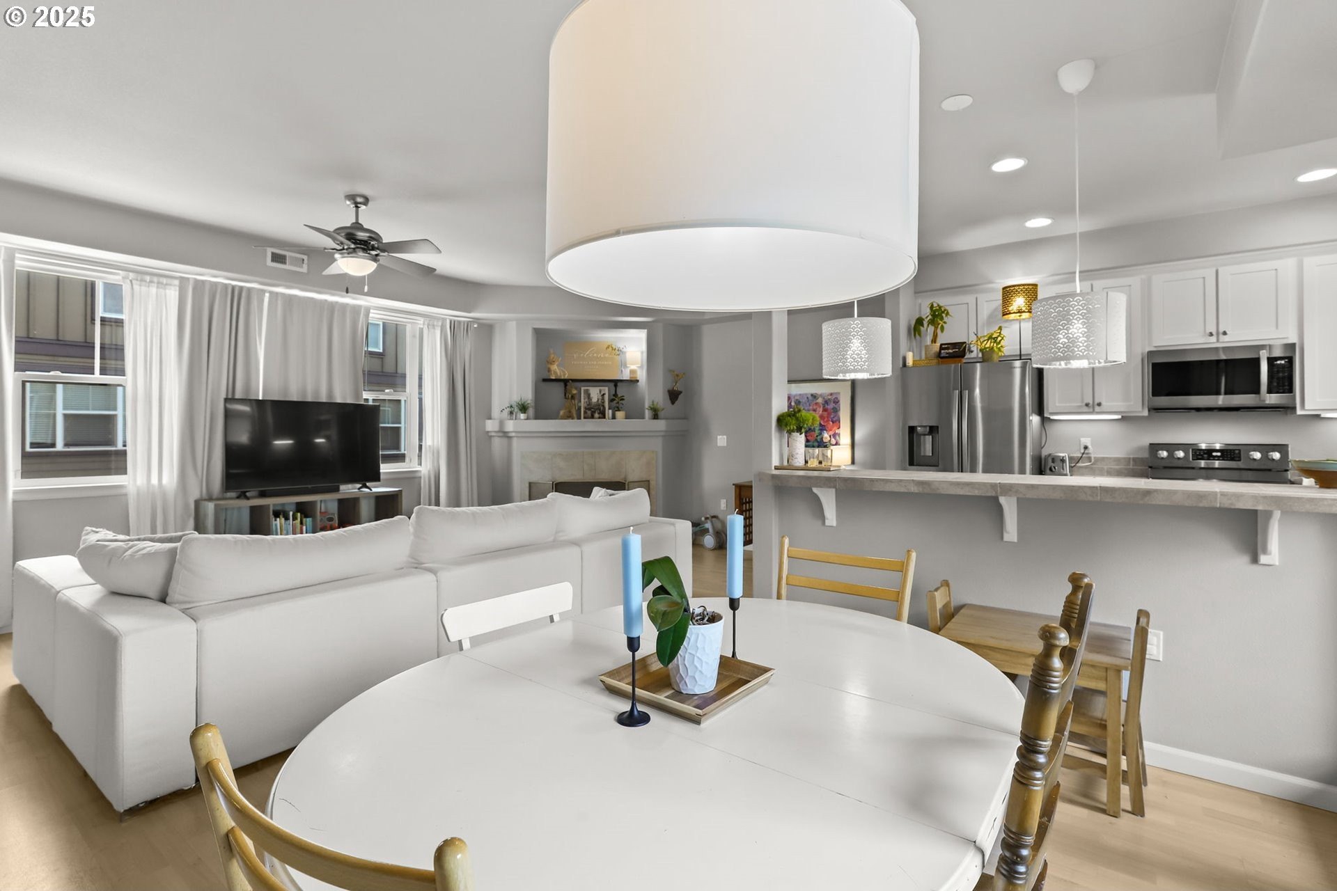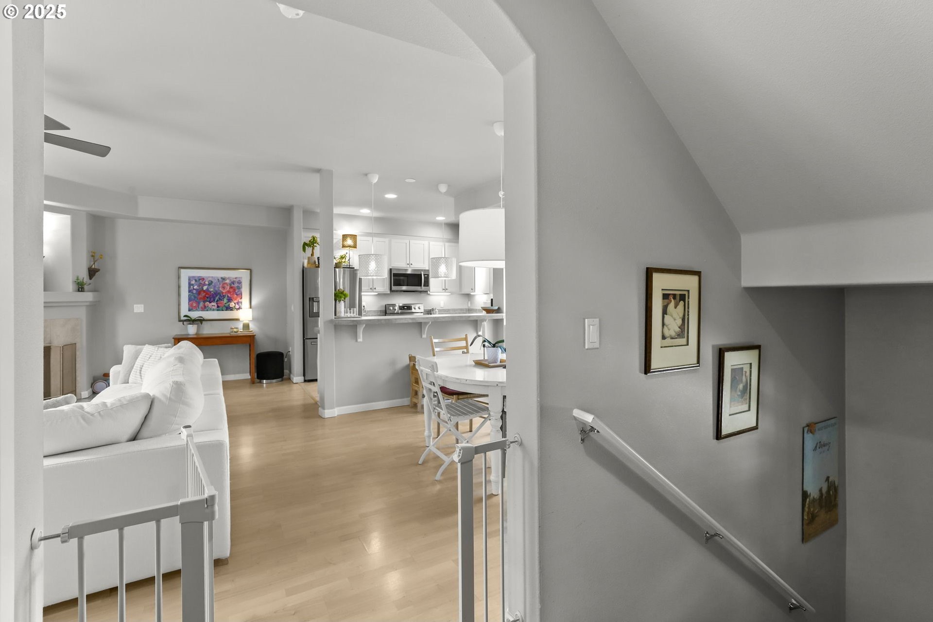 Beautifully maintained and move-in ready just two blocks from Summerlake Park! Welcome home to this Tigard townhome that features three bedrooms plus an office and two full bathrooms. The main floor open floor plan lives like a greatroom with a cozy living room with gas fireplace, spacious kitchen with newer stainless steel appliances (2020) tile counters and eating bar. The dining room opens to the covered deck. Don't miss the huge pantry under the stairs. Flexible main-level bonus room can serve as the perfect home office. Upstairs offers spacious bedrooms, two full bathrooms, and the laundry closet. You will love the delighful paint colors, bead board, stylish lighting and laminate flooring throughout. The furnace room adjacent to garage provides incredible storage. Enjoy central A/C, a forced air gas furnace, and a 2-car oversized garage. Conveniently located in a prime location near Progress Ridge, Washington Square, Hwy 217, shopping, dining & more! Schedule your private showing today!
