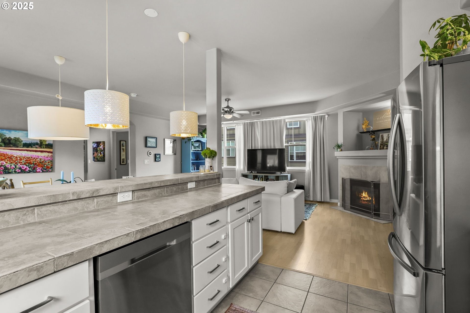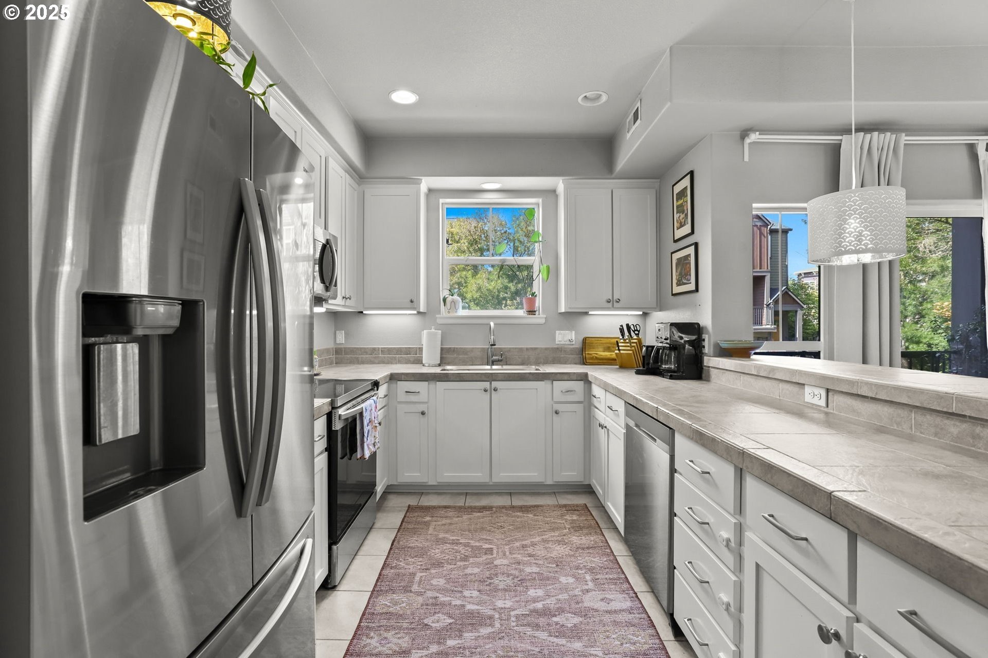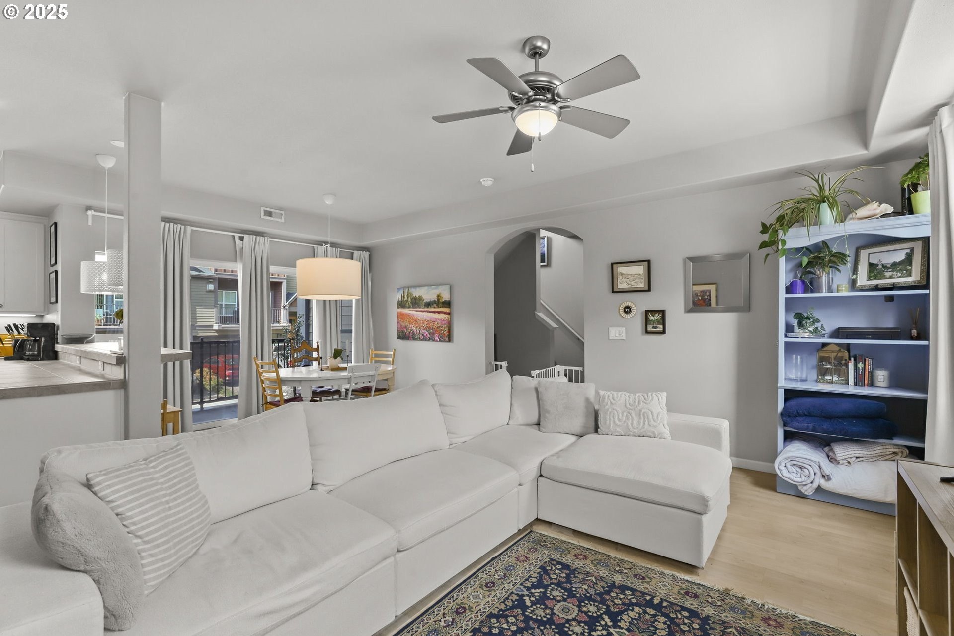 Beautifully maintained and move-in ready just two blocks from Summerlake Park! Welcome home to this Tigard townhome that features three bedrooms plus an office and two full bathrooms. The main floor open floor plan lives like a greatroom with a cozy living room with gas fireplace, spacious kitchen with newer stainless steel appliances (2020) tile counters and eating bar. The dining room opens to the covered deck. Don't miss the huge pantry under the stairs. Flexible main-level bonus room can serve as the perfect home office. Upstairs offers spacious bedrooms, two full bathrooms, and the laundry closet. You will love the delighful paint colors, bead board, stylish lighting and laminate flooring throughout. The furnace room adjacent to garage provides incredible storage. Enjoy central A/C, a forced air gas furnace, and a 2-car oversized garage. Conveniently located in a prime location near Progress Ridge, Washington Square, Hwy 217, shopping, dining & more! Schedule your private showing today!