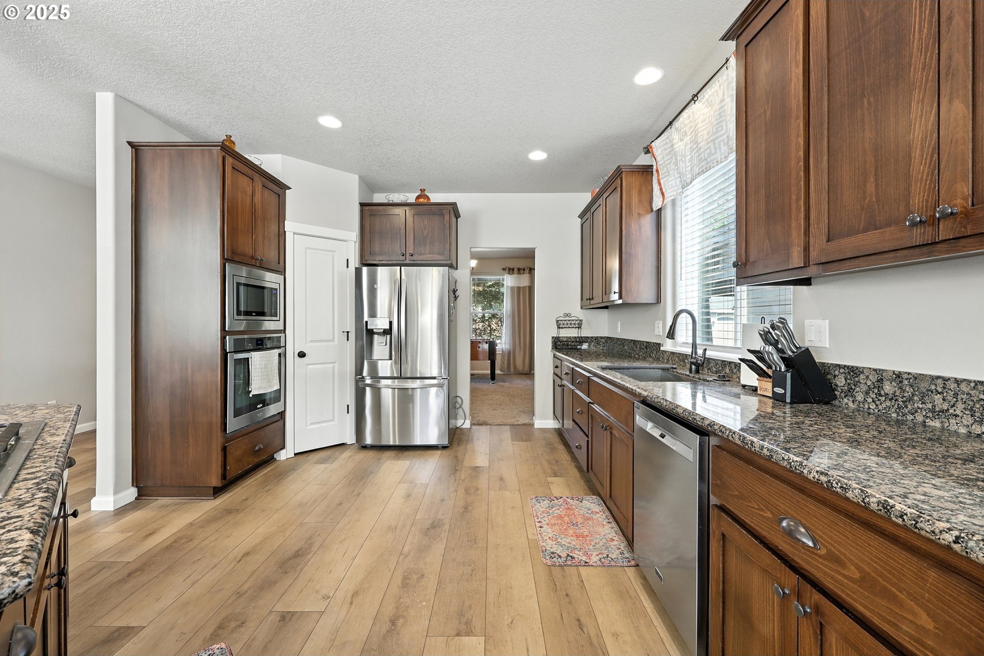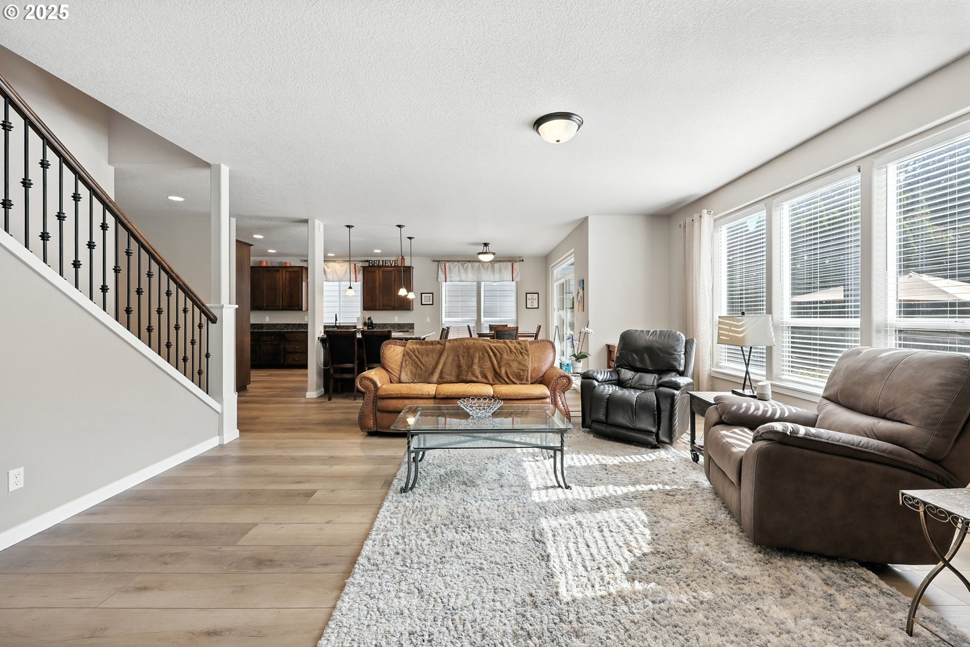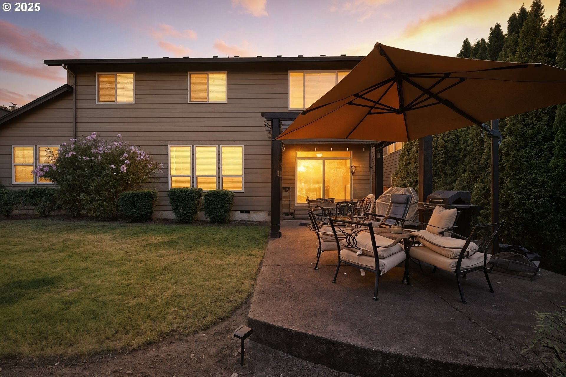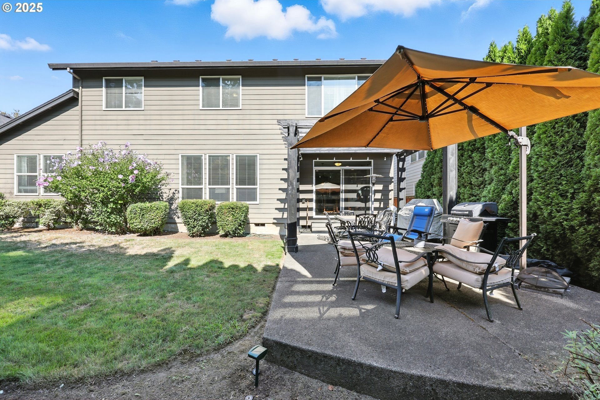 Welcome to this beautifully maintained one-owner home tucked away on a quiet cul-de-sac in the Oregon City School District. Built in 2014 and offering 4 bedrooms, 3 full bathrooms, and nearly 2,900 sq ft of living space, this home combines comfort and functionality in every detail. The main floor features a versatile bedroom, full bath, and convenient laundry room—ideal for flexible living needs. A formal dining room leads into the open kitchen with granite counters, rich cabinetry, a pantry, and a large dining nook with a slider to the private fenced backyard and patio. The inviting great room is perfect for gatherings, complete with large windows for natural light. Upstairs, the spacious primary suite boasts a walk-in closet, dual vanities, jetted tub, and walk-in shower. Two additional bedrooms share a full bath with access from both the hallway and the expansive family/media room. Attic storage is conveniently accessed from the family room and one of the bedrooms. Additional features include an oversized 3-car garage, central vacuum system, landscaped yard with sprinkler system, and a backyard harvest from the bountiful blueberry bushes and apple tree. All in a peaceful cul-de-sac setting, just minutes from schools, parks, and shopping. Don’t miss this move-in ready Milwaukie gem!